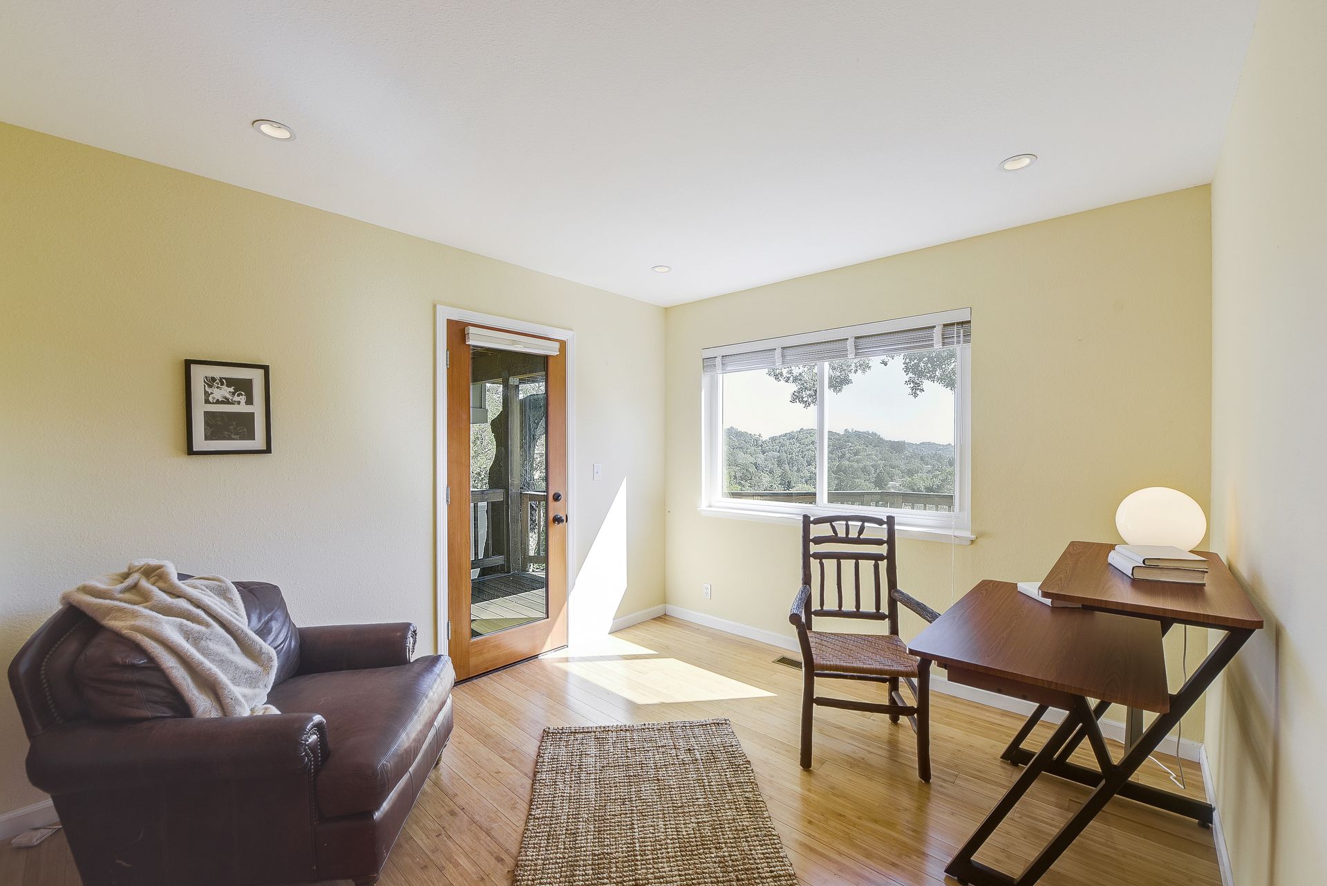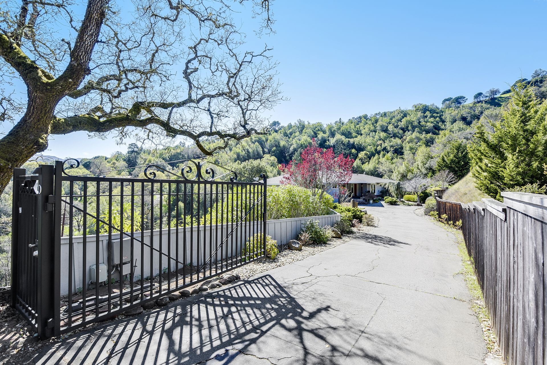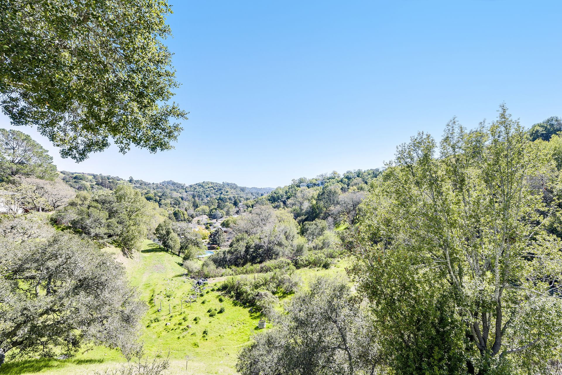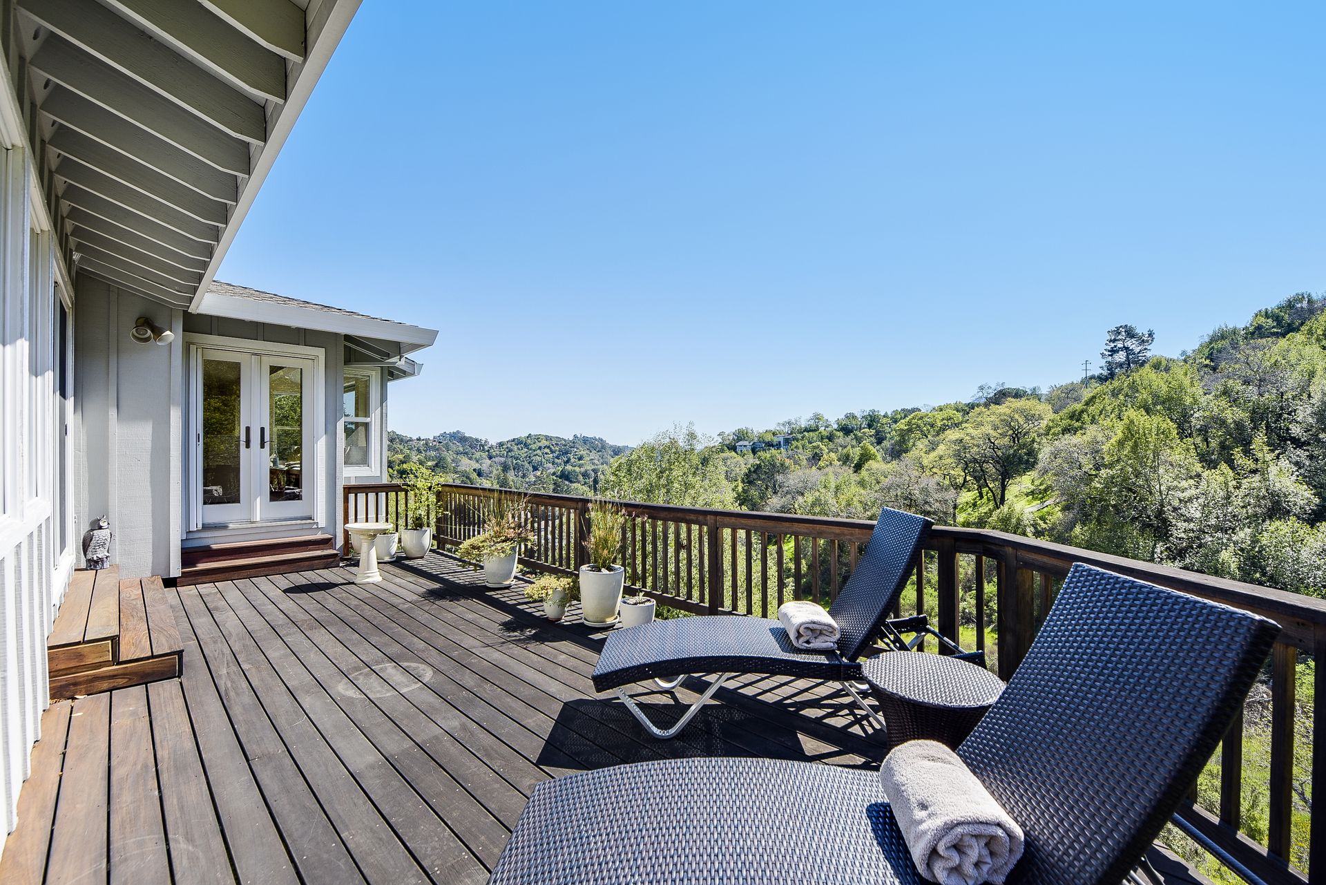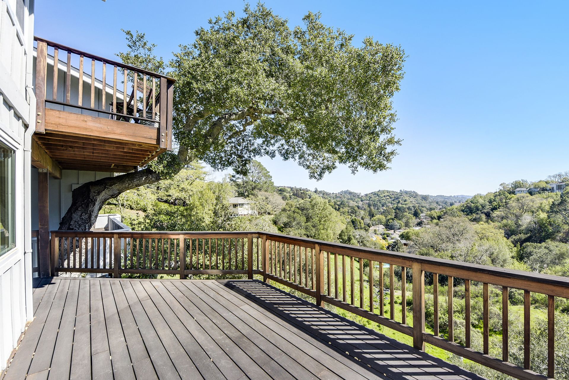 Welcome home to this enchanting oasis of tranquility. Ideally situated between both downtown San Anselmo and Fairfax, this spacious four bedroom + large den, three and one half bath home is approximately 2,872 sq. ft., and is perfectly located on over an acre lot with Mt. Tam, ridge and valley views. The updated kitchen features high end appliances and an eat-in area with sliders out to the deck ideal for barbecuing and al fresco dining. Enjoy the expansive views from the formal dining and living room with built in fireplace. The main level master suite includes a walk-in closet and master bath with double sinks and clawfoot tub. In addition the den on the main level is perfect for an at home office. Three additional bedrooms are conveniently located downstairs. Sunny decks overlook the natural terrain while beautiful mature gardens grace the front yard.
