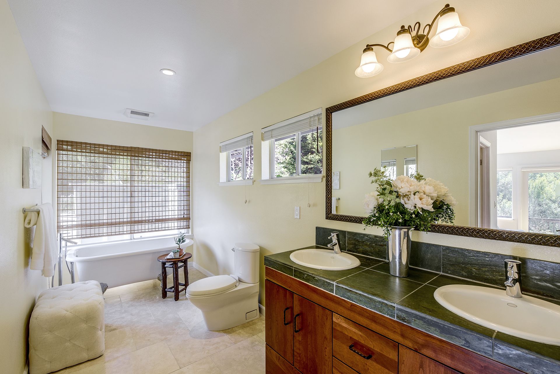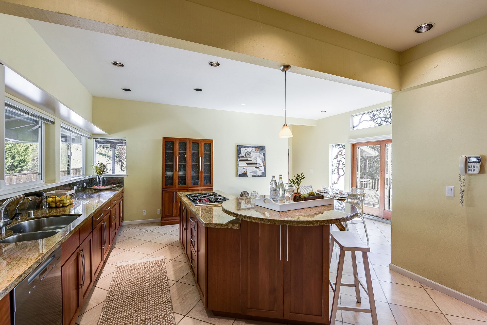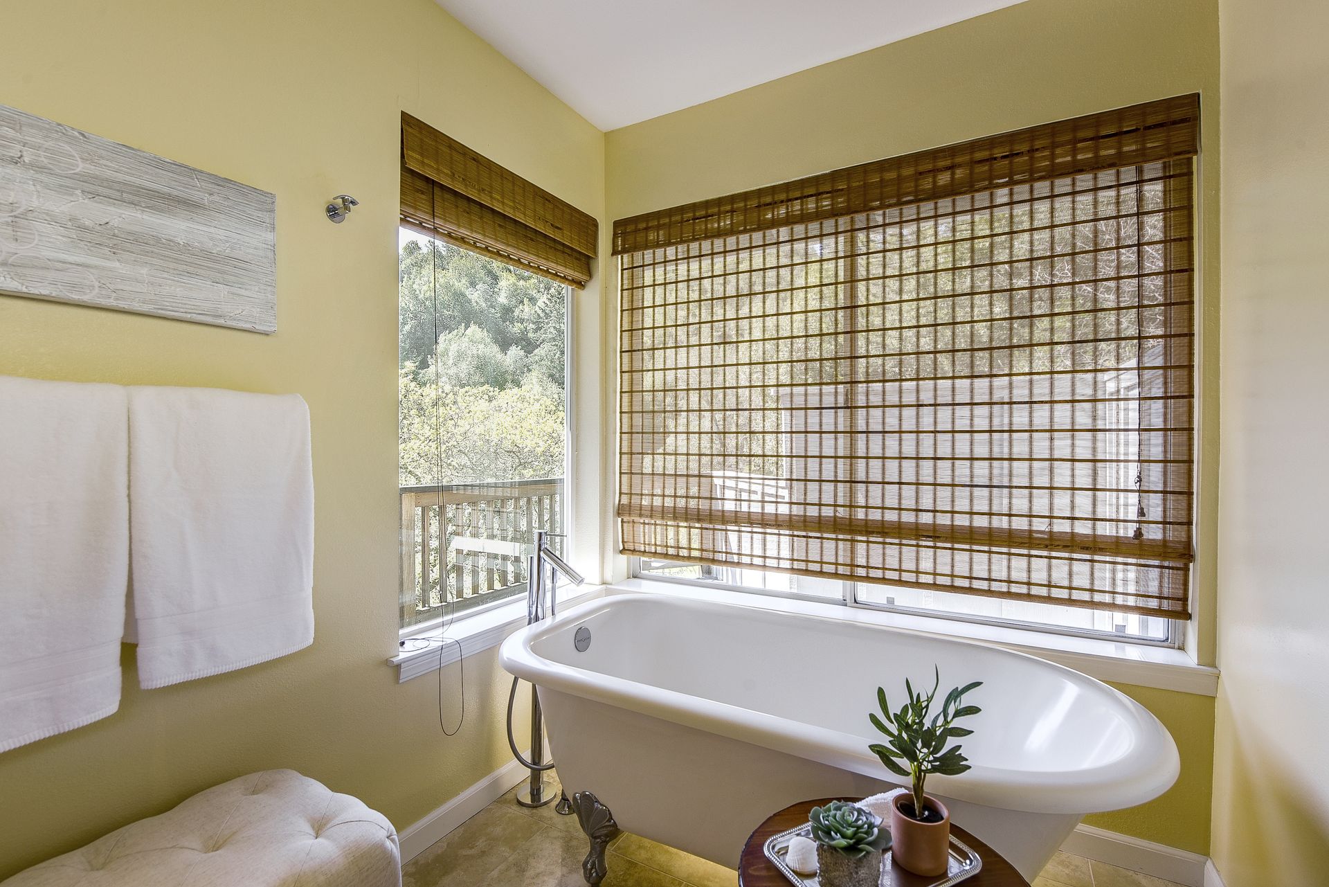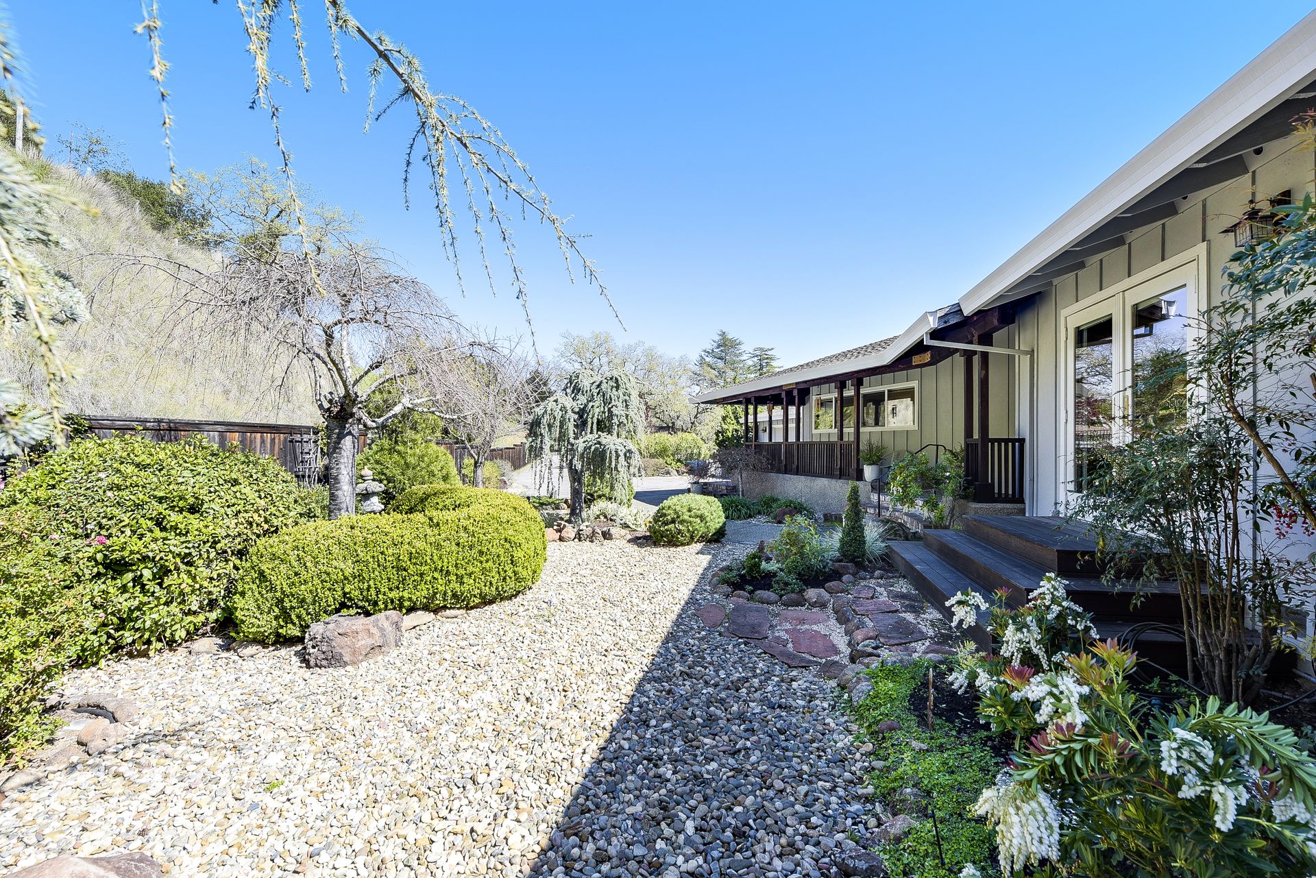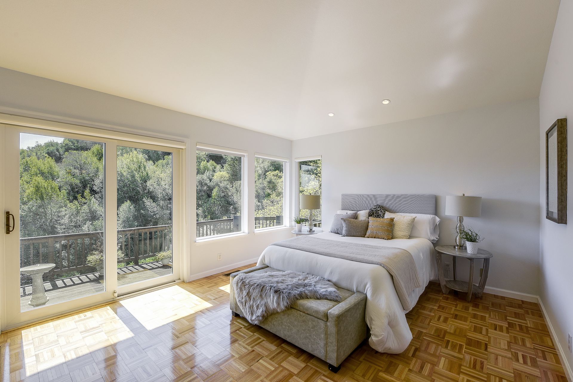 Welcome home to this enchanting oasis of tranquility. Ideally situated between both downtown San Anselmo and Fairfax, this spacious four bedroom + large den, three and one half bath home is approximately 2,872 sq. ft., and is perfectly located on over an acre lot with Mt. Tam, ridge and valley views. The updated kitchen features high end appliances and an eat-in area with sliders out to the deck ideal for barbecuing and al fresco dining. Enjoy the expansive views from the formal dining and living room with built in fireplace. The main level master suite includes a walk-in closet and master bath with double sinks and clawfoot tub. In addition the den on the main level is perfect for an at home office. Three additional bedrooms are conveniently located downstairs. Sunny decks overlook the natural terrain while beautiful mature gardens grace the front yard.