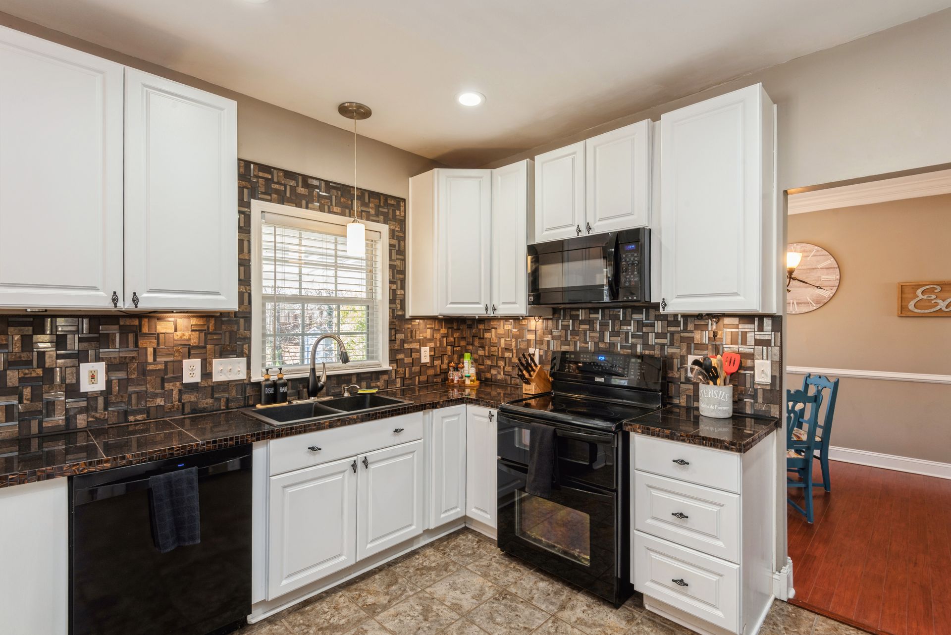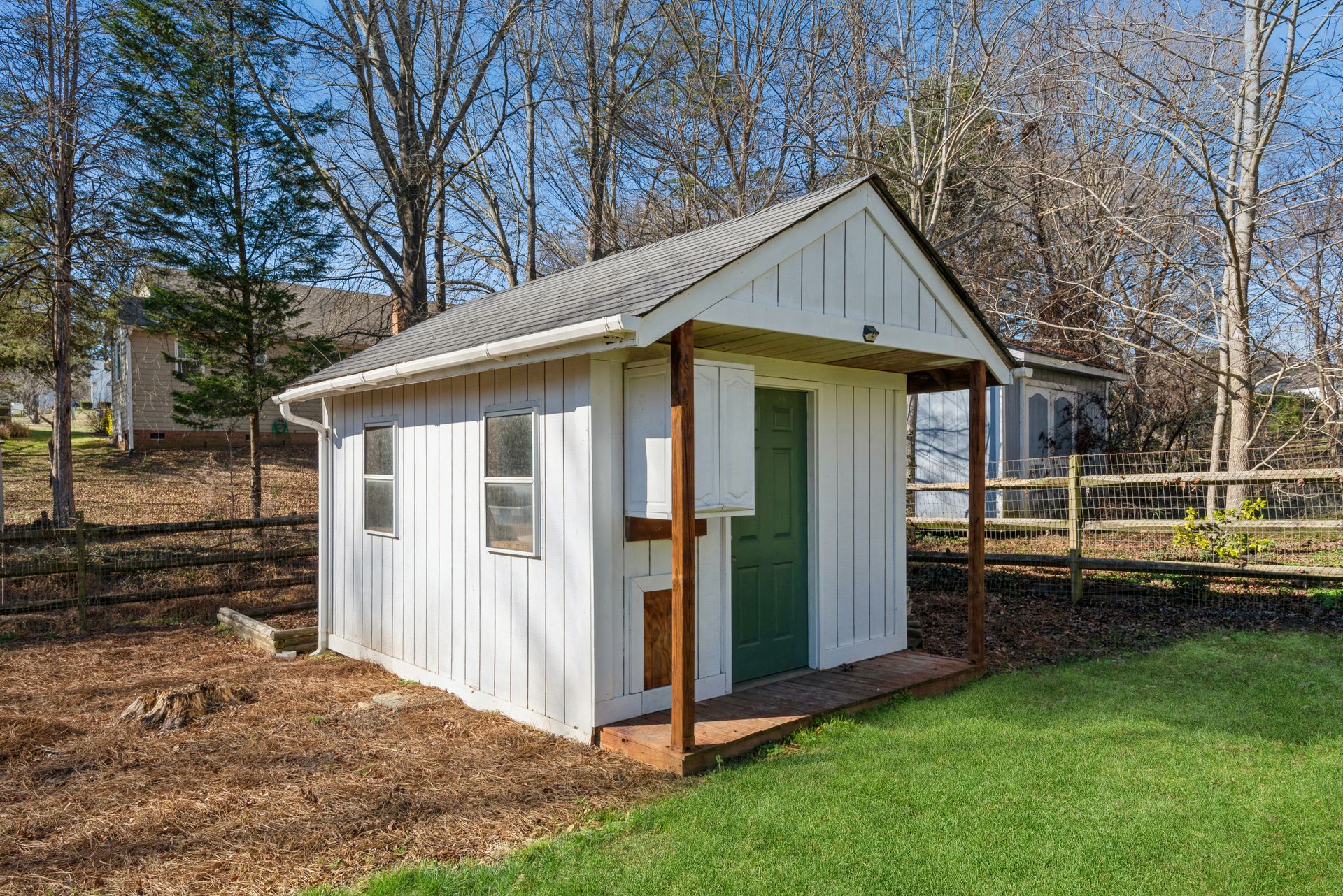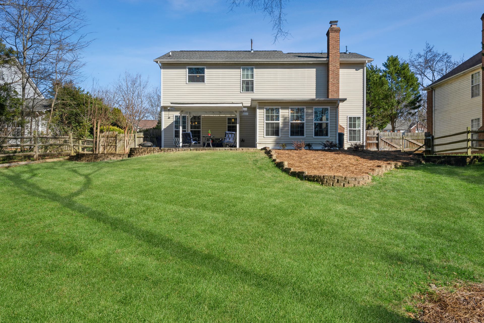 Welcome to Northwoods, one of Charlotte’s most popular neighborhoods with mature trees and several great amenities. The neighborhood offers a pool, clubhouse, playground, trails, and wide sidewalks. Northwoods subdivision is conveniently located near I-485 and is approximately 15 minutes from uptown or the airport. A new luxury shopping plaza was completed in 2020, right around the corner, with a Harris Teeter and various restaurants. This beautiful 3 bedroom, 2.5 bath home situated on a cul-de-sac features an open circular flow of the great room to the kitchen and large dining room. The kitchen features refinished white cabinets, custom tile countertops, tile backsplash, and modern black appliances. Upstairs features a spacious loft, two nicely sized secondary rooms, and a huge primary suite with vaulted ceilings, a walk-in closet, and an ensuite bath with a dual vanity. This property also has a 2-car garage with built-in storage shelves and a full workbench. The fescue lawn and natural areas are well-maintained and tastefully landscaped with hydrangeas, azaleas, and maple trees. The spacious fenced backyard has a fire pit and sitting area perfect for admiring the fall foliage or enjoying a warm summer night. The home is currently under American Home Shield Warranty, and sellers are offering an additional 12-month policy.