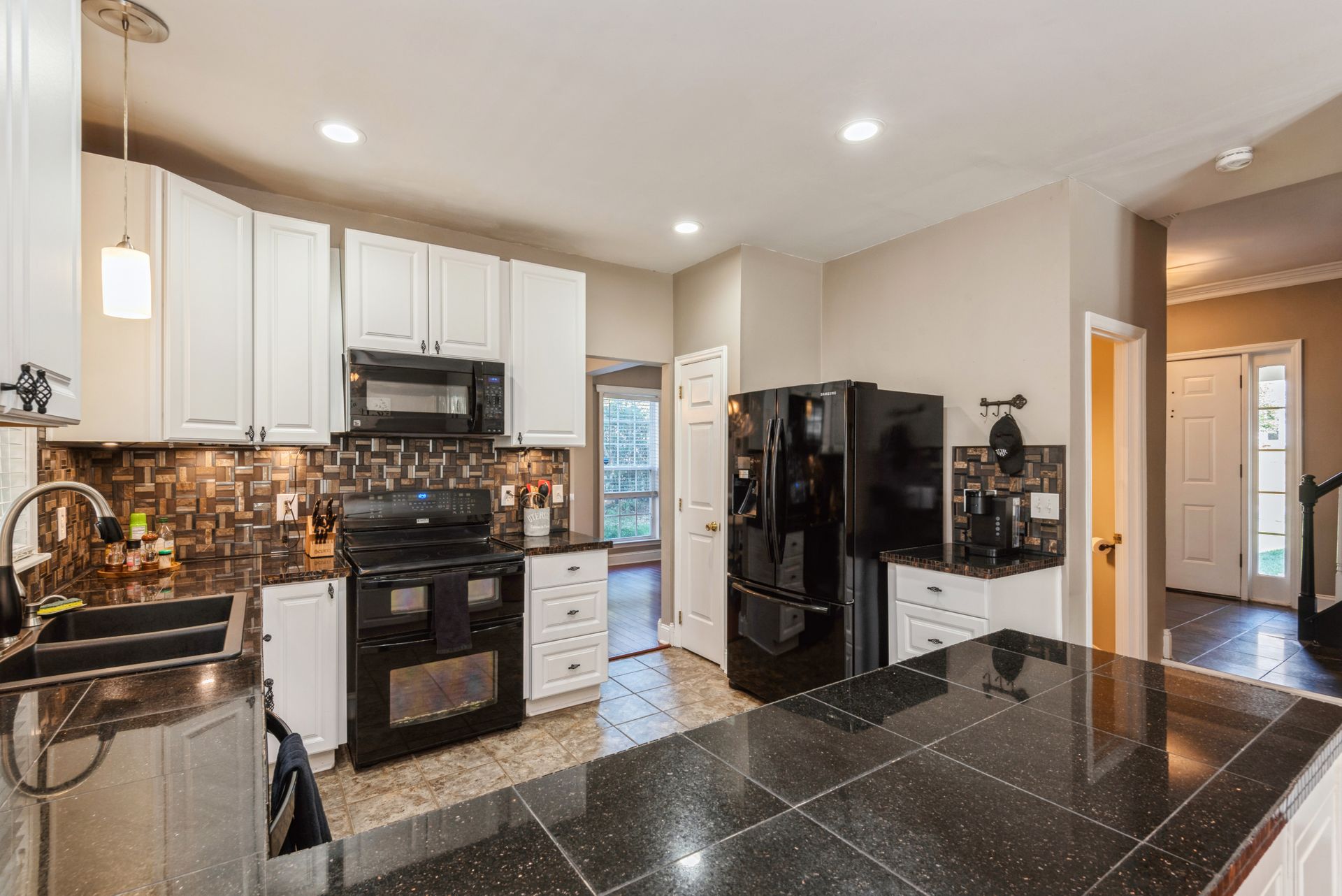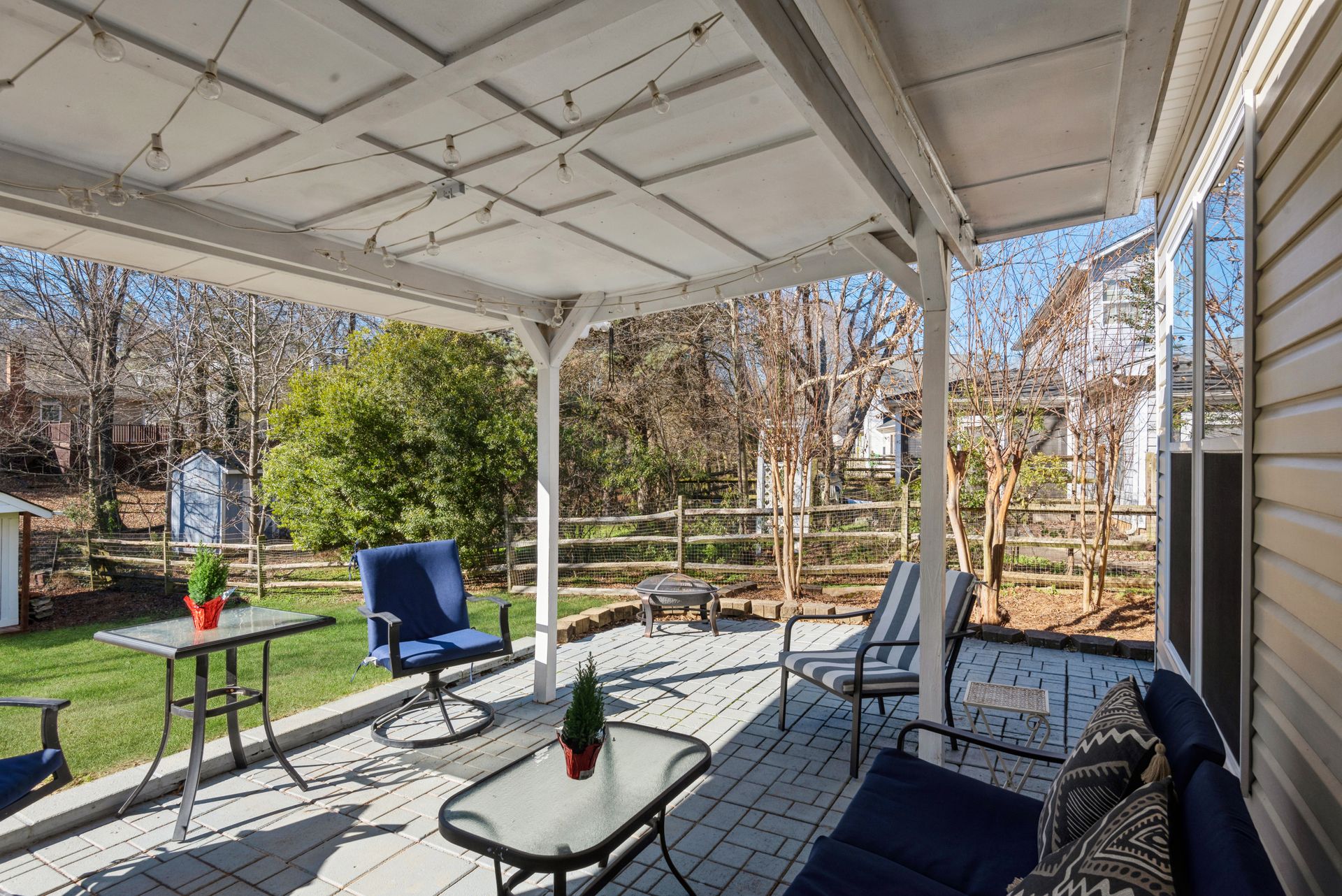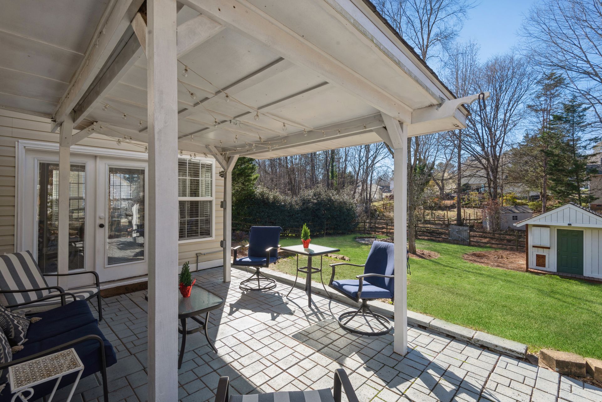Welcome to Northwoods, one of Charlotte’s most popular neighborhoods with mature trees and several great amenities. The neighborhood offers a pool, clubhouse, playground, trails, and wide sidewalks. Northwoods subdivision is conveniently located near I-485 and is approximately 15 minutes from uptown or the airport. A new luxury shopping plaza was completed in 2020, right around the corner, with a Harris Teeter and various restaurants. This beautiful 3 bedroom, 2.5 bath home situated on a cul-de-sac features an open circular flow of the great room to the kitchen and large dining room. The kitchen features refinished white cabinets, custom tile countertops, tile backsplash, and modern black appliances. Upstairs features a spacious loft, two nicely sized secondary rooms, and a huge primary suite with vaulted ceilings, a walk-in closet, and an ensuite bath with a dual vanity. This property also has a 2-car garage with built-in storage shelves and a full workbench. The fescue lawn and natural areas are well-maintained and tastefully landscaped with hydrangeas, azaleas, and maple trees. The spacious fenced backyard has a fire pit and sitting area perfect for admiring the fall foliage or enjoying a warm summer night. The home is currently under American Home Shield Warranty, and sellers are offering an additional 12-month policy.