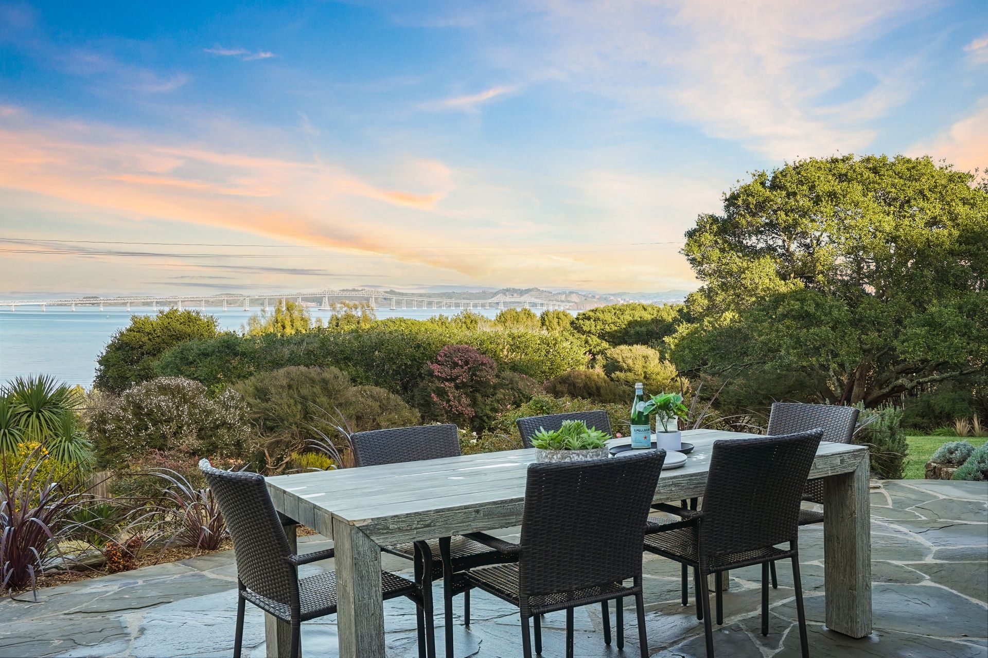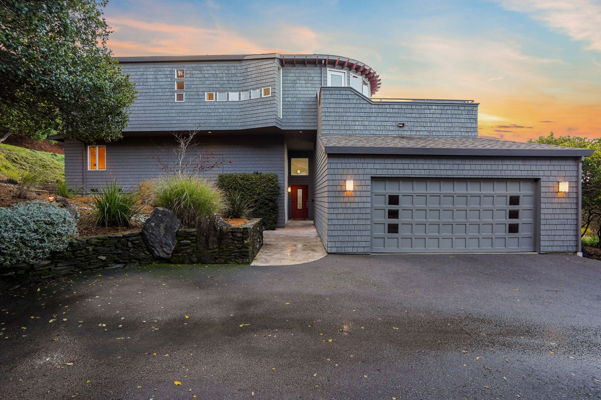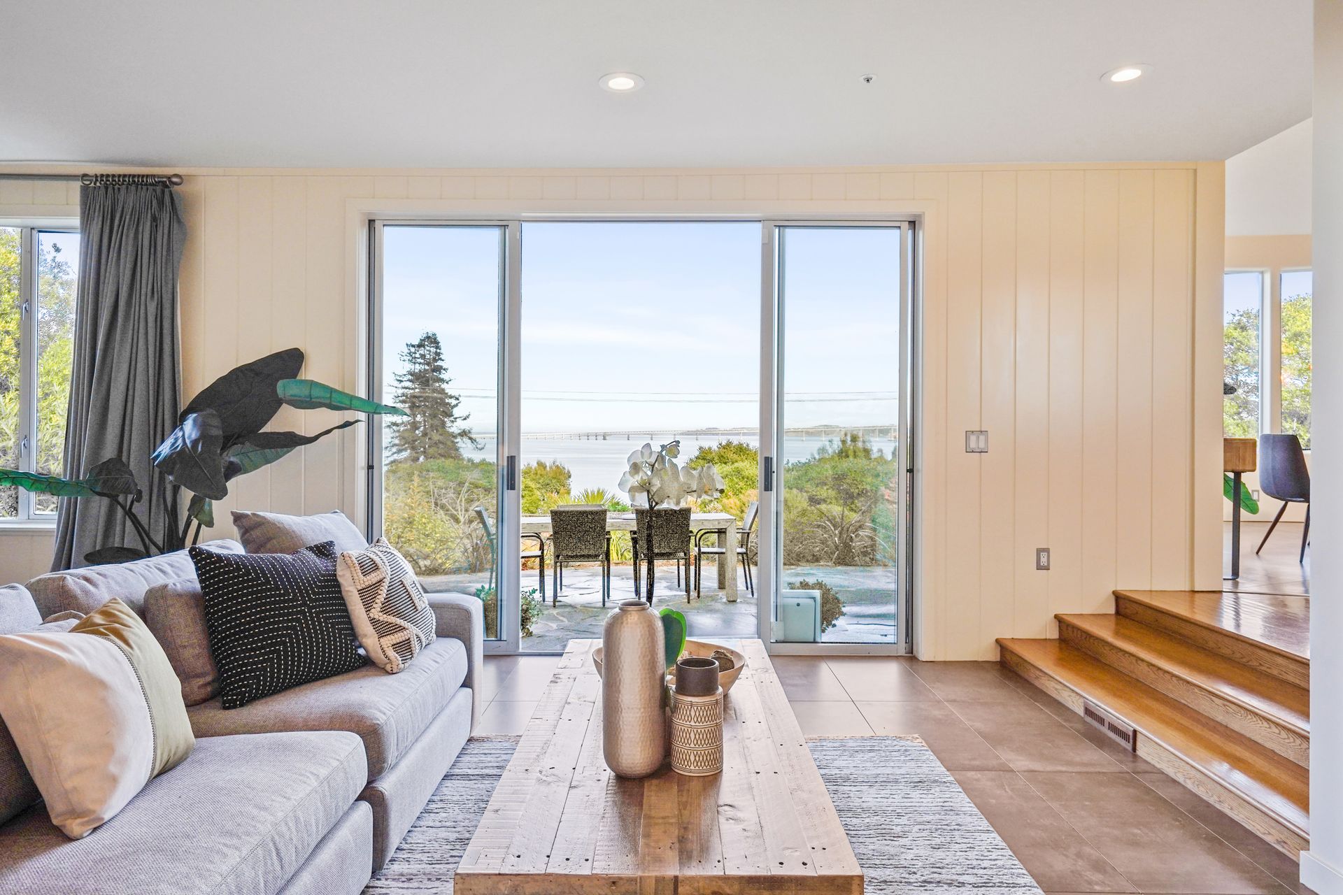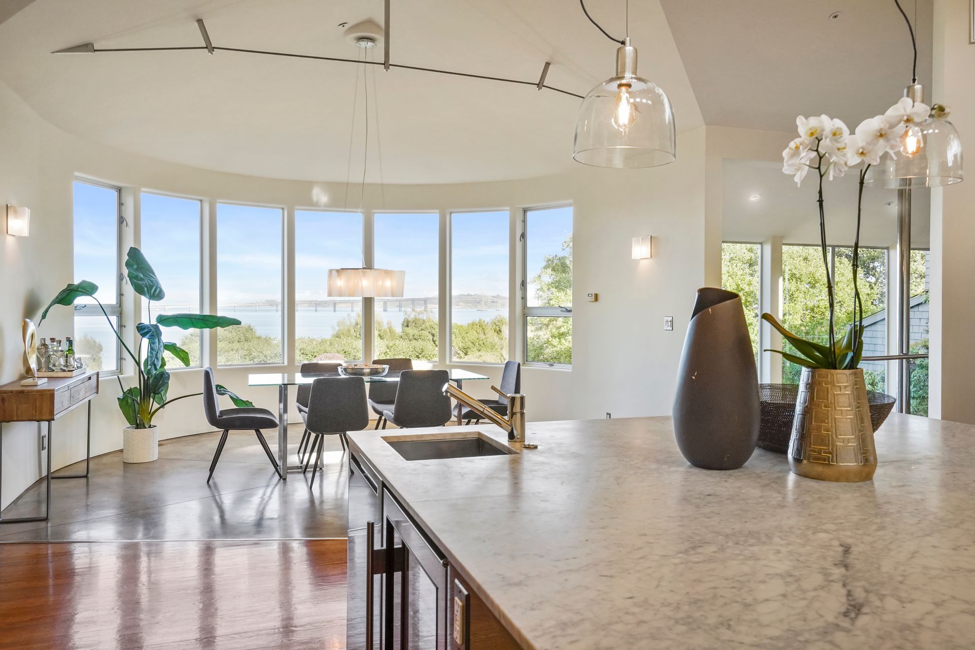 4925 Paradise Drive is a stunning contemporary home with the main living spaces featuring an open floor plan and vaulted ceilings. Multiple large windows offer extensive views of the bay and East Bay hills from the primary bedroom, living room and dining room. The large open kitchen features beautiful cabinetry and high-end appliances. The generous home office is large enough for two to easily share. The family room opens onto a patio overlooking a lawn, garden, and views. Property is nearly three-quarters of an acre, offering plenty of outdoor space and privacy.