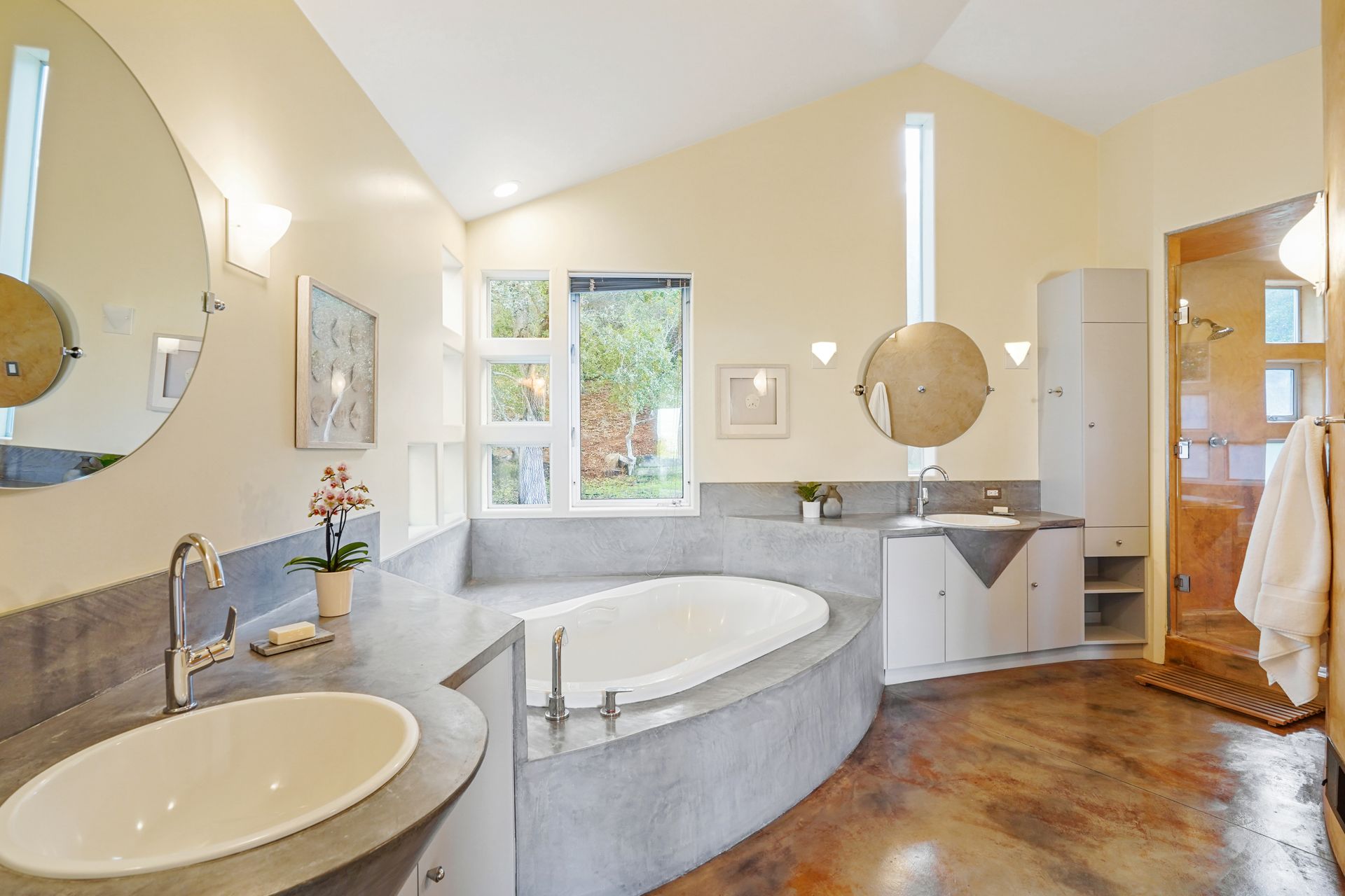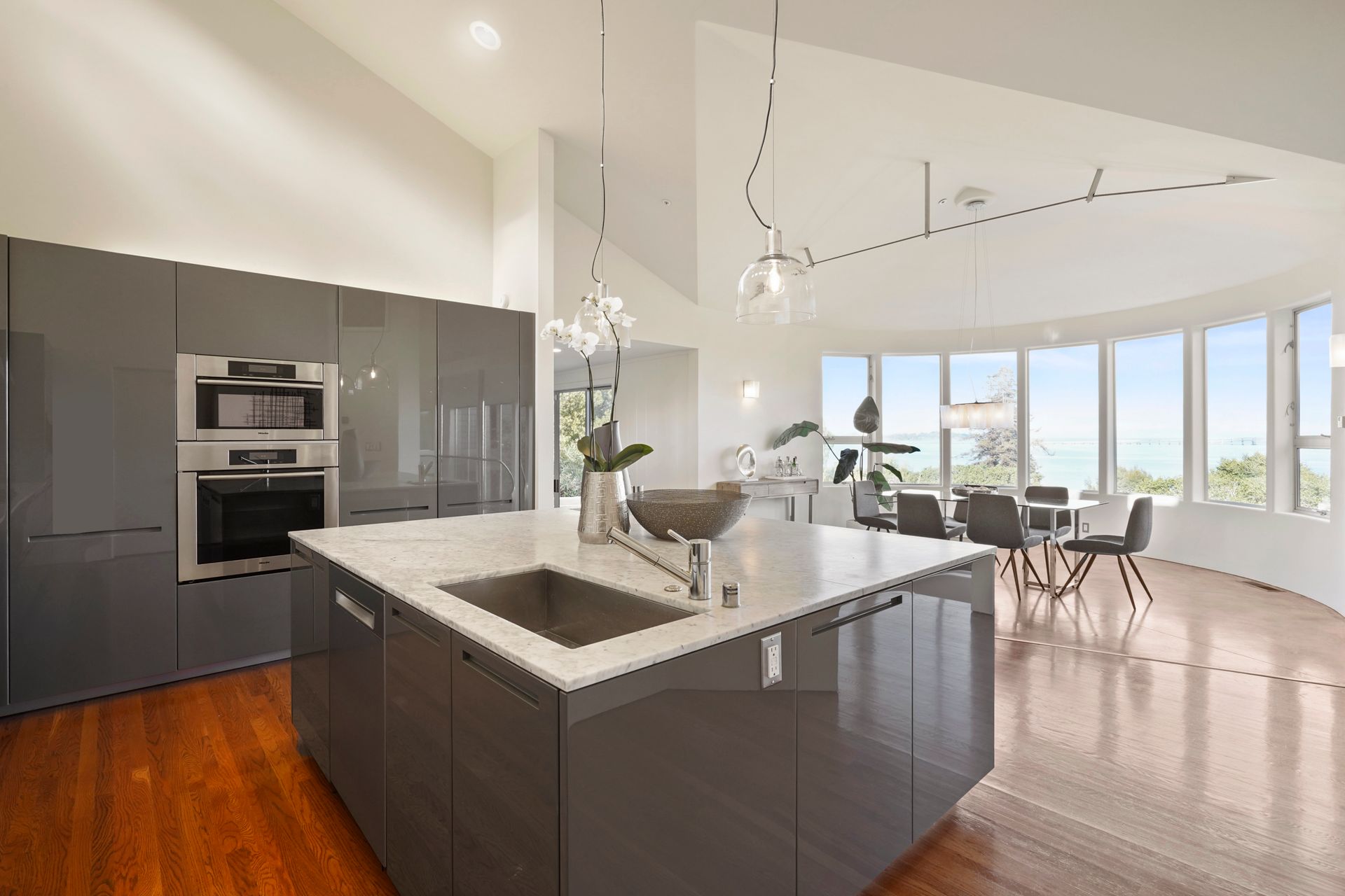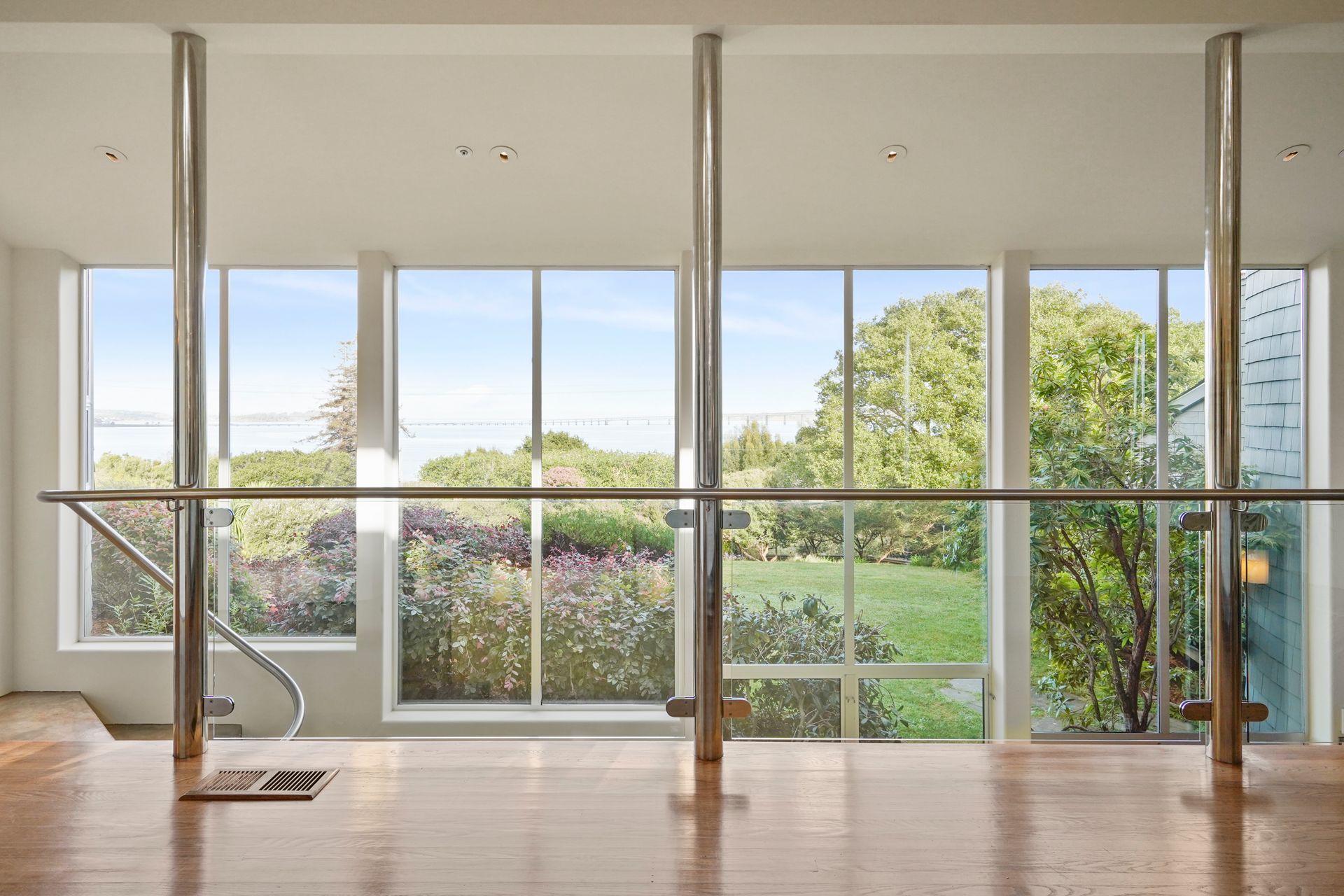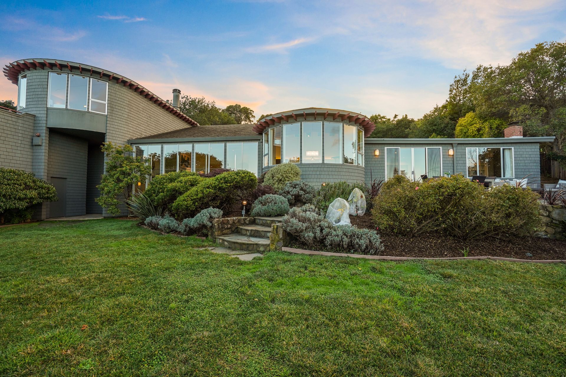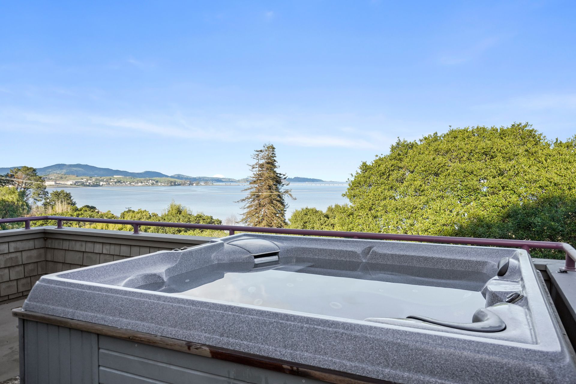 4925 Paradise Drive is a stunning contemporary home with the main living spaces featuring an open floor plan and vaulted ceilings. Multiple large windows offer extensive views of the bay and East Bay hills from the primary bedroom, living room and dining room. The large open kitchen features beautiful cabinetry and high-end appliances. The generous home office is large enough for two to easily share. The family room opens onto a patio overlooking a lawn, garden, and views. Property is nearly three-quarters of an acre, offering plenty of outdoor space and privacy.