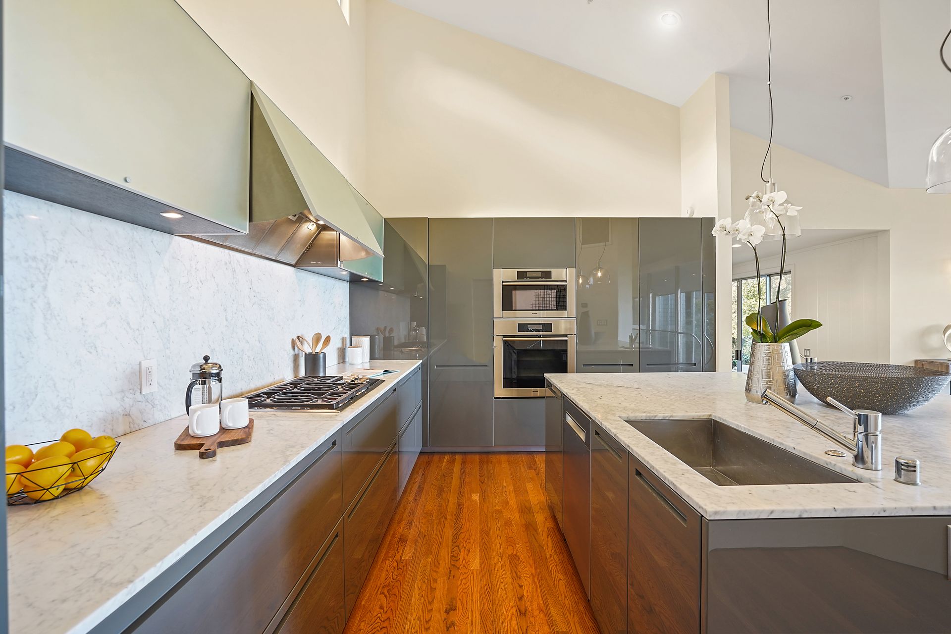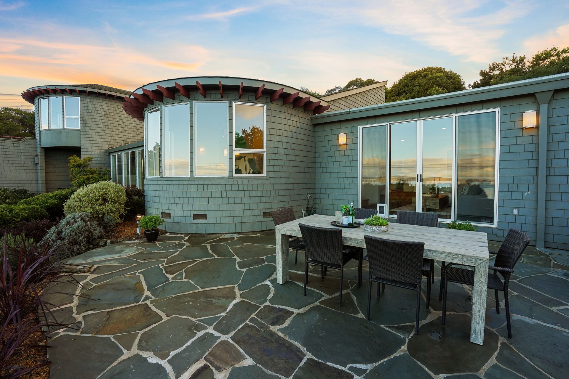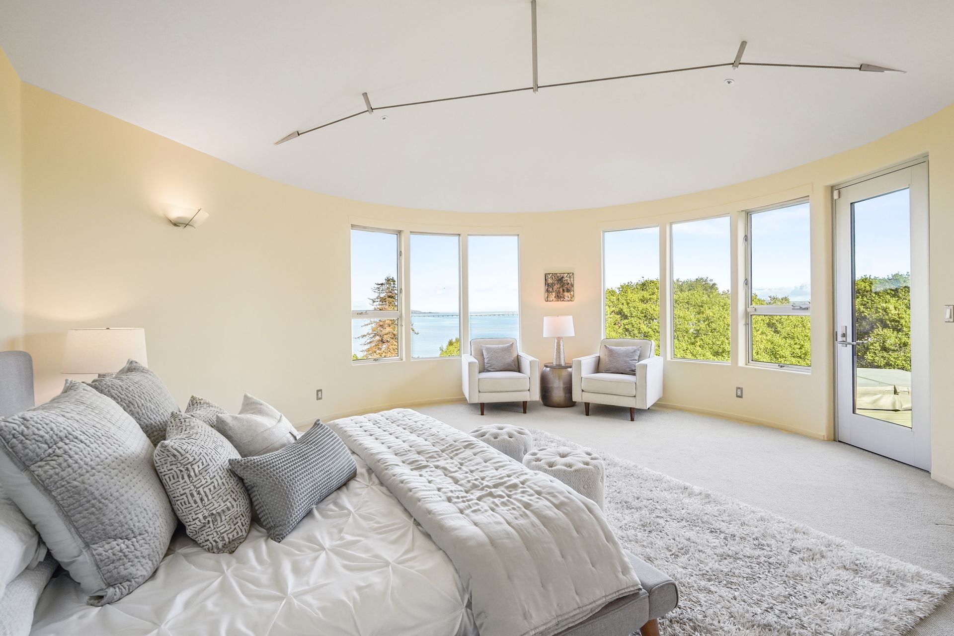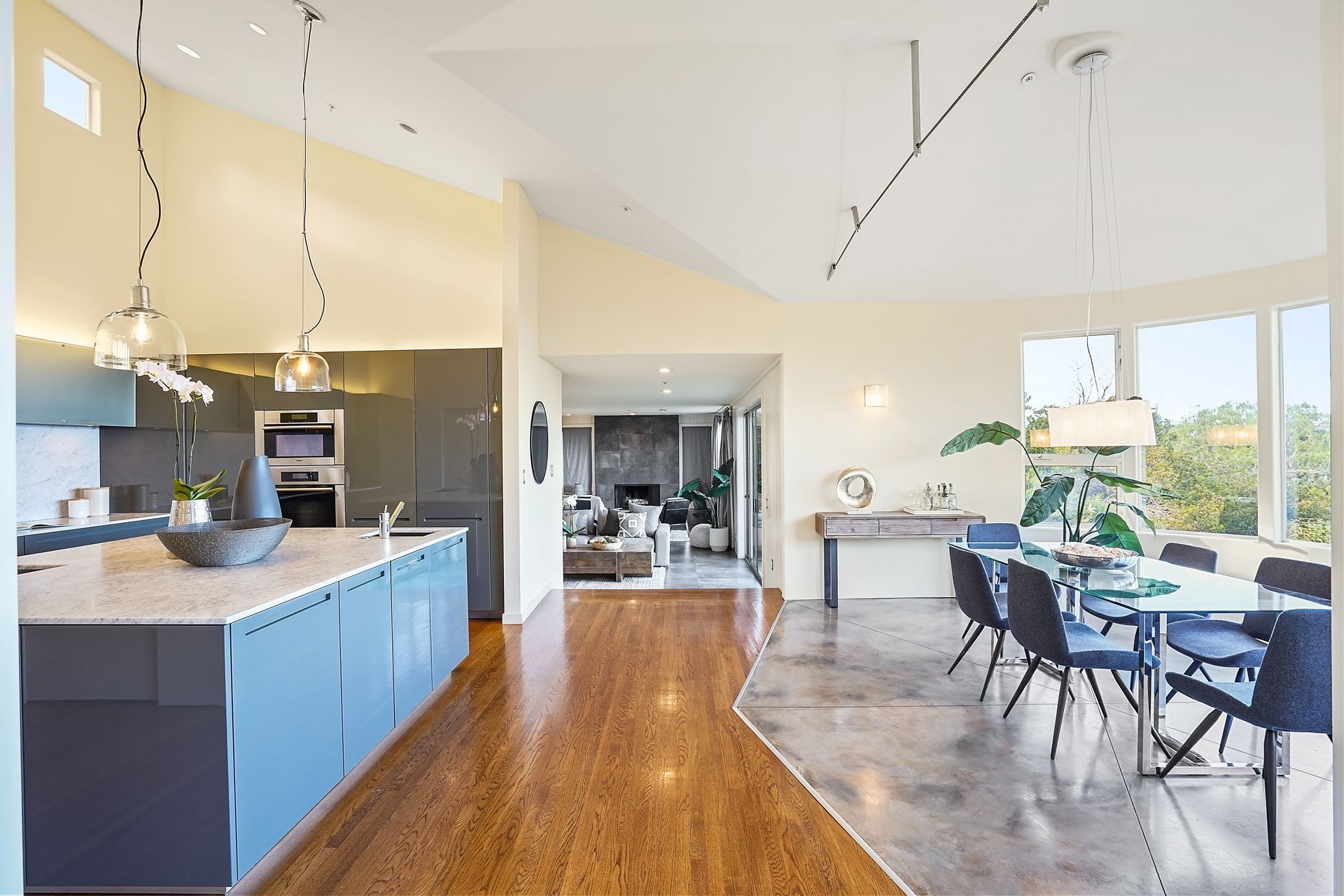 4925 Paradise Drive is a stunning contemporary home with the main living spaces featuring an open floor plan and vaulted ceilings. Multiple large windows offer extensive views of the bay and East Bay hills from the primary bedroom, living room and dining room. The large open kitchen features beautiful cabinetry and high-end appliances. The generous home office is large enough for two to easily share. The family room opens onto a patio overlooking a lawn, garden, and views. Property is nearly three-quarters of an acre, offering plenty of outdoor space and privacy.