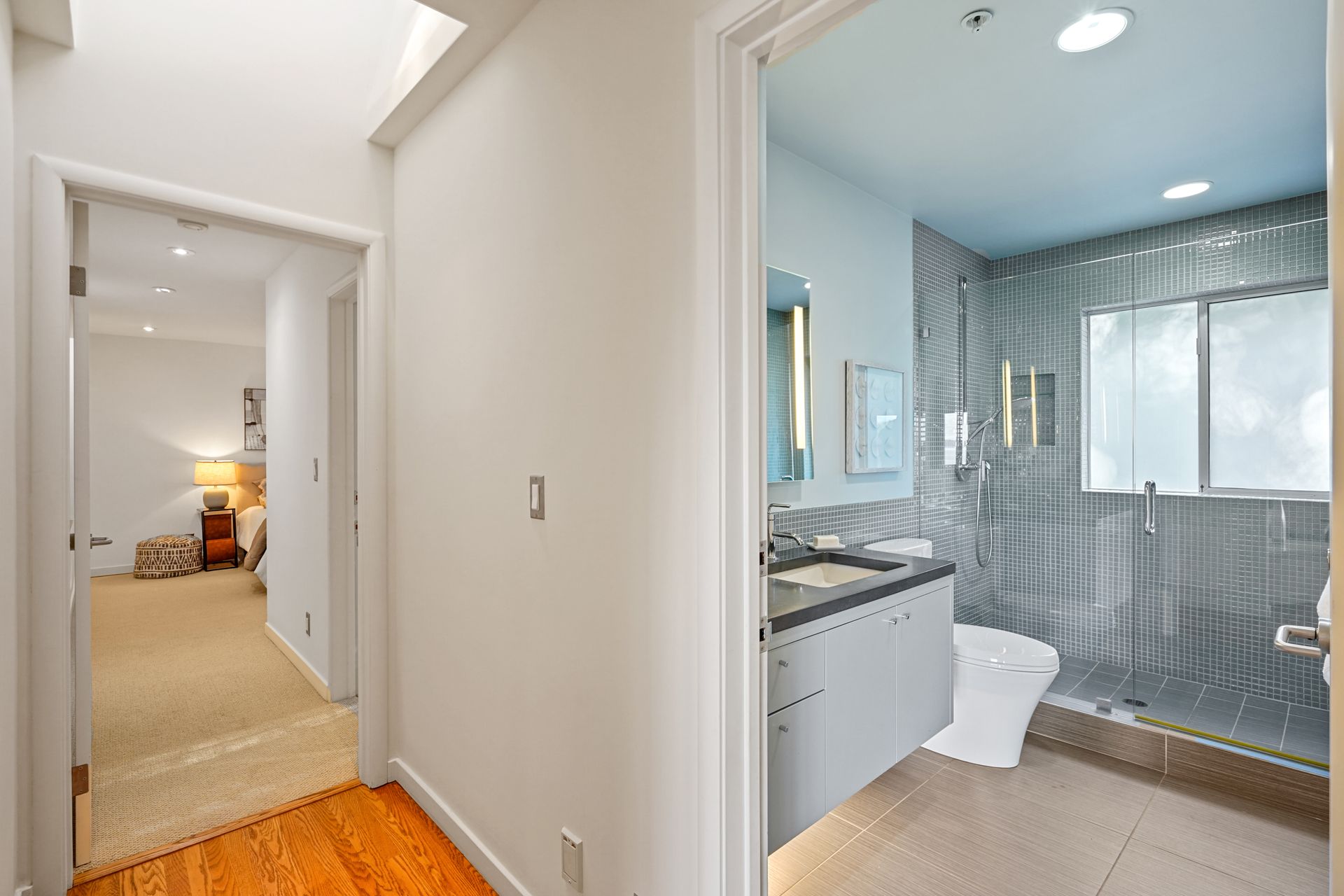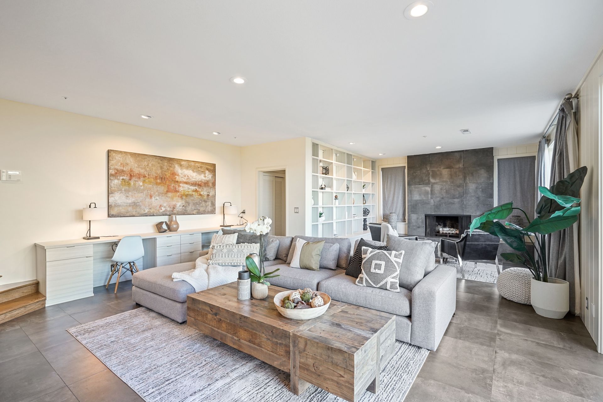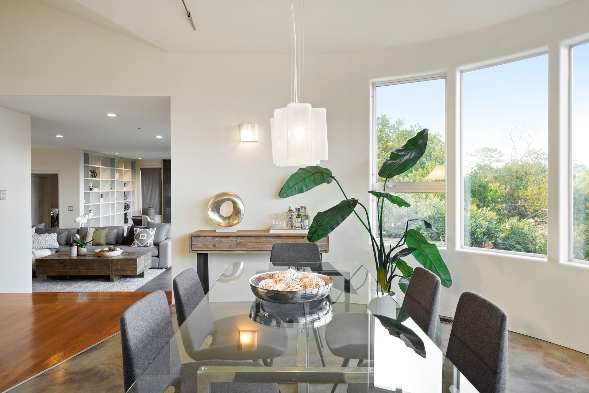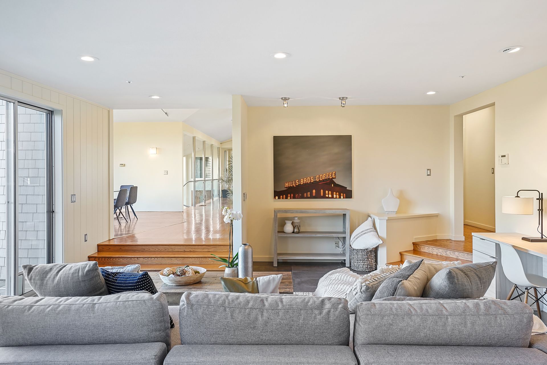 4925 Paradise Drive is a stunning contemporary home with the main living spaces featuring an open floor plan and vaulted ceilings. Multiple large windows offer extensive views of the bay and East Bay hills from the primary bedroom, living room and dining room. The large open kitchen features beautiful cabinetry and high-end appliances. The generous home office is large enough for two to easily share. The family room opens onto a patio overlooking a lawn, garden, and views. Property is nearly three-quarters of an acre, offering plenty of outdoor space and privacy.