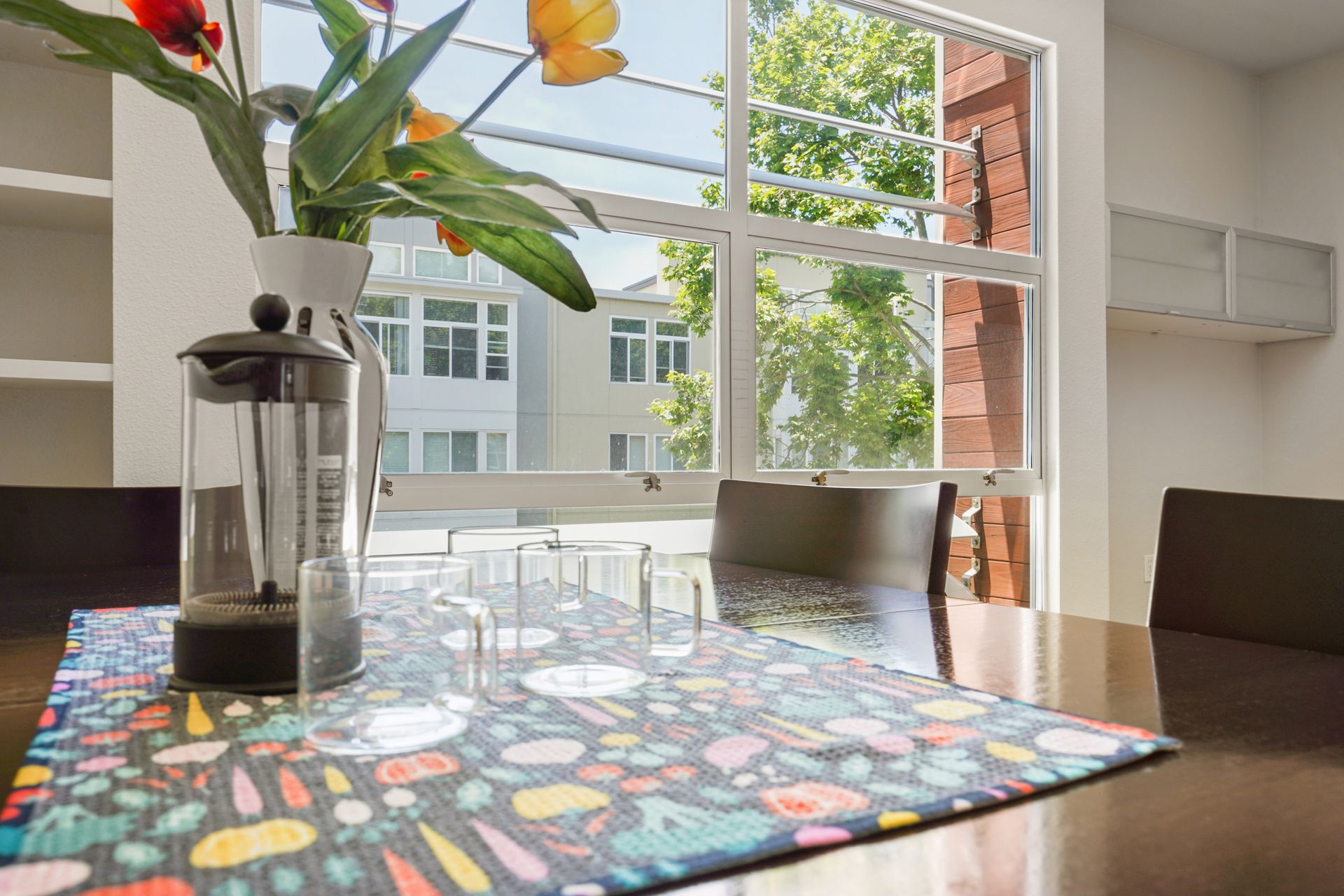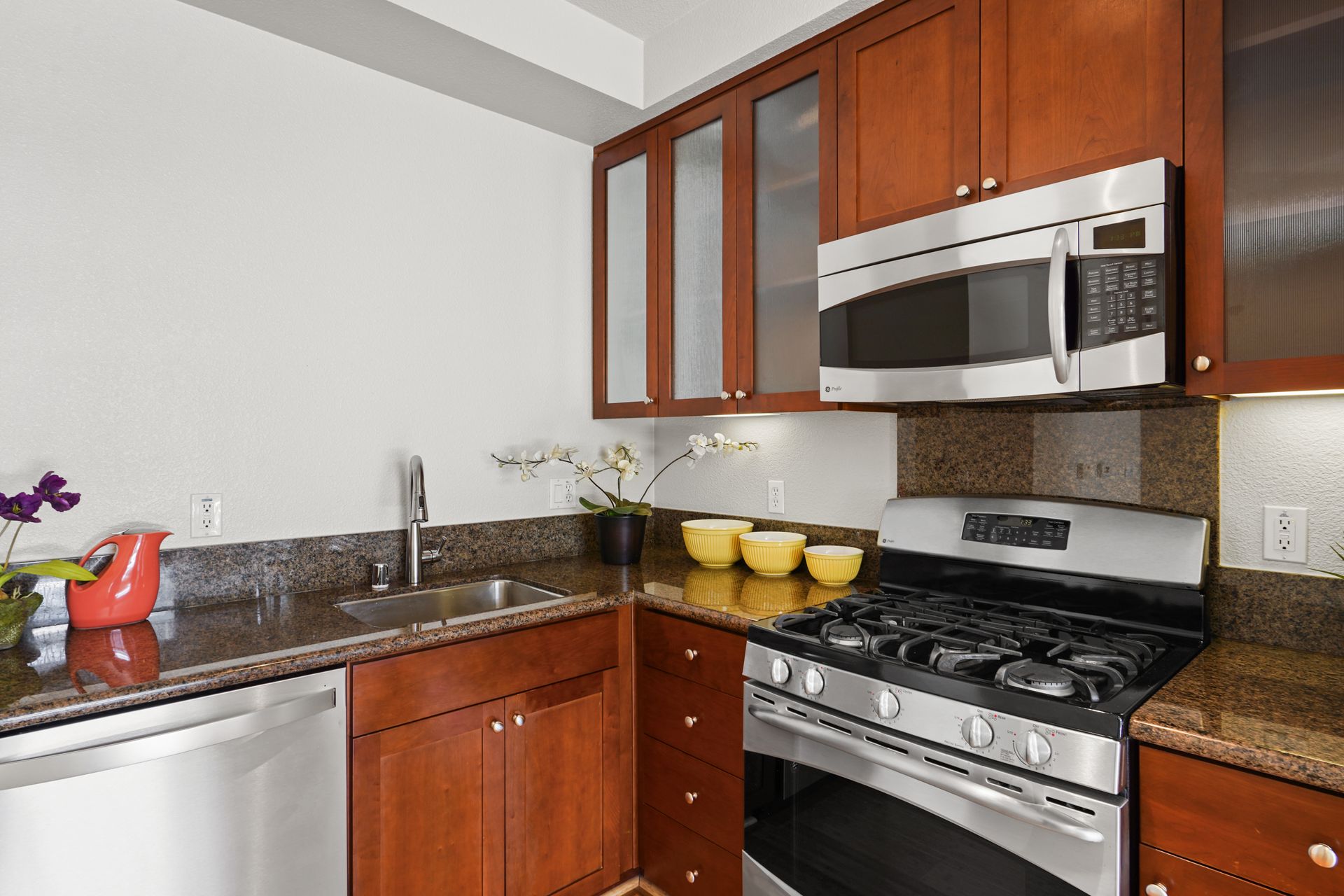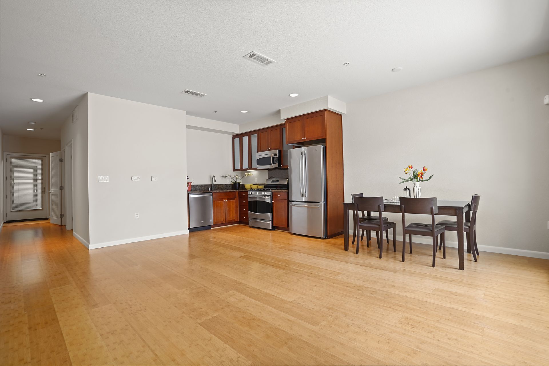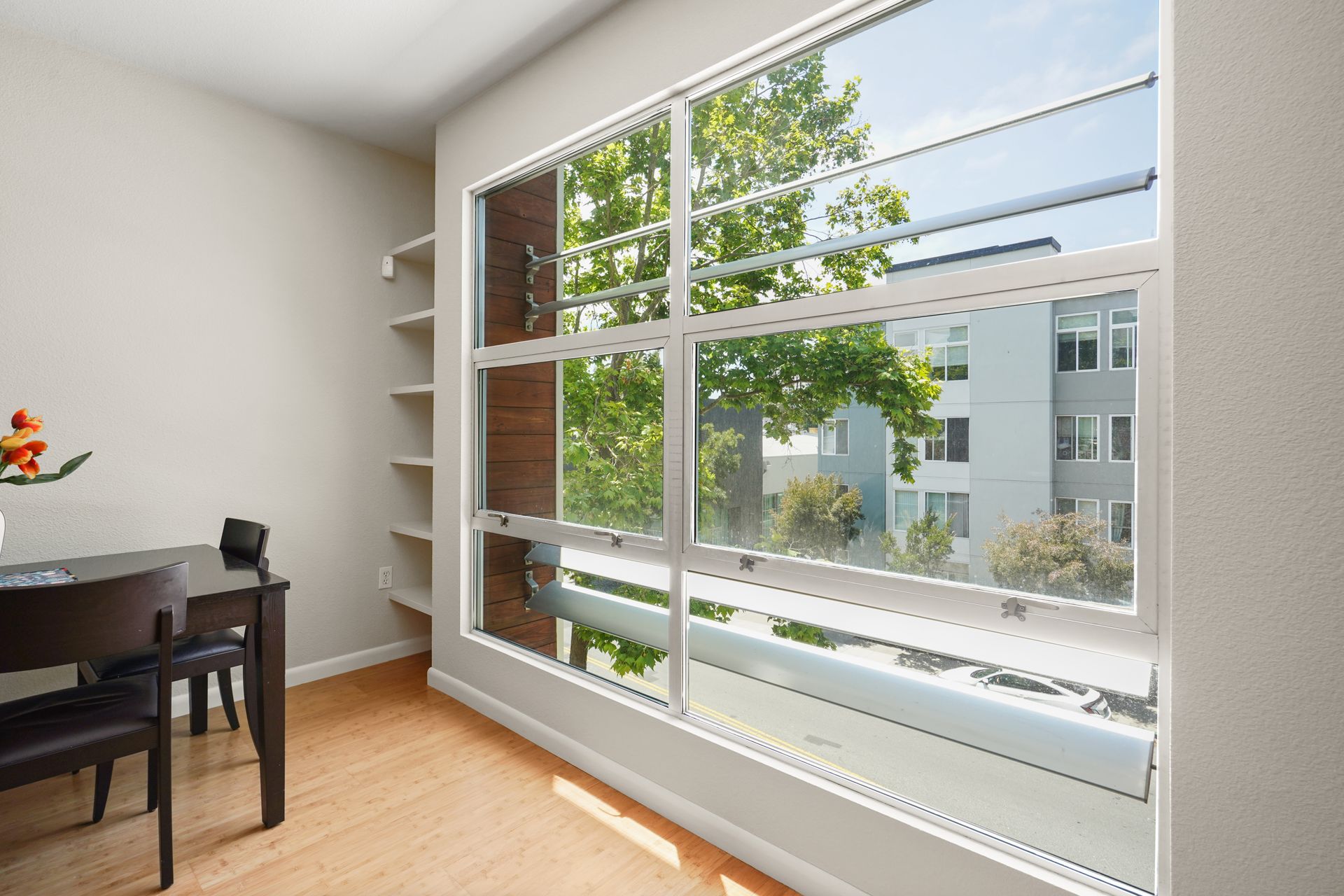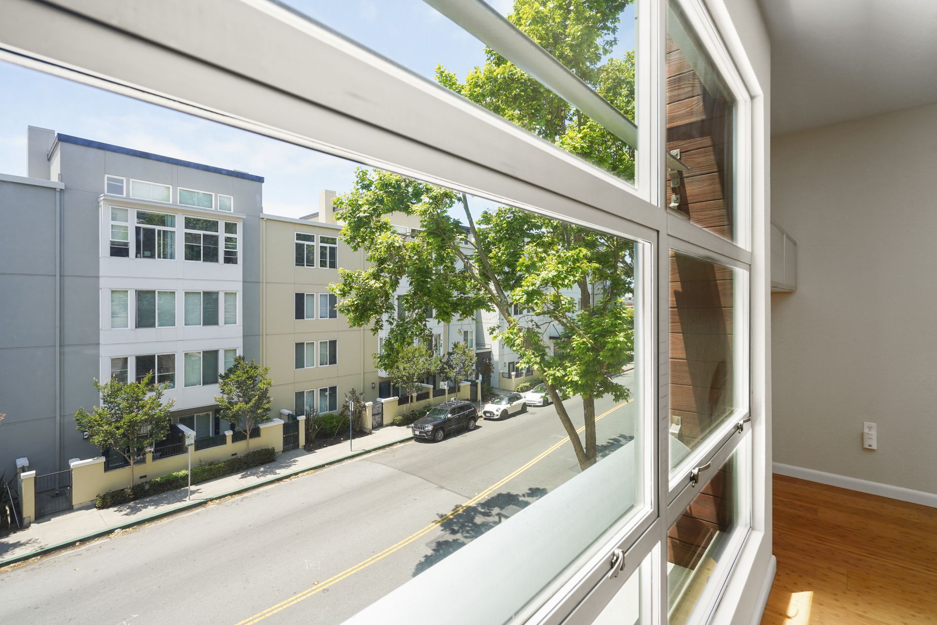 Welcome to this bright and sunny, modern Below Market Rate (BMR) condo in the desirable Glashaus building in the heart of Emeryville built in 2008. Tall, west-facing windows bathe the open floor plan living/kitchen area with light, featuring beautiful bamboo floors, cherry wood-stained cabinets, granite counters and stainless steel appliances. This unit has dual-pane windows, A/C, a full-sized washer/dryer and a walk-in bedroom closet. There is secured garage parking. Nearby are restaurants, cafes, a bakery, noodle shops, greenway, Public Market, Berkeley Bowl West and Trader Joes. A free shuttle to BART/Amtrak/Berkeley Bowl/throughout Emeryville stops in front. Also enjoy easy access to the freeway/AC Transit/SF Shuttle.