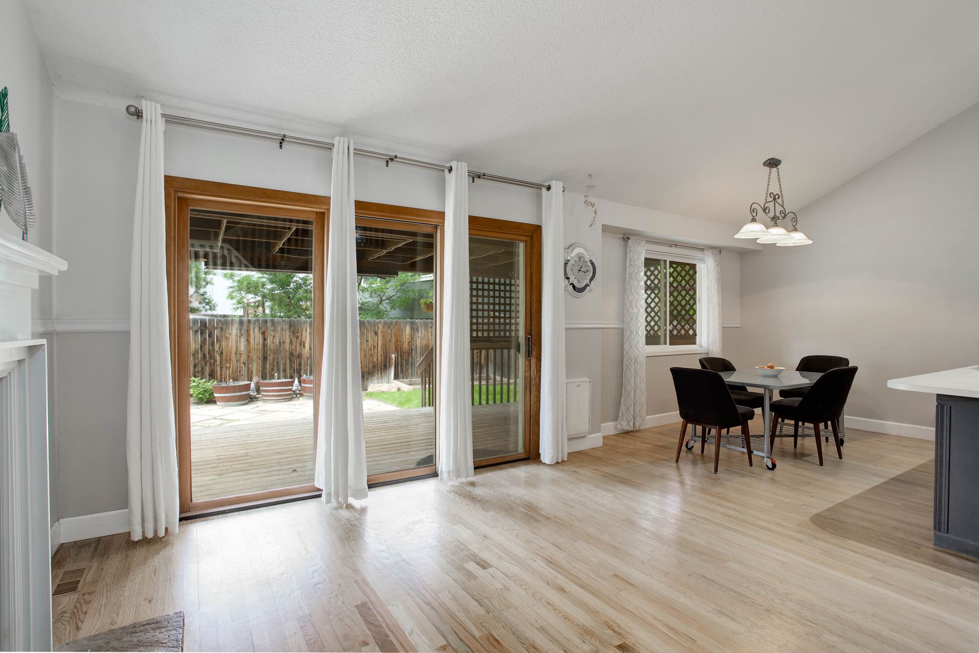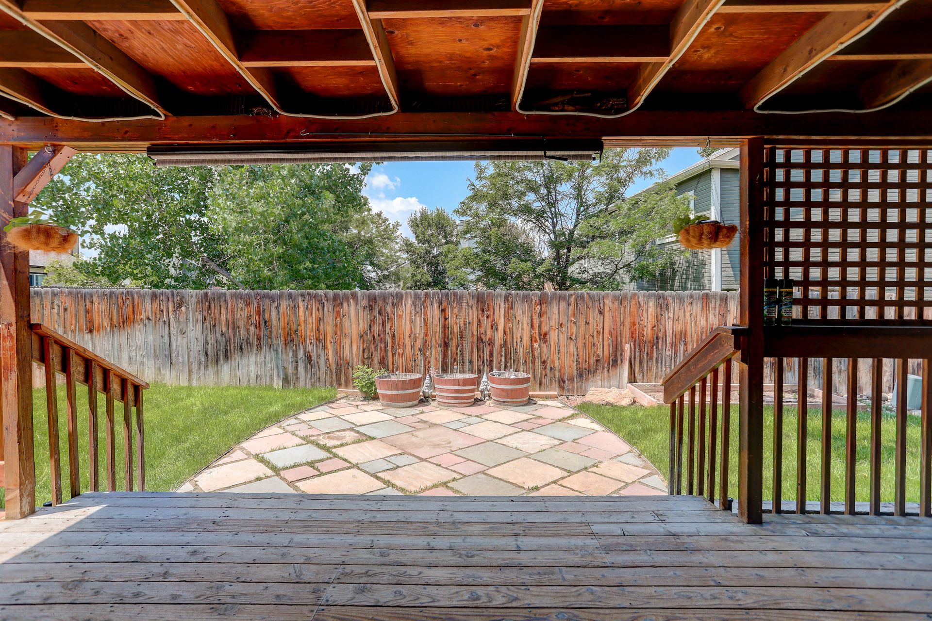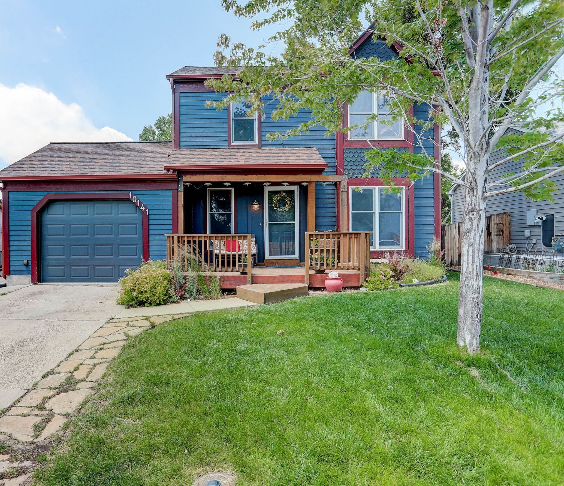 Welcome home to this well-maintained, updated four bed, three bath home in Lakeview Landing that is sure to excite! It boasts one of the largest floor plans in the neighborhood at over 2,200 square feet of living space. As you enter, you are greeted with a lovely, covered porch, hardwood floors, a main floor bedroom/office, an ample-sized living room, a full-sized updated bath with granite counter, new interior paint, an open floor plan, a cozy sitting area and a wood burning fireplace that looks out onto the expansive covered deck perfect for entertaining with guests. The soaring vaulted ceiling and wall of windows and sliding glass doors add to the ambiance of the home and allow plenty of natural light. The kitchen features a large peninsula counter, stainless steel appliances and a water purifier. Upstairs features two nicely sized bedrooms and a second bath. The lower level boasts the primary bedroom where you'll find an additional living area for gathering, a bonus closet with brand new barn doors, a large primary suite and a substantial walk-in closet displaying plenty of shelving and compartments, some with glass doors, to keep shoes and clothing on view—not to mention within easy reach. Perfect for all your collections of clothing and shoes and a primary en suite. The fully fenced-in backyard is the ideal setting for your fur babies; There is a shed for extra storage and a cement slab for a hot tub; electrical has already been set up with a panel. Sprinkler systems installed in front and backyard. A one-car attached garage and plenty of additional parking for an RV or camper! You'll enjoy Standley Lake's short five-minute stroll and nearby Jefferson County open space trails and Westminster Dog Park amenities. Downtown Denver and Boulder are an easy commute via Highway 36 and Highway 93. The location is convenient to Flat Irons Mall, Westminster Promenade and the up-and-coming downtown Westminster. The mountains are nearby for when they call.
