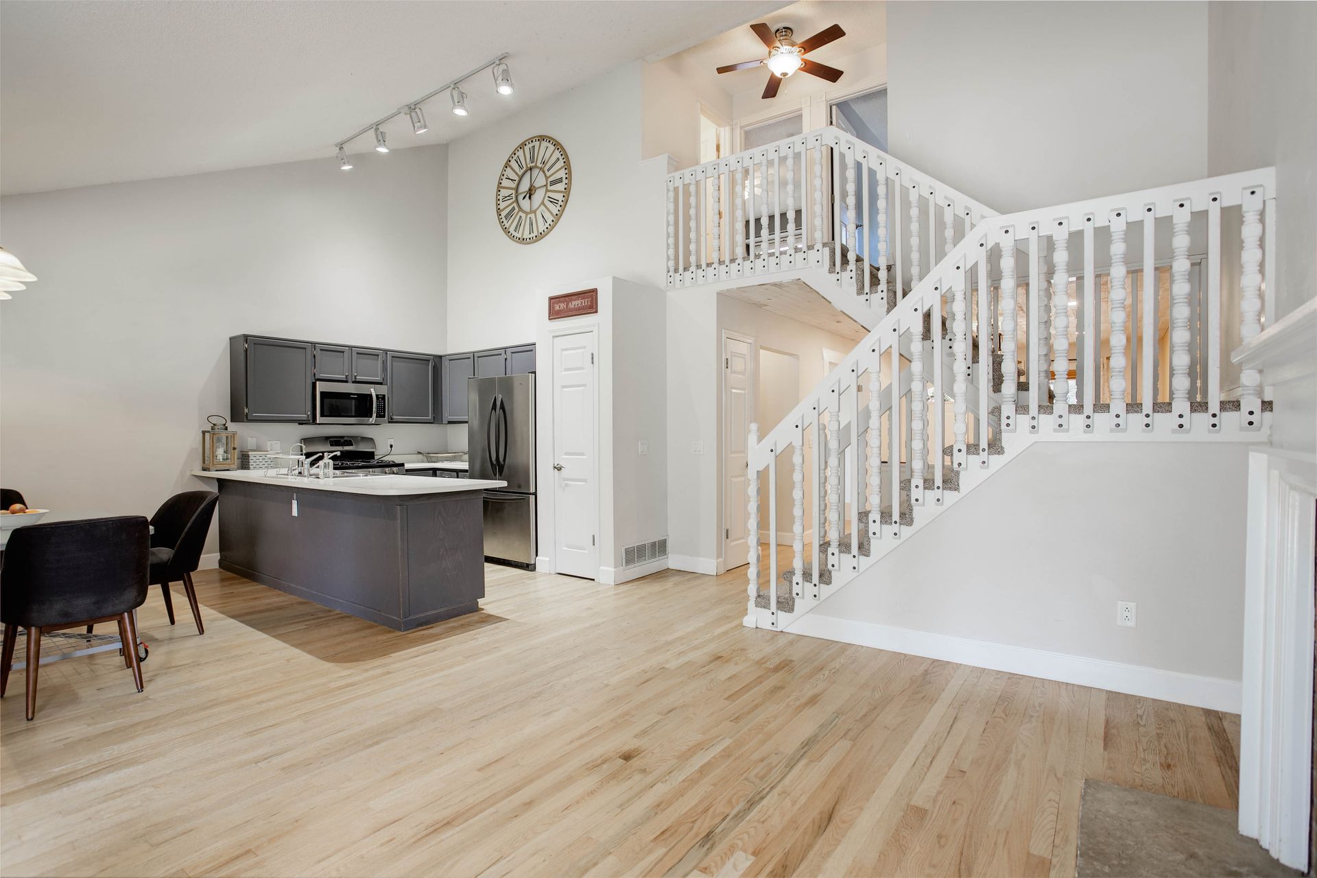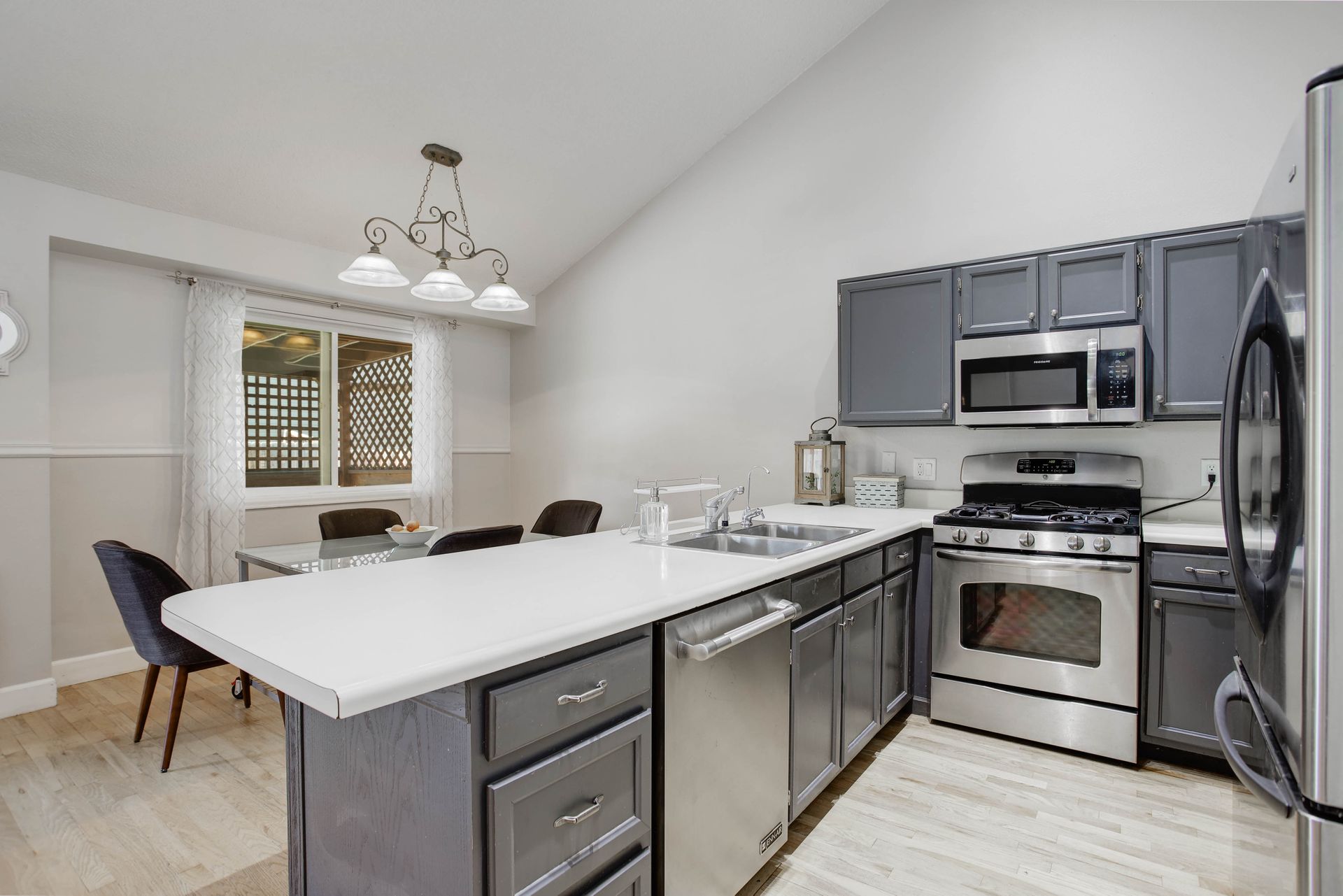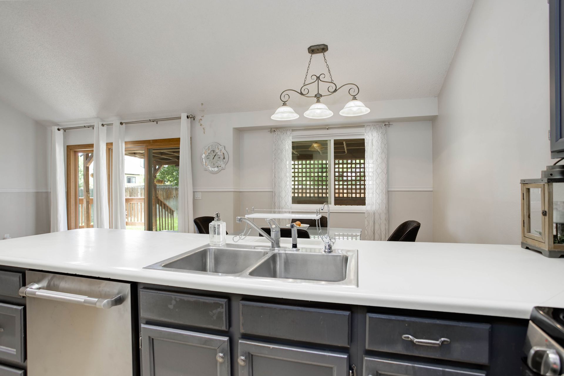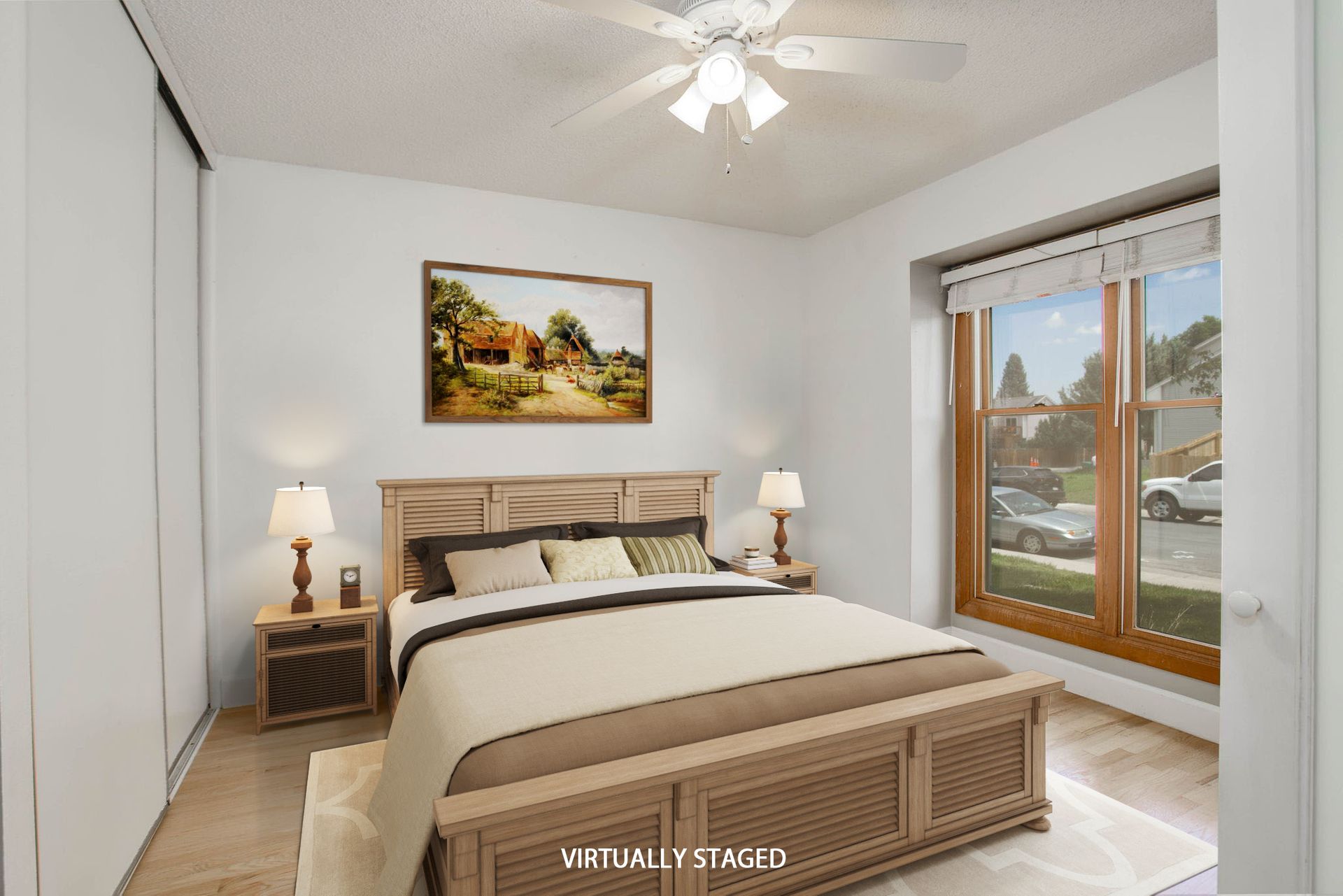 Welcome home to this well-maintained, updated four bed, three bath home in Lakeview Landing that is sure to excite! It boasts one of the largest floor plans in the neighborhood at over 2,200 square feet of living space. As you enter, you are greeted with a lovely, covered porch, hardwood floors, a main floor bedroom/office, an ample-sized living room, a full-sized updated bath with granite counter, new interior paint, an open floor plan, a cozy sitting area and a wood burning fireplace that looks out onto the expansive covered deck perfect for entertaining with guests. The soaring vaulted ceiling and wall of windows and sliding glass doors add to the ambiance of the home and allow plenty of natural light. The kitchen features a large peninsula counter, stainless steel appliances and a water purifier. Upstairs features two nicely sized bedrooms and a second bath. The lower level boasts the primary bedroom where you'll find an additional living area for gathering, a bonus closet with brand new barn doors, a large primary suite and a substantial walk-in closet displaying plenty of shelving and compartments, some with glass doors, to keep shoes and clothing on view—not to mention within easy reach. Perfect for all your collections of clothing and shoes and a primary en suite. The fully fenced-in backyard is the ideal setting for your fur babies; There is a shed for extra storage and a cement slab for a hot tub; electrical has already been set up with a panel. Sprinkler systems installed in front and backyard. A one-car attached garage and plenty of additional parking for an RV or camper! You'll enjoy Standley Lake's short five-minute stroll and nearby Jefferson County open space trails and Westminster Dog Park amenities. Downtown Denver and Boulder are an easy commute via Highway 36 and Highway 93. The location is convenient to Flat Irons Mall, Westminster Promenade and the up-and-coming downtown Westminster. The mountains are nearby for when they call.