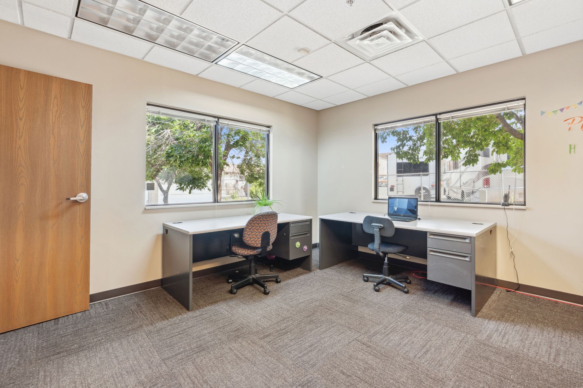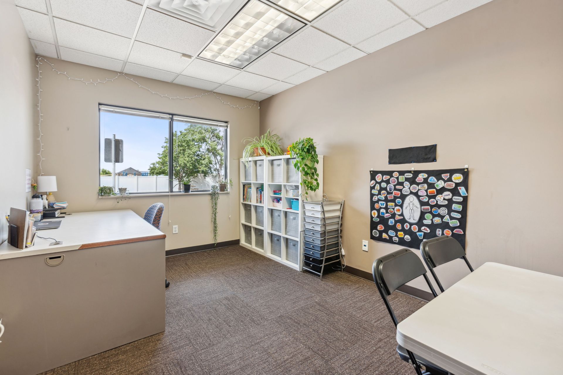 Discover an outstanding commercial property, currently operating as a therapy center, versatile enough to serve as premium office space for various businesses. This well-maintained building features approximately 35 standalone offices, two spacious conference rooms, a cozy break room and a secure server room. Additional amenities include a kitchenette, multiple storage rooms, paved parking and ramp access ensuring both convenience and accessibility. Fire sprinklers provide safety, while stunning foothills and mountain views create a serene work environment. The property has been maintained with general upkeep and updates such as painting, a new water heater, an installed outdoor shed, fencing, and a playground added to the acreage. It also boasts larger updates including two new AC units, HVAC software to control the facility, new carpet on the west side and a redone patient parking lot.
