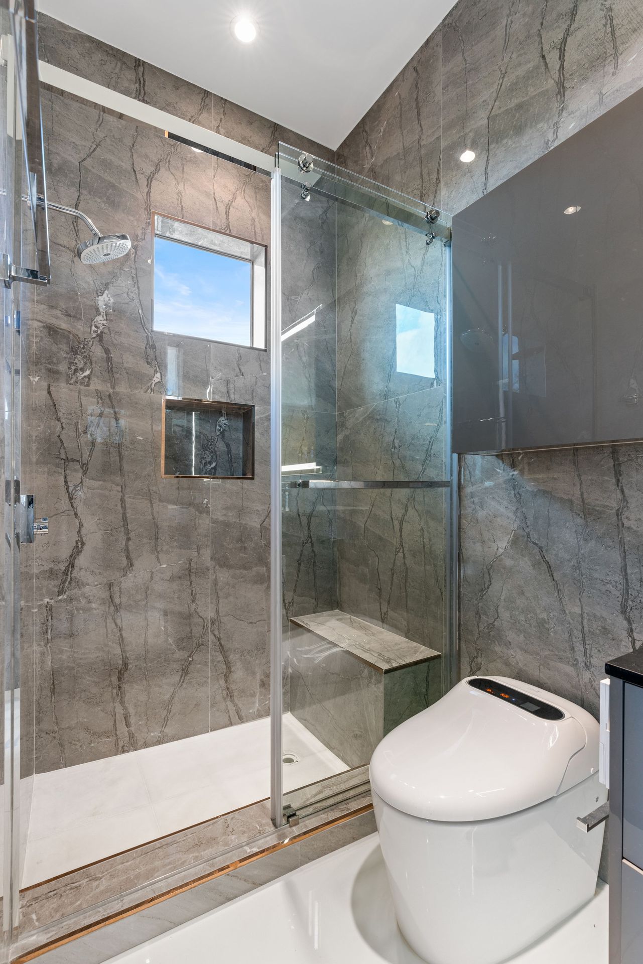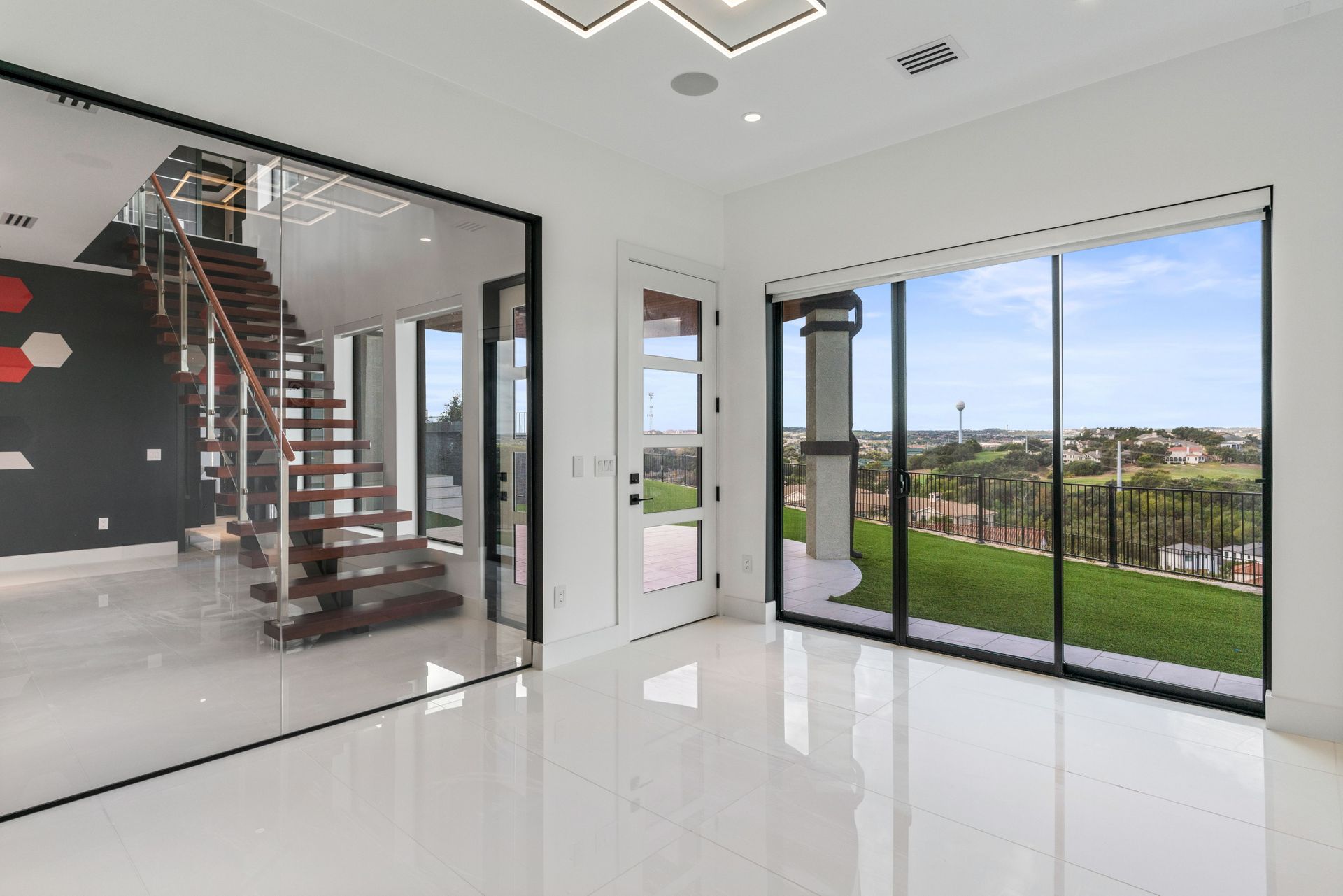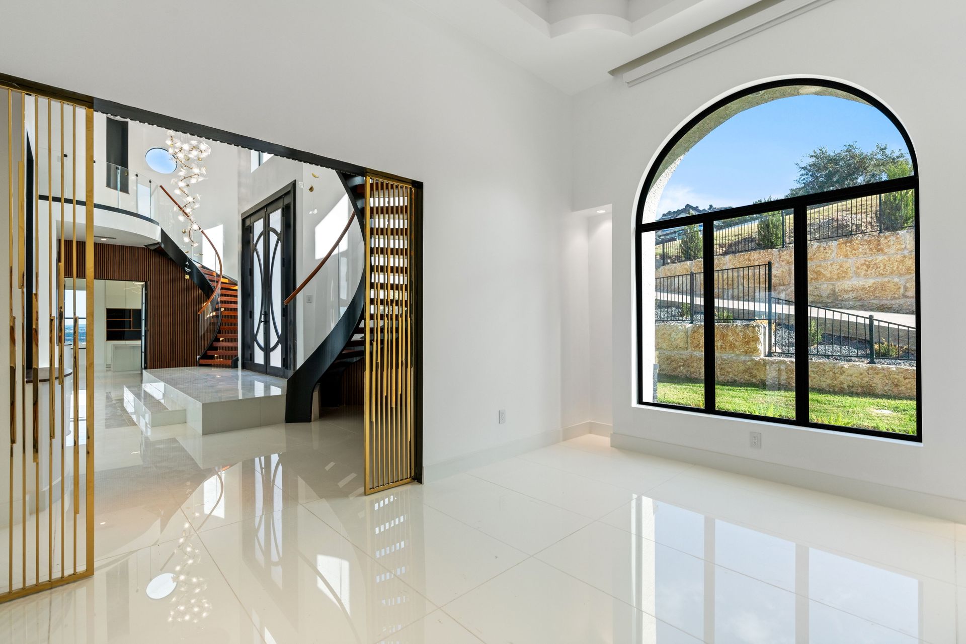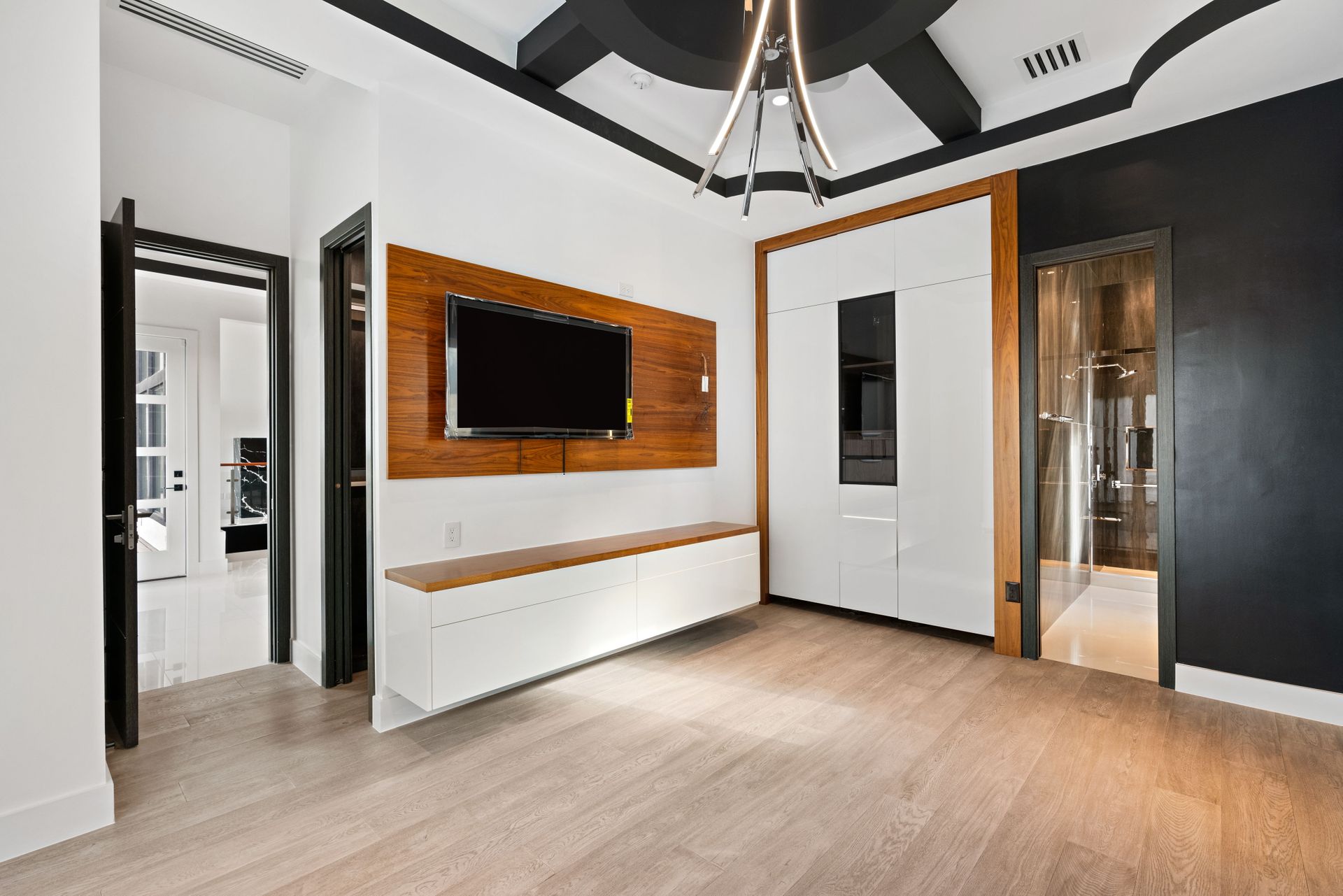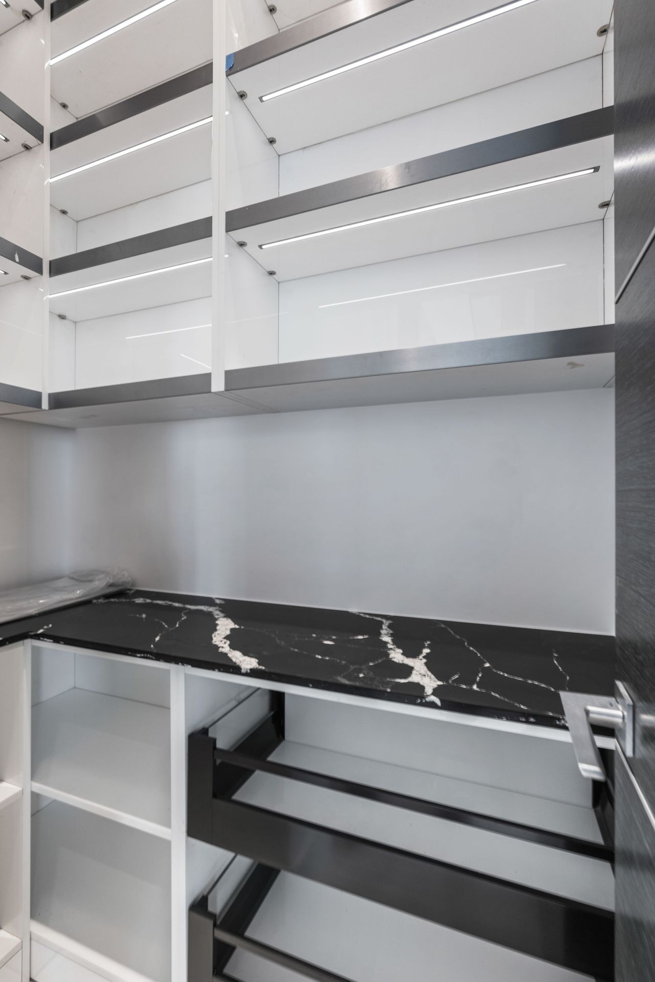 The home boasts custom built-in closets, maximizing organization and storage throughout the living areas. The use of Italian