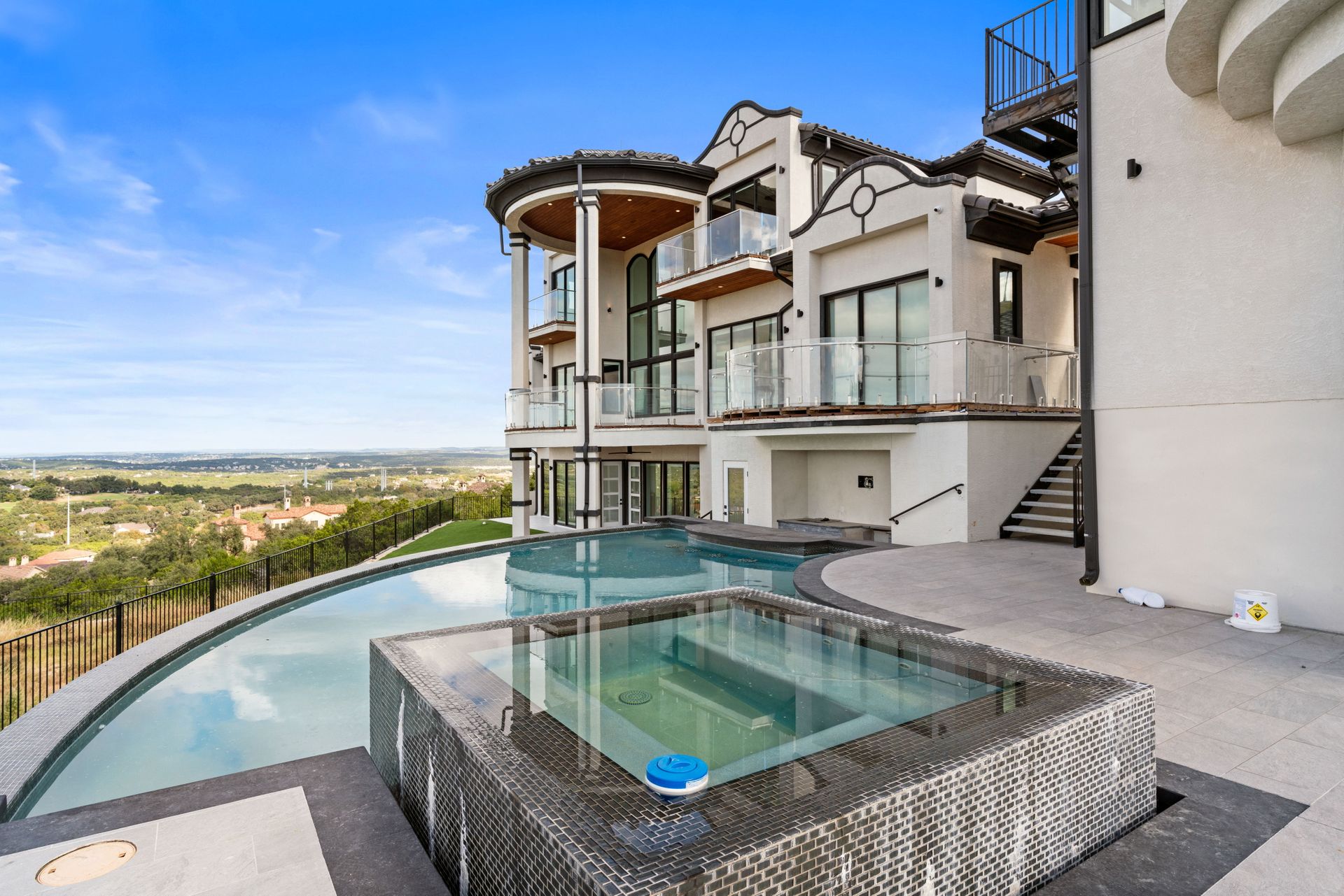 This palatial property features an infinity pool, providing a tranquil and luxurious outdoor experience. The on-site home gym