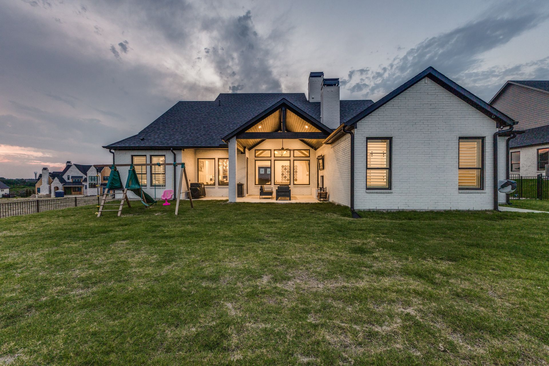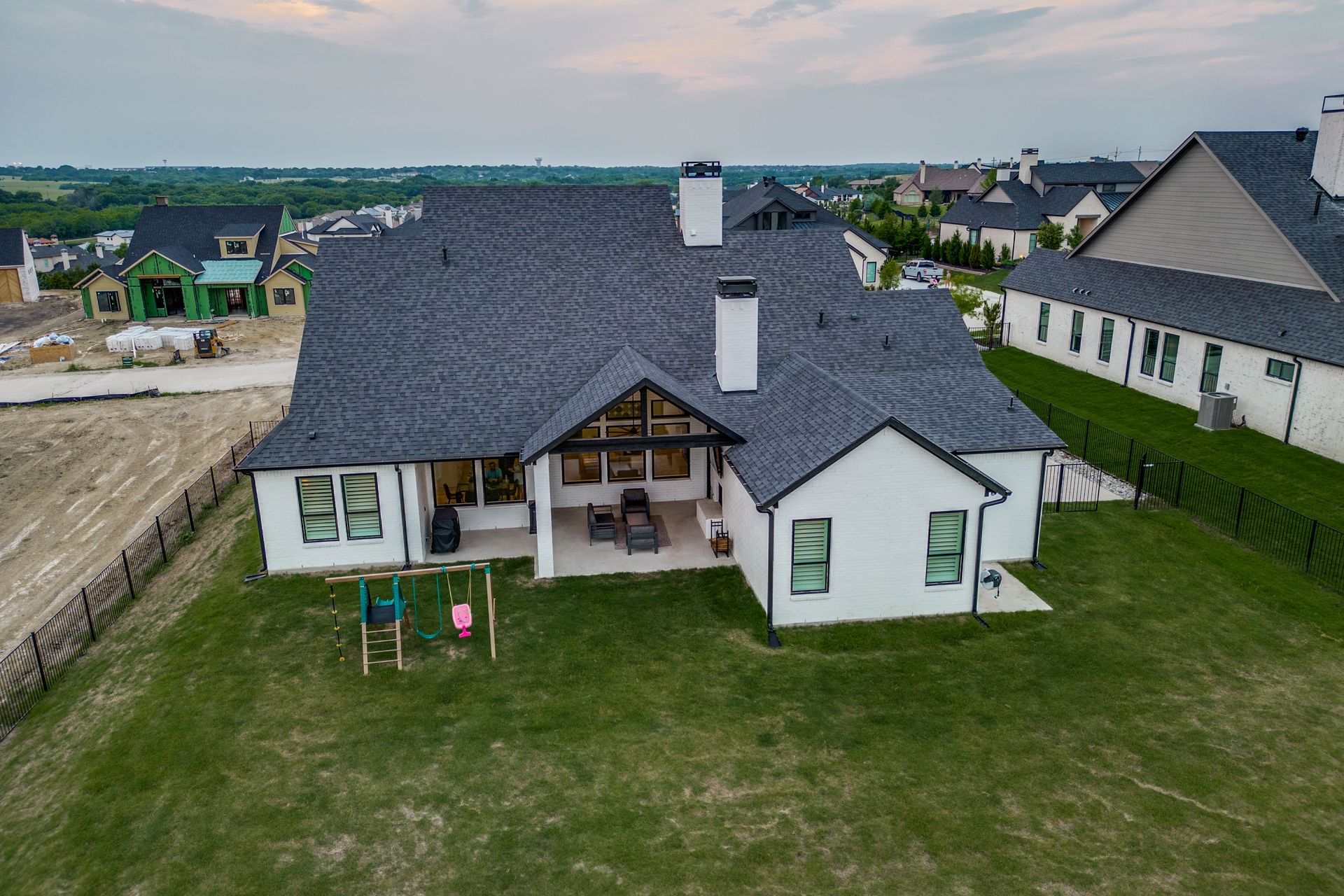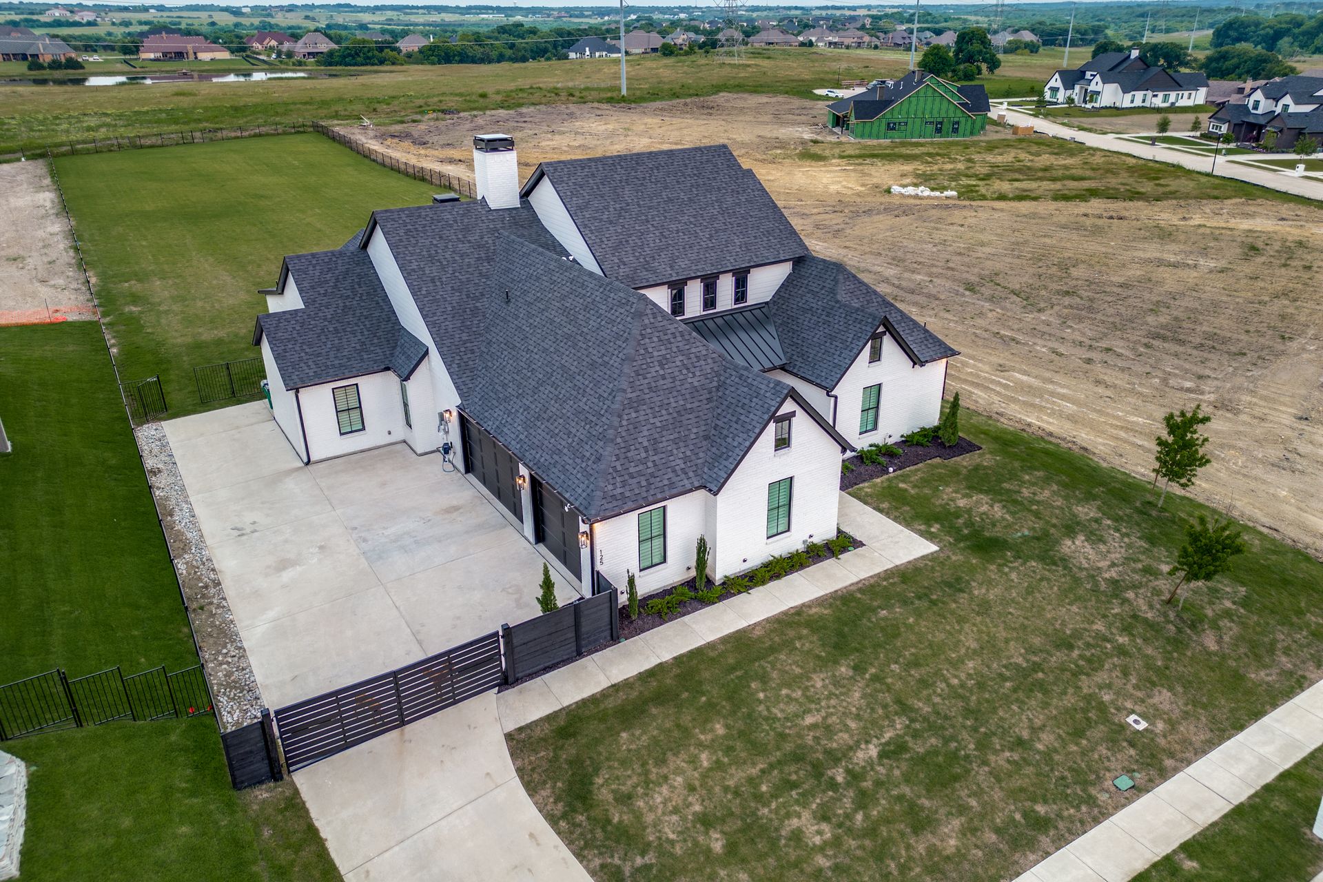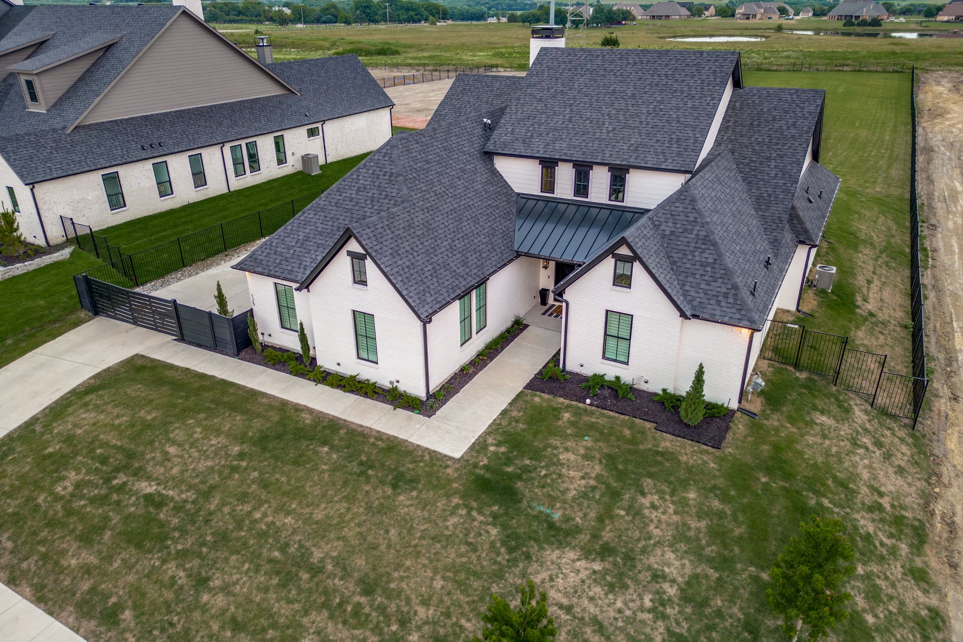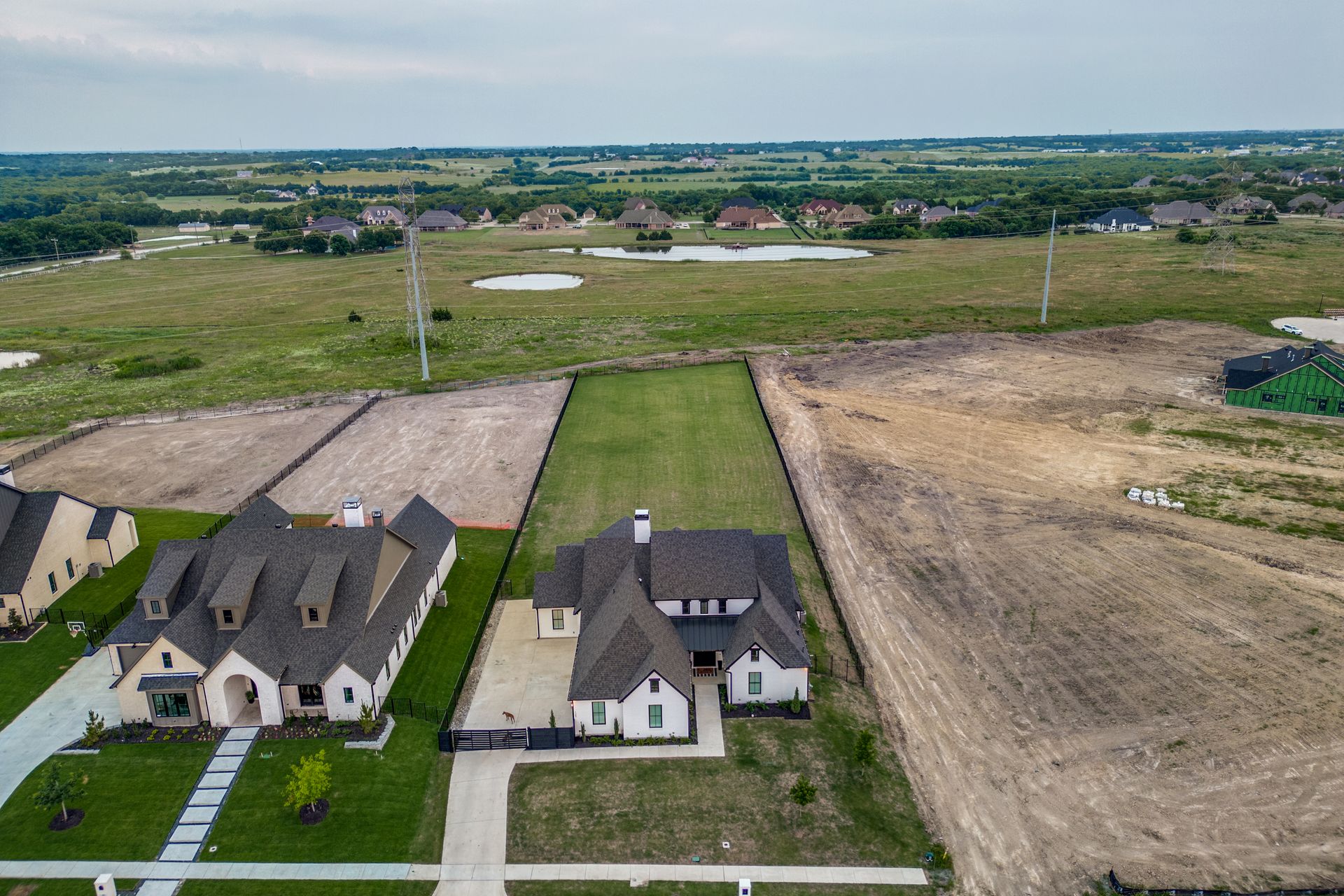 Don't wait to build when you can have this barely lived-in custom-built Scott Lewis Hill Country-inspired modern farmhouse that sits on nearly an acre at a breathtaking elevation in Stoneleigh, one of Heath's most prestigious neighborhoods. No detail is spared in this beauty from the movable secret door bookcase that leads to the primary closet and walk-in pantry door that hides behind custom cabinets to the outdoor shower with hot and cold faucets, perfect for a dog washing station. Designer finishes abound with custom textured walls, exquisite tilework, modern light fixtures, solid wood doors throughout this smart floor plan featuring four bedrooms four full baths and two adjoining flex spaces that could serve as additional bedrooms, a nursery, a study, or endless other options. Downsizing but need the extra space? Easily store all the extras and seasonal decor using the 44x66, 700lb capacity elevator lift that leads from the oversized garage to the fully decked 900 square foot climate-controlled spray foam insulated attic!