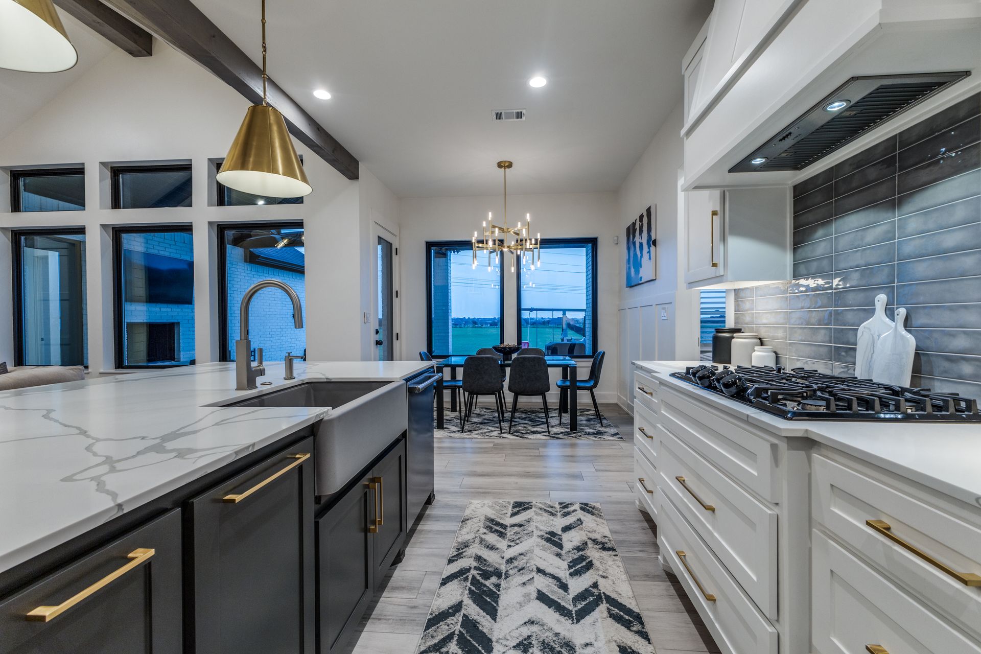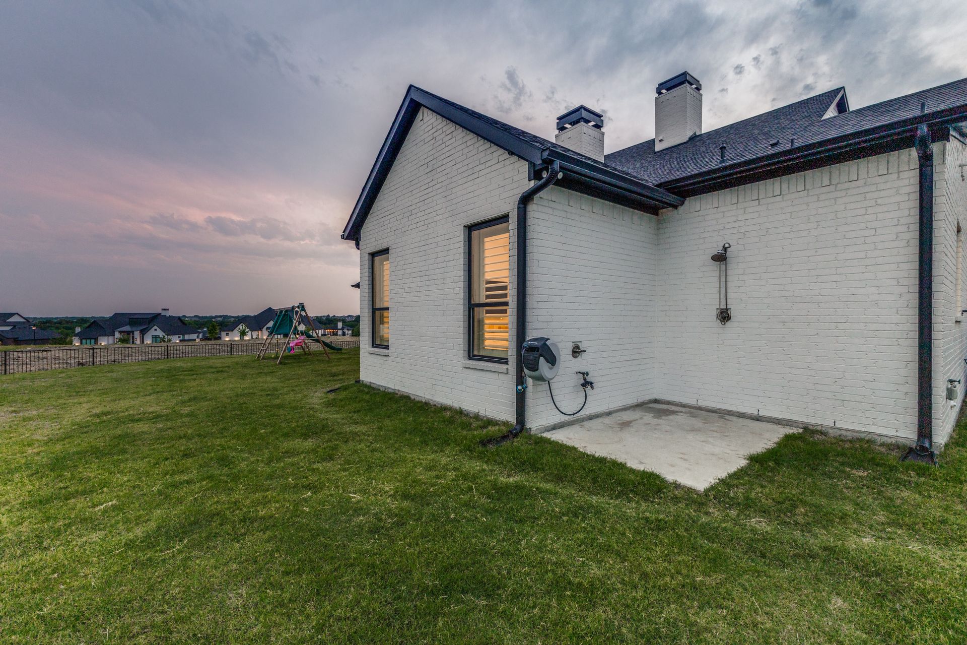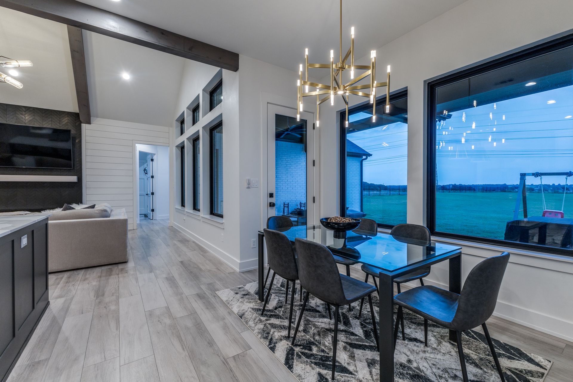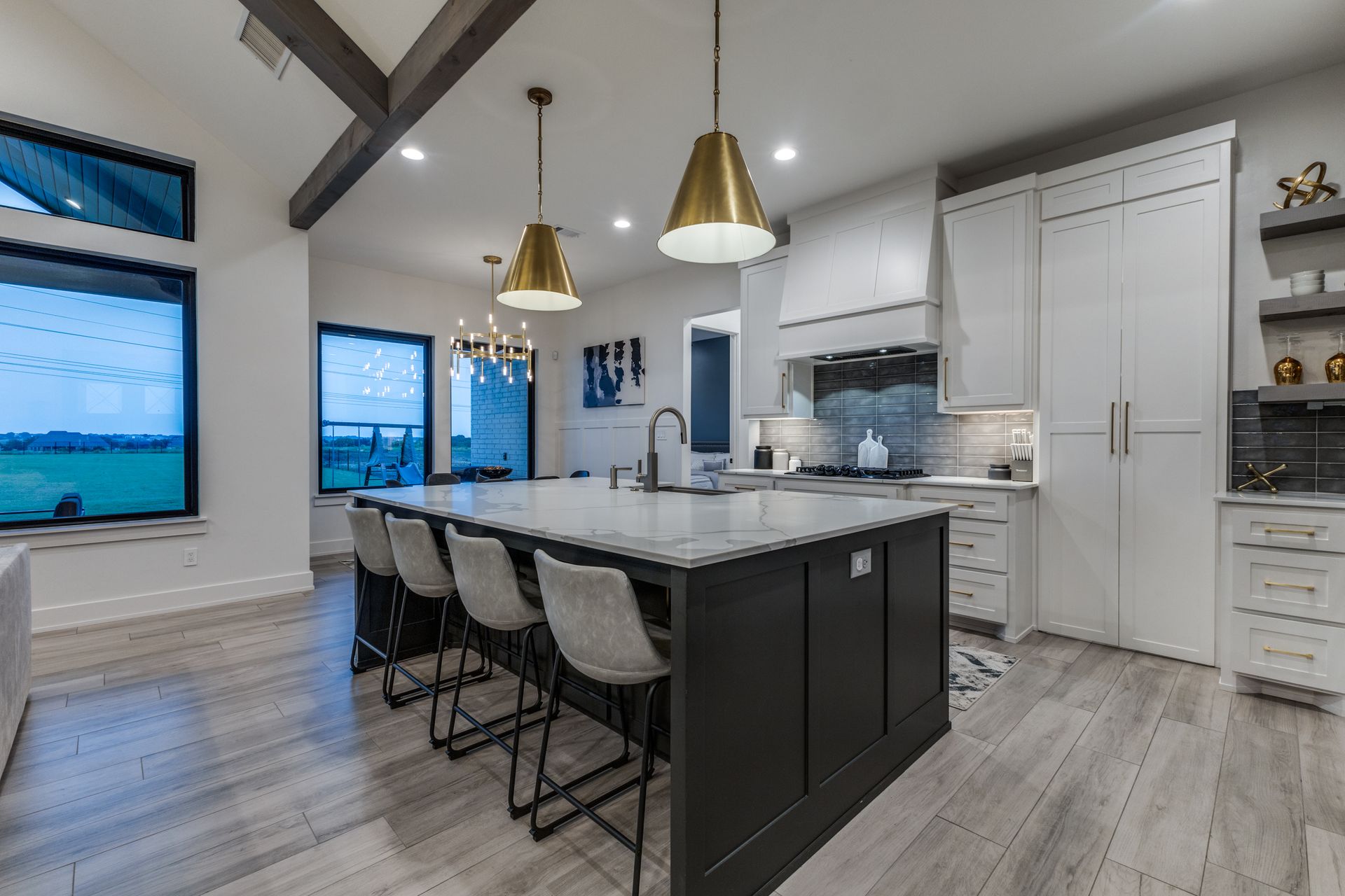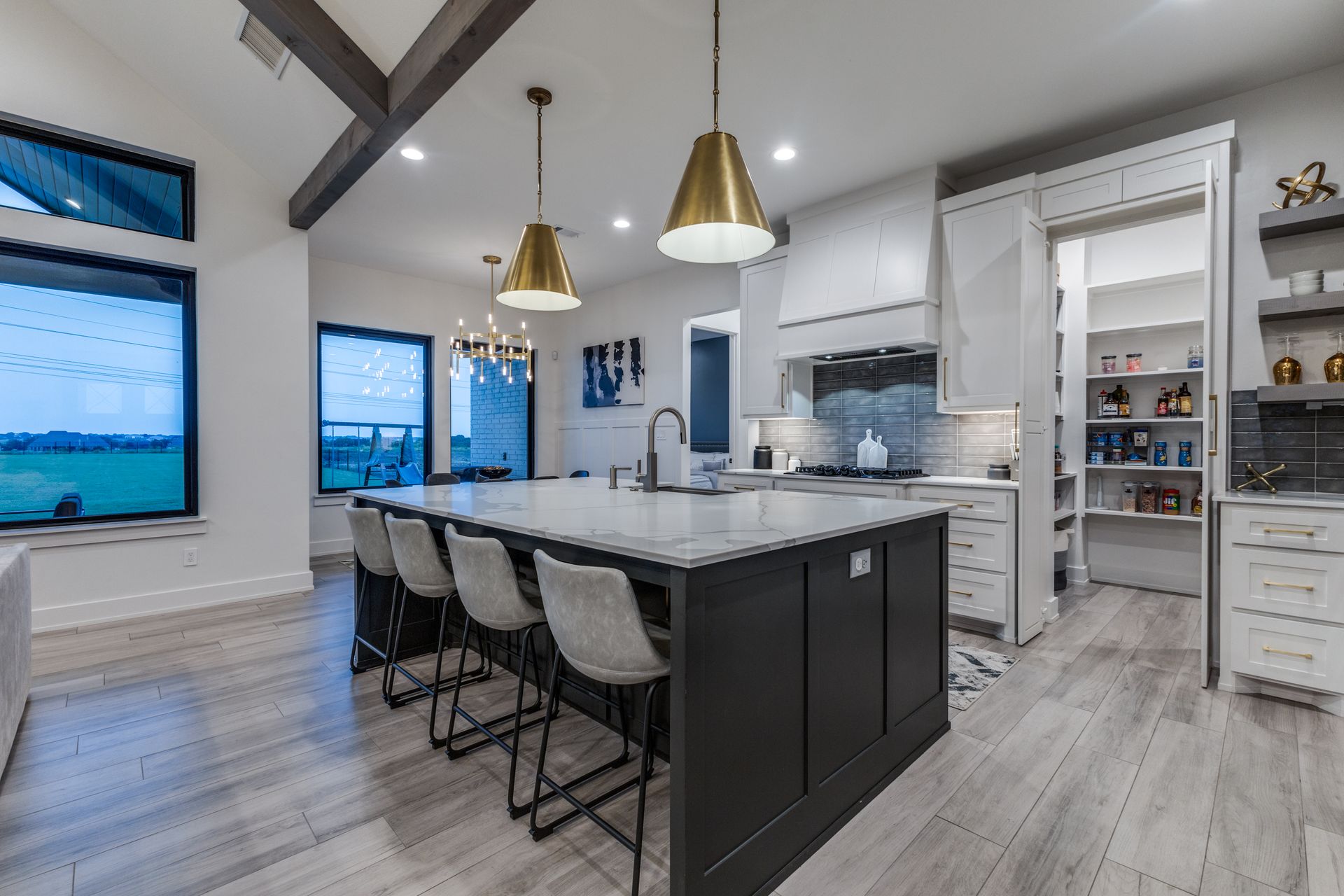 Don't wait to build when you can have this barely lived-in custom-built Scott Lewis Hill Country-inspired modern farmhouse that sits on nearly an acre at a breathtaking elevation in Stoneleigh, one of Heath's most prestigious neighborhoods. No detail is spared in this beauty from the movable secret door bookcase that leads to the primary closet and walk-in pantry door that hides behind custom cabinets to the outdoor shower with hot and cold faucets, perfect for a dog washing station. Designer finishes abound with custom textured walls, exquisite tilework, modern light fixtures, solid wood doors throughout this smart floor plan featuring four bedrooms four full baths and two adjoining flex spaces that could serve as additional bedrooms, a nursery, a study, or endless other options. Downsizing but need the extra space? Easily store all the extras and seasonal decor using the 44x66, 700lb capacity elevator lift that leads from the oversized garage to the fully decked 900 square foot climate-controlled spray foam insulated attic!