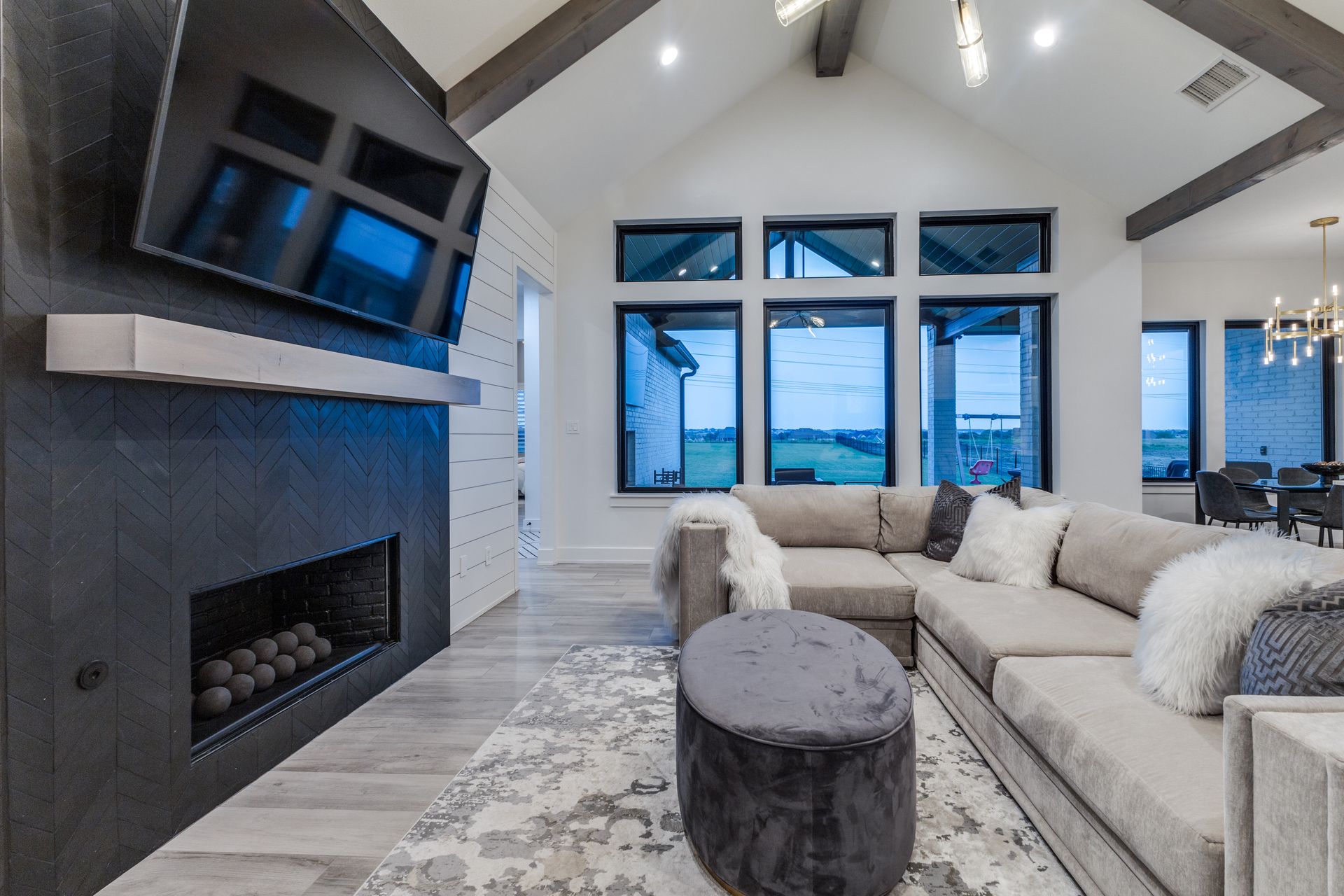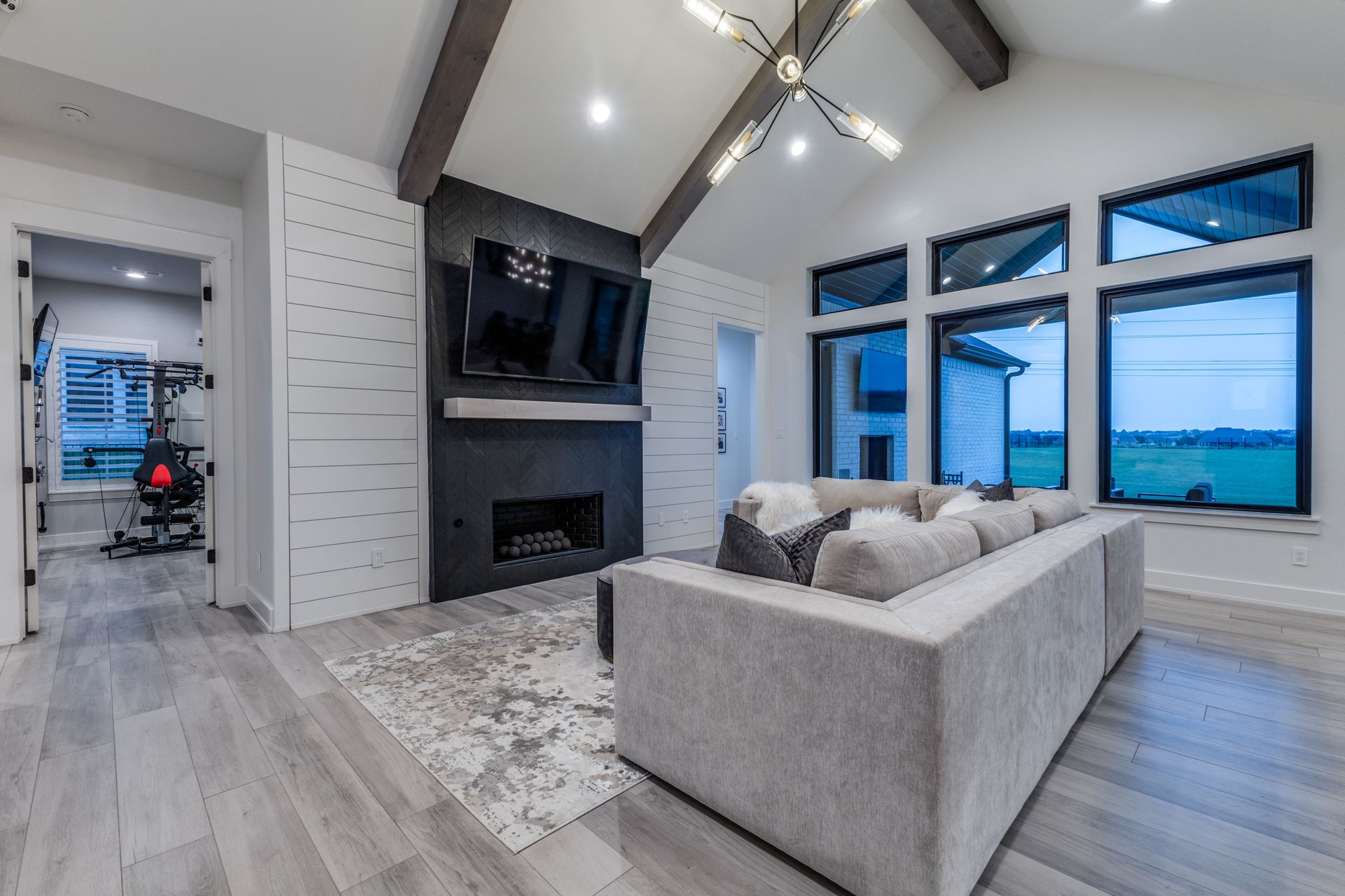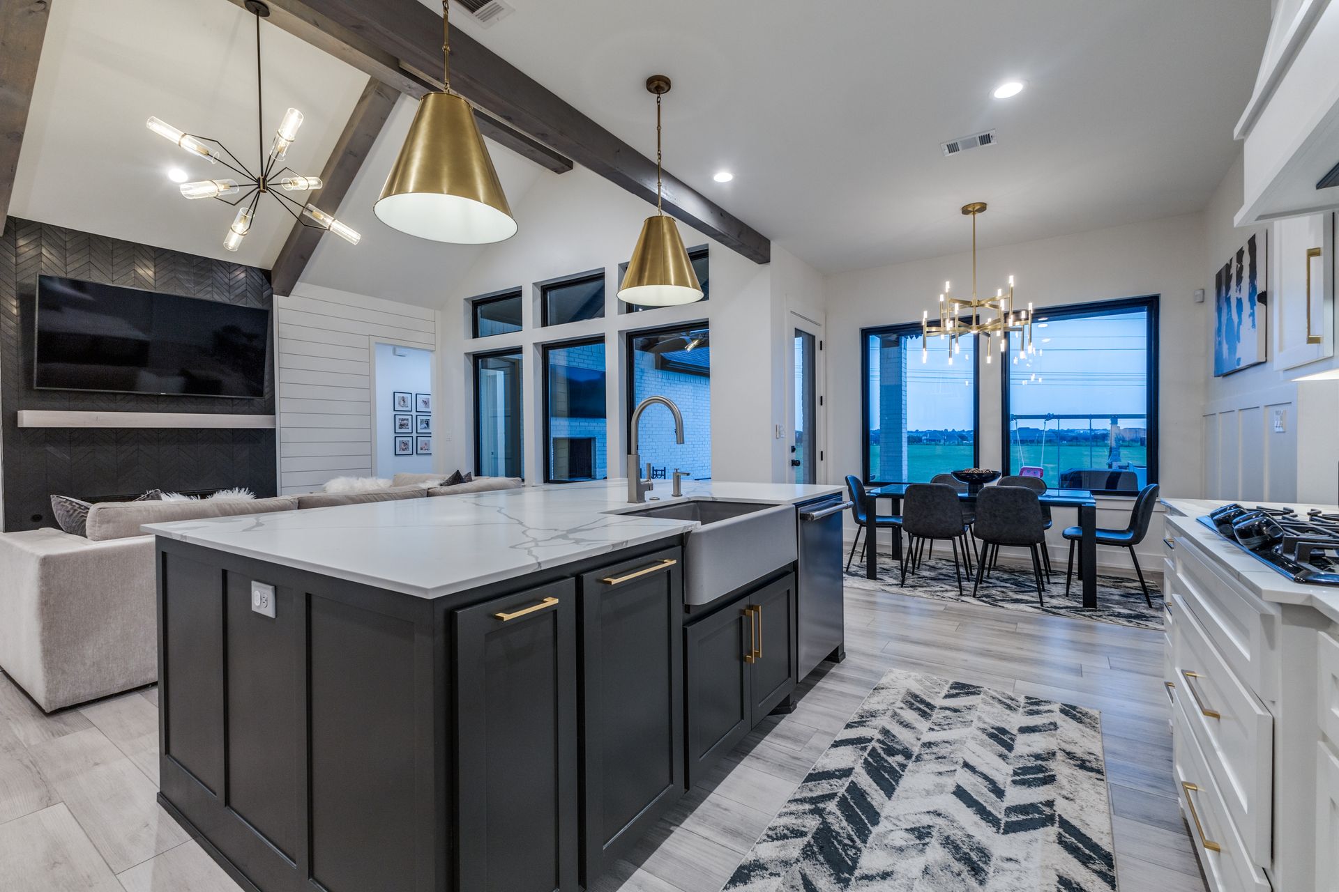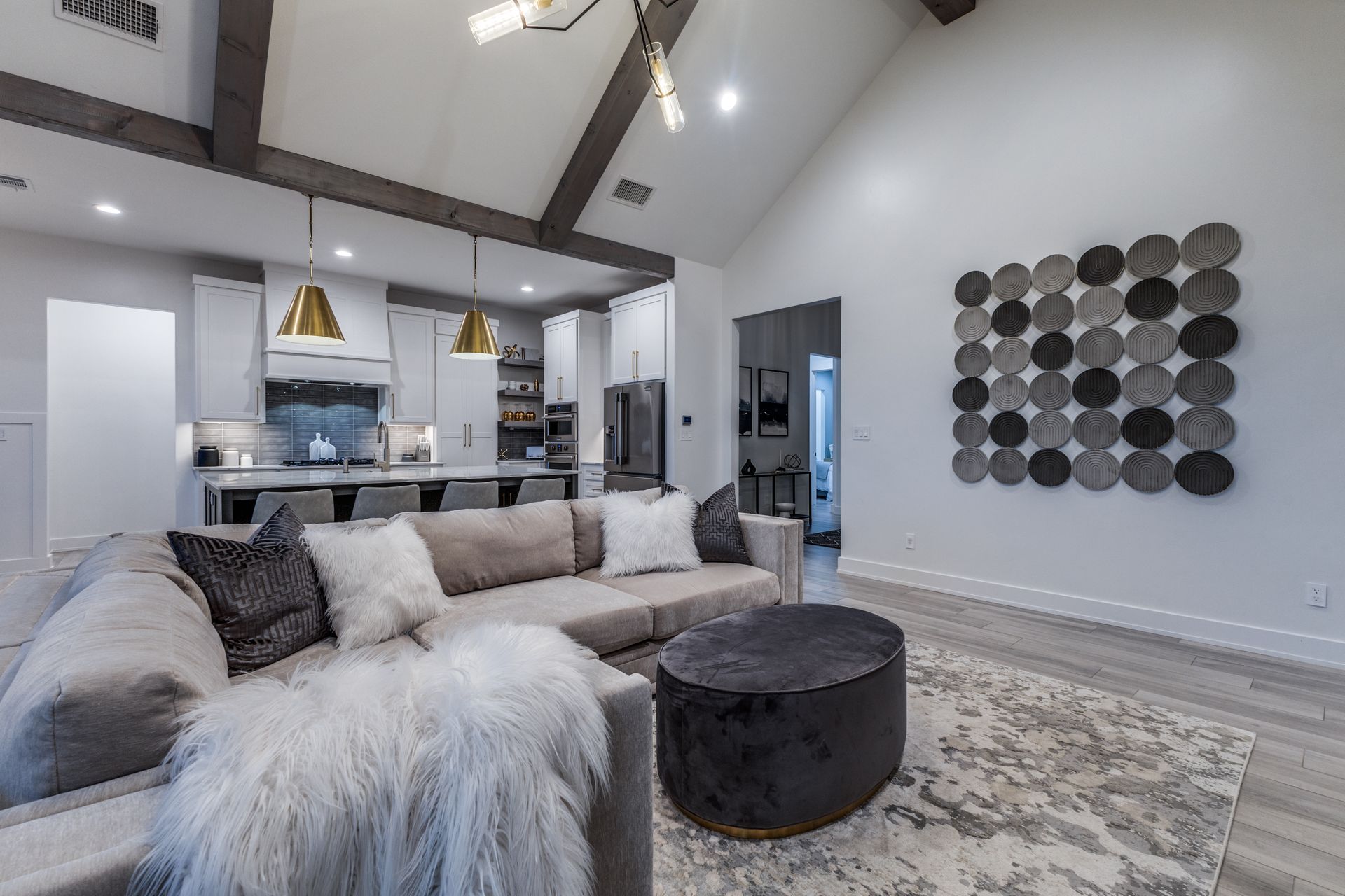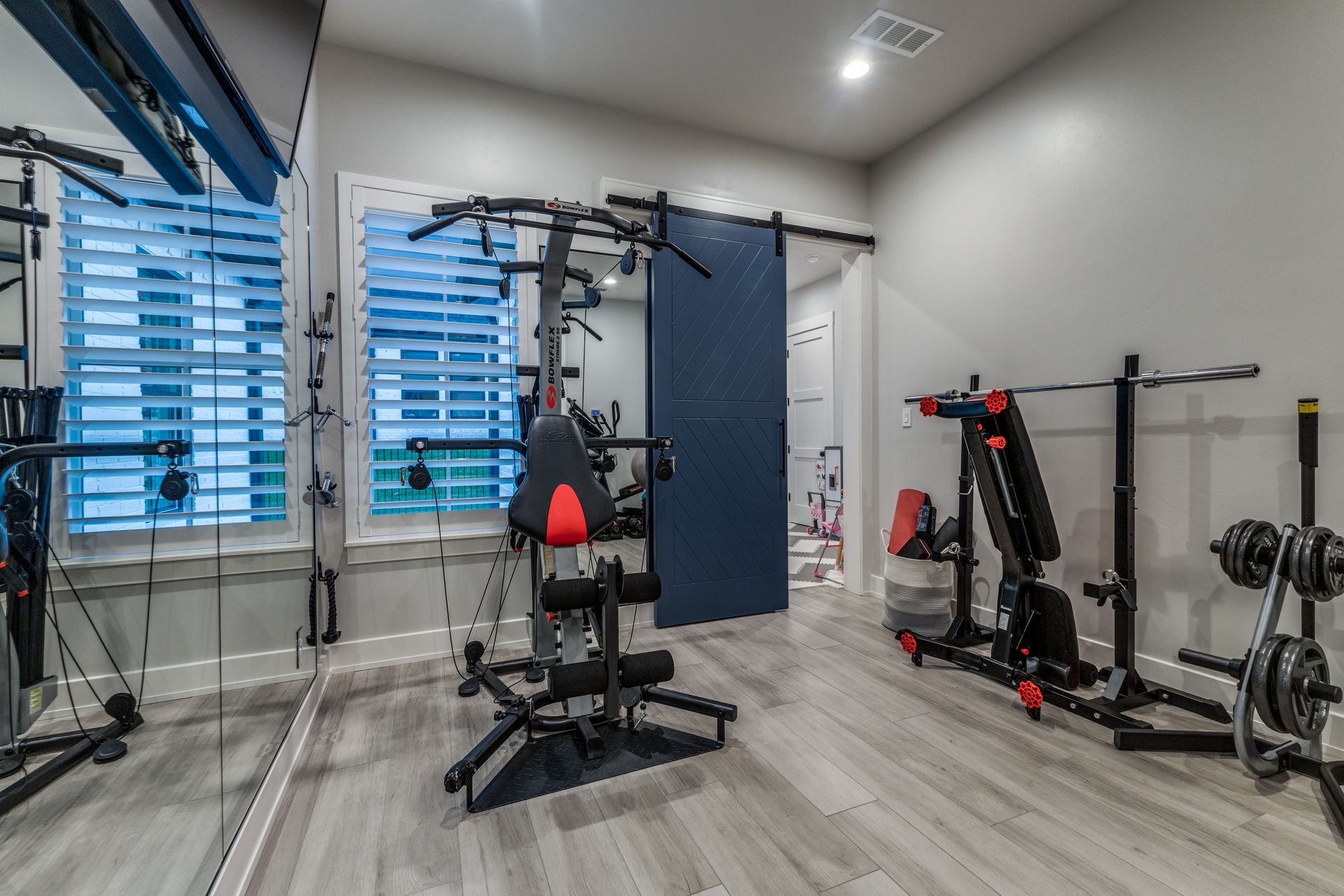 Don't wait to build when you can have this barely lived-in custom-built Scott Lewis Hill Country-inspired modern farmhouse that sits on nearly an acre at a breathtaking elevation in Stoneleigh, one of Heath's most prestigious neighborhoods. No detail is spared in this beauty from the movable secret door bookcase that leads to the primary closet and walk-in pantry door that hides behind custom cabinets to the outdoor shower with hot and cold faucets, perfect for a dog washing station. Designer finishes abound with custom textured walls, exquisite tilework, modern light fixtures, solid wood doors throughout this smart floor plan featuring four bedrooms four full baths and two adjoining flex spaces that could serve as additional bedrooms, a nursery, a study, or endless other options. Downsizing but need the extra space? Easily store all the extras and seasonal decor using the 44x66, 700lb capacity elevator lift that leads from the oversized garage to the fully decked 900 square foot climate-controlled spray foam insulated attic!