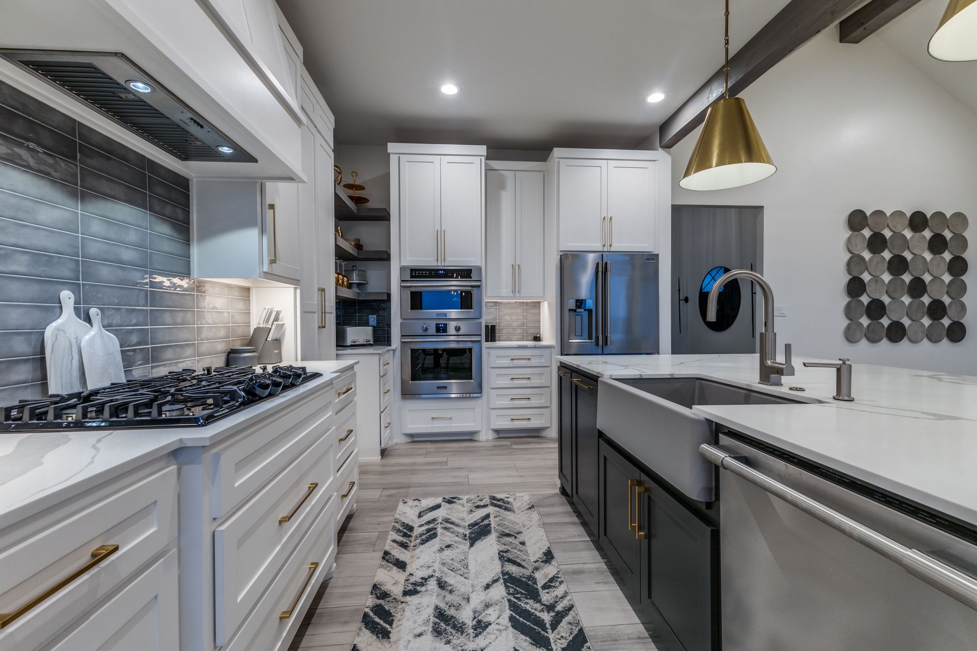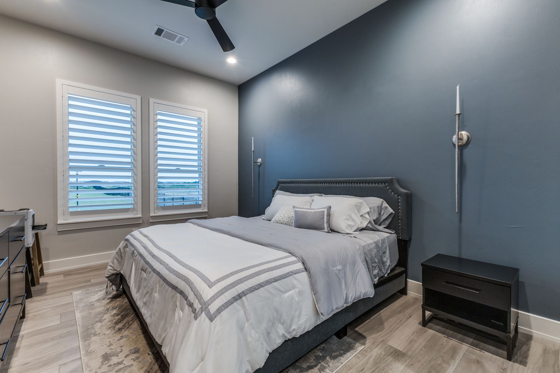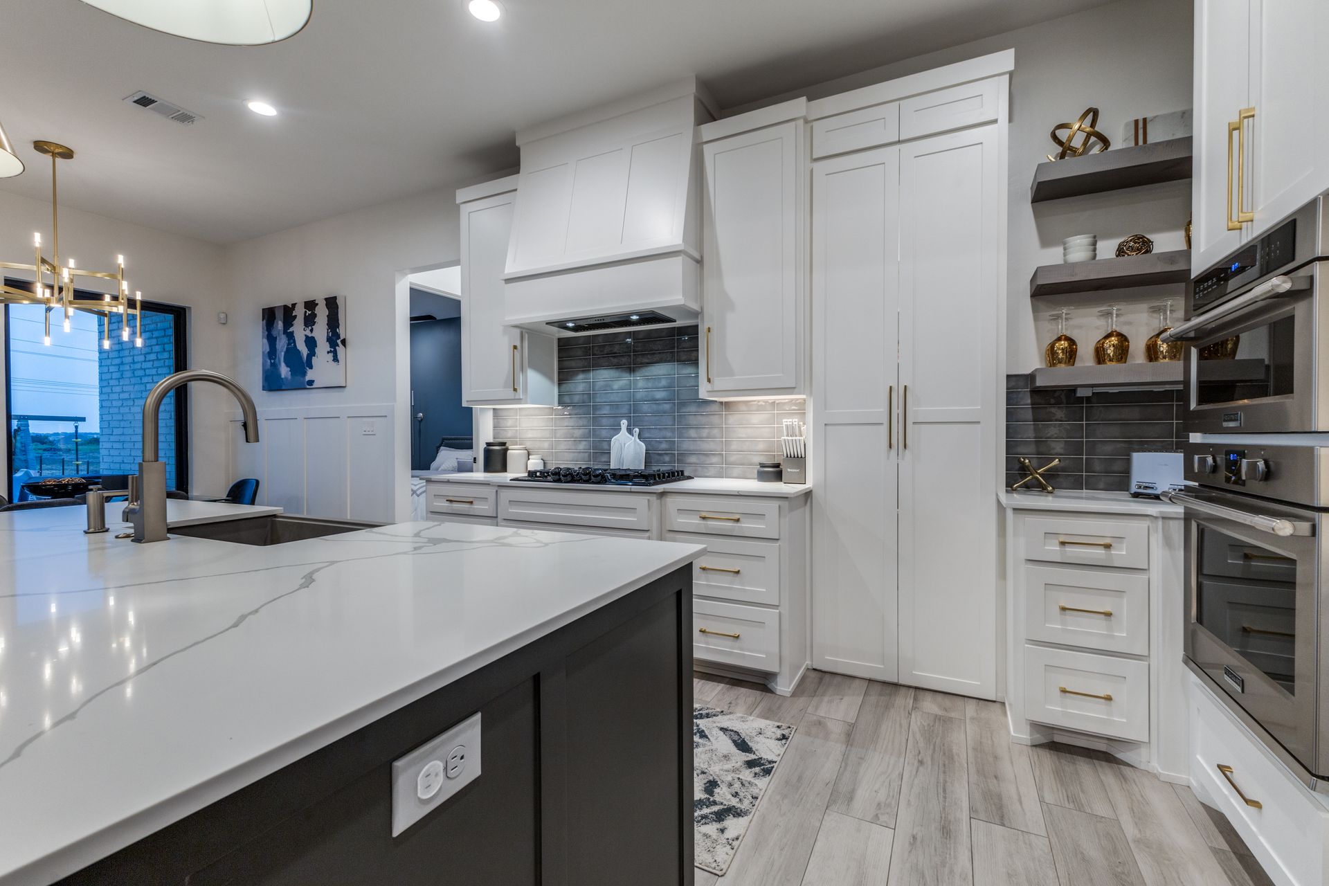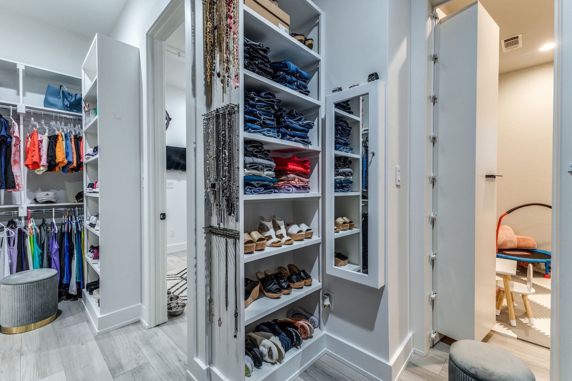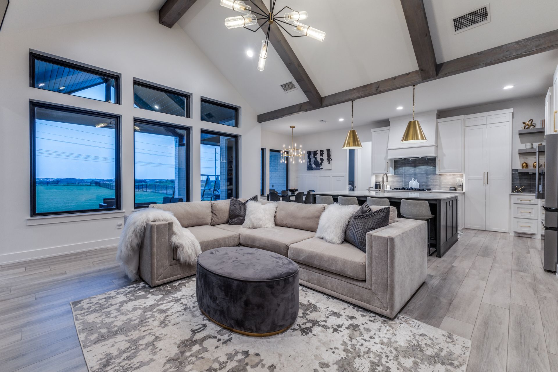 Don't wait to build when you can have this barely lived-in custom-built Scott Lewis Hill Country-inspired modern farmhouse that sits on nearly an acre at a breathtaking elevation in Stoneleigh, one of Heath's most prestigious neighborhoods. No detail is spared in this beauty from the movable secret door bookcase that leads to the primary closet and walk-in pantry door that hides behind custom cabinets to the outdoor shower with hot and cold faucets, perfect for a dog washing station. Designer finishes abound with custom textured walls, exquisite tilework, modern light fixtures, solid wood doors throughout this smart floor plan featuring four bedrooms four full baths and two adjoining flex spaces that could serve as additional bedrooms, a nursery, a study, or endless other options. Downsizing but need the extra space? Easily store all the extras and seasonal decor using the 44x66, 700lb capacity elevator lift that leads from the oversized garage to the fully decked 900 square foot climate-controlled spray foam insulated attic!