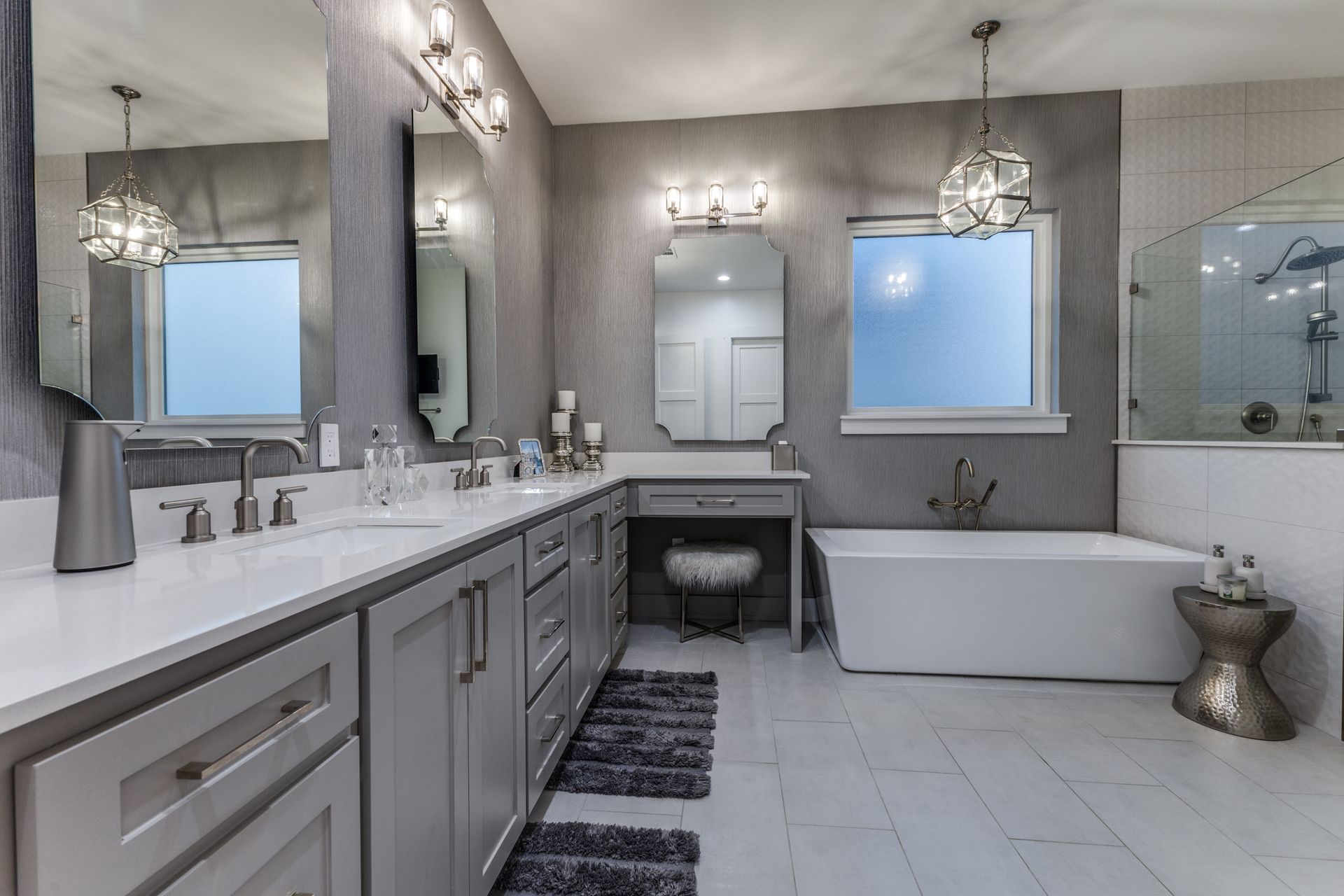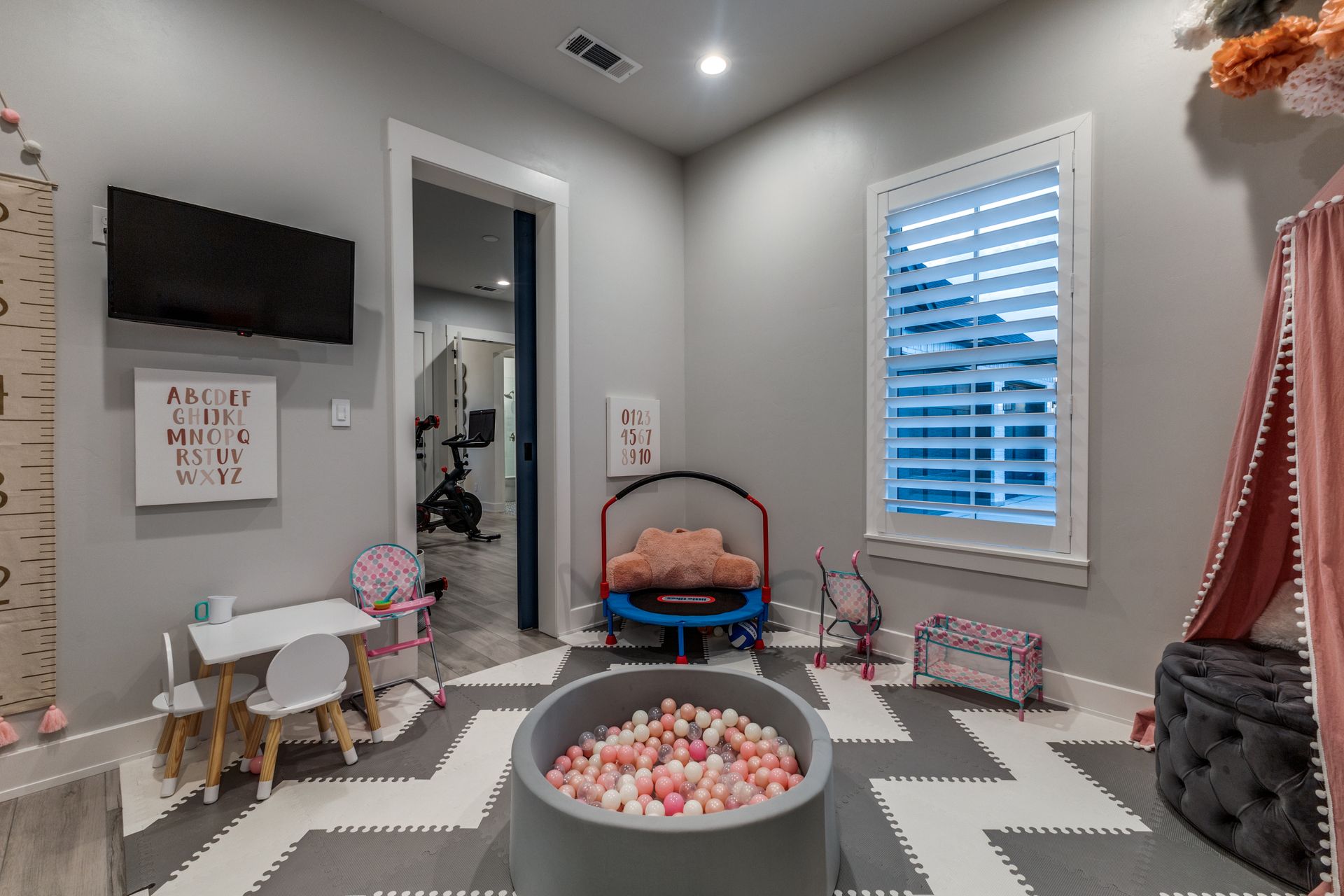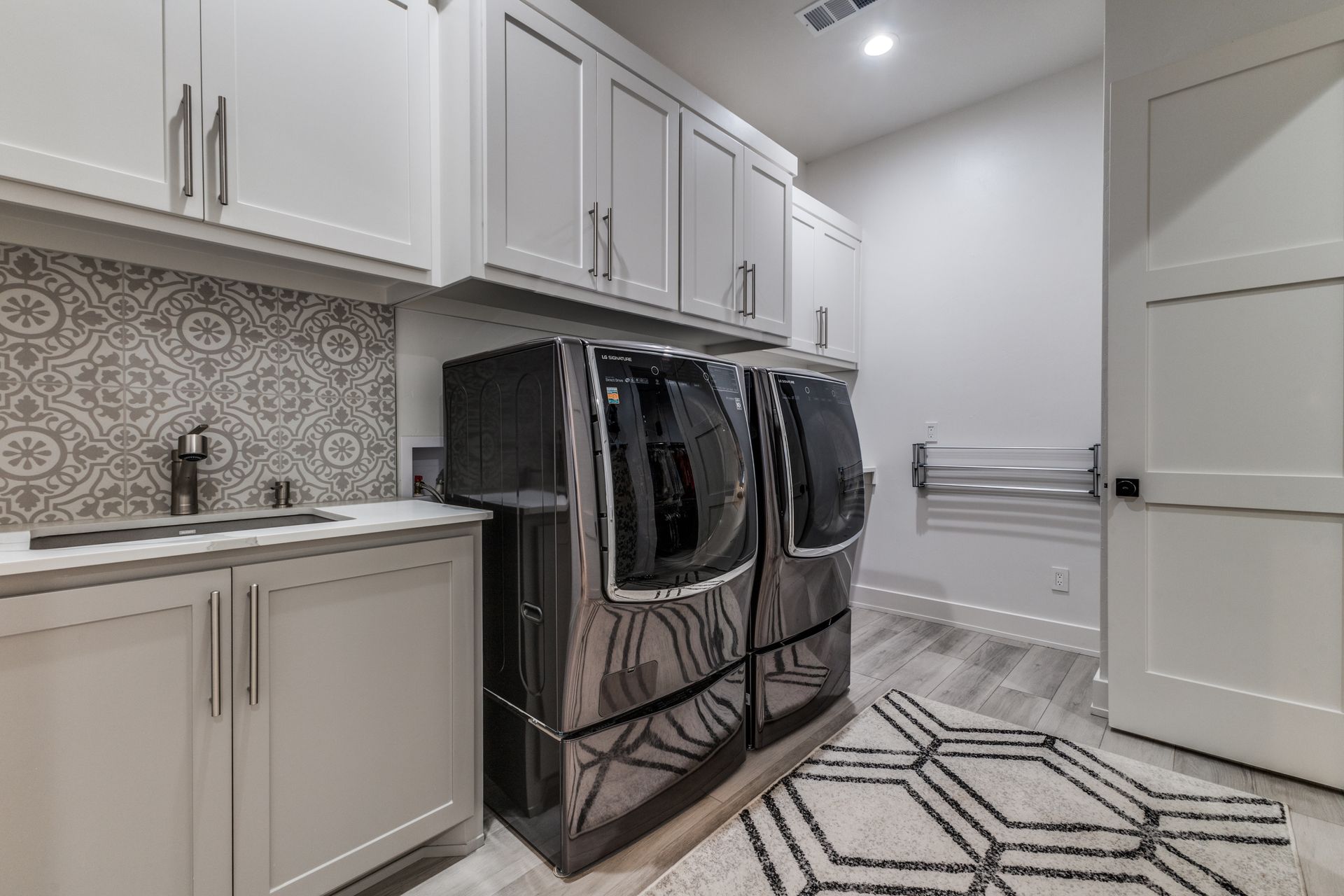 Other behind-the-scenes features include cabinets with built-in electrical outlets, smart app-driven controls to 16 channel surveillance system with a license plate reader in the mailbox, electronic garage gate + doors, sprinkler system, electrical switch dimmers and thermostats for the yes, the 5-zone A/C system.
