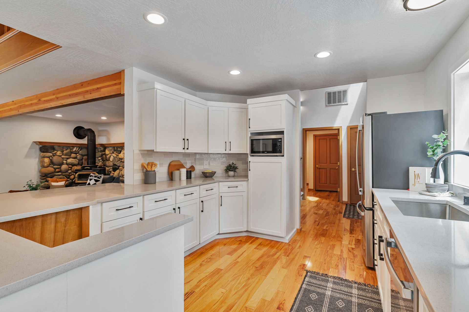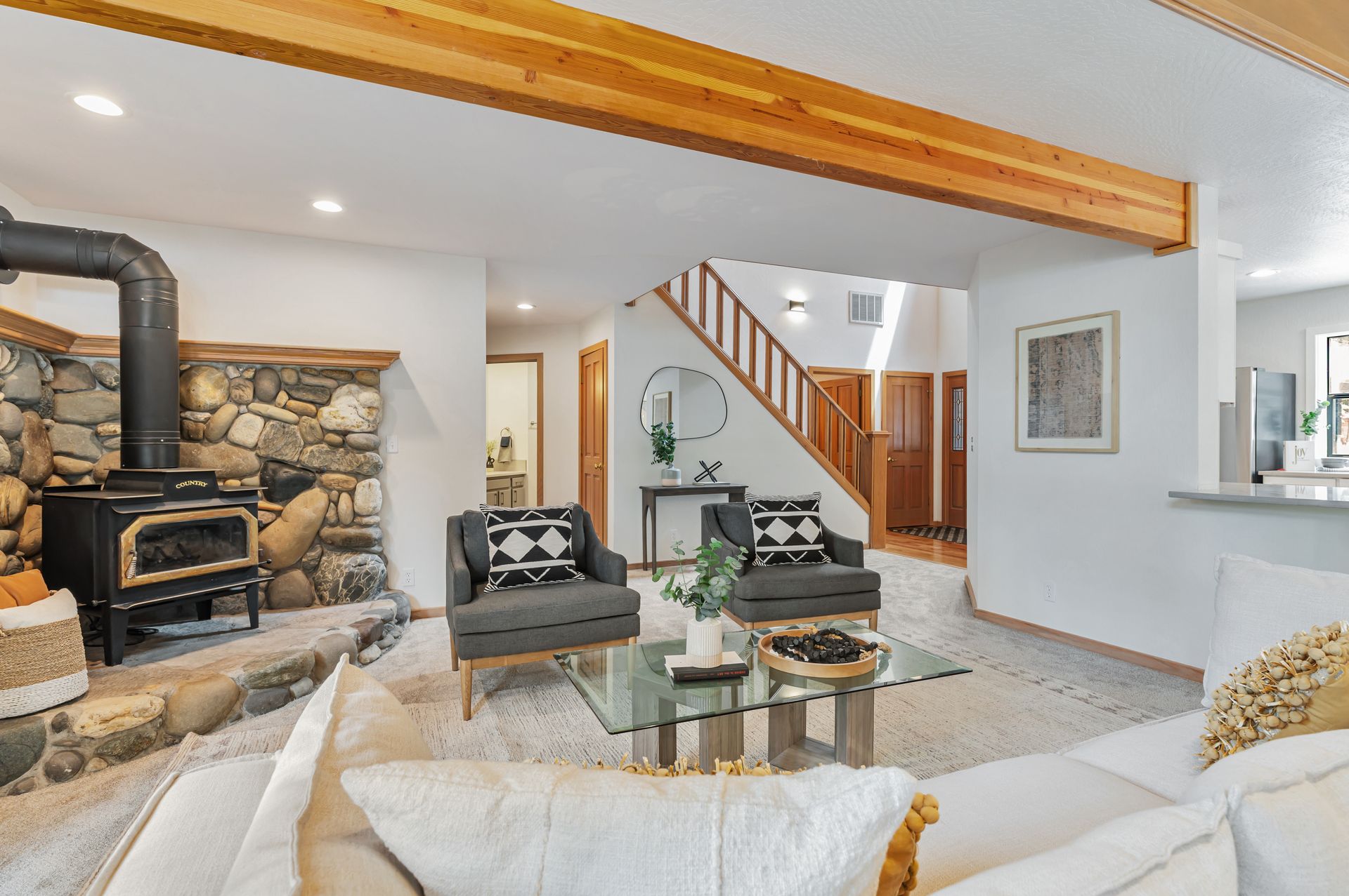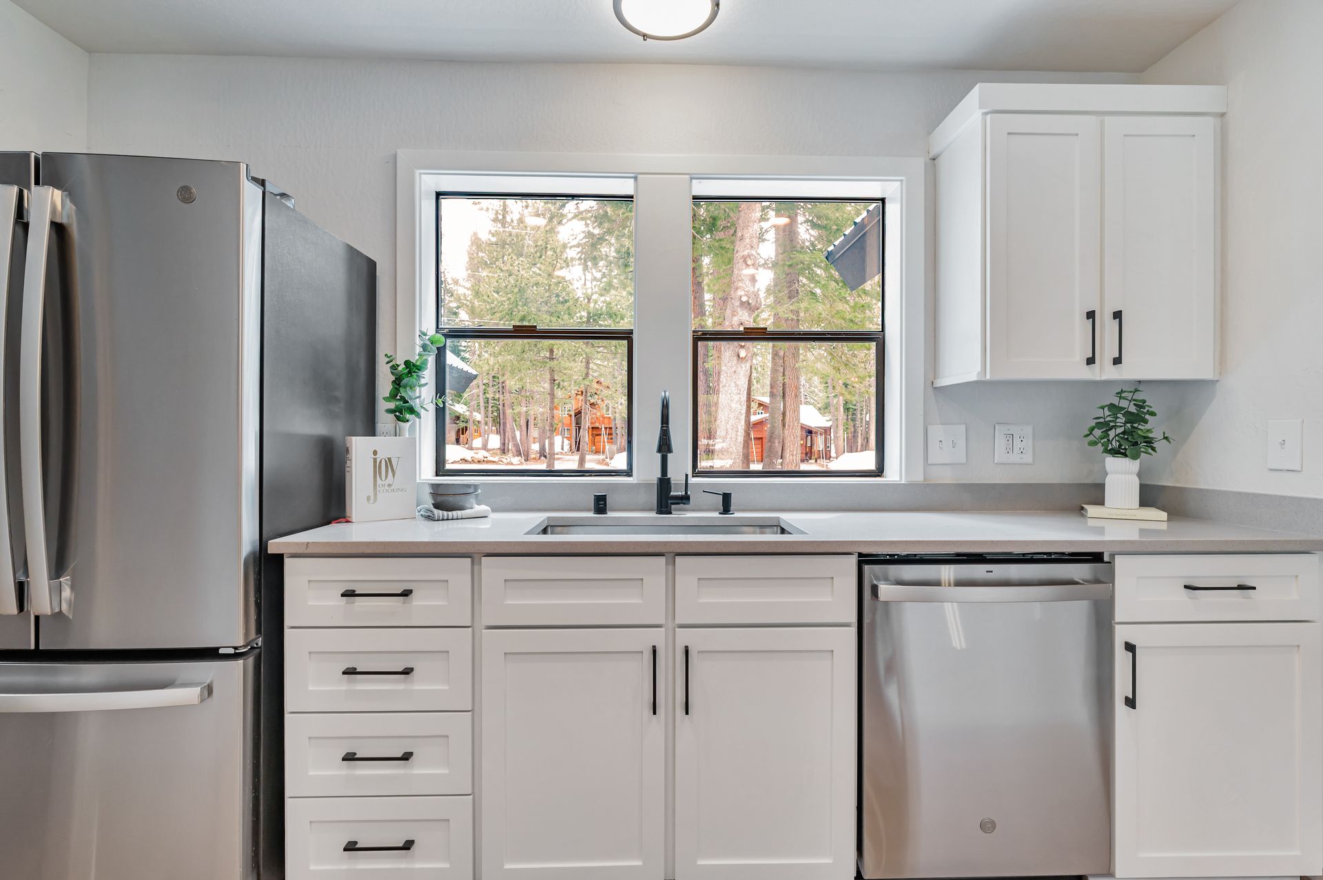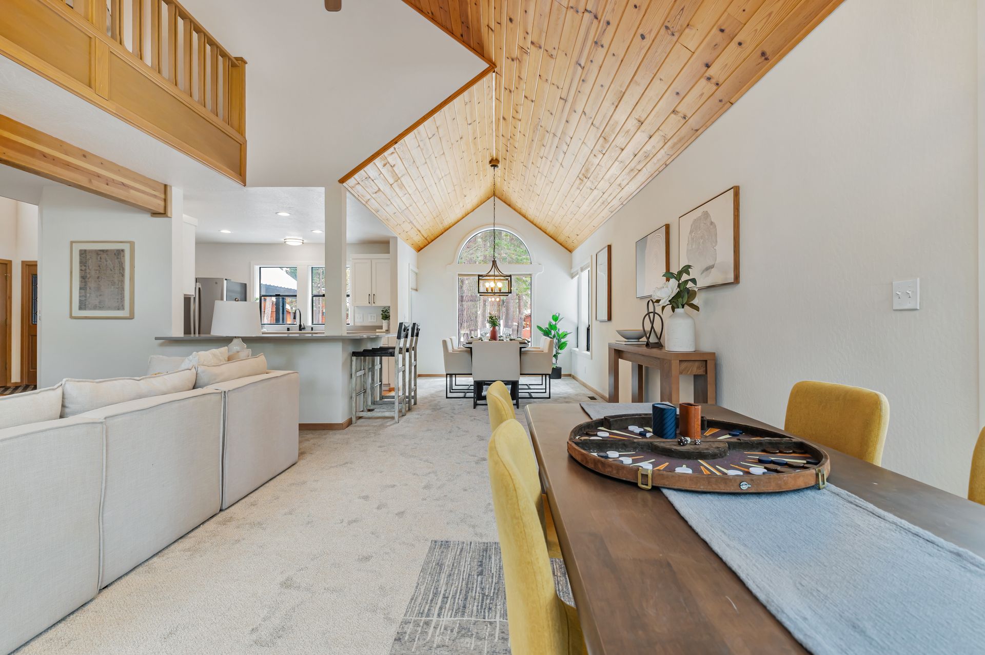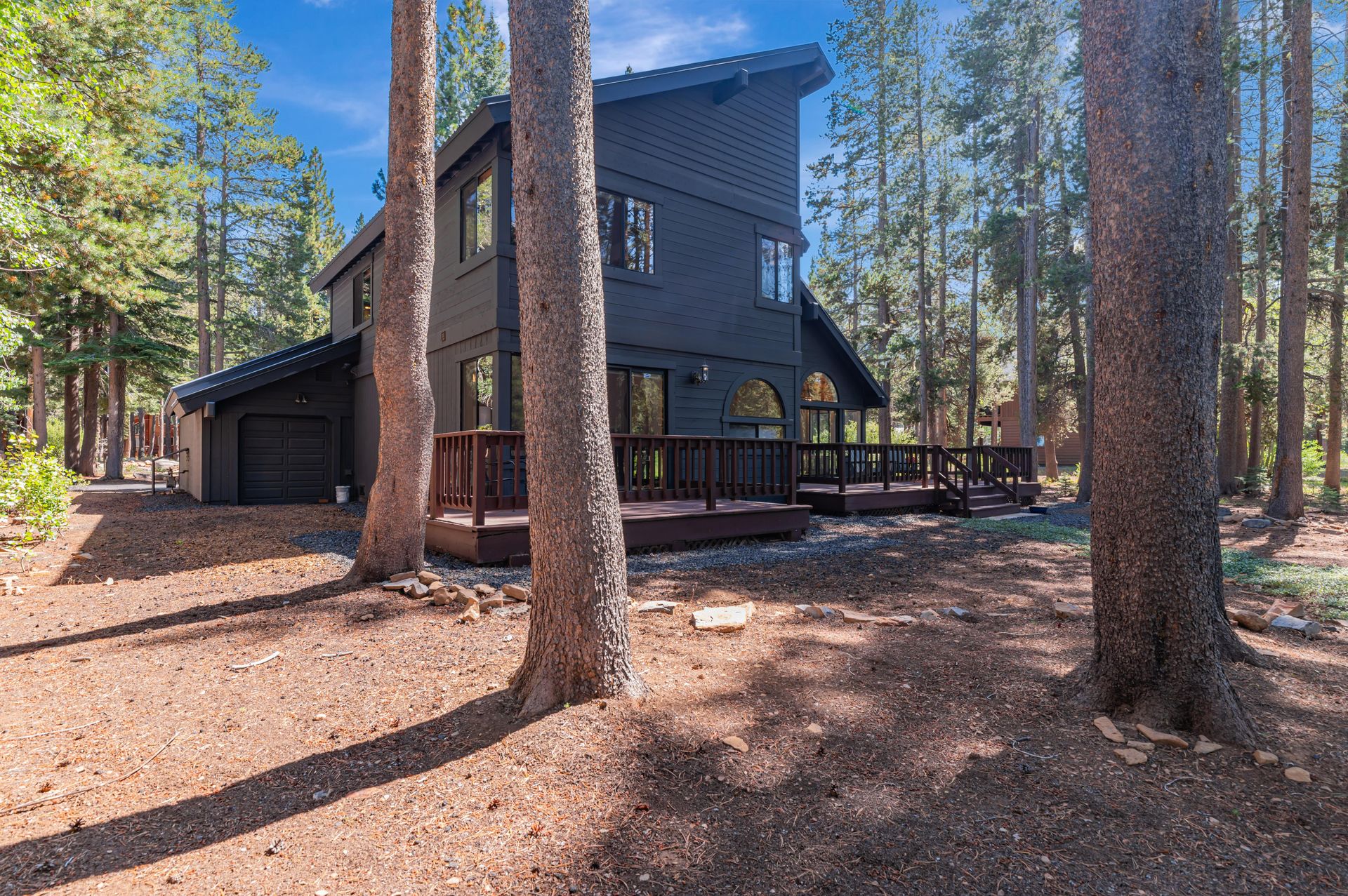 Welcome to your dream mountain home, ideally situated on the desirable SkiView Loop, backing directly onto the fifth fairway of the award-winning Tahoe Donner Golf Course. This meticulously maintained property has undergone an extensive remodel, resulting in a clean, modern design for the kitchen and bathrooms that perfectly complements the home's mountain setting. The level lot provides easy access, while the newly installed carpets and flooring add a fresh, clean touch. The primary suite is conveniently located on the main floor, with access to one of the two spacious decks on the back side of the house, ideal for enjoying your morning coffee. The fantastic setting offers space ideal for relaxation, entertainment, and evening gatherings with guests. The home features an expansive loft, ideal for a home office, guest area, or even a future fourth bedroom that can be easily enclosed. The oversized garage, complete with a golf cart door, provides ample storage for all your mountain gear. Experience the best of mountain living in this exceptional Tahoe Donner home, where every day feels like a getaway!