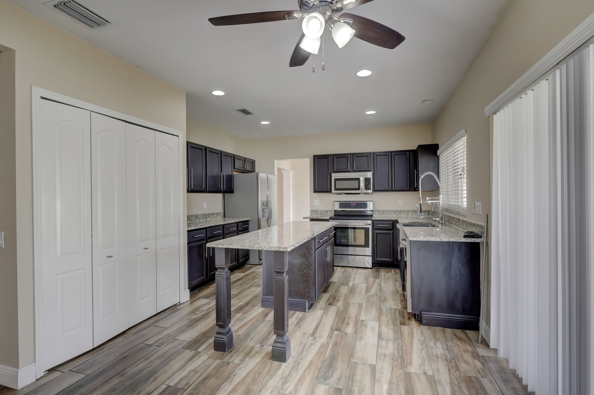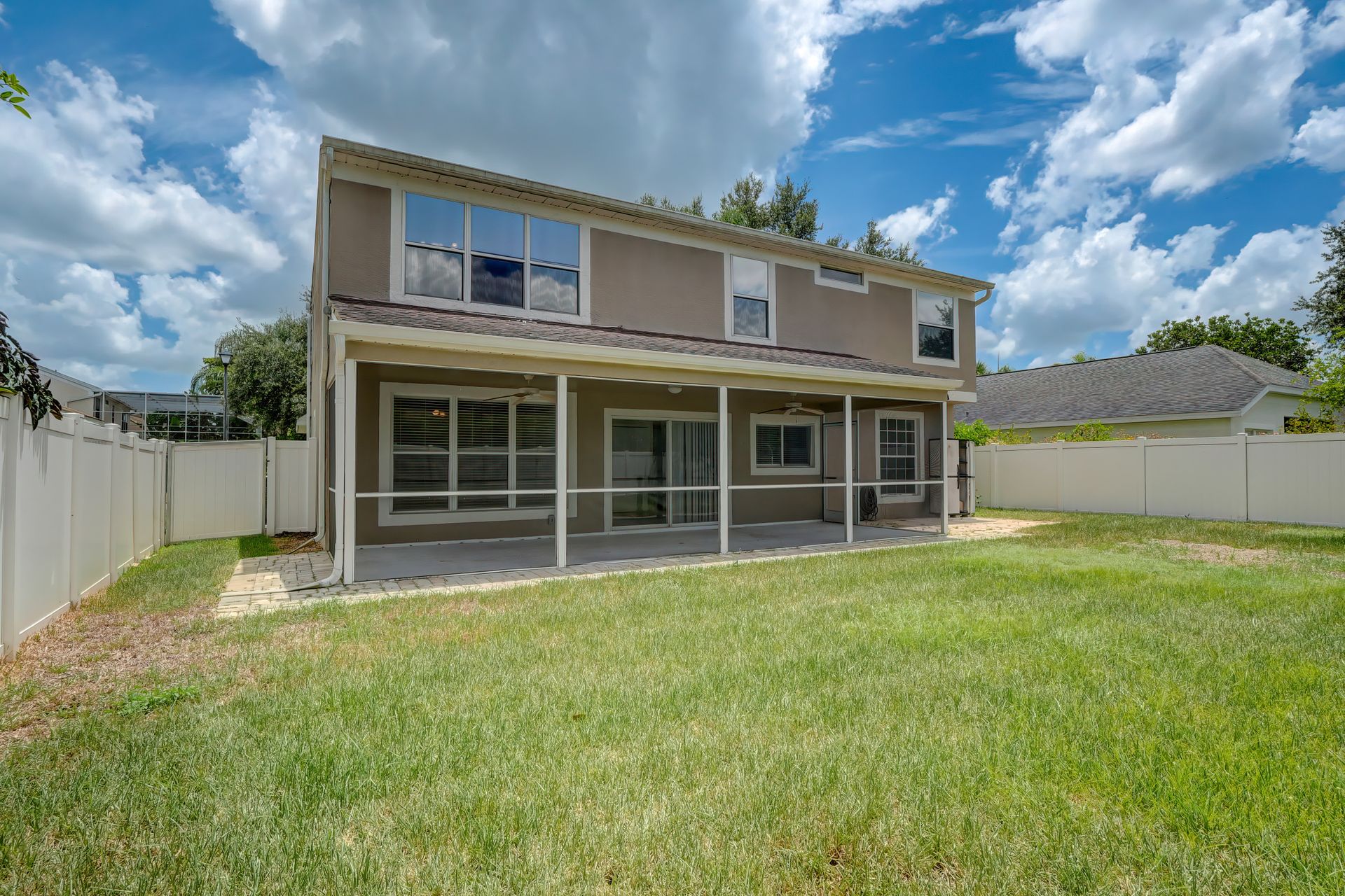 Can you say curb appeal? This beautiful move-in-ready home is loaded with extras that are a must-see! As you arrive, notice the concrete pavers on your extended driveway and the beautiful landscaping. Once you enter the home, the soaring ceilings in your spacious foyer will take your breath away, in addition to the updated guest bathroom that is sure to impress. The lower-level formal living and dining room features luxury vinyl tile flooring and space galore. In the kitchen, you will enjoy updated cabinets, lights, fixtures, an extended island, granite countertops and stainless steel appliances leading into the large family room. Upstairs are four bedrooms and two bathrooms, both of which include double vanities. The newer washer and dryer are also conveniently located upstairs. The primary suite has cathedral ceilings, a garden tub and shower and a huge walk-in closet. Do not forget the excellent outdoor space with your large screened-in lanai and paver patio just waiting for you to entertain. To top it all off, enjoy the generous backyard with a maintenance-free privacy fence. Come check it out and make this your new home today!