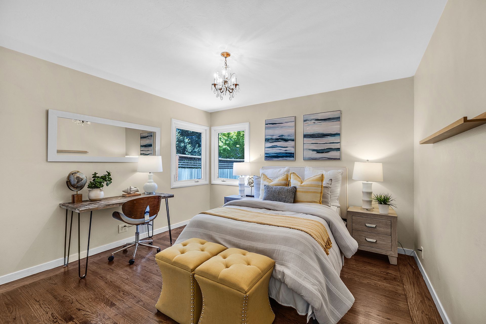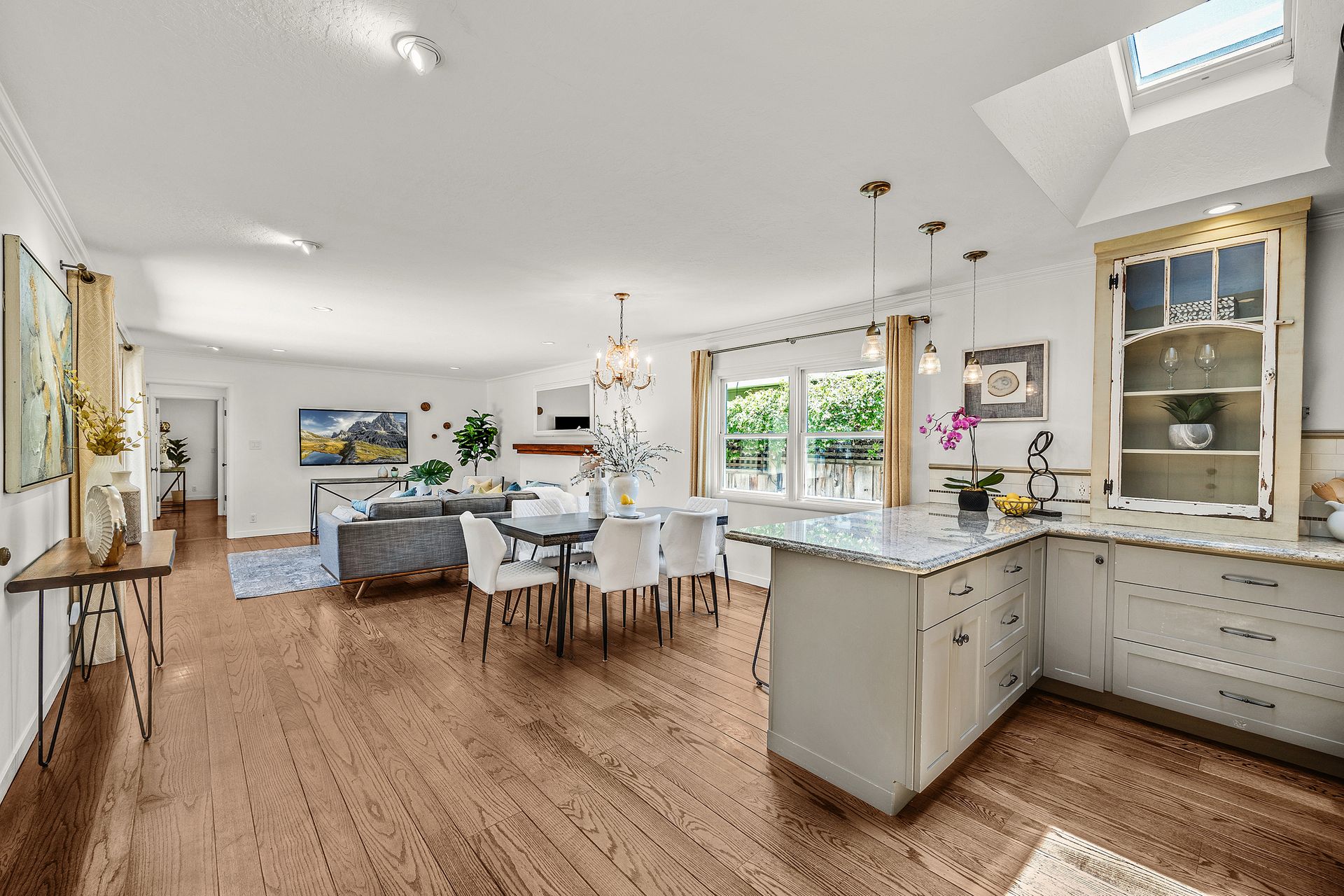 Welcome to Oak Park of San Carlos! You are located just five short blocks from Laurel Street and Trader Joe's (where all the action is - stores, shops, restaurants, wine bars and so much more!), and three blocks from Burton Park (playing fields, tennis courts, hoops, playground, and recreation center)! The prior owner was a designer, and she remolded the kitchen and bathroom beautifully - very stylish! The eclectic kitchen has a mixture of vintage and modern finishes with stainless steel appliances. You will love the open floorplan bringing the kitchen, dining and living all together, and opening to your courtyard dining patio. There are exposed random plank hardwood floors, wood burning fireplace, large glass doors with side lights to the patio, oversized hall bath with large deep soaking tub (small swimming pool for little ones - ha-ha), plus a bonus quarter bath in the garage, and a wide driveway with side-by-side parking and a two-car garage! You will Love Living here!