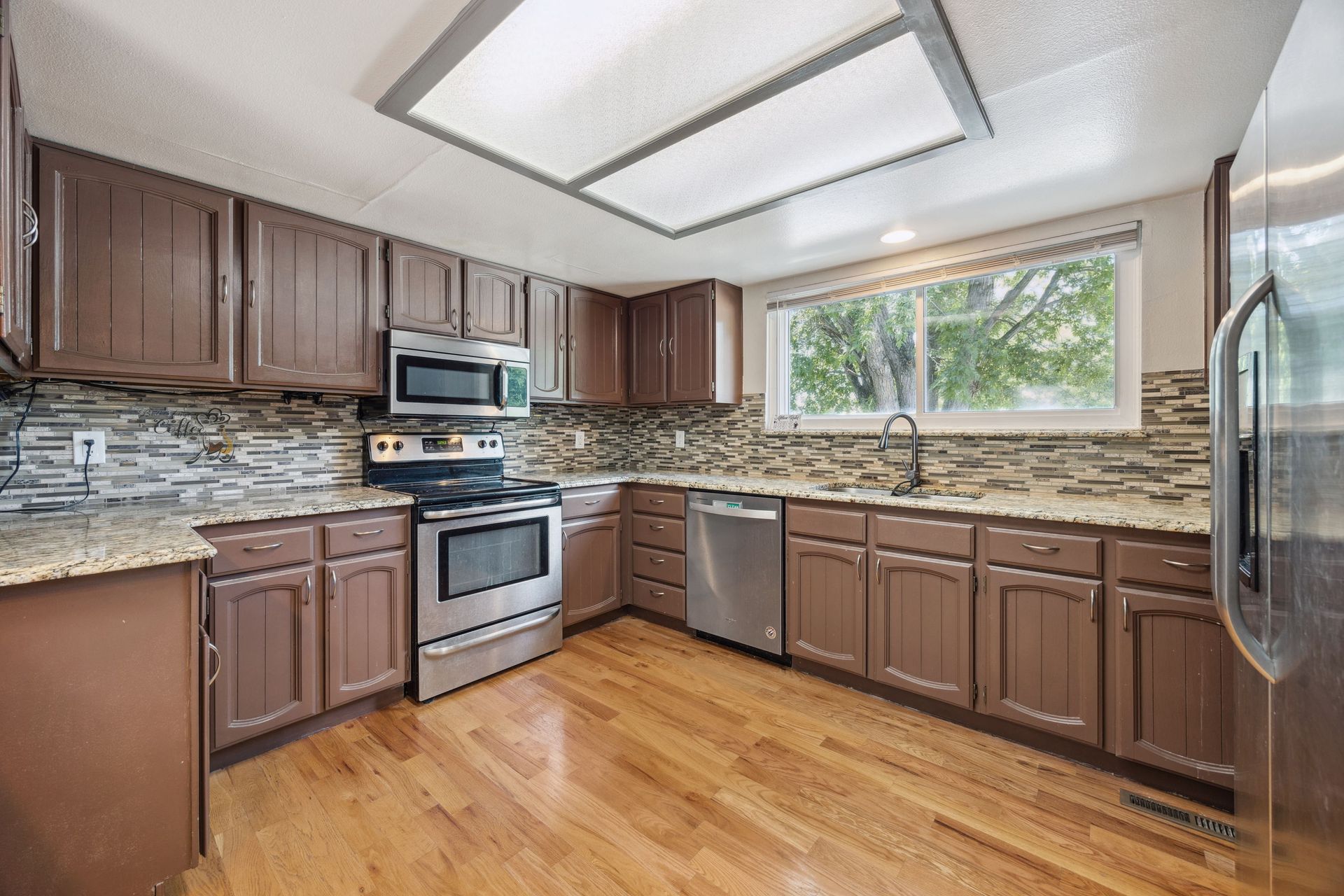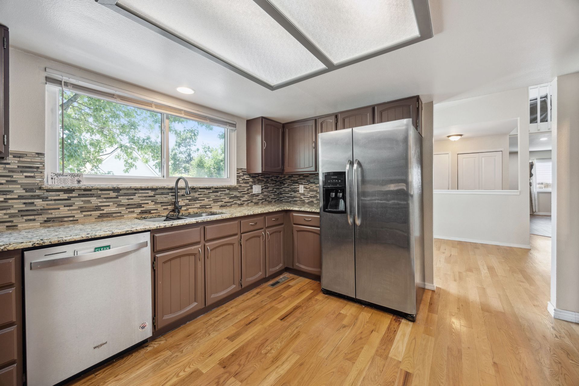 Welcome to your dream home in the sought-after Tierra Iliff subdivision in Aurora, CO! This beautifully renovated residence, standing at approximately 3,187 square feet, boasts modern upgrades and luxurious finishes throughout, featuring five spacious bedrooms and two pristine bathrooms. All upgrades were recently done within the past year. Upon entering, you'll find yourself in the open living area with vaulted ceilings, recessed lighting, skylights and hardwood flooring throughout the main floor, which flows seamlessly into the kitchen and dining area. The kitchen is a chef's delight, equipped with stainless steel appliances, granite countertops and ample cabinet space. A second family room leads to the two main floor bedrooms, with new carpeting and a full bath. Upstairs, you'll find a large loft and the primary bedroom with a walk-in closet and an updated five-piece bathroom with a new vanity. The newly fully finished basement offers a spacious living area, two additional bedrooms, a cellar/storage room, the utility room, a bonus room and an additional washer/dryer room. The backyard features a large patio perfect for entertaining and a charming treehouse overlooking the greenspace. The property backs up to Tierra Park and Trails, offering direct access to a playground with a zipline and tennis courts. Conveniently located near Nick's Garden Center and Heather Ridge Golf Club, with easy access to I-225 and I-25, this home is just 20 minutes away from Denver International Airport. It is also less than 10 minutes to the Cherry Creek Reservoir and a stone's throw away from a plethora of grocery stores, shopping and entertainment. Don’t miss out on this opportunity to make this stunning property yours. Contact Najib Alami at 303-960-1207 to schedule a showing today!