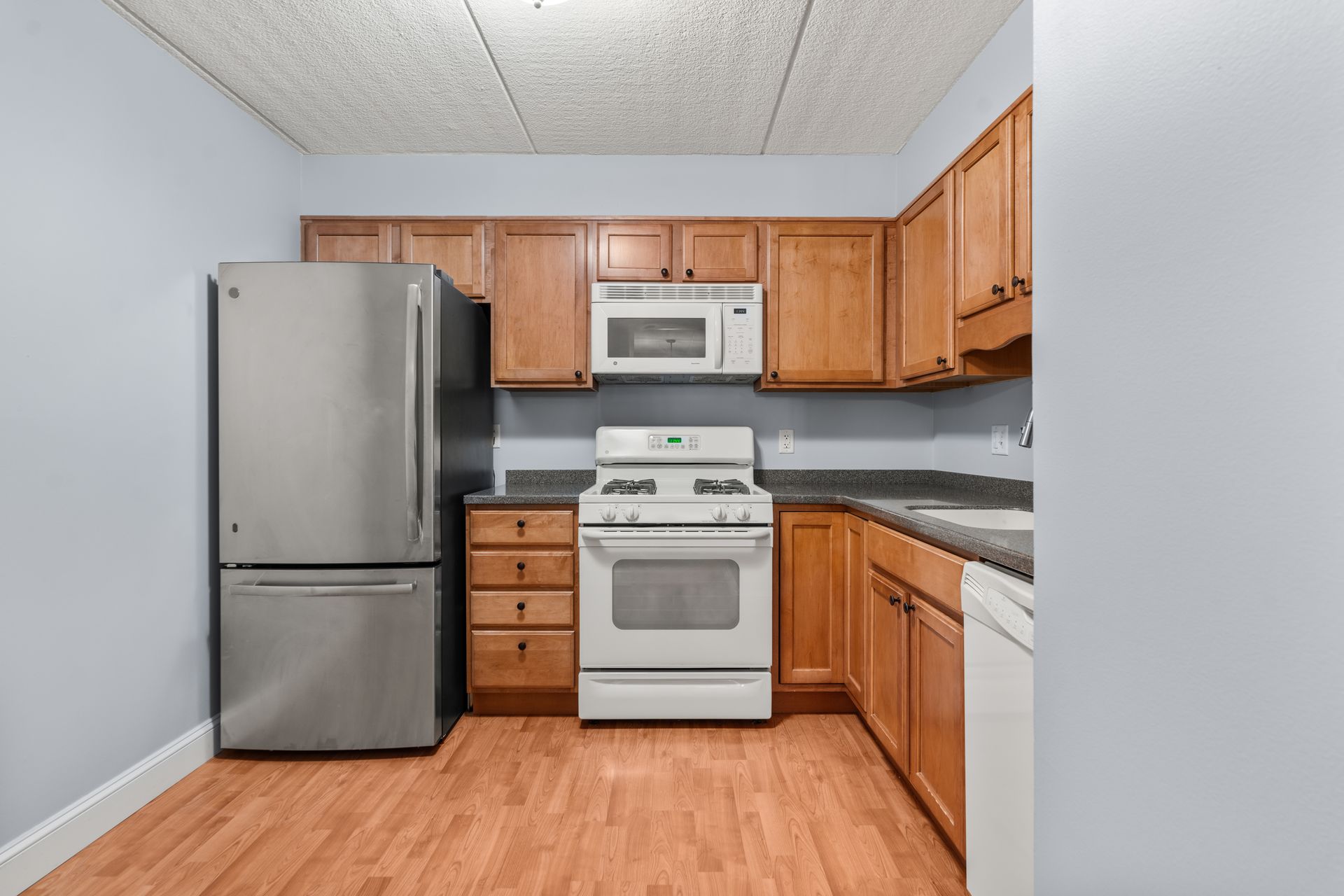 Discover the perfect blend of comfort and convenience in this spacious 2-bedroom, 2-bath condo with GARAGE PARKING at Chapel Hill Condos, offering one-level living in an elevator building minutes away from the Mass Pike entrance. Enjoy your private outdoor balcony with seasonal wooded views. The timeless kitchen features Corian countertops, a stainless refrigerator/freezer, GAS COOKING, a dishwasher, a built-in microwave, and room for a small table or island cart. The front-to-back main dining/living area boasts newer plank vinyl flooring, high ceilings, and lots of wall space for large pieces of furniture. Both bedrooms are very generously sized, including a primary bedroom with a walk-in closet, a full bathroom, and a picture window that looks out onto the Balcony, Freshly painted interior. UTILITIES INCLUDED (heat and hot water). AC, plenty of guest parking, extra storage locker, and access to the pool, gym, social room, and laundry facilities. Love Where You Live!