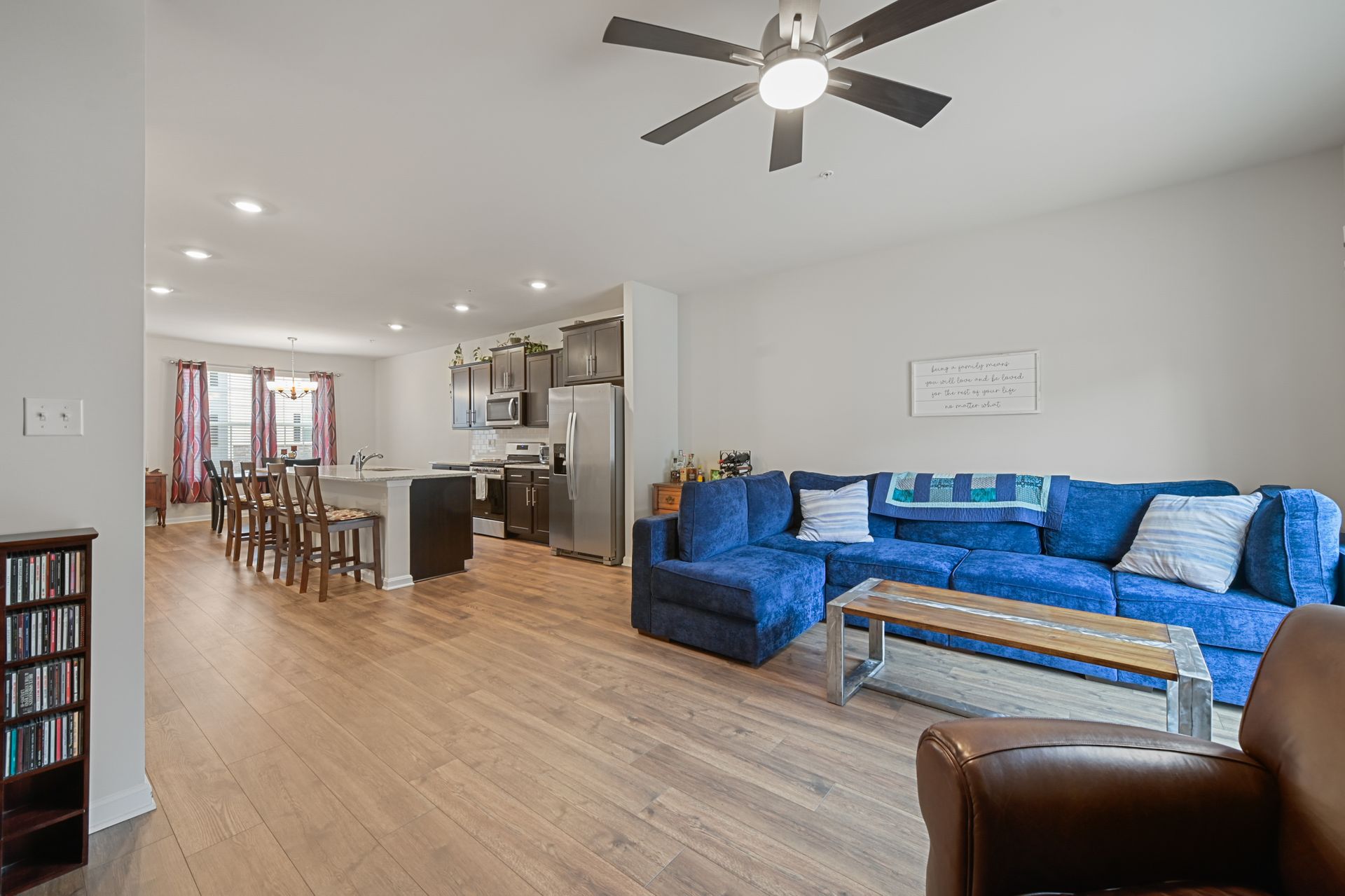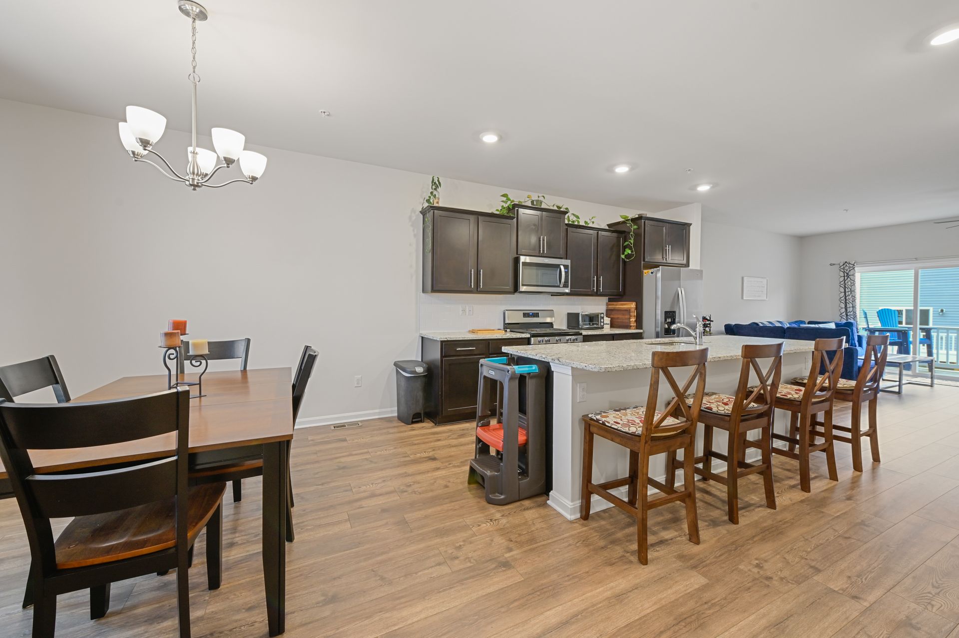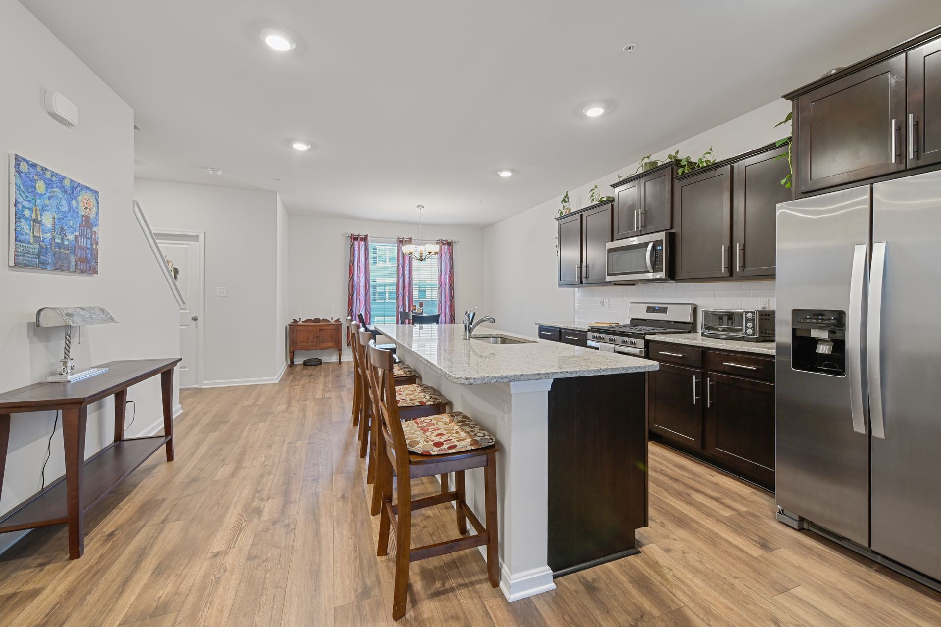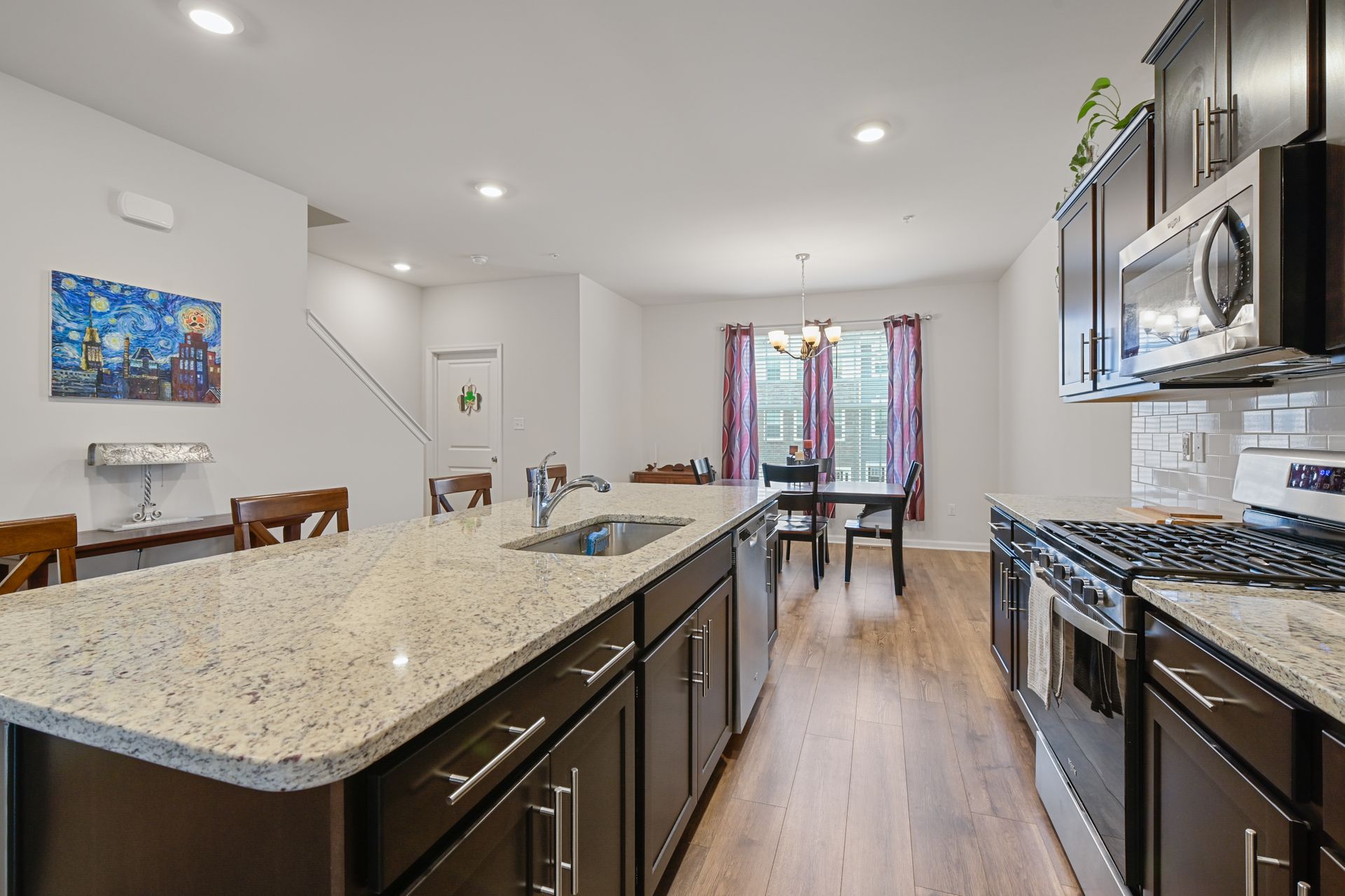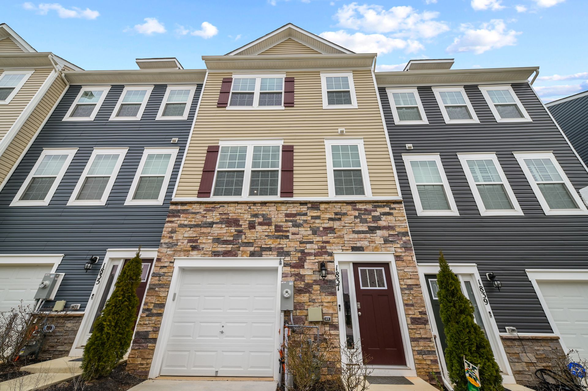 Luxurious townhome with a one car garage in the newer Odenton Town Center community! Over 2,200 square feet! Upgraded features throughout! Vinyl and stone siding! 9 foot ceilings! Neutral decor throughout! Spacious family room with recessed lighting and sliders to rear yard! Main floor features luxury vinyl plank flooring! Amazing gourmet kitchen with 42-inch cabinets, a pantry, recessed lighting, stainless-steel appliances, gas cooking, granite countertops and tile backsplash! Oversized island with plenty of room for entertaining and pendant lighting! Separate dining area next to the kitchen! Large living room with sliders to the custom deck! Half bath with a pedestal sink! Upper level includes a huge primary bedroom with a ceiling fan, walk-in closet and additional shelving! Primary bath features a custom walk-in shower and ceramic tile flooring! Additional second and third bedrooms upstairs! Hall bath with granite vanity top, tub/shower combination and ceramic tile flooring! Reinforced closets! Lots of natural light throughout! Easy access to Fort Meade, NSA, major highways, Marc station, BWI airport, trails, shopping, dining, Baltimore, Annapolis and DC! Immaculate inside and out!