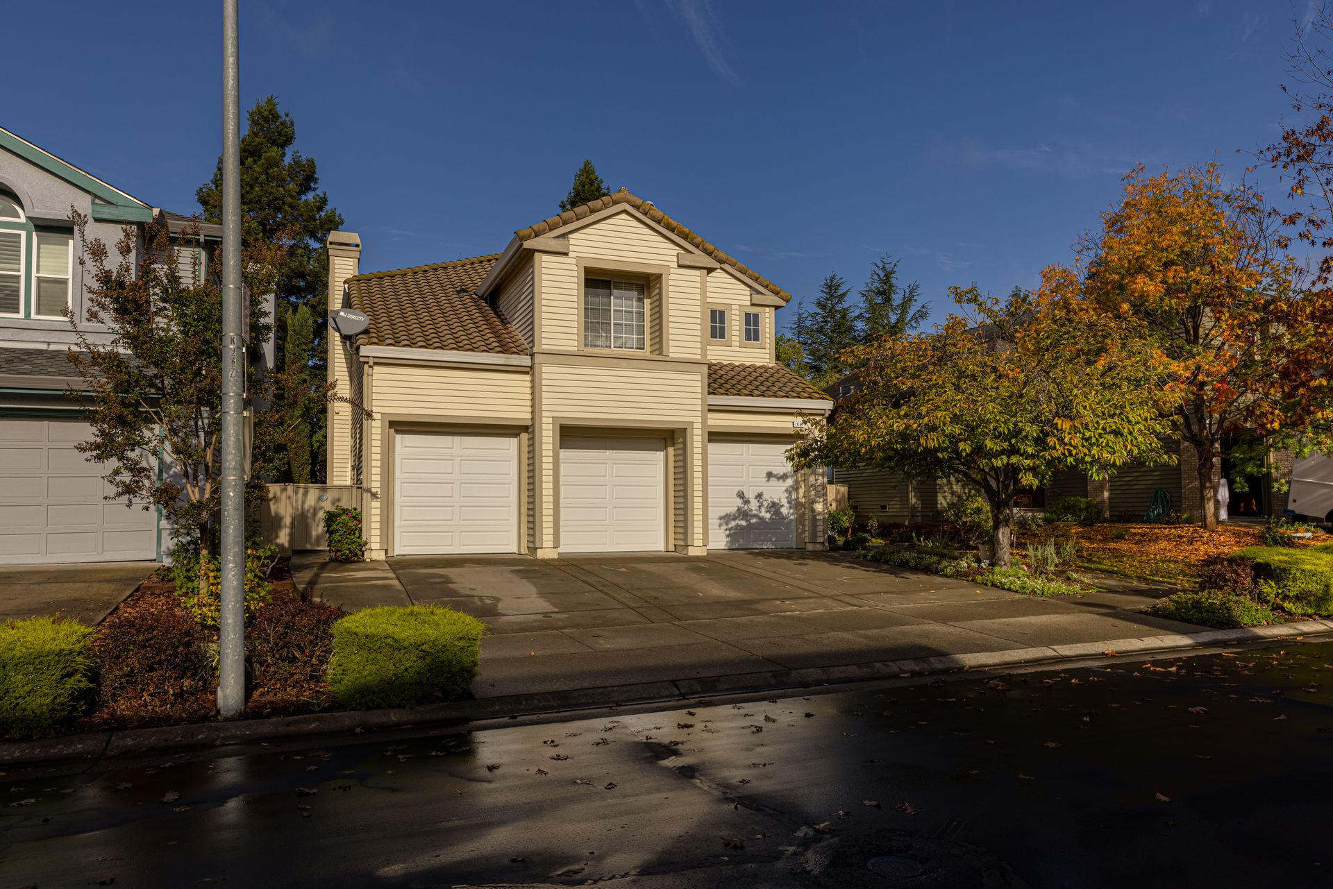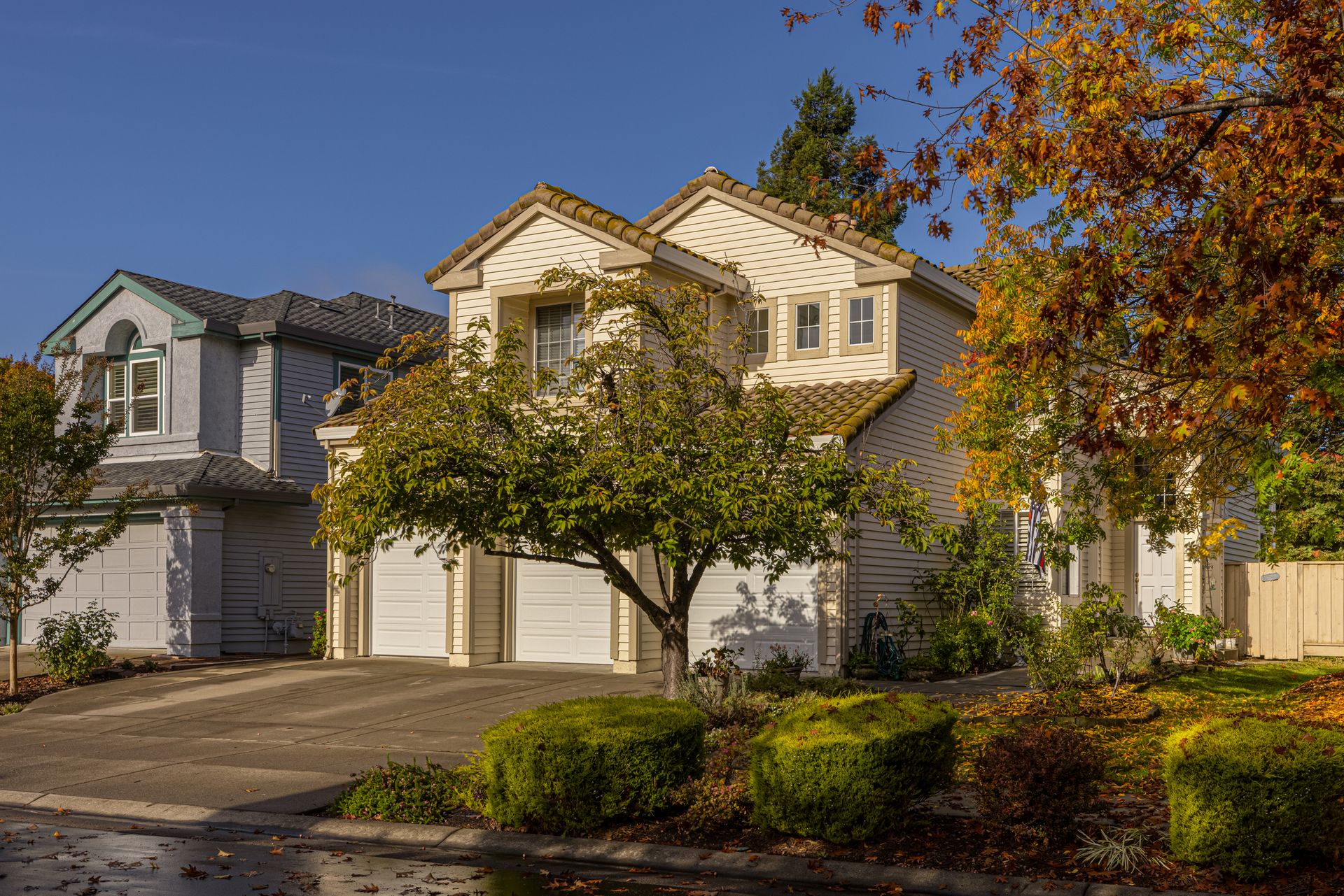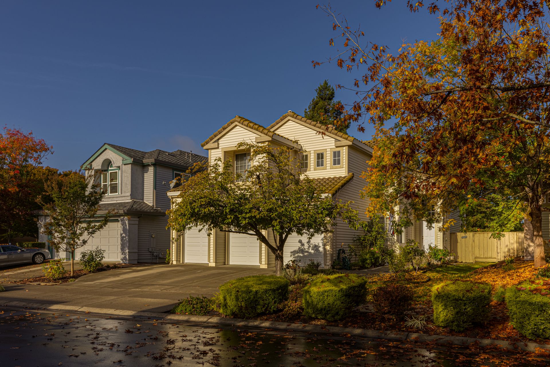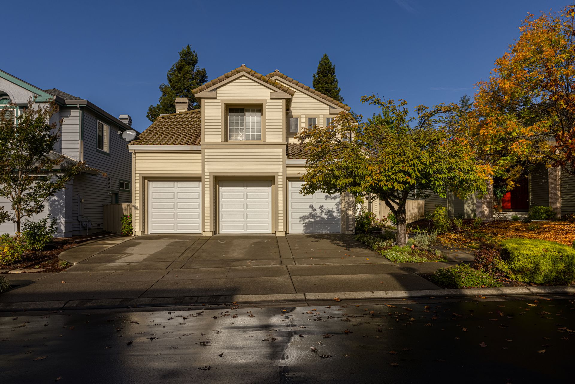 Welcome home to Adobe Creek's desirable neighborhood with cobblestone streets, large shade trees and walking paths. This approximately 2,621 square foot home located on a roughly 6,403 square foot lot was built in 1991 and boasts an open livable space with four bedrooms, three full bathrooms and an interior laundry room with a sink. The dramatic grand staircase provides elegance and style. One bedroom with a full bathroom is on the main level. Enjoy the large primary suite with a fireplace, views, a walk-in closet and a primary bathroom. There are two additional bedrooms and one full bathroom upstairs as well. Entertain in the living room and dining room or in the family room with a fireplace. The large kitchen with an island and garden window offers views. Other features include high ceilings, hardwood floors and many windows, flooding the home with natural light. A three-car garage and A/C are also available. The relaxing, private backyard includes a deck, flagstone patio and mature landscaping. This impeccable maintained home shows pride of ownership.
