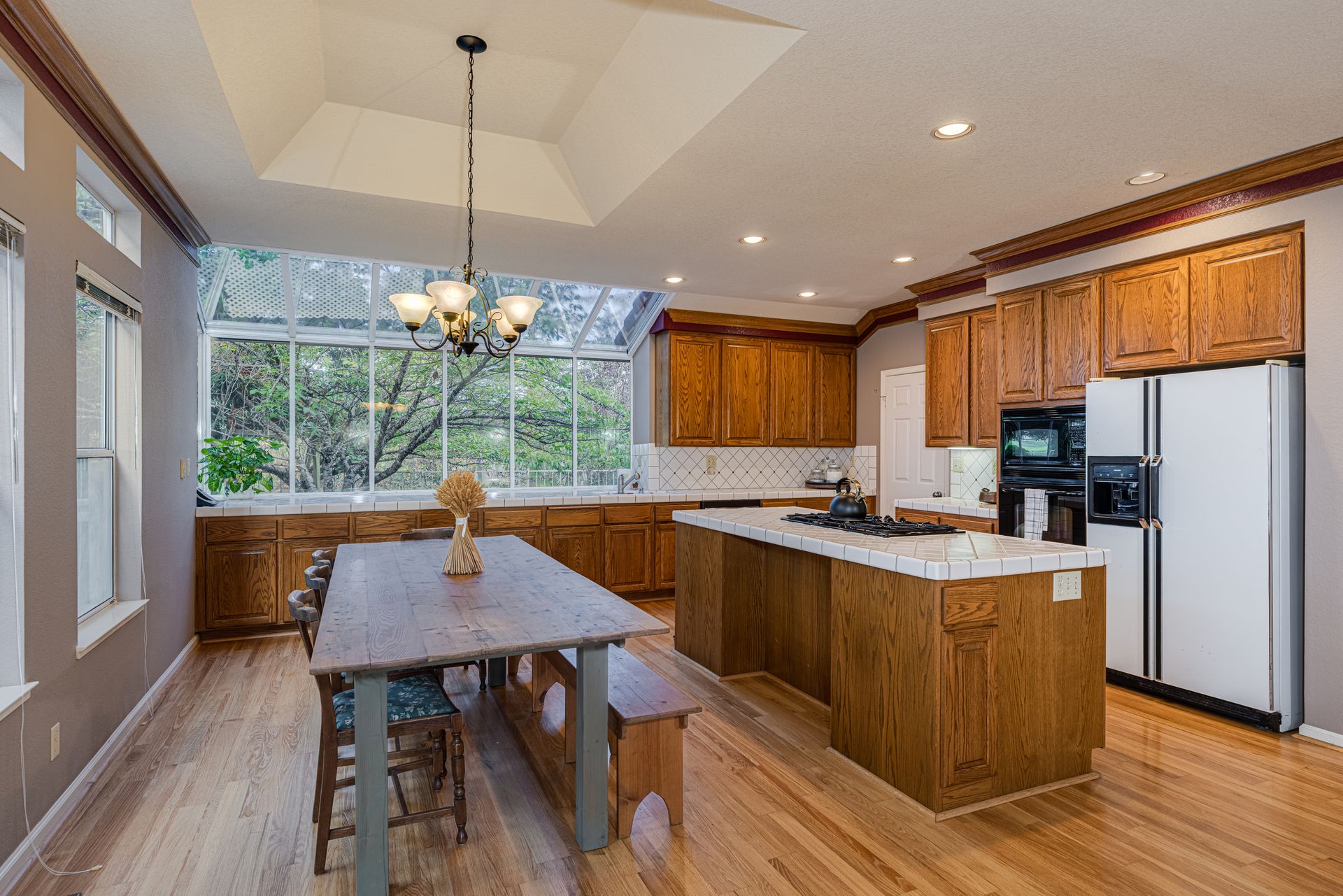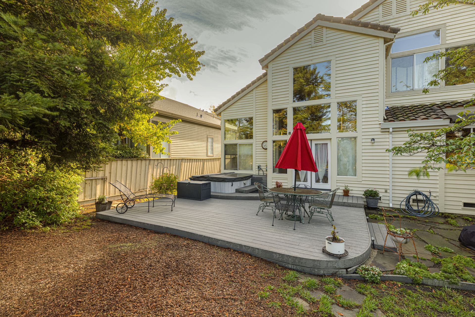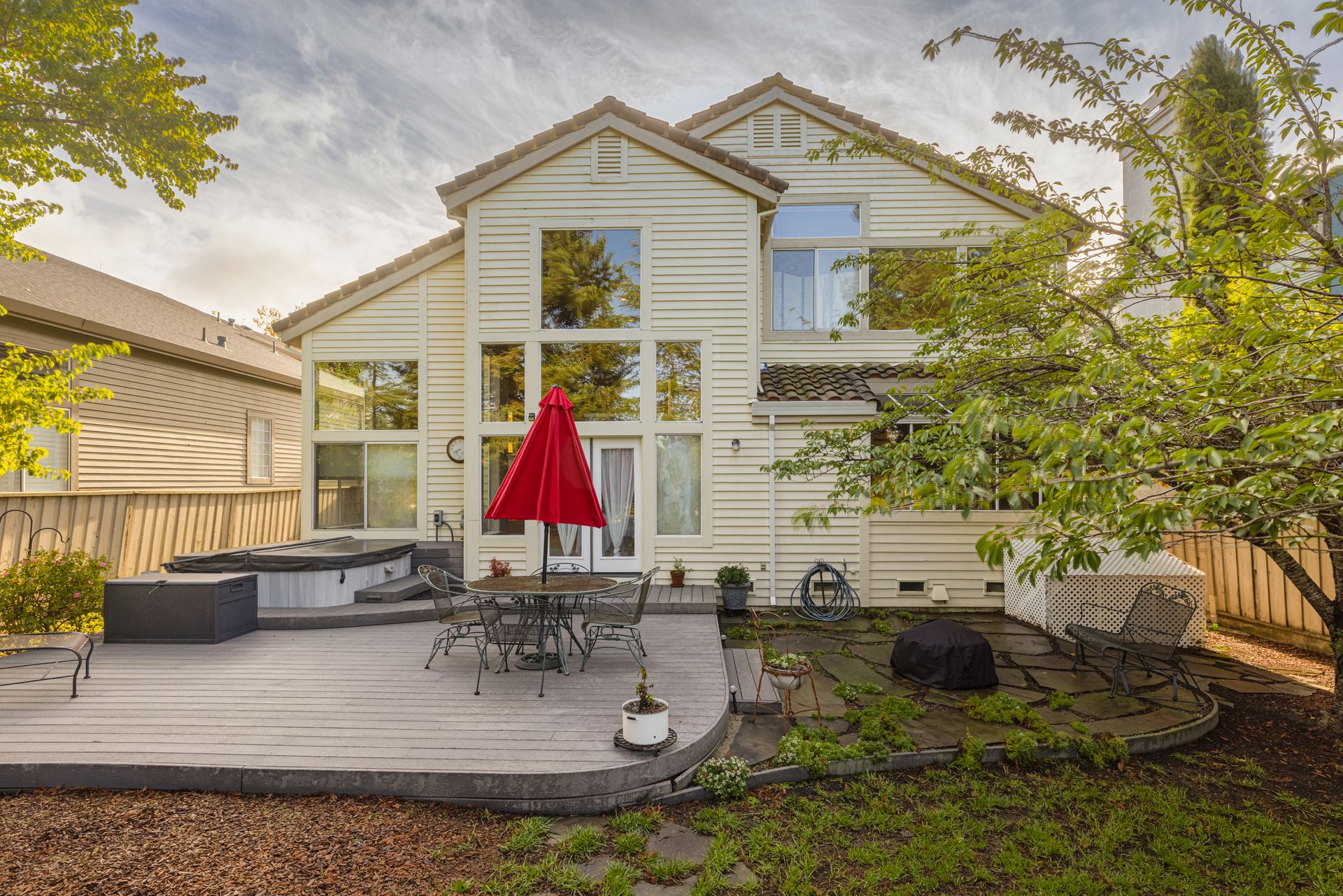Welcome home to Adobe Creek's desirable neighborhood with cobblestone streets, large shade trees and walking paths. This approximately 2,621 square foot home located on a roughly 6,403 square foot lot was built in 1991 and boasts an open livable space with four bedrooms, three full bathrooms and an interior laundry room with a sink. The dramatic grand staircase provides elegance and style. One bedroom with a full bathroom is on the main level. Enjoy the large primary suite with a fireplace, views, a walk-in closet and a primary bathroom. There are two additional bedrooms and one full bathroom upstairs as well. Entertain in the living room and dining room or in the family room with a fireplace. The large kitchen with an island and garden window offers views. Other features include high ceilings, hardwood floors and many windows, flooding the home with natural light. A three-car garage and A/C are also available. The relaxing, private backyard includes a deck, flagstone patio and mature landscaping. This impeccable maintained home shows pride of ownership.