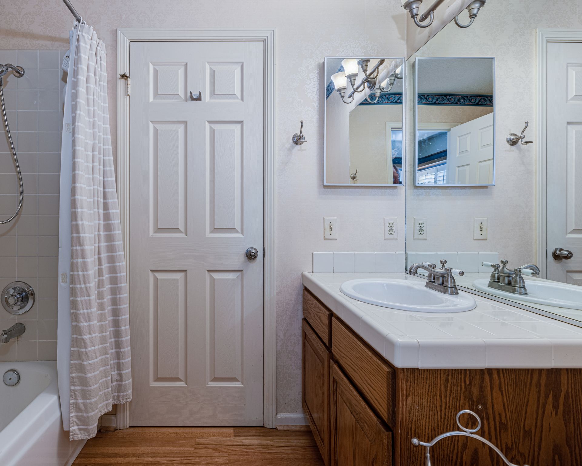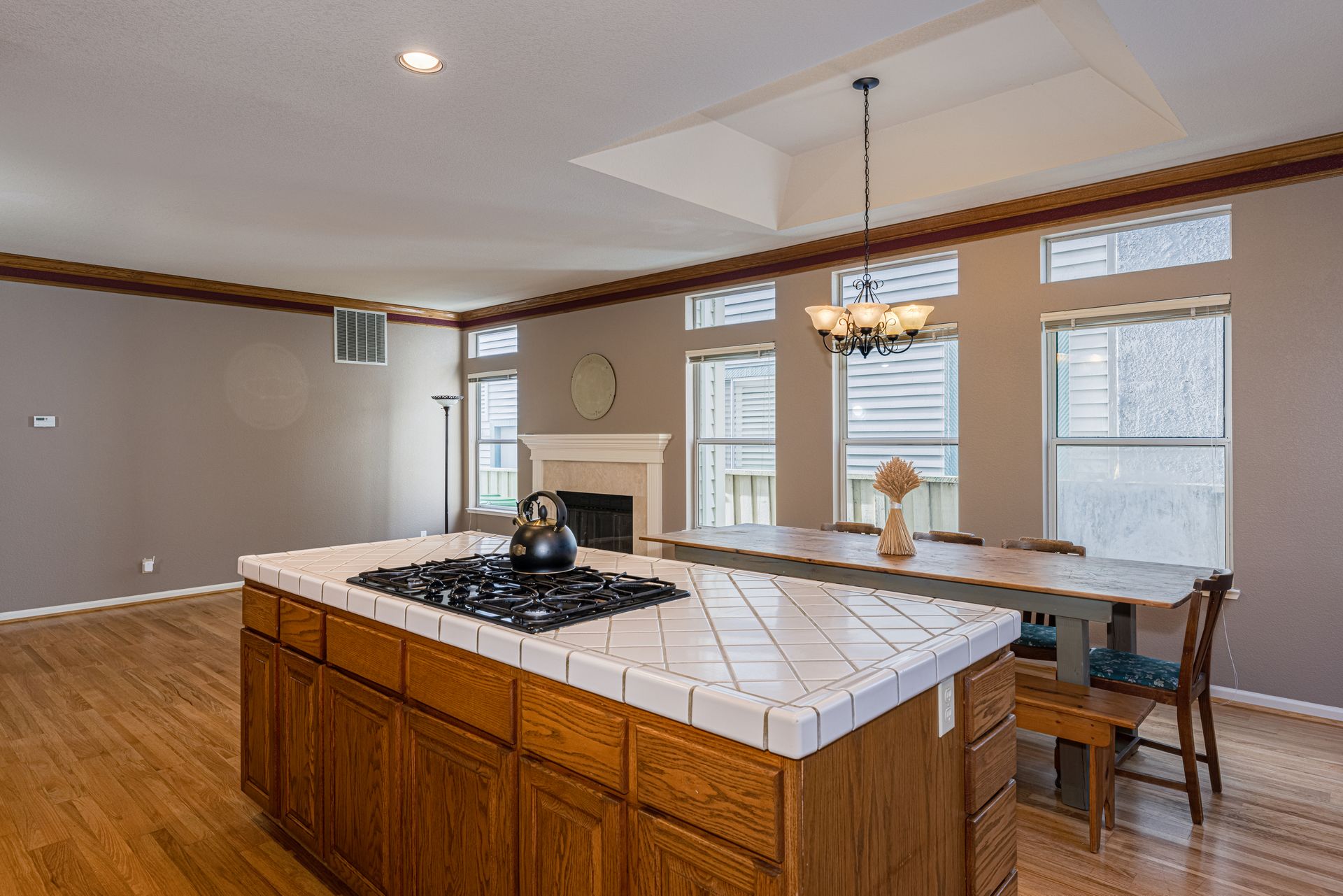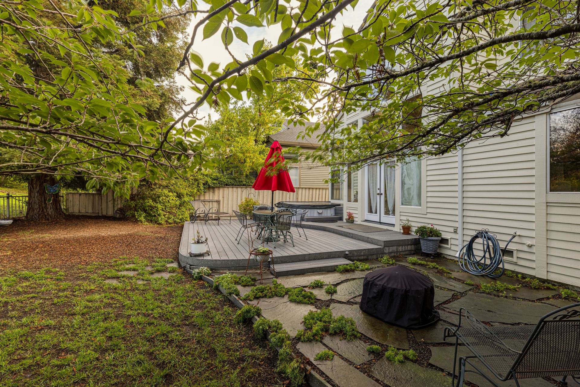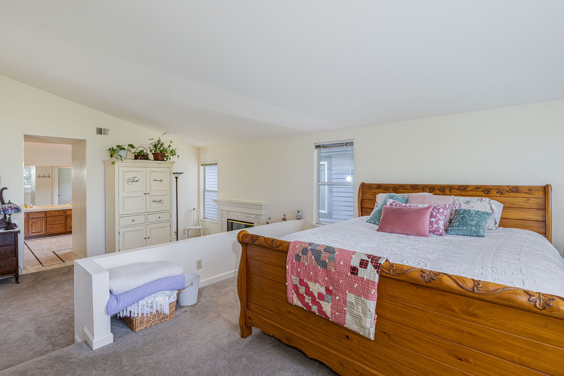 Welcome home to Adobe Creek's desirable neighborhood with cobblestone streets, large shade trees and walking paths. This approximately 2,621 square foot home located on a roughly 6,403 square foot lot was built in 1991 and boasts an open livable space with four bedrooms, three full bathrooms and an interior laundry room with a sink. The dramatic grand staircase provides elegance and style. One bedroom with a full bathroom is on the main level. Enjoy the large primary suite with a fireplace, views, a walk-in closet and a primary bathroom. There are two additional bedrooms and one full bathroom upstairs as well. Entertain in the living room and dining room or in the family room with a fireplace. The large kitchen with an island and garden window offers views. Other features include high ceilings, hardwood floors and many windows, flooding the home with natural light. A three-car garage and A/C are also available. The relaxing, private backyard includes a deck, flagstone patio and mature landscaping. This impeccable maintained home shows pride of ownership.