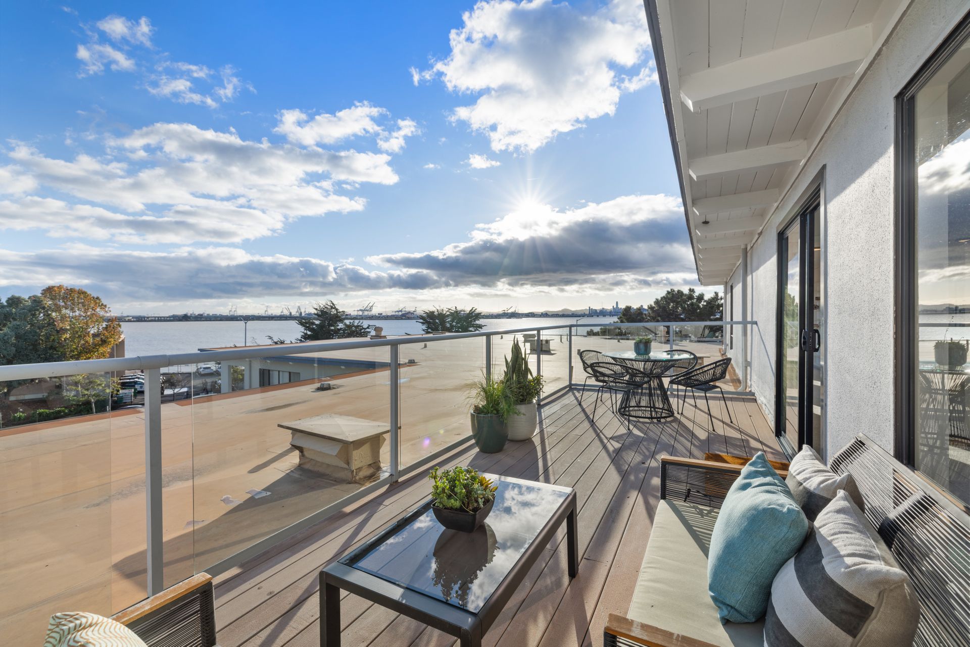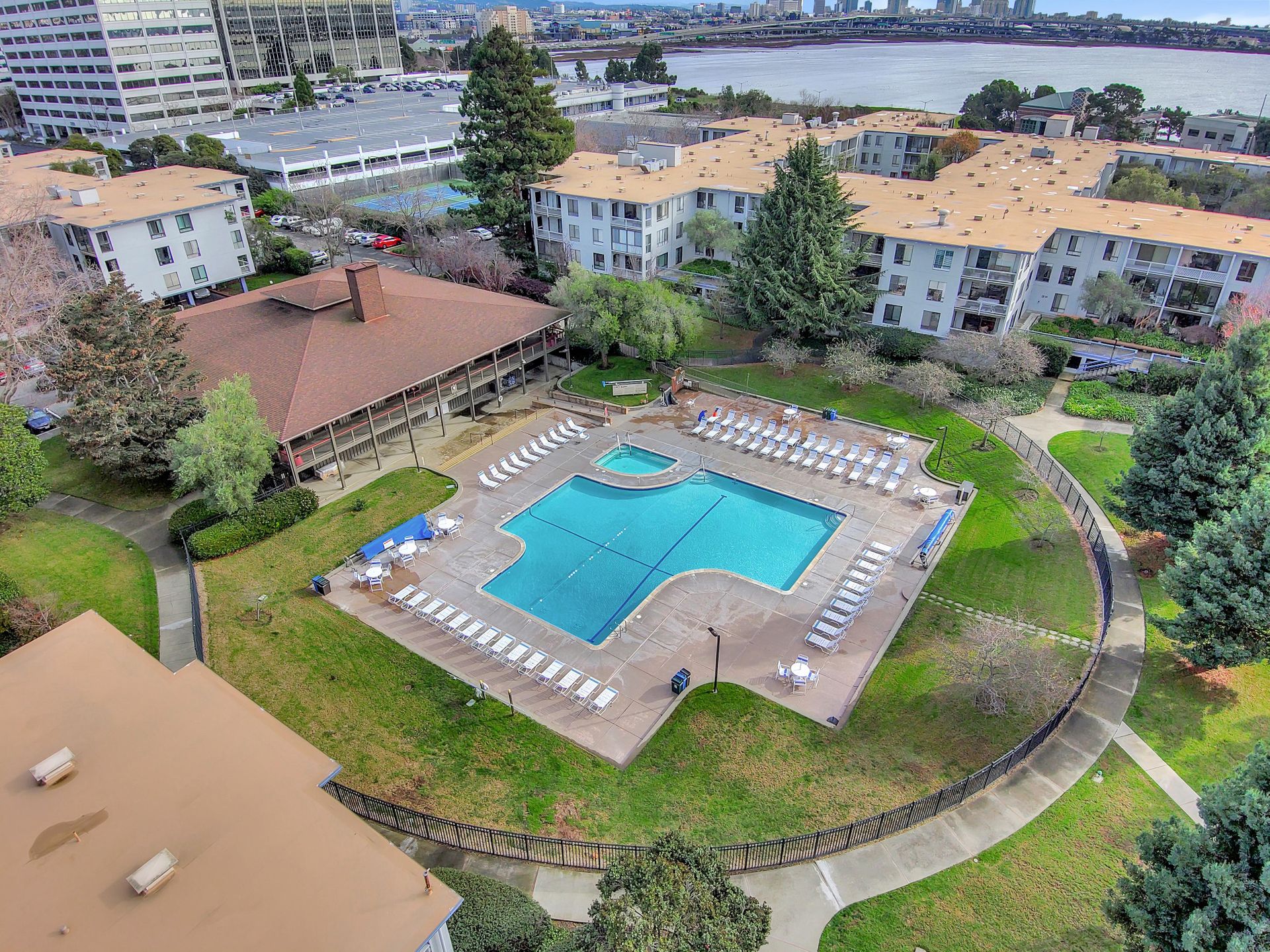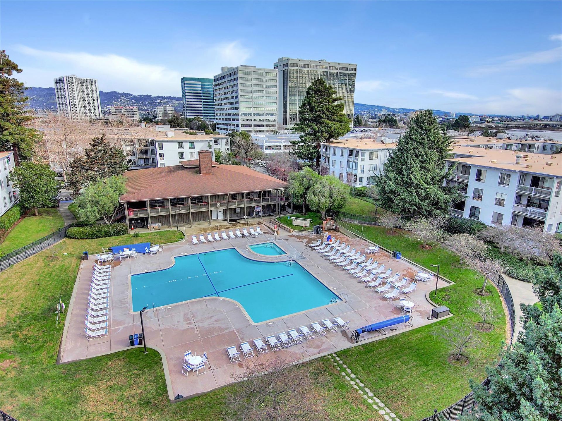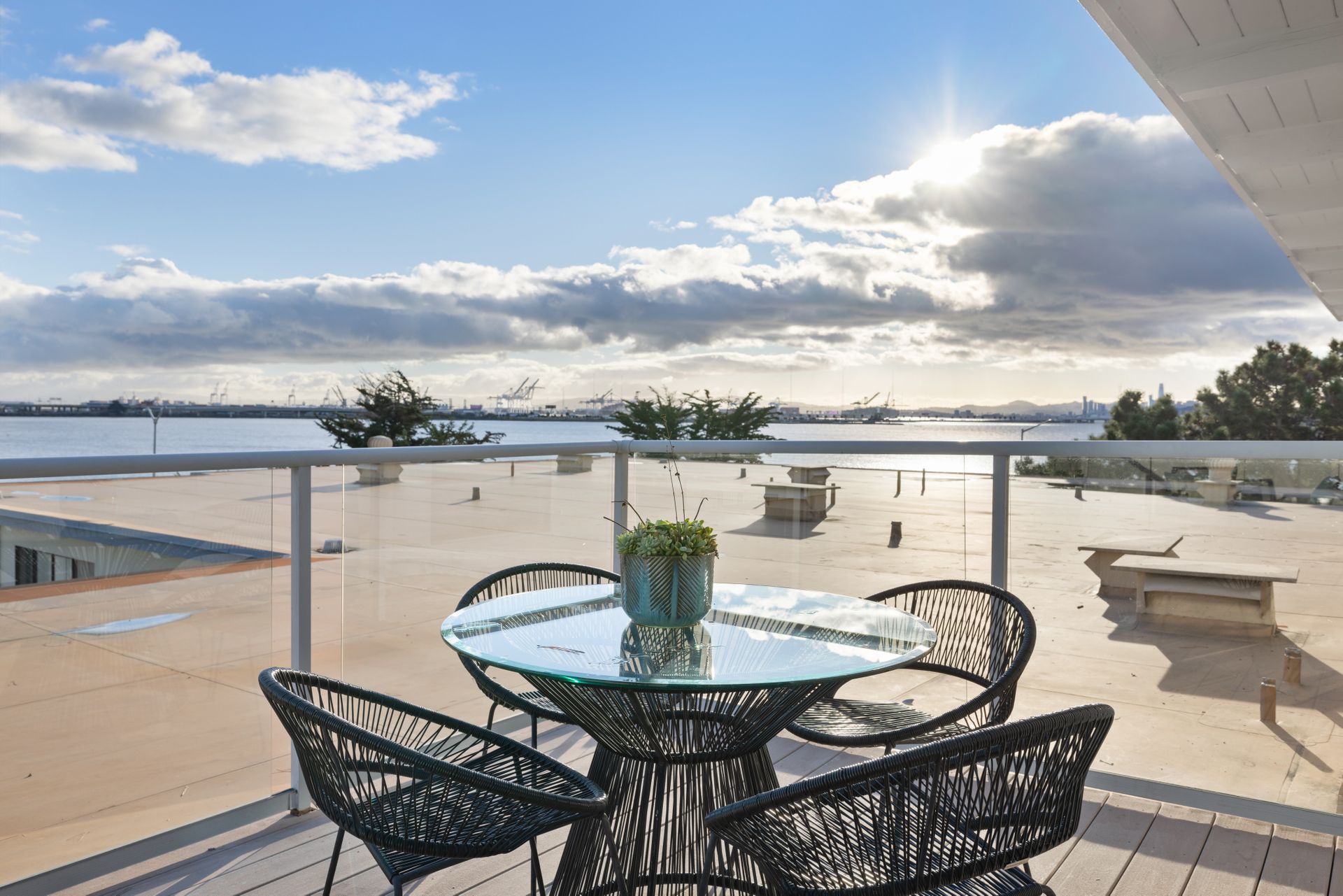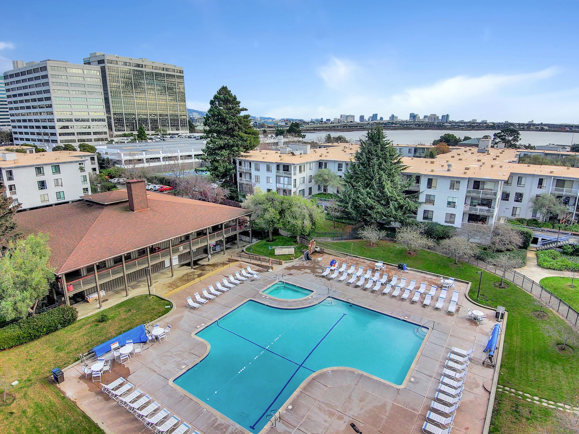 Welcome to this rare, large, top floor, sun-filled end unit. Enjoy a private deck looking over the Bay to San Francisco. The primary suite has two walk-in closets. Built-ins galore! Bookcases and tons of storage. There is an in-unit storage off the deck. Enjoy resort-style living minute from San Francisco Bay Bridge. You are also moments away from restaurants, shopping, pools, workout gyms, pool tables, tennis courts and more! All designer refreshed includes newly installed appliances, carpets, butcher block countertops, newer lighting throughout, bathrooms and kitchen updates, all painted and ready to go!