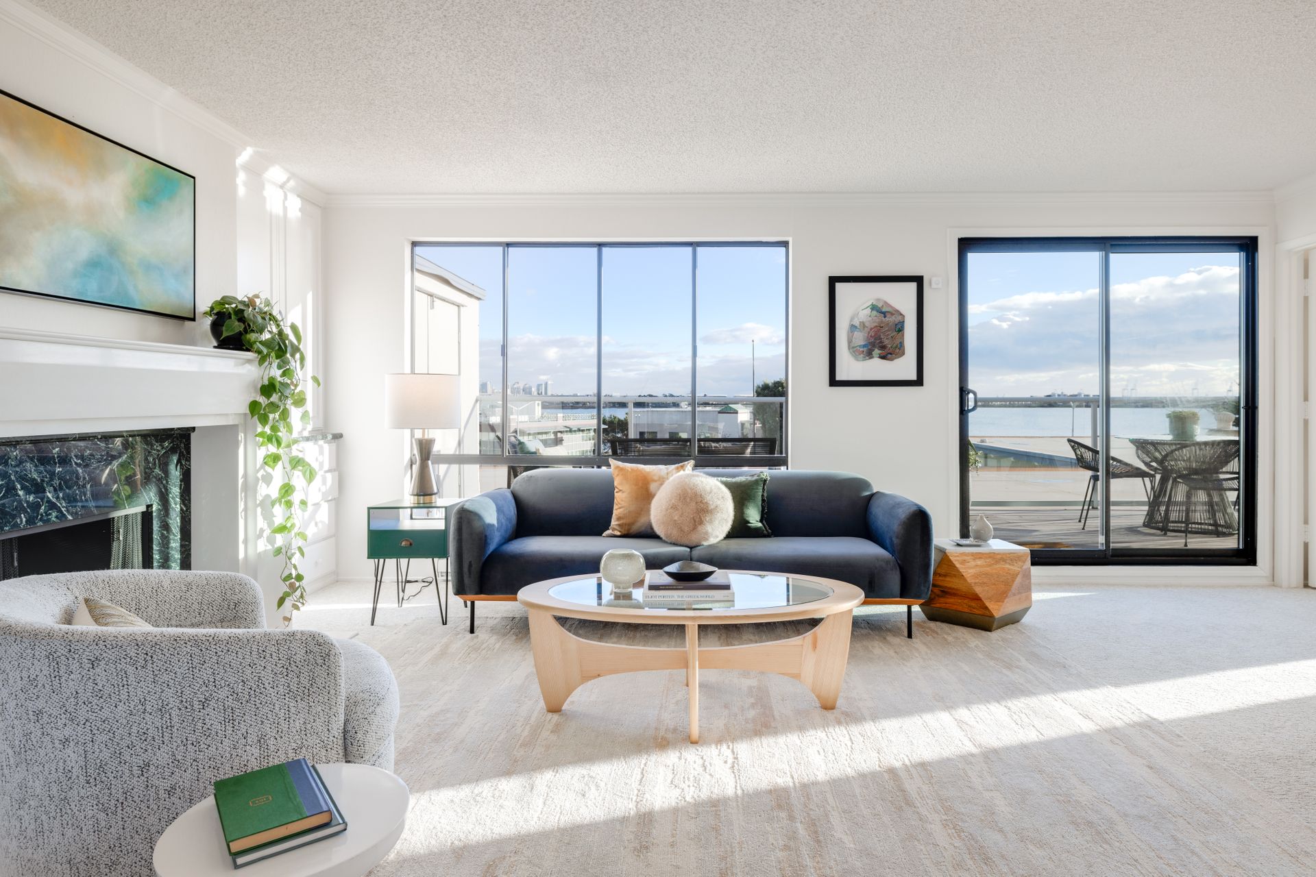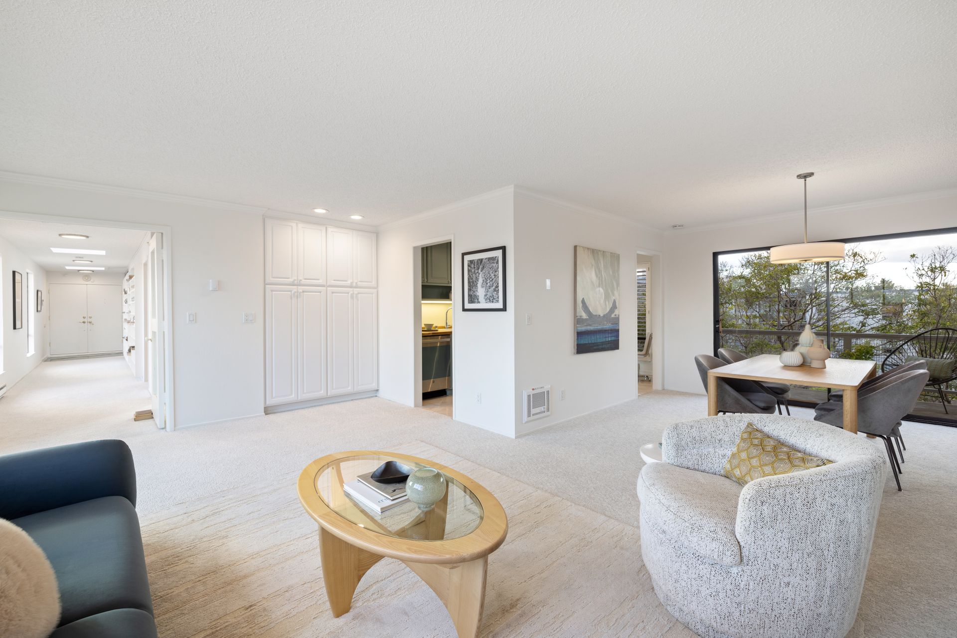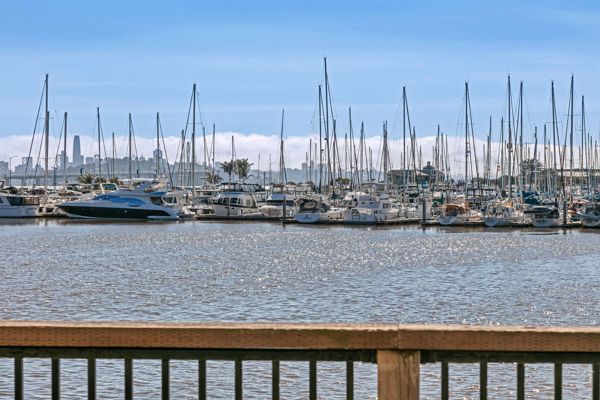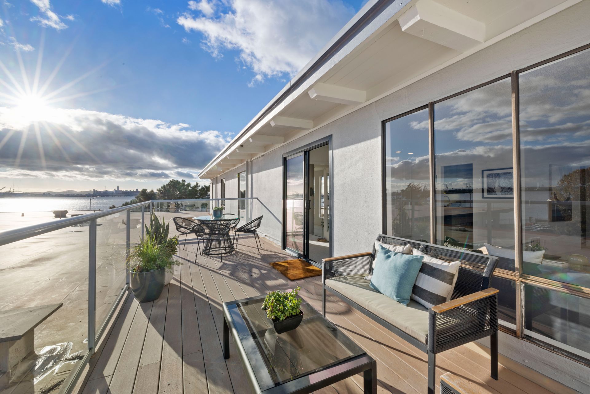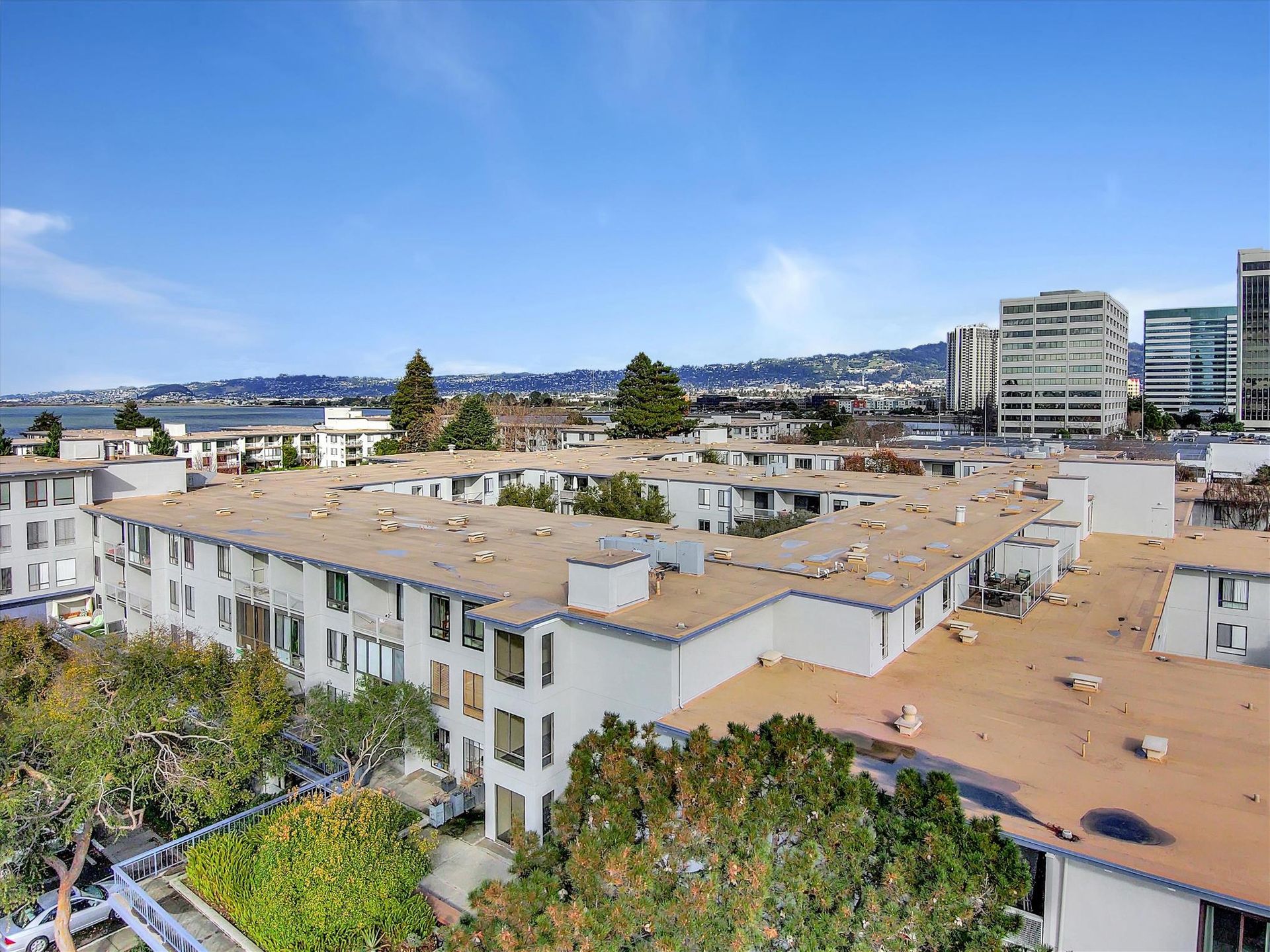 Welcome to this rare, large, top floor, sun-filled end unit. Enjoy a private deck looking over the Bay to San Francisco. The primary suite has two walk-in closets. Built-ins galore! Bookcases and tons of storage. There is an in-unit storage off the deck. Enjoy resort-style living minute from San Francisco Bay Bridge. You are also moments away from restaurants, shopping, pools, workout gyms, pool tables, tennis courts and more! All designer refreshed includes newly installed appliances, carpets, butcher block countertops, newer lighting throughout, bathrooms and kitchen updates, all painted and ready to go!