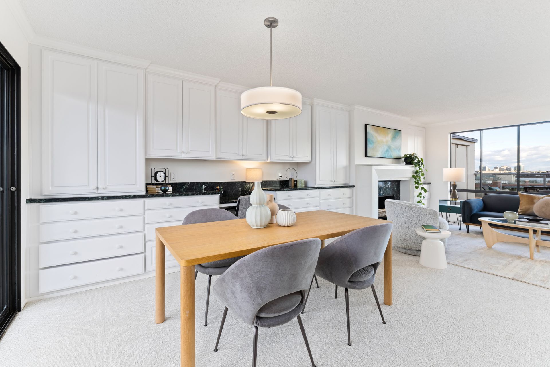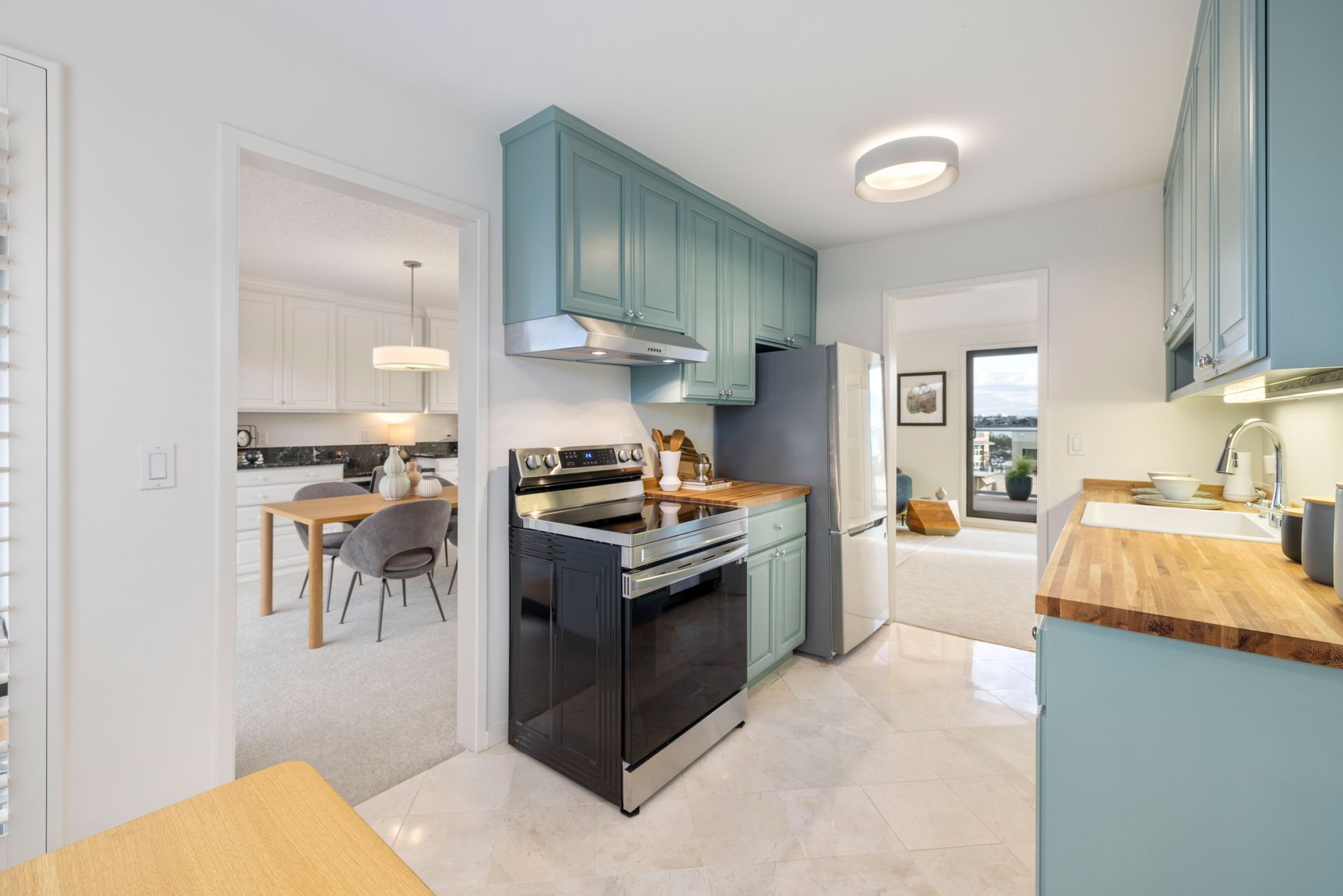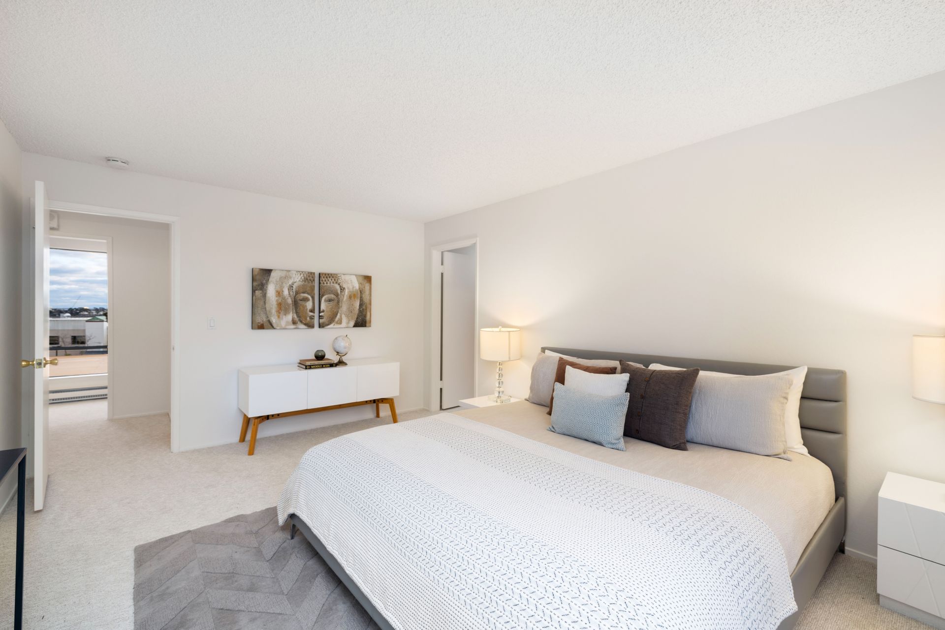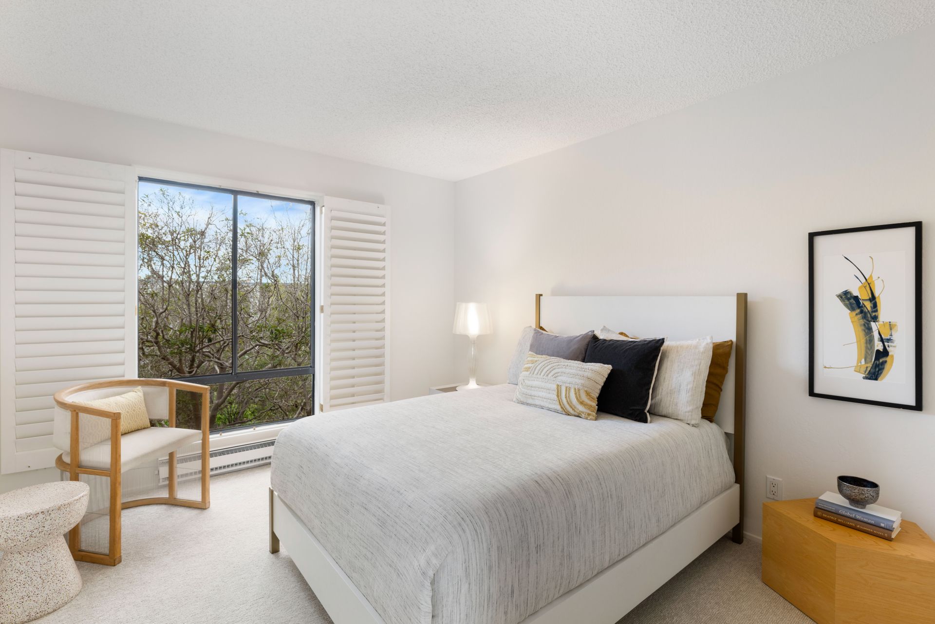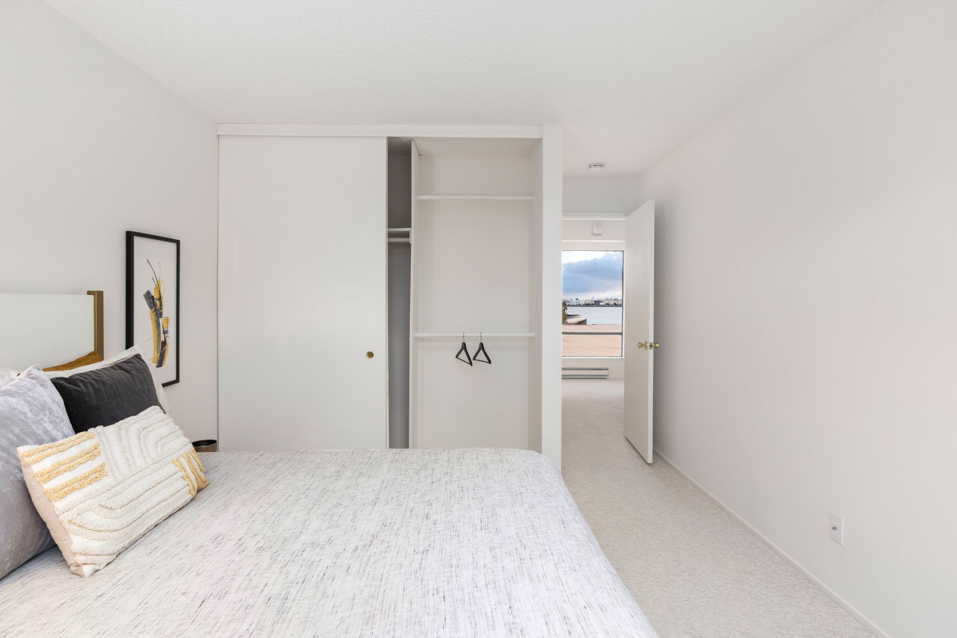 Welcome to this rare, large, top floor, sun-filled end unit. Enjoy a private deck looking over the Bay to San Francisco. The primary suite has two walk-in closets. Built-ins galore! Bookcases and tons of storage. There is an in-unit storage off the deck. Enjoy resort-style living minute from San Francisco Bay Bridge. You are also moments away from restaurants, shopping, pools, workout gyms, pool tables, tennis courts and more! All designer refreshed includes newly installed appliances, carpets, butcher block countertops, newer lighting throughout, bathrooms and kitchen updates, all painted and ready to go!
