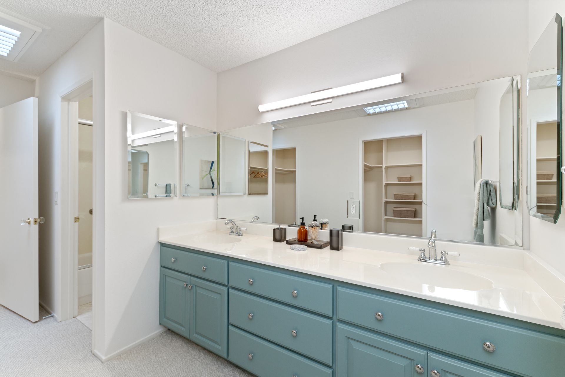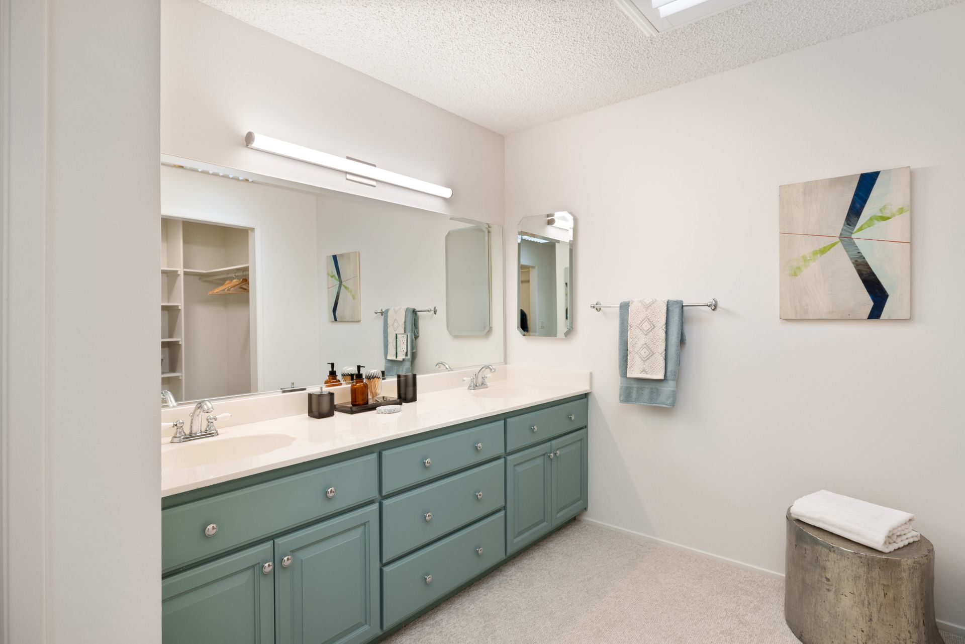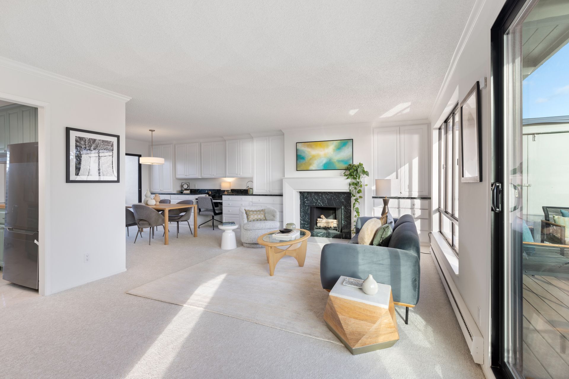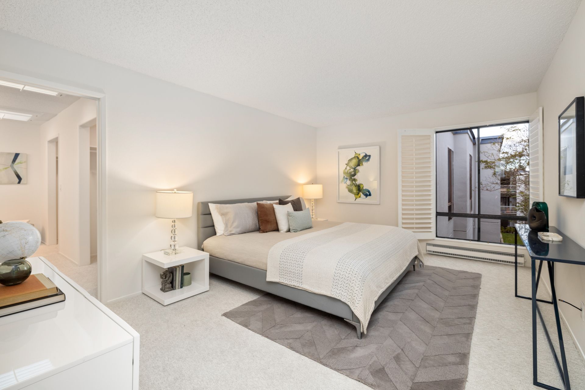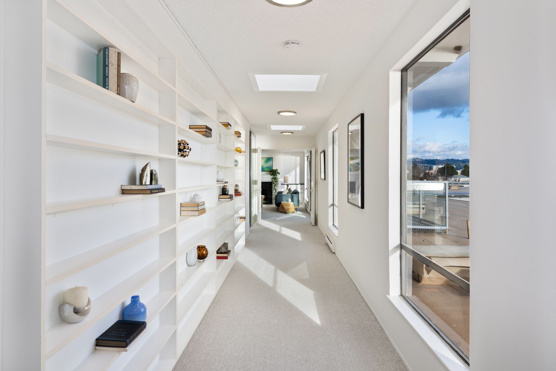 Welcome to this rare, large, top floor, sun-filled end unit. Enjoy a private deck looking over the Bay to San Francisco. The primary suite has two walk-in closets. Built-ins galore! Bookcases and tons of storage. There is an in-unit storage off the deck. Enjoy resort-style living minute from San Francisco Bay Bridge. You are also moments away from restaurants, shopping, pools, workout gyms, pool tables, tennis courts and more! All designer refreshed includes newly installed appliances, carpets, butcher block countertops, newer lighting throughout, bathrooms and kitchen updates, all painted and ready to go!
