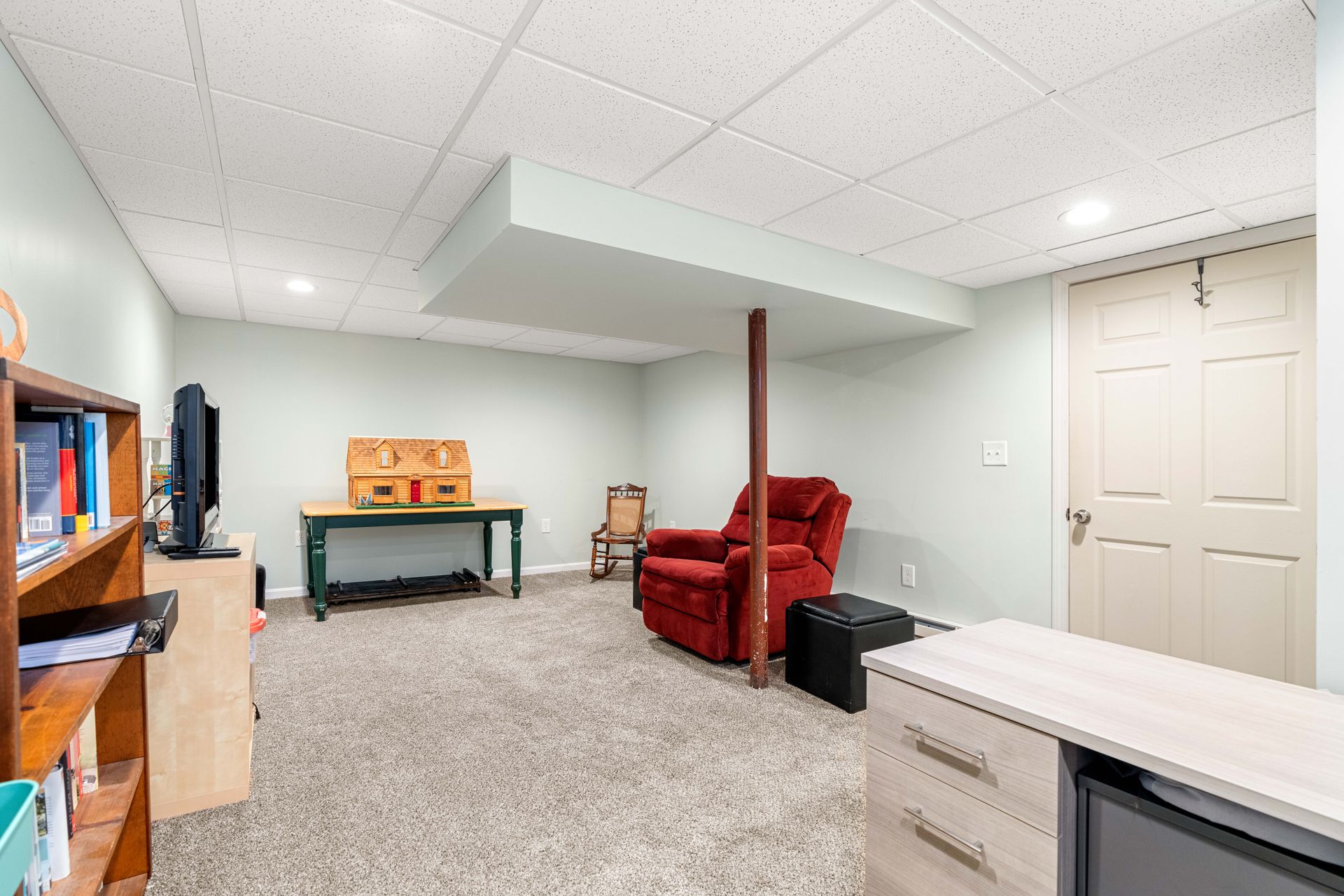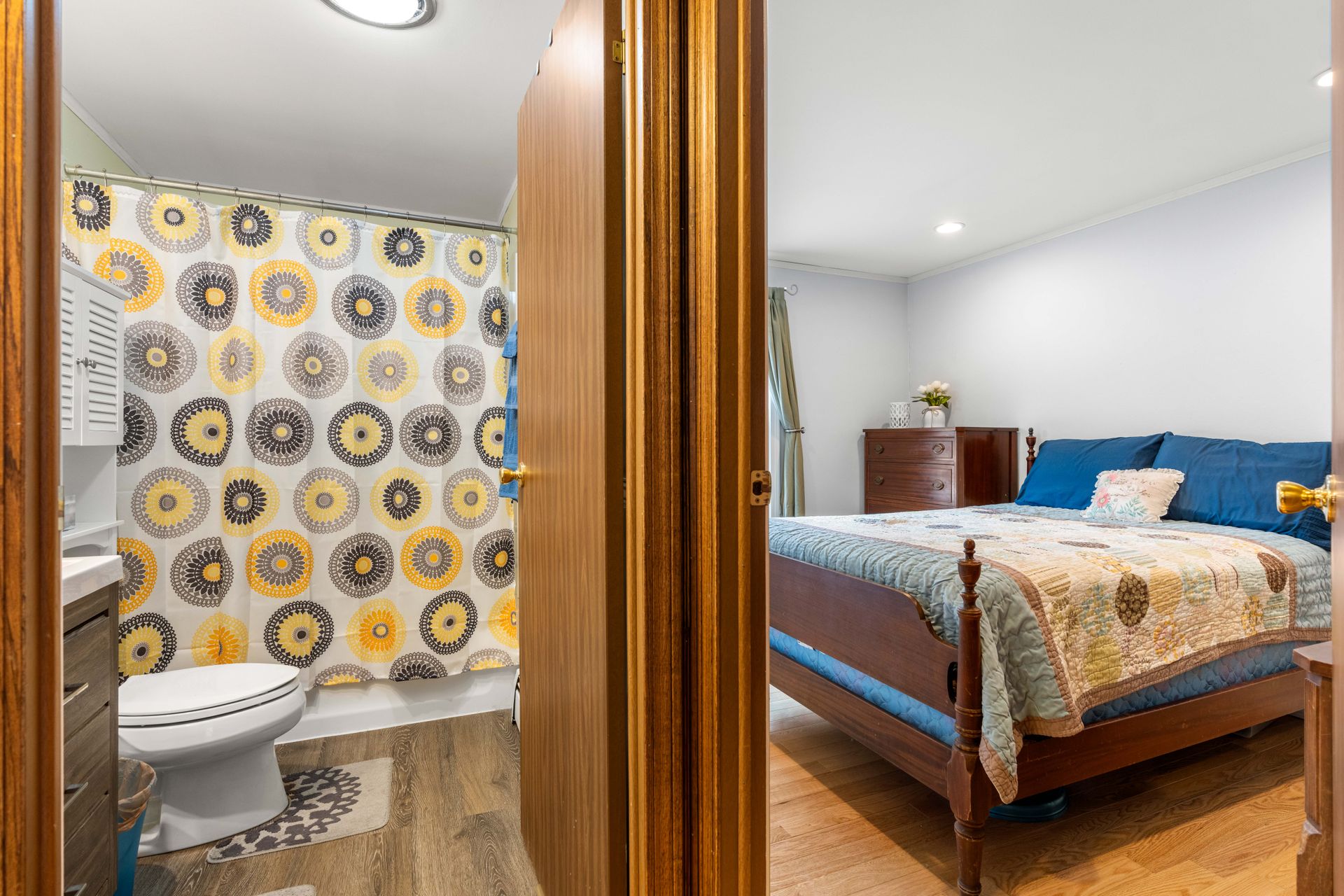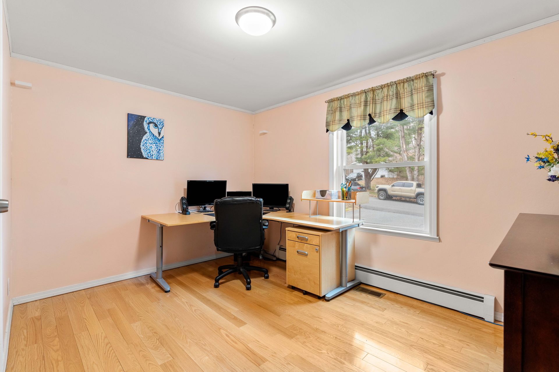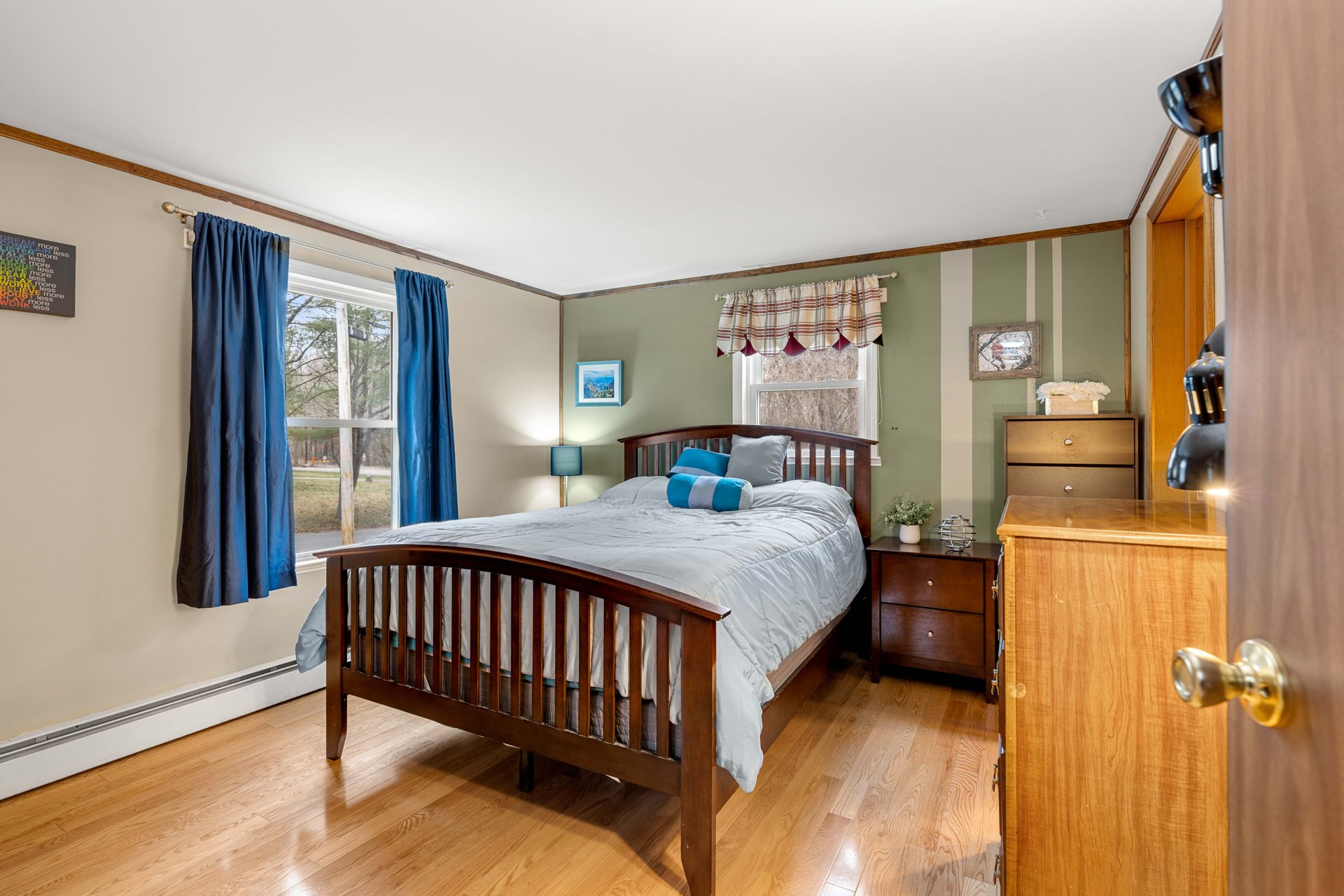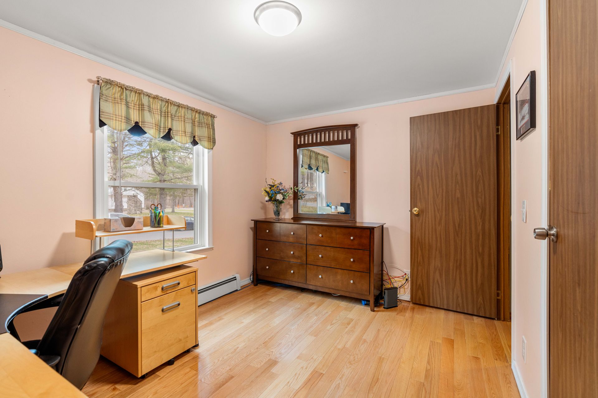 Charming single-level home with the following great features: Open floor plan, layout provides a spacious feel and facilitates easy movement between rooms. The vaulted ceilings with exposed beams add character and visual interest to the living space. The kitchen is modernized with ample cabinetry, stainless steel appliances, and granite countertops, offering functionality and style. The bathrooms have been renovated. The hardwood floors throughout most of the home provide durability, elegance, and easy maintenance. The basement offers plenty of storage space and an additional finished room, which could serve various purposes such as a home office, recreation room, or guest bedroom. Outside you will find the deck that provides space for relaxation and entertainment while overlooking the fenced-in backyard. The home abuts Conservation land and trails, providing opportunities for outdoor activities and enjoyment. Phillips Pond is close and provides further outdoor recreational opportunities and scenic views.