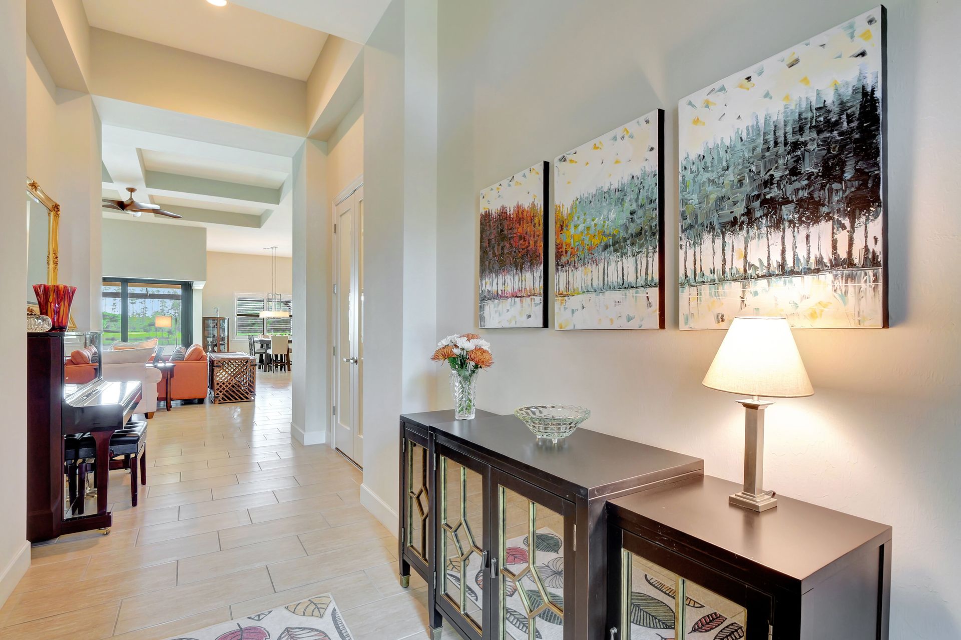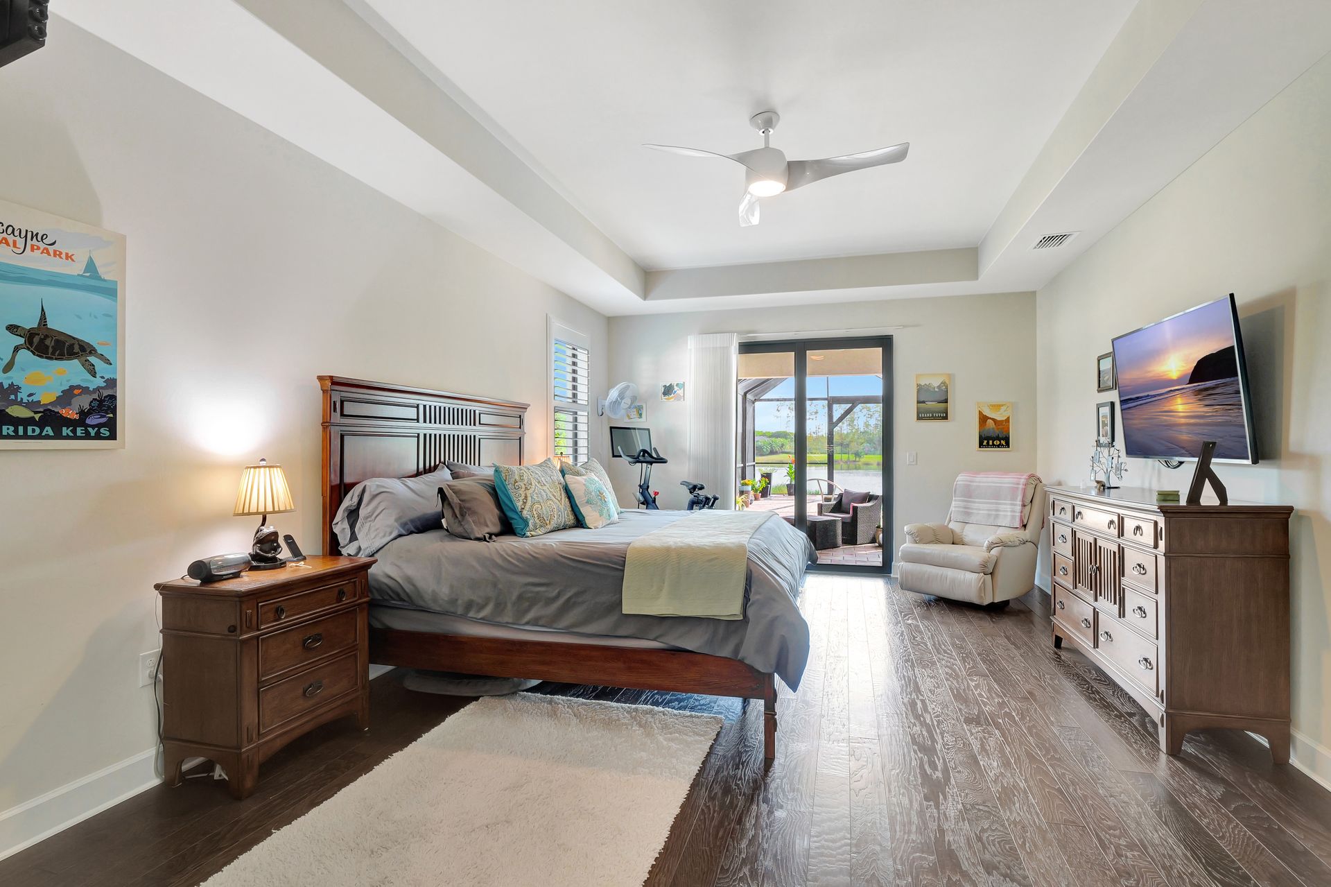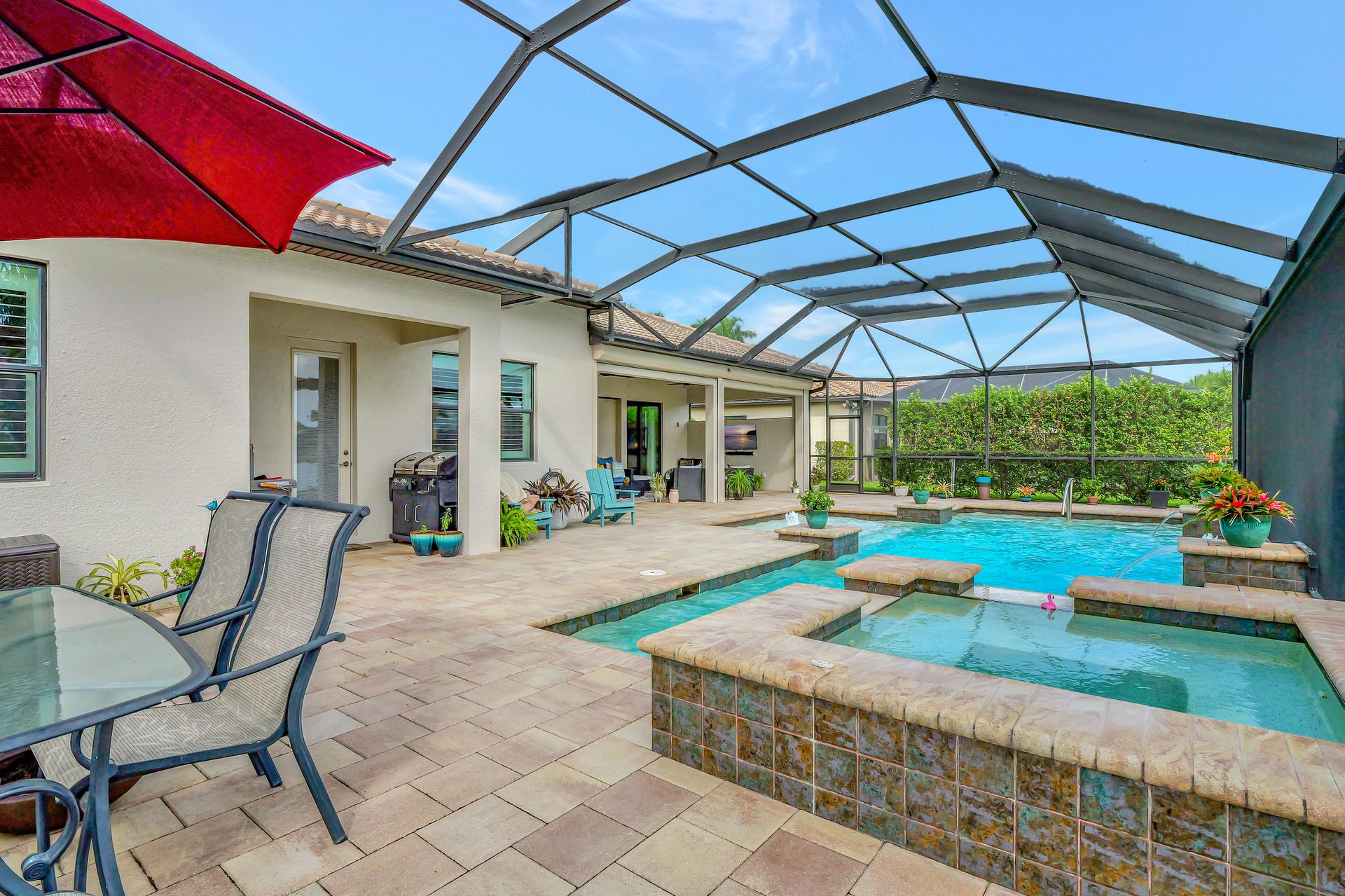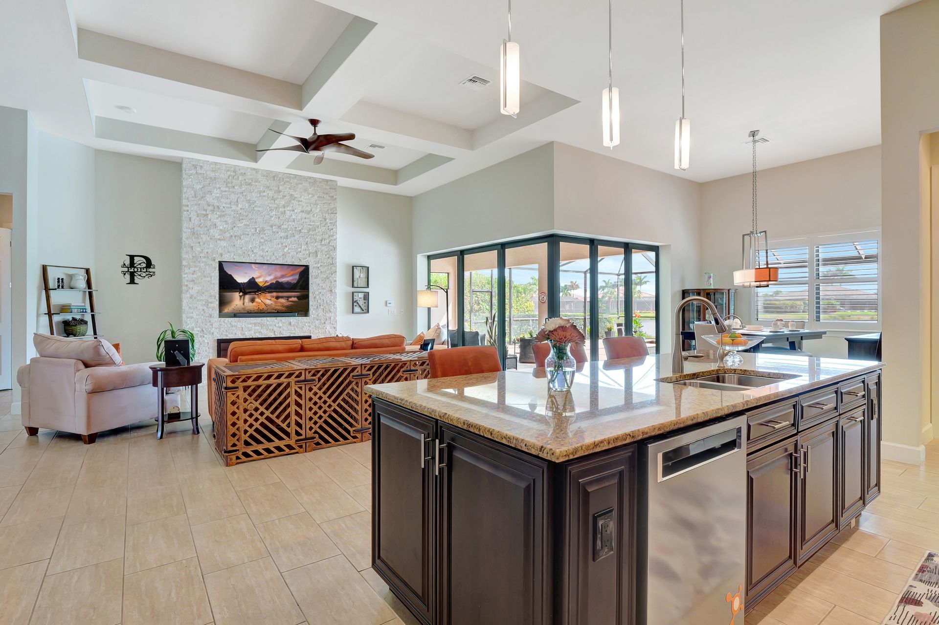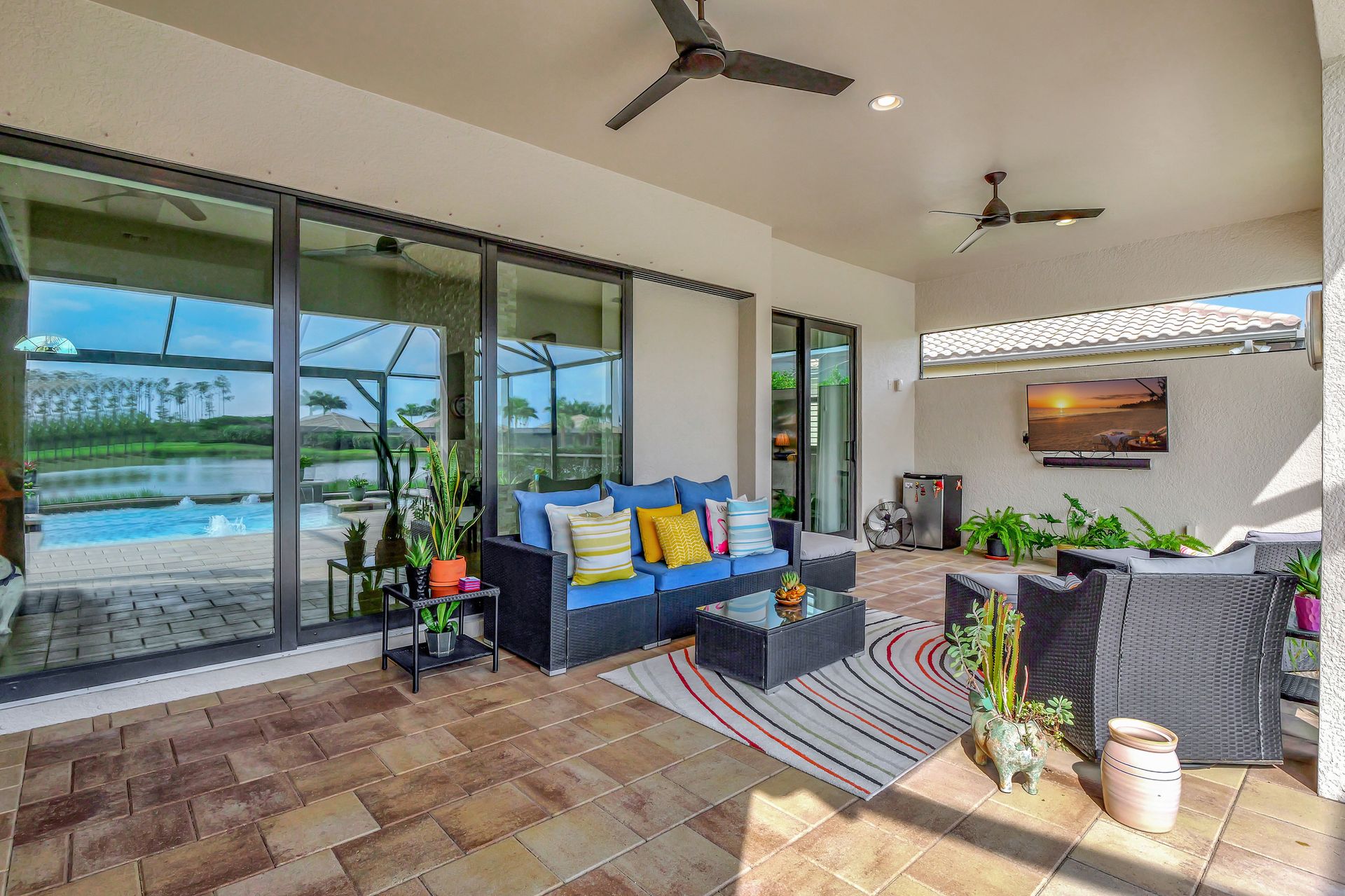Tucked inside the 'resort style' gated community - 'Preserve At Corkscrew'! Impressive the moment you pull up and see the brand-new exterior paint and lush tropical landscaping! 3,078 sq ft under air and a total of almost 6,000 sq ft total of living/entertaining space. The open floor plan welcomes you with trayed volume ceilings and instant 'water views' of the gleaming lake. Indoor/Outdoor intermingle the gathering spaces with disappearing zero-corner sliding glass doors inviting you to the covered, panoramic screened lanai area (plumbed for an outdoor kitchen). The outdoor oasis boasts an expansive, salt-water pool with a heated spa. Relax in the tranquility of the bubblers and waterfalls - all with views of the lake and wildlife. Four bedrooms, two home offices/dens and three full baths (including a pool bath). Double French doors open to the fabulous primary retreat offering (2) custom closets, a spa-like bath (with separate tub and shower) and glass doors to the pool. The three-car garage has custom storage and an epoxy-coated floor. Located in the Estates section on a low-traffic dead-end. Amenities included: resort-style pool, pickleball, tennis, fitness, outdoor fireplace and more. No flood insurance. Close to RSW airport, Hertz Arena, open-air shopping/dining, I-75, golf and beaches.