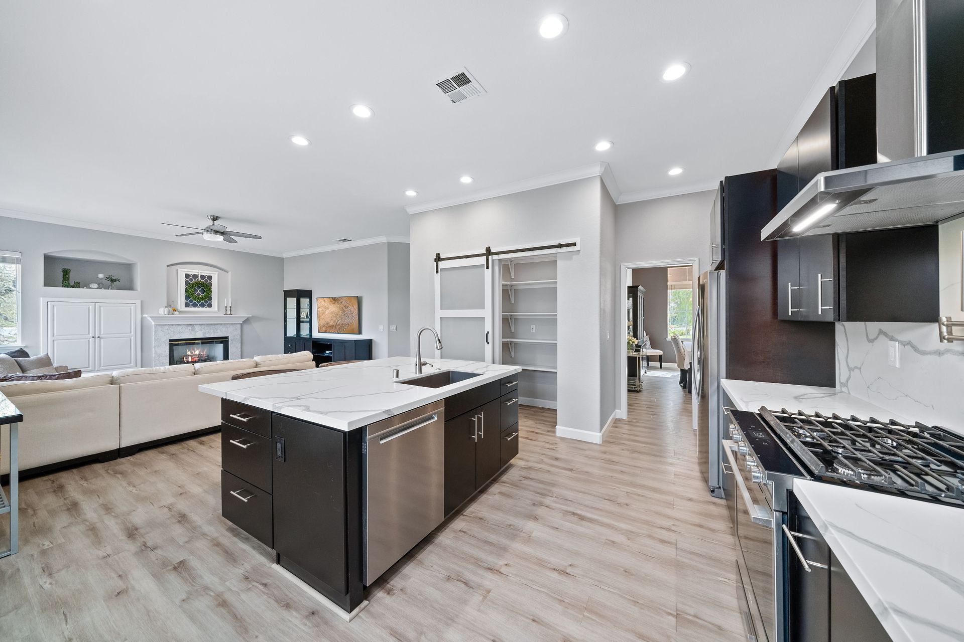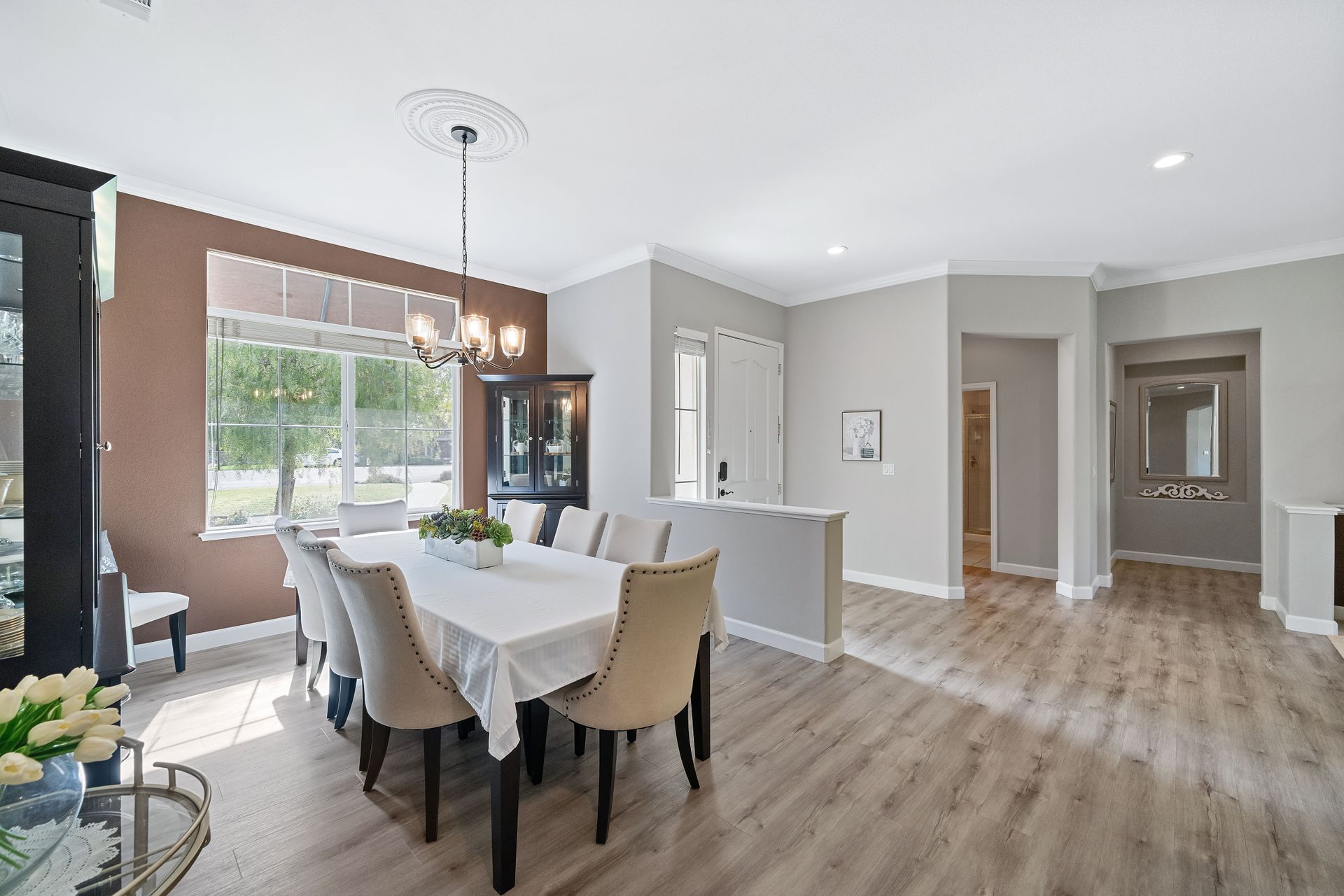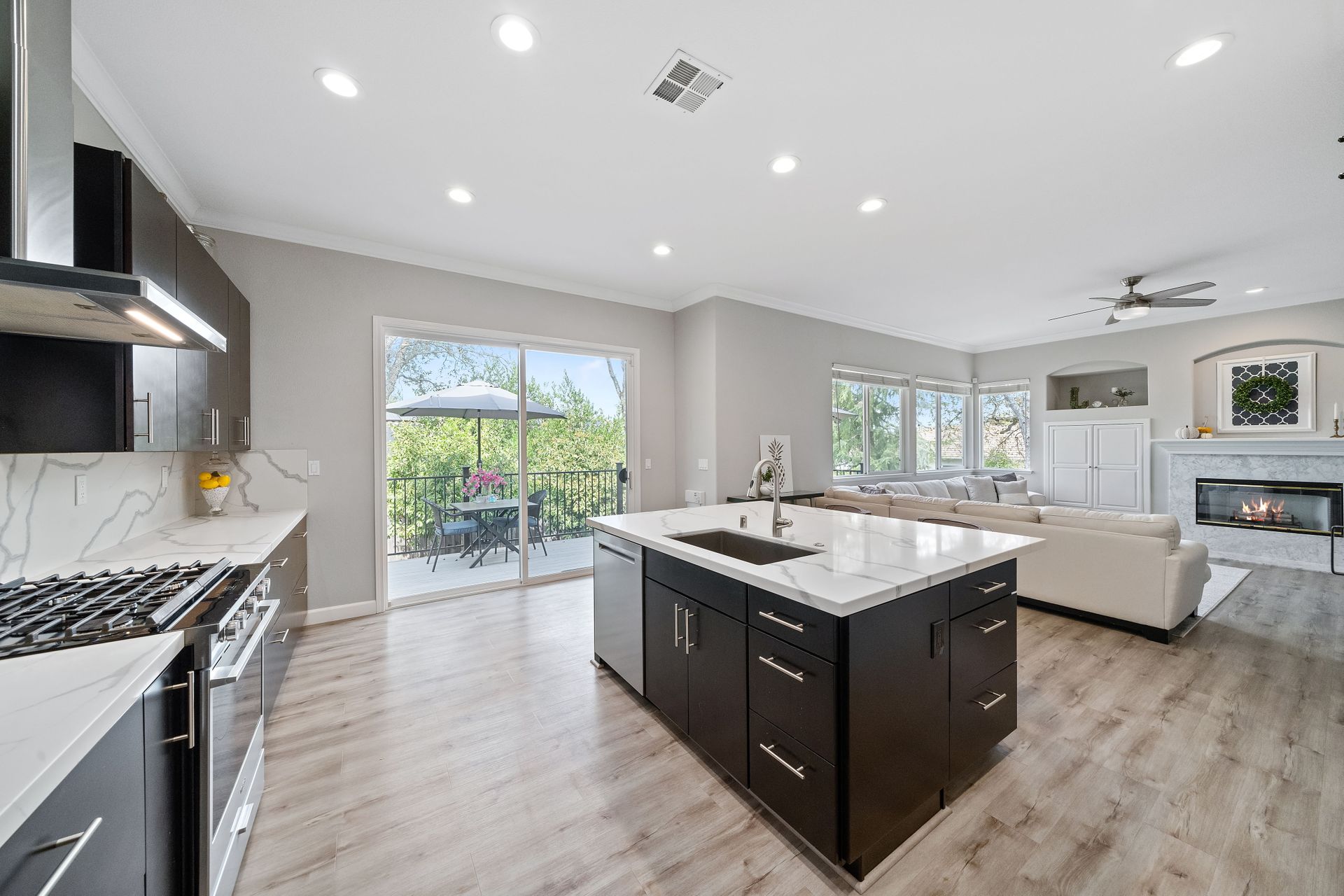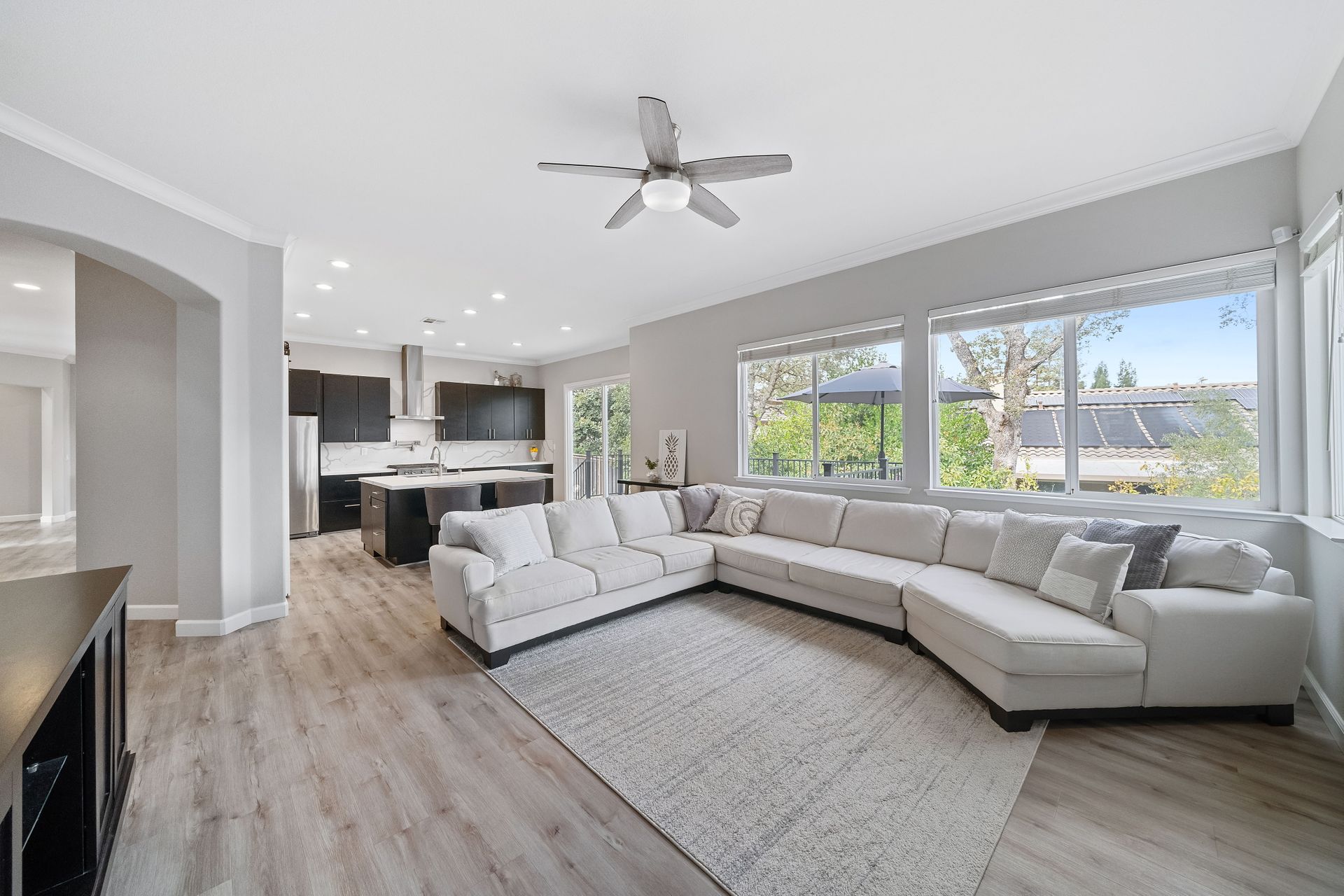 Inviting, single-story home, in a cul-de-sac in the popular Marina Woods Neighborhood, located close to schools K-8, parks and trails. As you first enter inside, you are greeted with a grand entryway, living room with soaring ceilings and a formal dining room, all illuminated by large windows. The completely remodeled chef's kitchen has quartz countertops, custom cabinetry and a walk-in pantry. The large primary retreat has a spacious bath, double vanities and a walk-in closet. This desirable open and bright floor plan boasts over 2,600 square feet of livable space, three bedrooms, three full bathrooms, plus a home office that can ideally serve as a fourth bedroom. Enjoy the oak-studded, serene, low maintenance yard with ample Trex decking. Additional features include a tankless hot water heater, Generac whole house generator and an updated HVAC. With a very low HOA and no Mello Roos, this contemporary home is a must see!