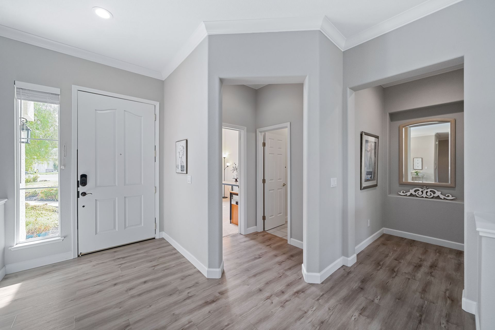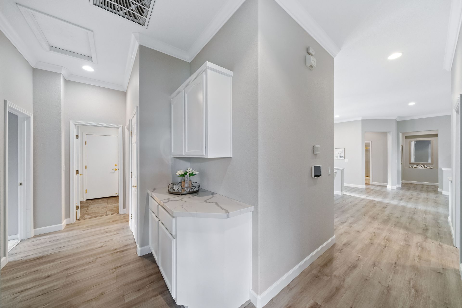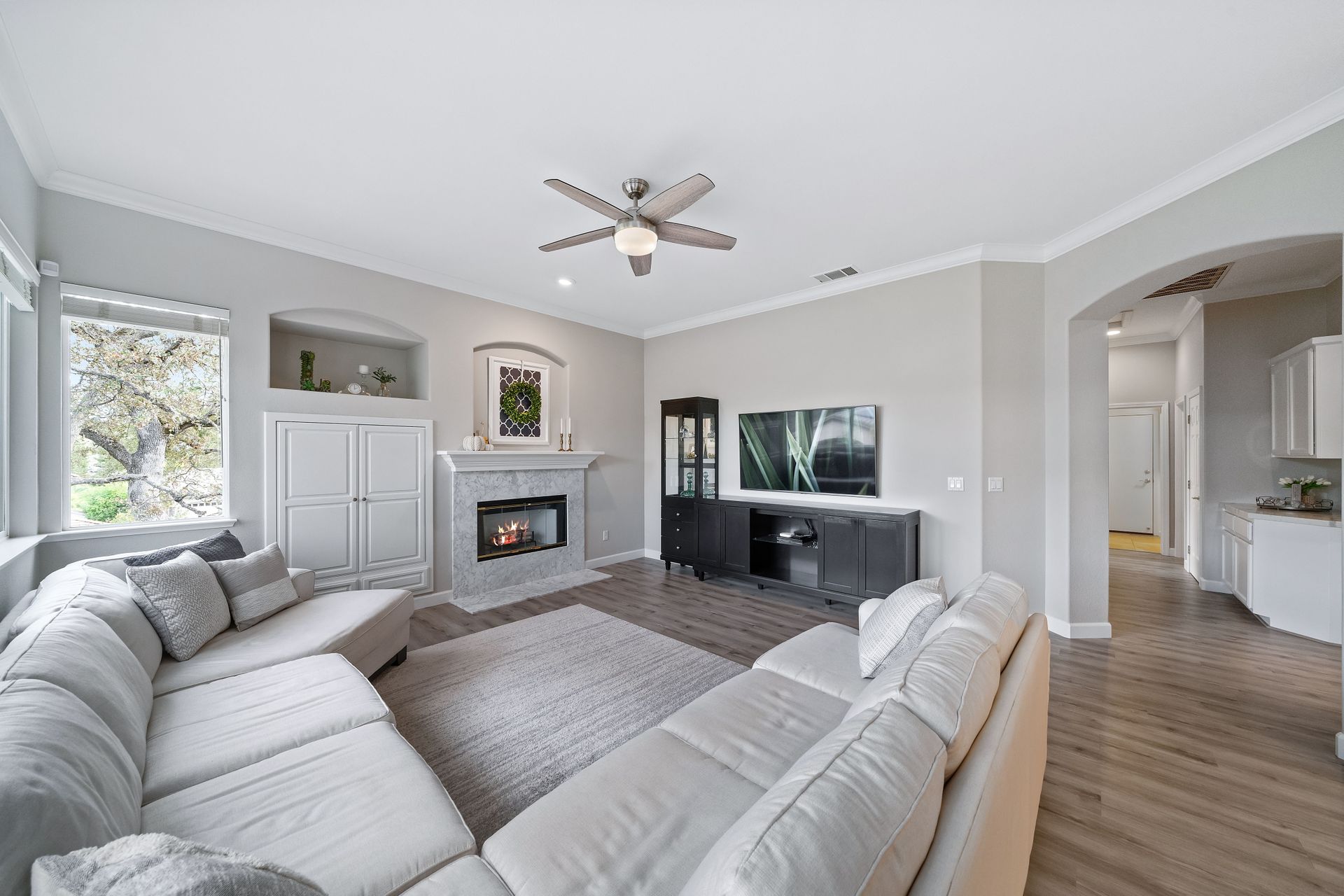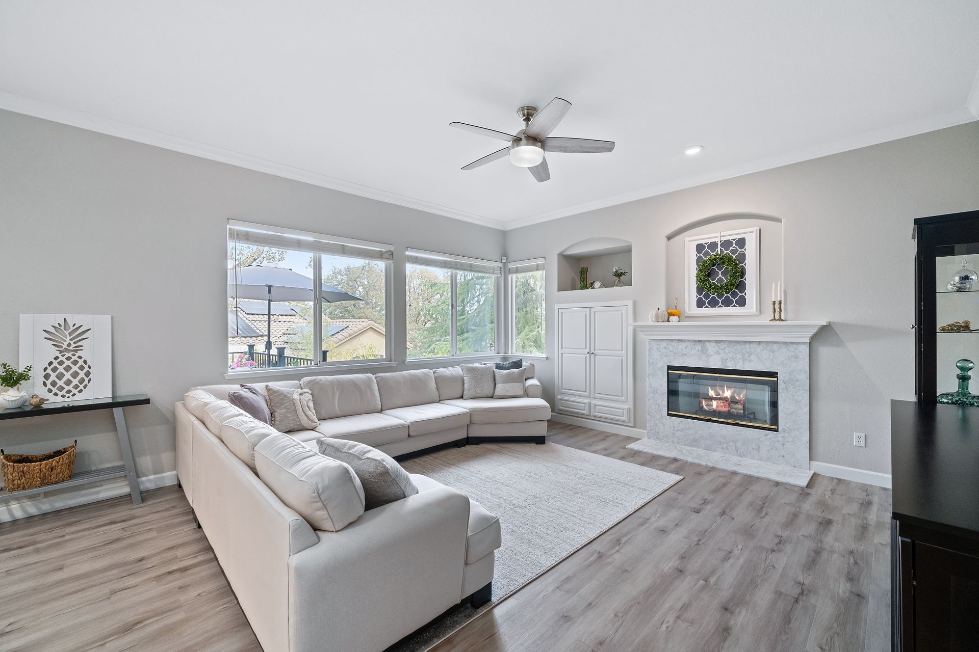 Inviting, single-story home, in a cul-de-sac in the popular Marina Woods Neighborhood, located close to schools K-8, parks and trails. As you first enter inside, you are greeted with a grand entryway, living room with soaring ceilings and a formal dining room, all illuminated by large windows. The completely remodeled chef's kitchen has quartz countertops, custom cabinetry and a walk-in pantry. The large primary retreat has a spacious bath, double vanities and a walk-in closet. This desirable open and bright floor plan boasts over 2,600 square feet of livable space, three bedrooms, three full bathrooms, plus a home office that can ideally serve as a fourth bedroom. Enjoy the oak-studded, serene, low maintenance yard with ample Trex decking. Additional features include a tankless hot water heater, Generac whole house generator and an updated HVAC. With a very low HOA and no Mello Roos, this contemporary home is a must see!