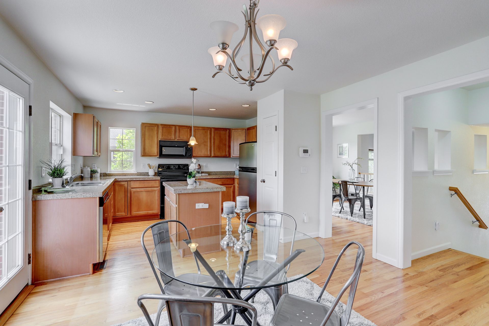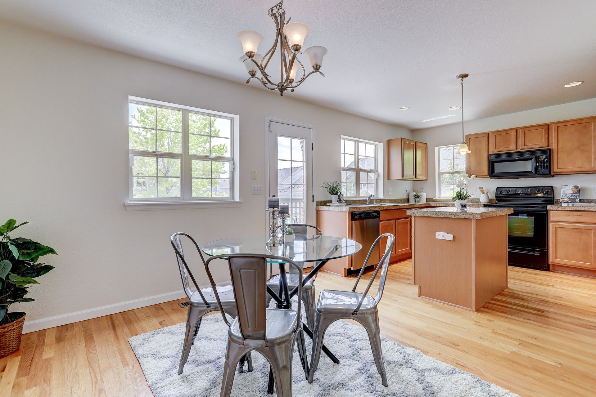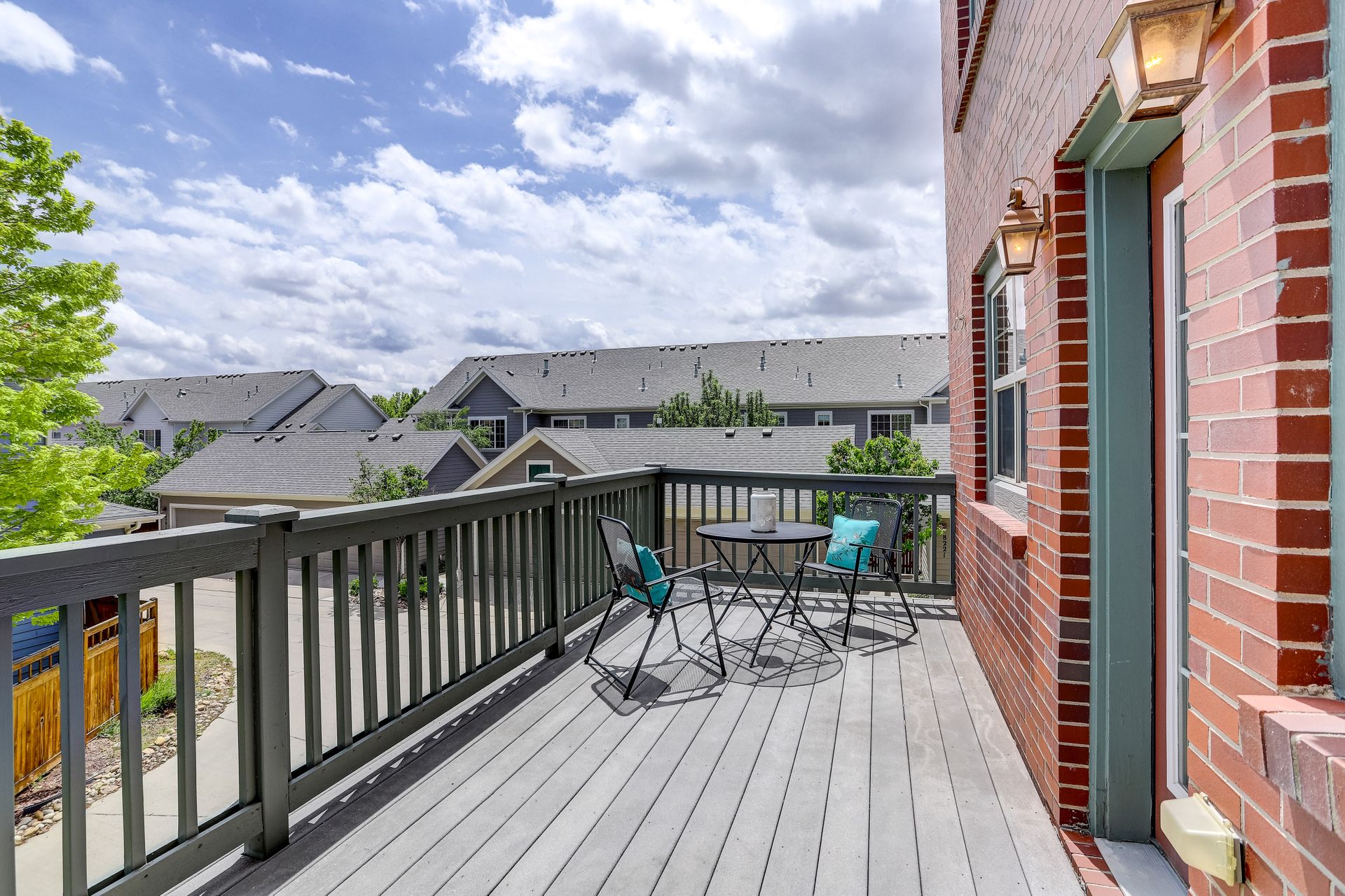 This wonderful three bedroom, three bath property is nestled in just off the main street. It is filled with natural light and has high ceilings, hardwood floors, new carpet and an open floor plan. The spacious dining room overlooks the living room making it great for entertaining guests. The large eat-in kitchen hosts granite countertops, hardwood floors, an island and south-facing windows. Just off the kitchen is a large deck. Upstairs is the spacious primary bedroom with mountain views and a private balcony as well as a walk-in closet and a private bath. You’ll also find two additional bedrooms upstairs as well as full bath and a convenient laundry area. The two-car garage offers a nice storage area with a concrete floor. This home is in a prime spot, just a few minutes distance from parks, pools, shopping, restaurants, schools, grocery stores and more! Located just two blocks from the 80-acre Central Park, which offers miles of trails and greenbelts to get out and enjoy the fantastic weather and mountain views.