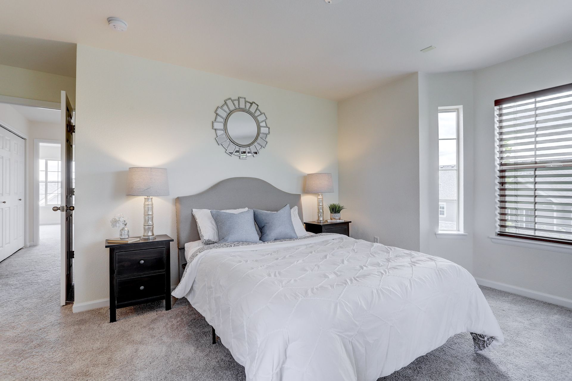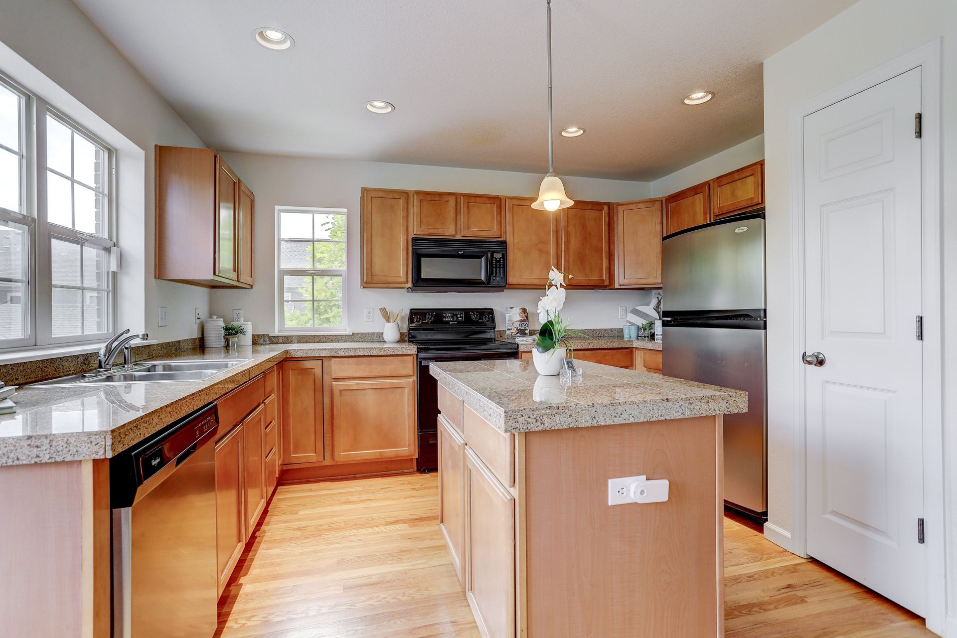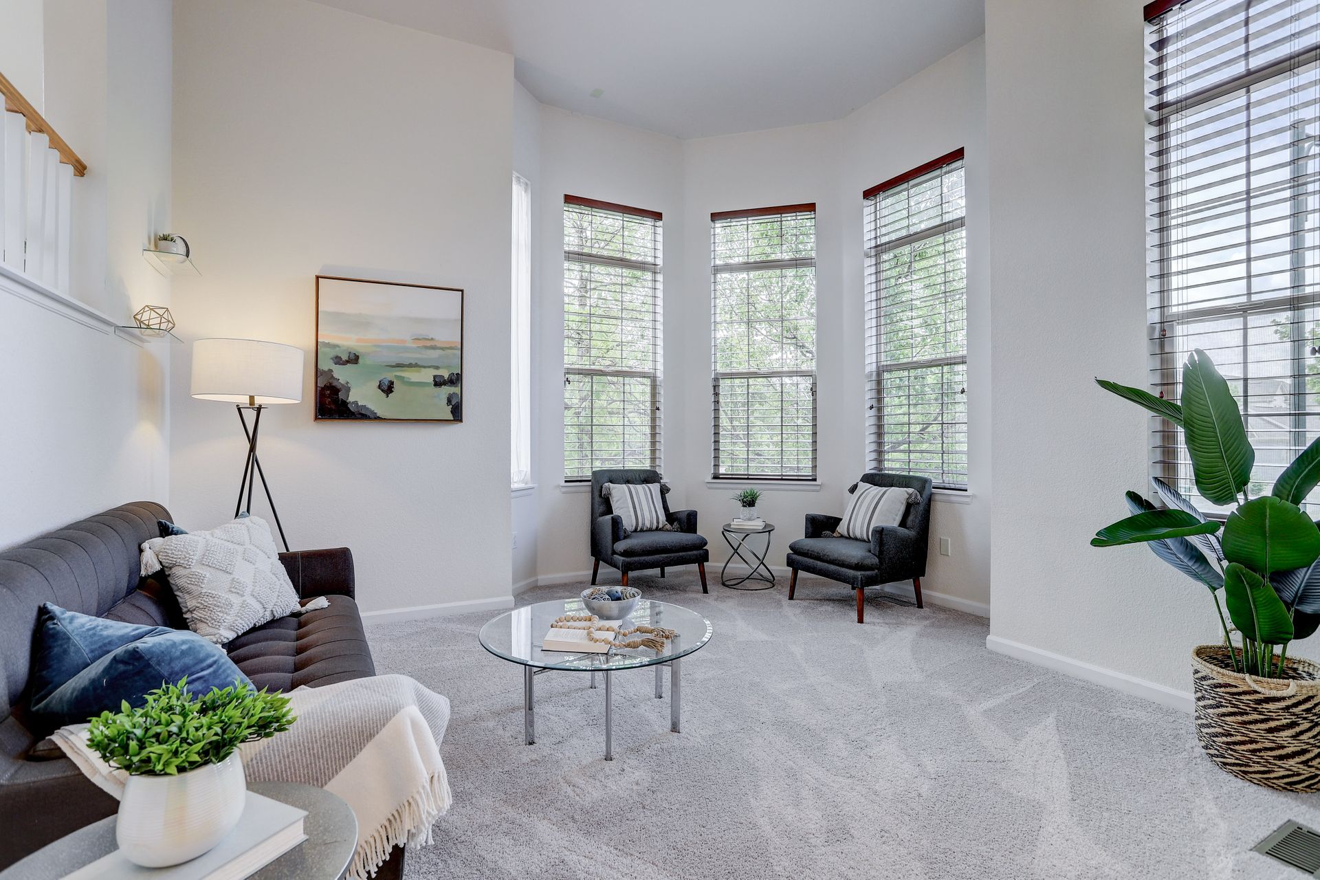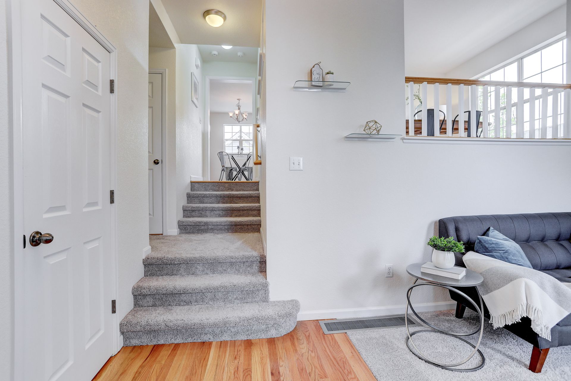 This wonderful three bedroom, three bath property is nestled in just off the main street. It is filled with natural light and has high ceilings, hardwood floors, new carpet and an open floor plan. The spacious dining room overlooks the living room making it great for entertaining guests. The large eat-in kitchen hosts granite countertops, hardwood floors, an island and south-facing windows. Just off the kitchen is a large deck. Upstairs is the spacious primary bedroom with mountain views and a private balcony as well as a walk-in closet and a private bath. You’ll also find two additional bedrooms upstairs as well as full bath and a convenient laundry area. The two-car garage offers a nice storage area with a concrete floor. This home is in a prime spot, just a few minutes distance from parks, pools, shopping, restaurants, schools, grocery stores and more! Located just two blocks from the 80-acre Central Park, which offers miles of trails and greenbelts to get out and enjoy the fantastic weather and mountain views.