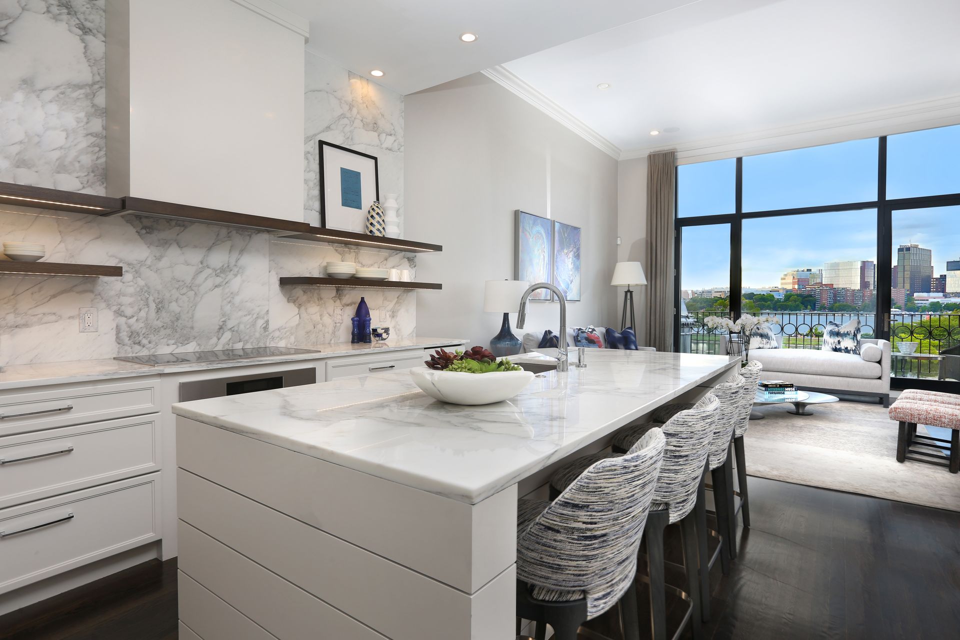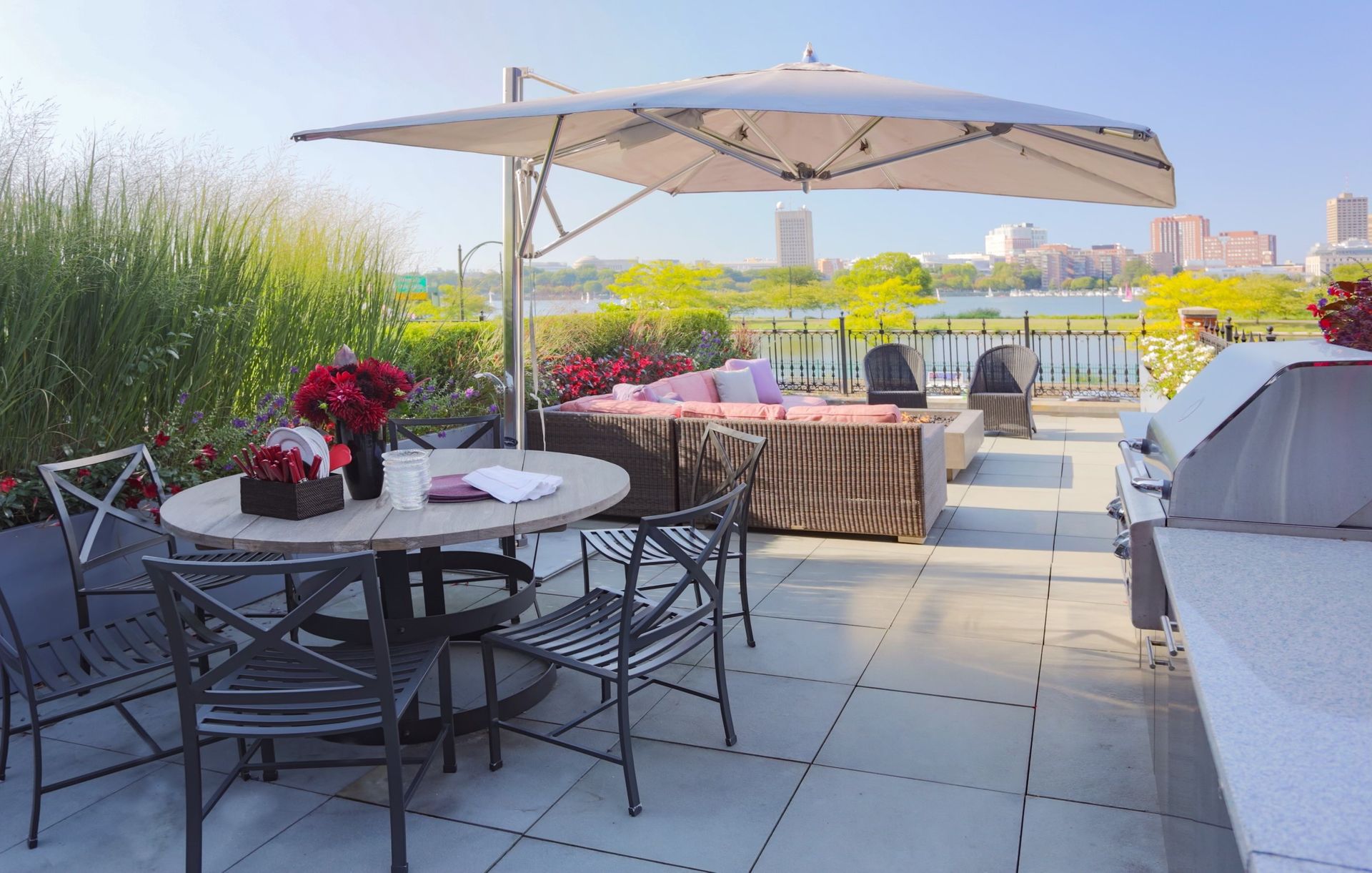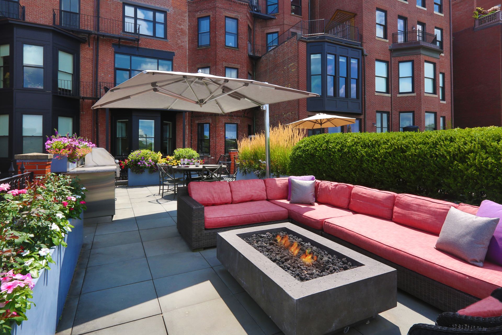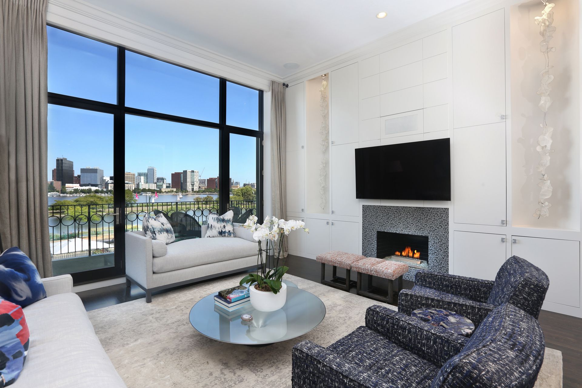 Awe-inspiring floor-to-ceiling windows offer stunning, unobstructed views of the Charles River and gorgeous sunsets. This exquisite residence has been completely renovated to perfection, meticulously maintained, and impeccably designed with the finest finishes. Featuring three bedrooms, three and one-half baths, soaring ceilings, a kitchen with top-of-the-line appliances and Calacatta marble, and three parking spaces (two garage and one outdoor). The three private outdoor options make this sophisticated home an entertaining oasis. The Hope’s folding glass doors provide a seamless transition to the outdoor living area, melding the interior with the exterior courtyard, gas fireplace, large roof deck over the garage, outdoor kitchen, professional gas grill, fire pit, and automatic snow melt system. Direct elevator access to all floors and Control4 Smart Home technology. One of just two residences in a historic brownstone and only steps to the Commonwealth Avenue Mall, Charles River Esplanade, Public Garden, and many shops and restaurants of Newbury Street, the Prudential Center, and Back Bay.