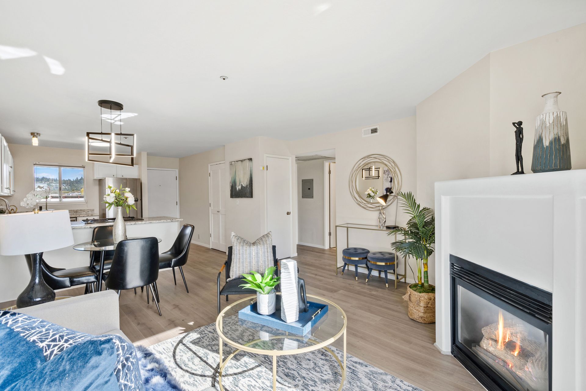 Warm Ambiance: The inviting living room features a cozy fireplace, ideal for relaxing evenings.