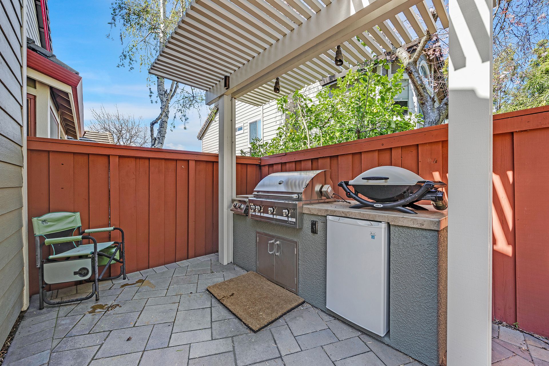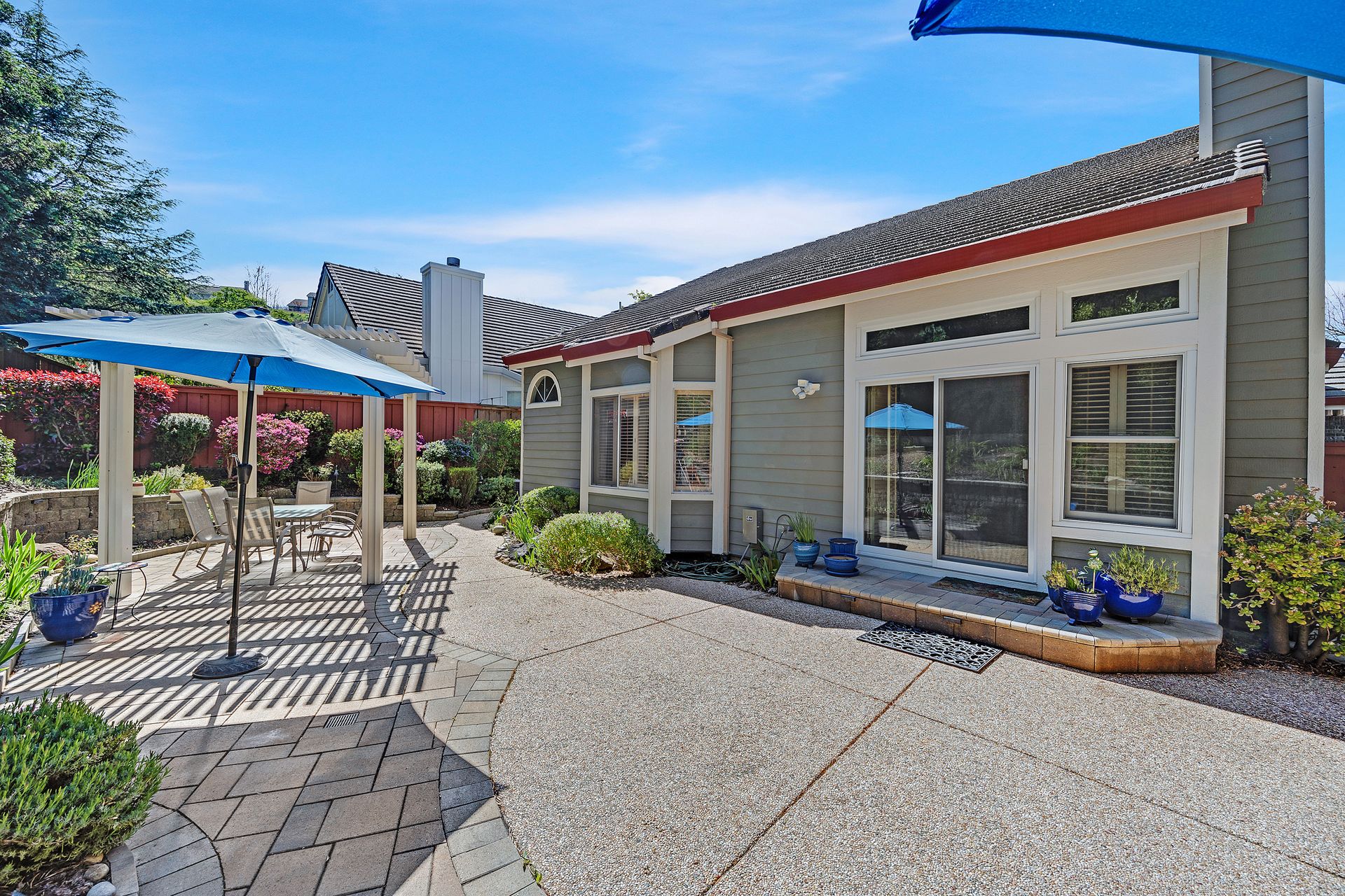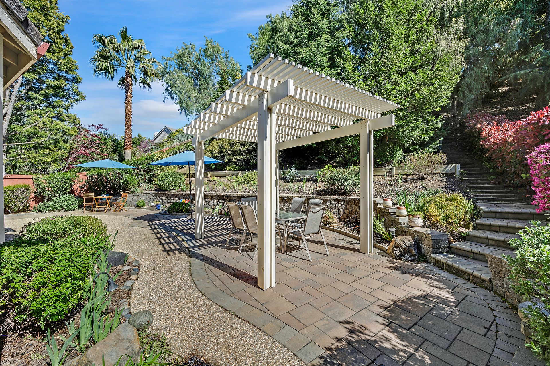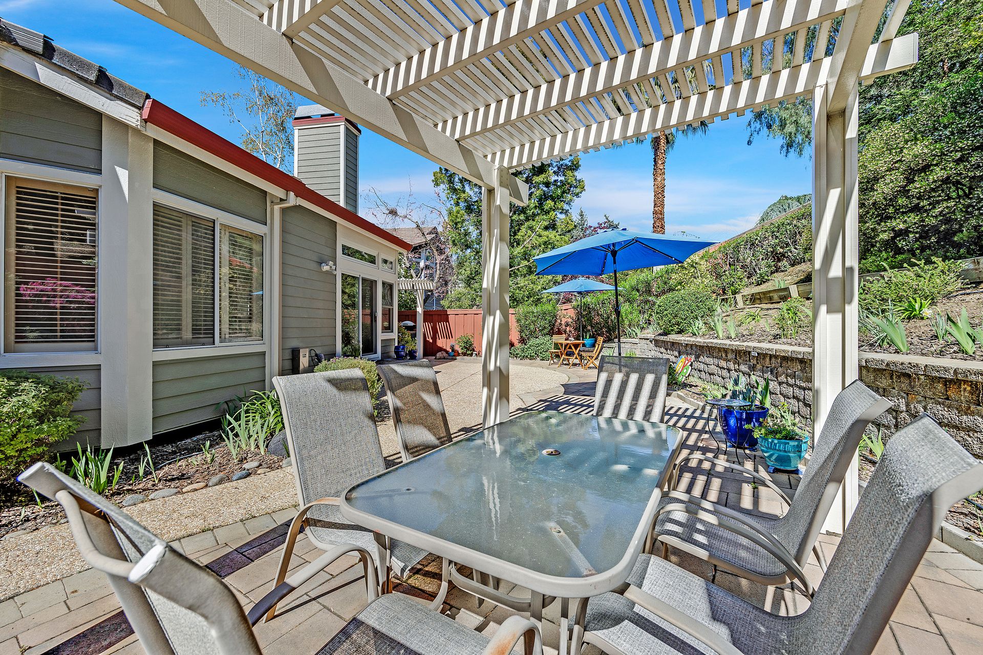 This adorable three bed, two bath single-story home has a functional floorplan with approximately 1493 square feet and is located on a cul-de-sac in the desirable Oakhurst community. It has hardwood floors, vaulted ceilings and an updated hall bath. The eat-in kitchen has lots of natural light, a dining nook with bay windows, a solid surface cooktop and plenty of cabinet and pantry space. The large common room has a fireplace and an area for a formal dining table for entertaining guests. The spacious owner’s suite has vaulted ceilings, dual mirrored closets and room for a sitting area to relax and enjoy the peaceful backyard views. The en-suite bath has a large vanity area with dual sinks and an upgraded shower. There is an indoor laundry area with a washer and dryer. Enjoy the outdoors in the lovely tranquil backyard garden with pavers, retaining walls, a pergola and a built-in barbecue area for outdoor cookouts. The hillside steps lead to a peekaboo view of the hills amidst the mature trees. Live close to downtown Clayton, schools, shopping, restaurants, parks, library and Oakhurst Golf Course and Country Club.
