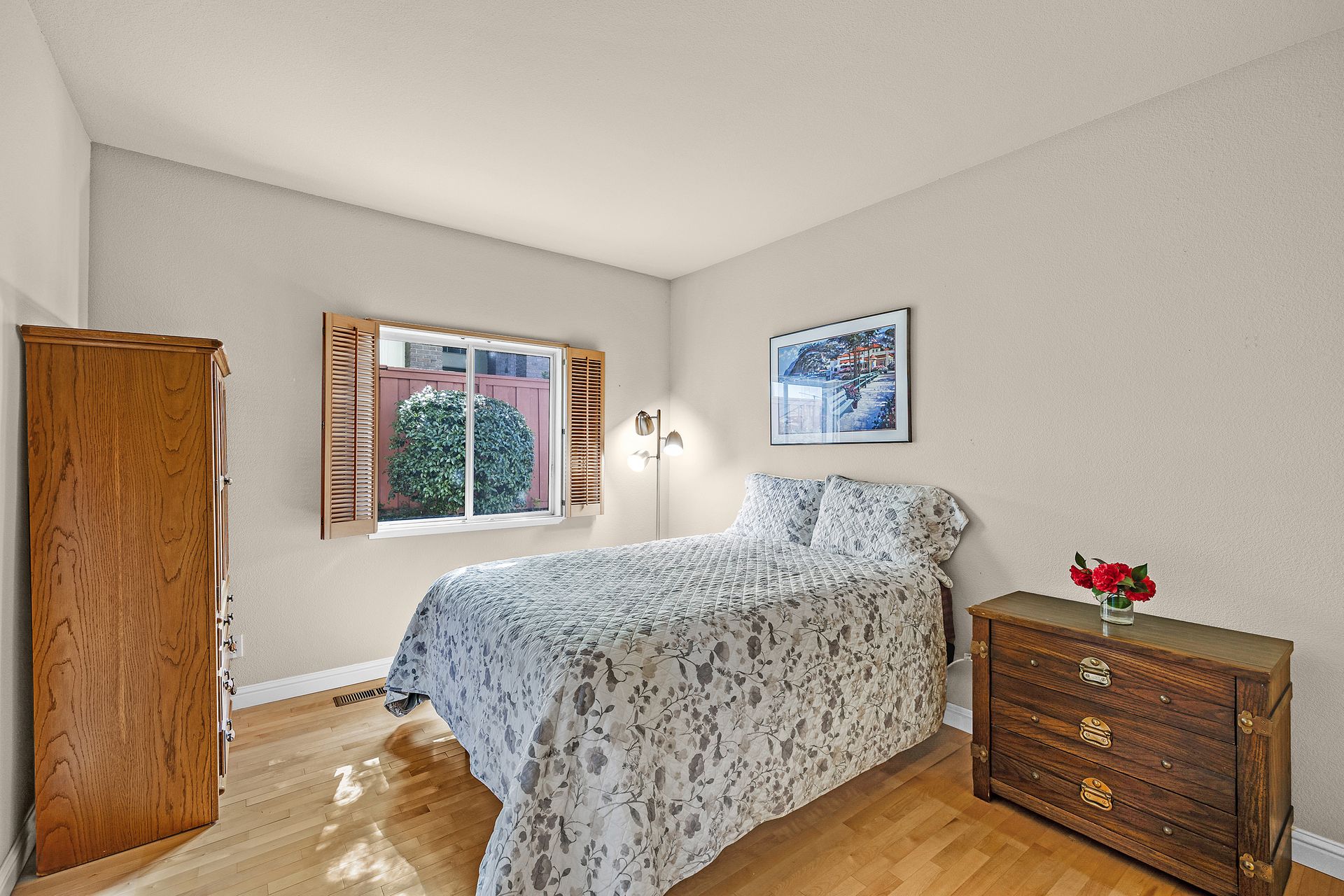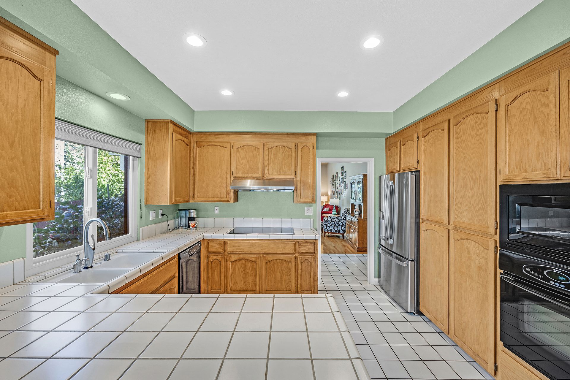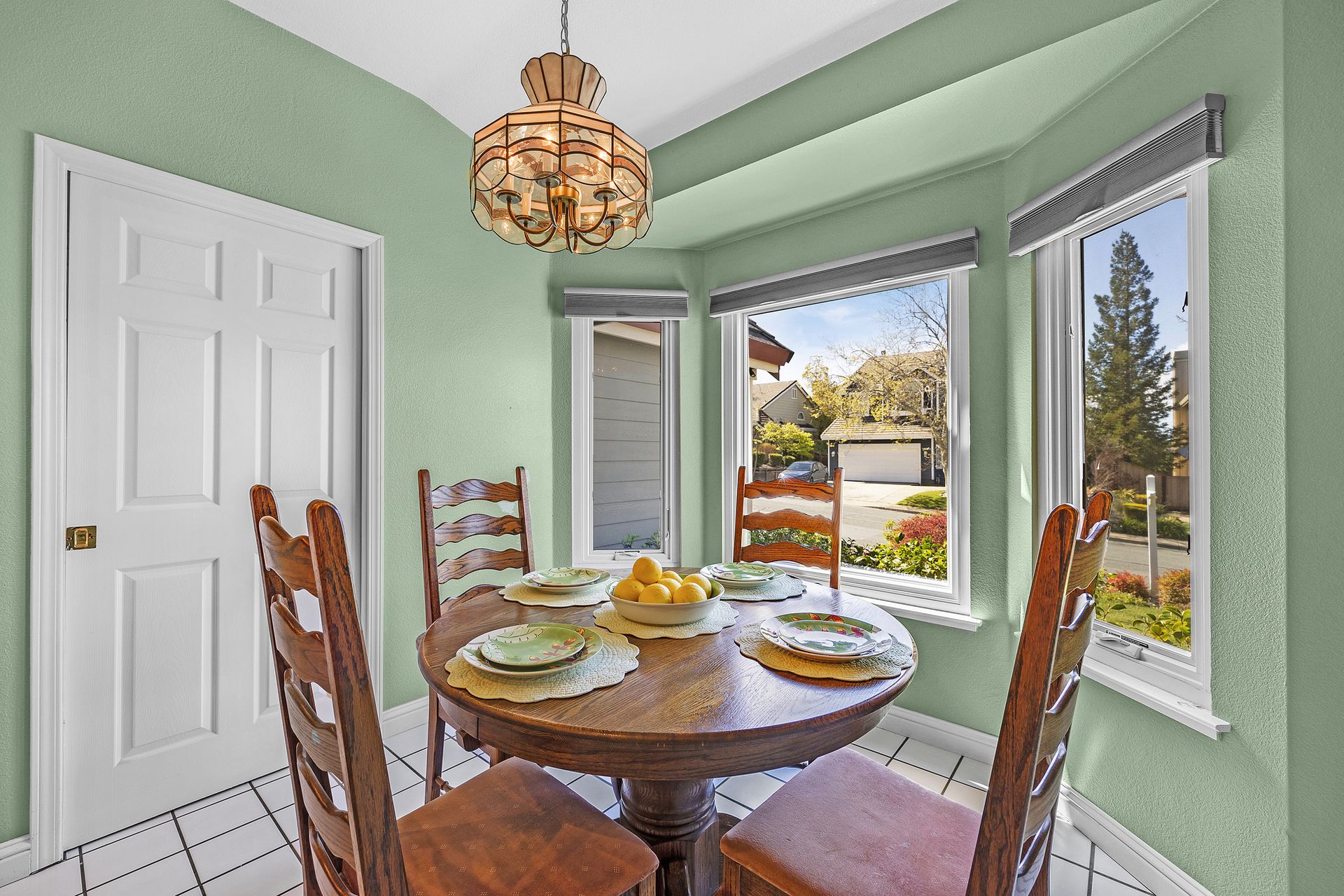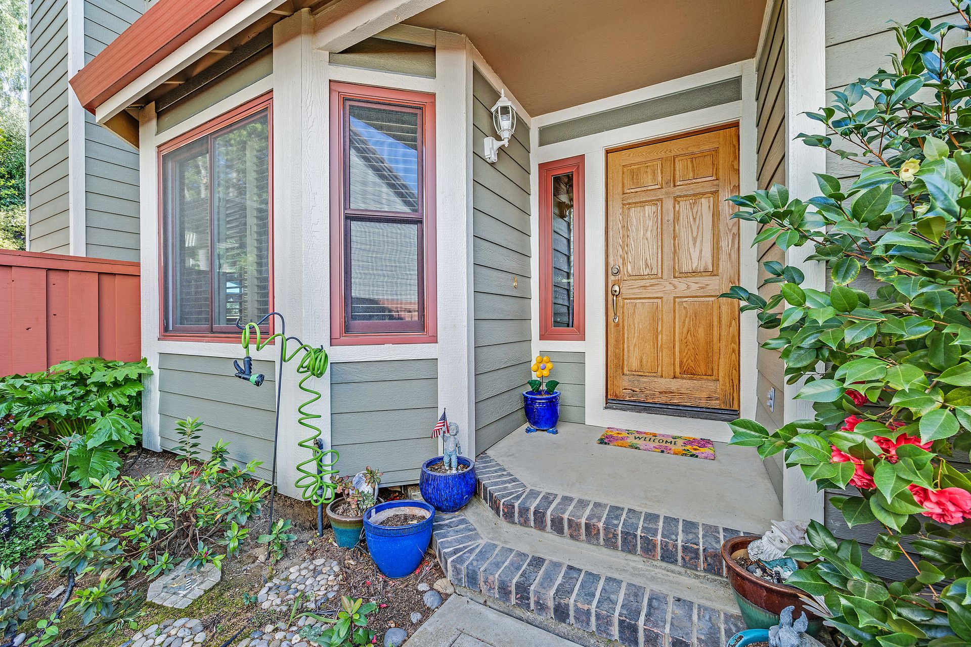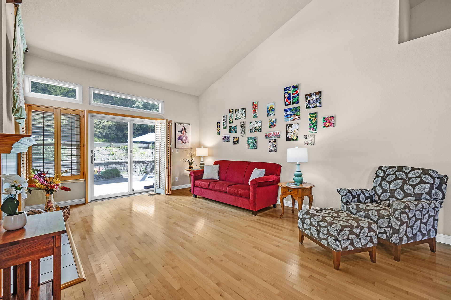 This adorable three bed, two bath single-story home has a functional floorplan with approximately 1493 square feet and is located on a cul-de-sac in the desirable Oakhurst community. It has hardwood floors, vaulted ceilings and an updated hall bath. The eat-in kitchen has lots of natural light, a dining nook with bay windows, a solid surface cooktop and plenty of cabinet and pantry space. The large common room has a fireplace and an area for a formal dining table for entertaining guests. The spacious owner’s suite has vaulted ceilings, dual mirrored closets and room for a sitting area to relax and enjoy the peaceful backyard views. The en-suite bath has a large vanity area with dual sinks and an upgraded shower. There is an indoor laundry area with a washer and dryer. Enjoy the outdoors in the lovely tranquil backyard garden with pavers, retaining walls, a pergola and a built-in barbecue area for outdoor cookouts. The hillside steps lead to a peekaboo view of the hills amidst the mature trees. Live close to downtown Clayton, schools, shopping, restaurants, parks, library and Oakhurst Golf Course and Country Club.