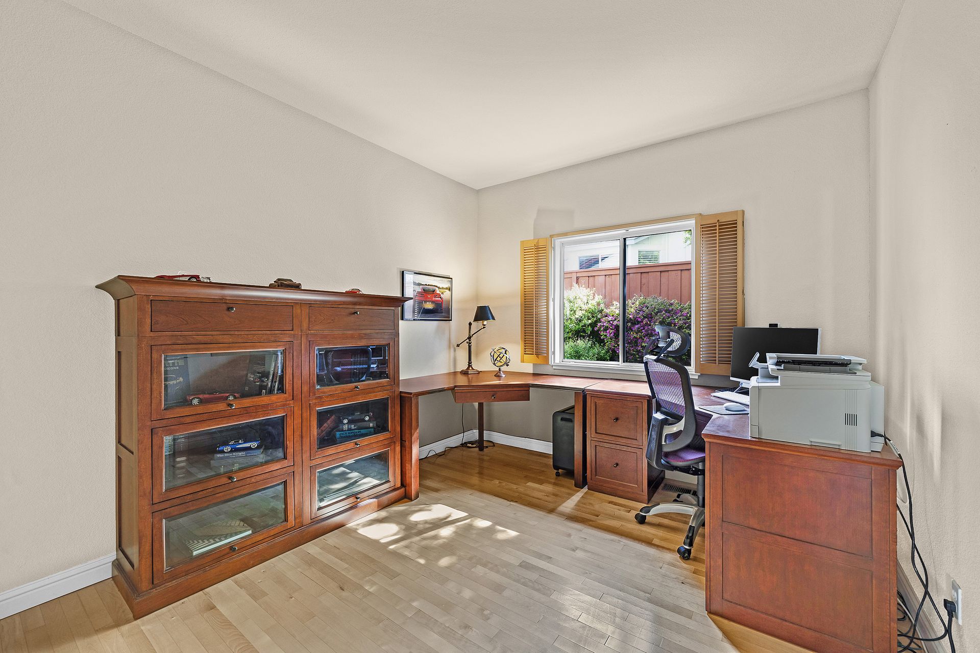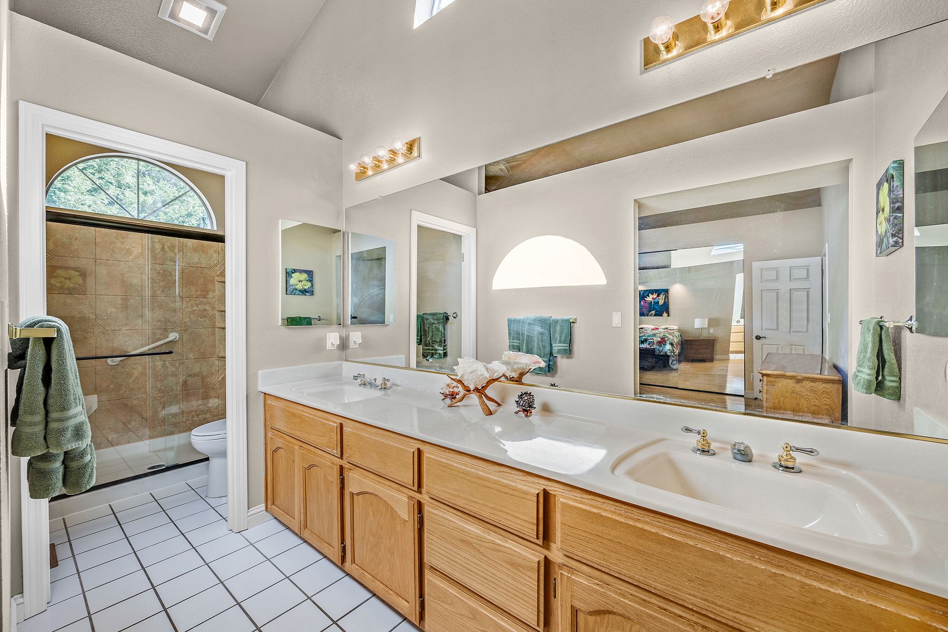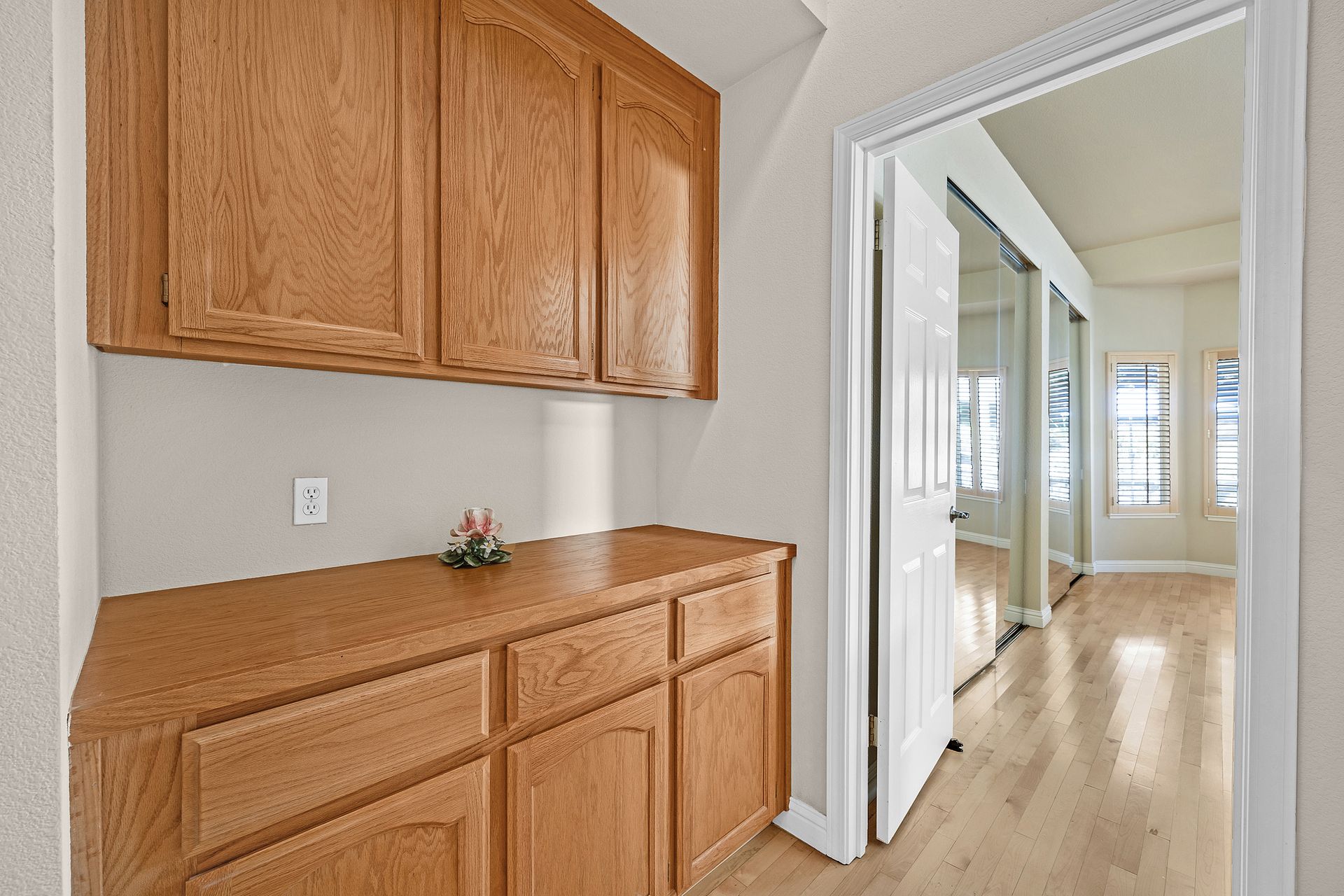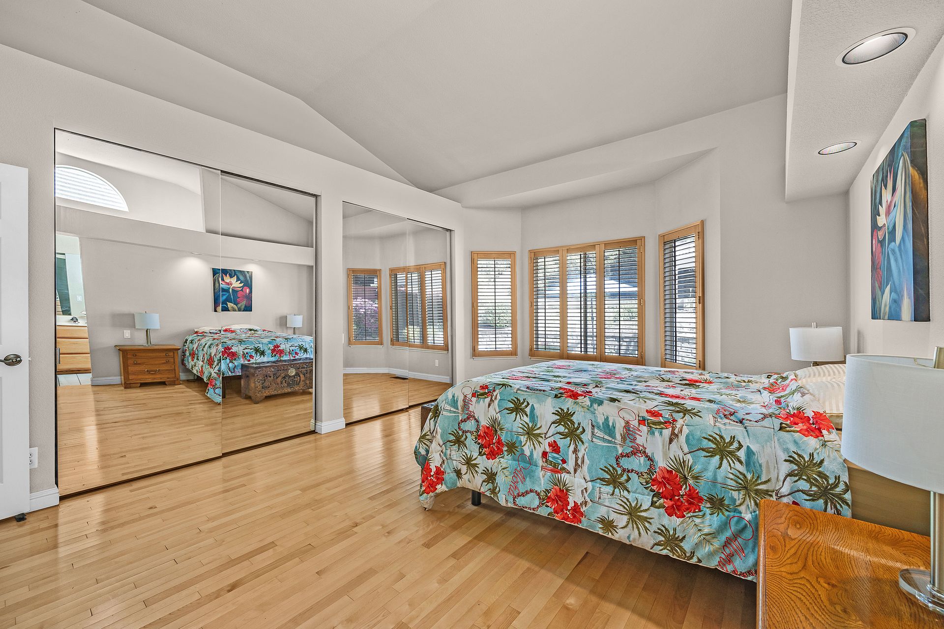 This adorable three bed, two bath single-story home has a functional floorplan with approximately 1493 square feet and is located on a cul-de-sac in the desirable Oakhurst community. It has hardwood floors, vaulted ceilings and an updated hall bath. The eat-in kitchen has lots of natural light, a dining nook with bay windows, a solid surface cooktop and plenty of cabinet and pantry space. The large common room has a fireplace and an area for a formal dining table for entertaining guests. The spacious owner’s suite has vaulted ceilings, dual mirrored closets and room for a sitting area to relax and enjoy the peaceful backyard views. The en-suite bath has a large vanity area with dual sinks and an upgraded shower. There is an indoor laundry area with a washer and dryer. Enjoy the outdoors in the lovely tranquil backyard garden with pavers, retaining walls, a pergola and a built-in barbecue area for outdoor cookouts. The hillside steps lead to a peekaboo view of the hills amidst the mature trees. Live close to downtown Clayton, schools, shopping, restaurants, parks, library and Oakhurst Golf Course and Country Club.