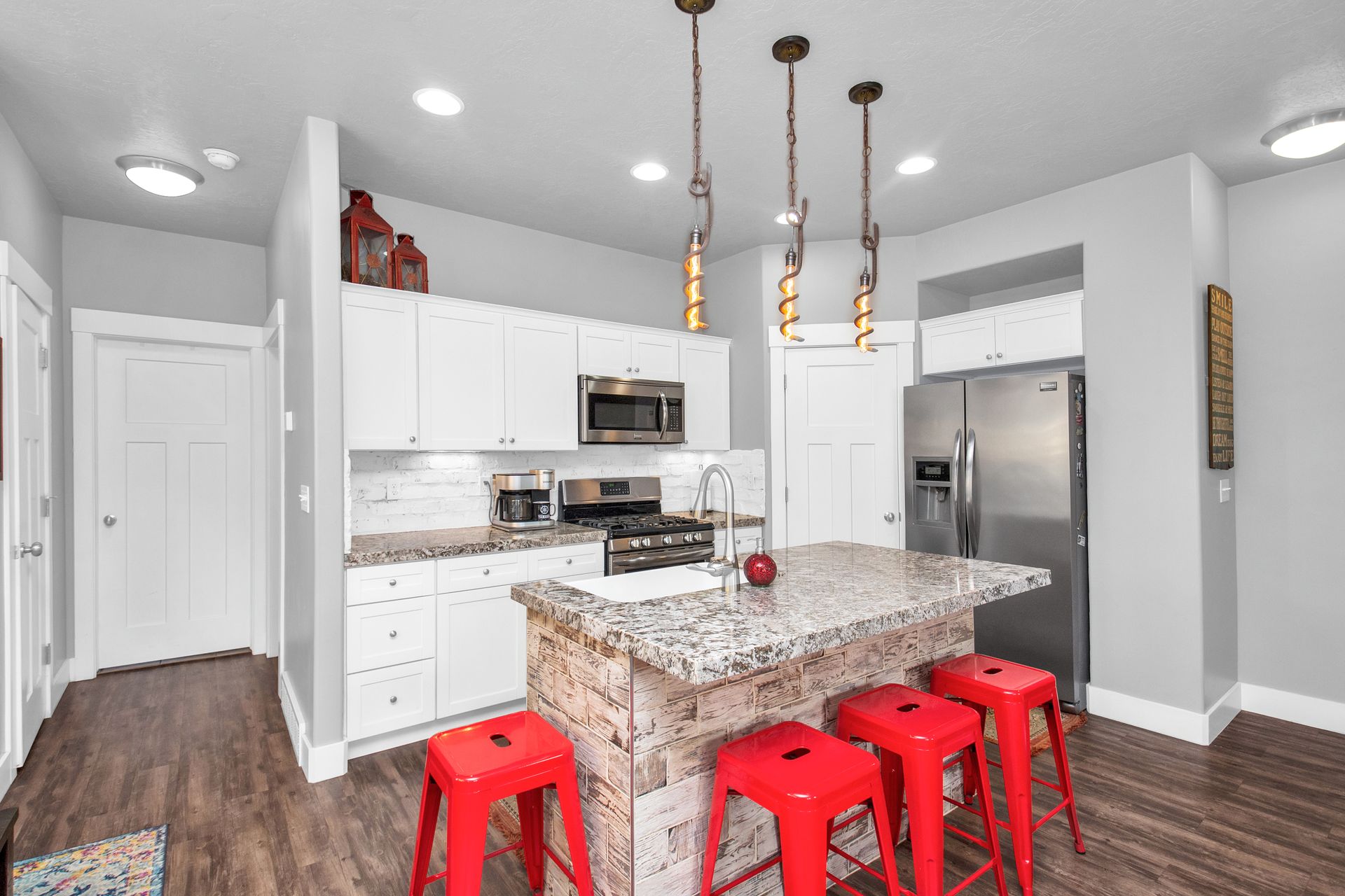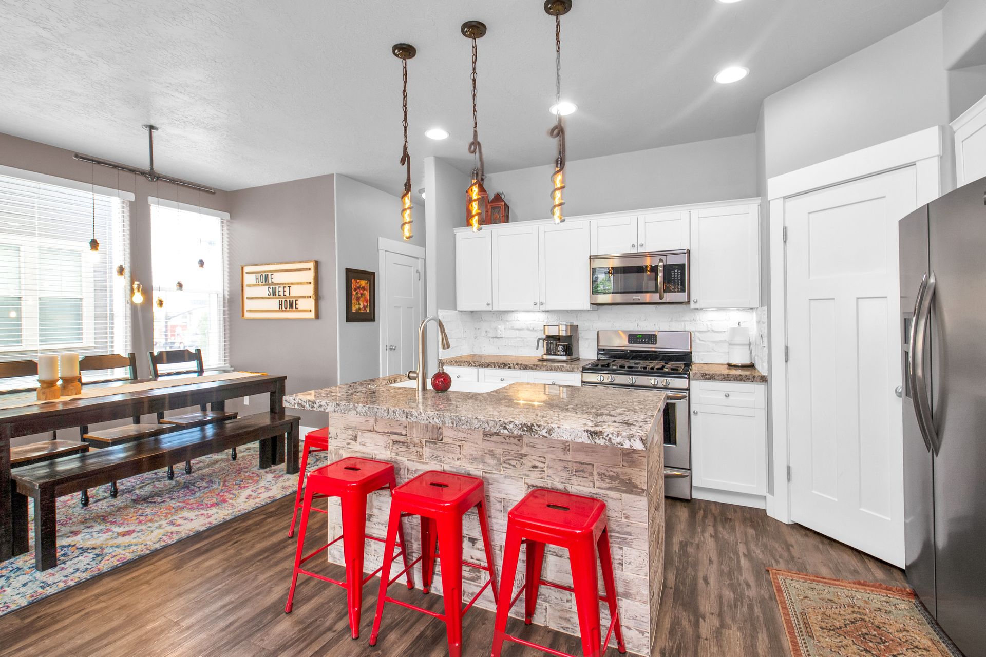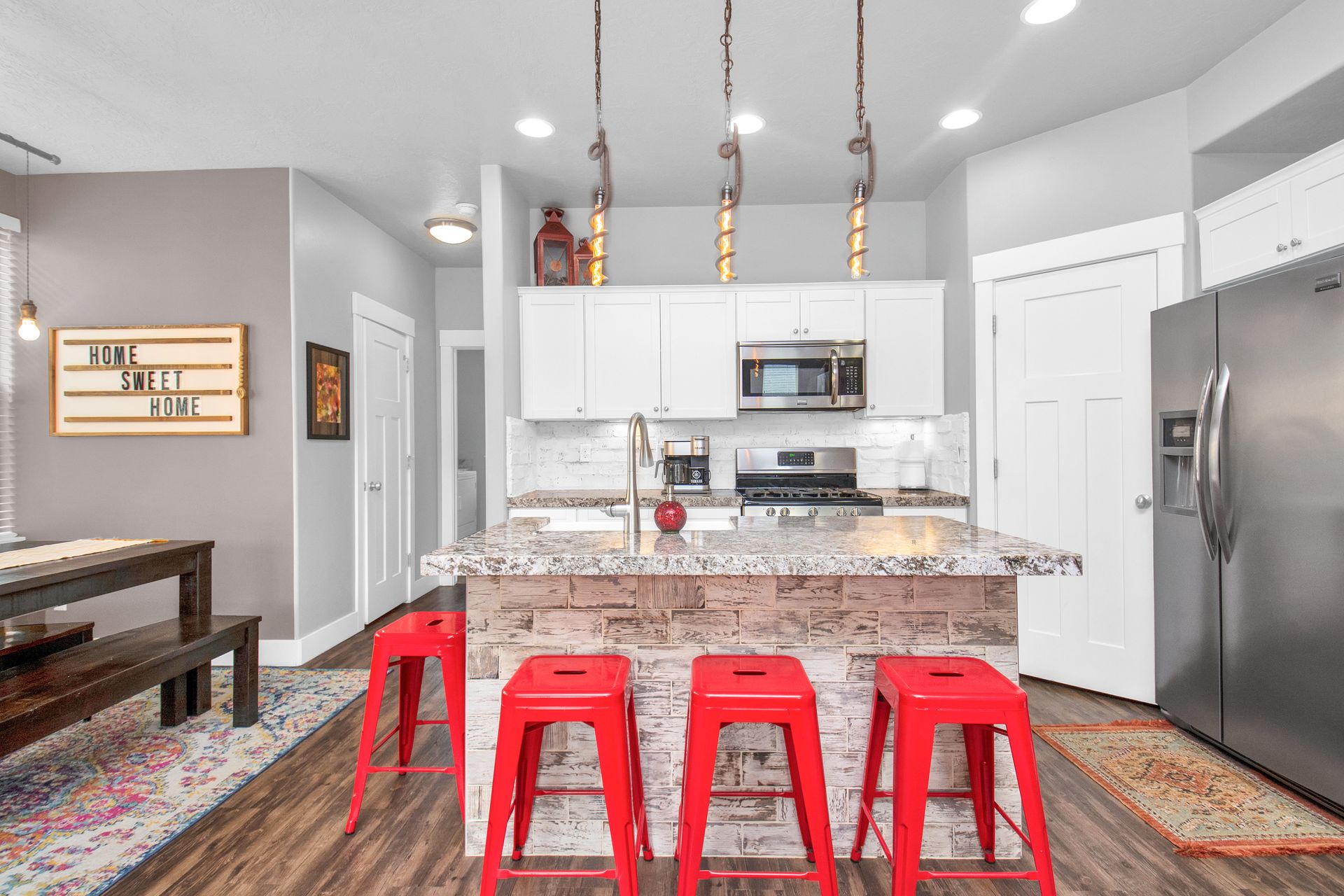 Urban living at its finest! This uniquely customized, end-unit townhome, located in the vibrant heart of Downtown Ogden, is your gateway to a truly "mountain meets metro" lifestyle. Enjoy coffee on the second-story deck and drinks under the party lights and pergola. You will enjoy upgrades galore, including granite countertops, unique kitchen lights, a farmhouse sink and shaker-style cabinets. The oversized master bedroom has an en-suite bathroom featuring a claw foot tub and an oversized shower. Additional features include wired Bluetooth speakers, a smart thermostat, a video doorbell, a new, silent, battery-override garage door and extra exterior outlets for hanging lights. When you are ready to go out on the town or take in Ogden's amazing outdoor recreation opportunities, this perfectly-located home is your basecamp. Leave the car in the garage as you enjoy upscale dining, breweries, nightlife, and shopping, all footsteps from your front door. Downtown and Historic 25th Street are a short distance away, along with theaters, parks, and the local farmers' market. The beautiful Ogden River and scenic Ogden River Parkway are steps from the front door, where you'll enjoy immediate access to excellent fishing, floating, and miles of paved pathways that connect you to the Weber River, Ogden Canyon, and the Bonneville Shoreline Trail.