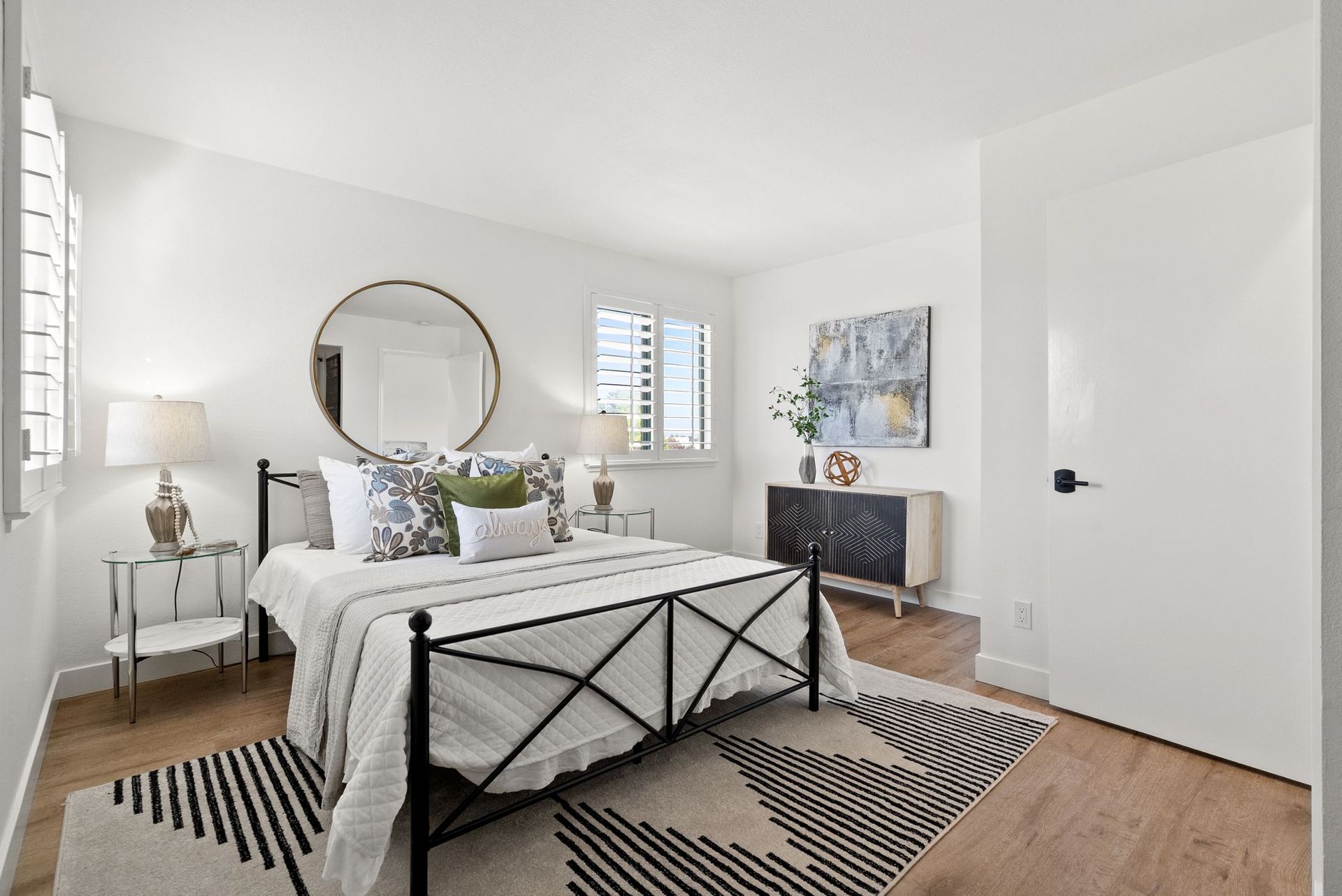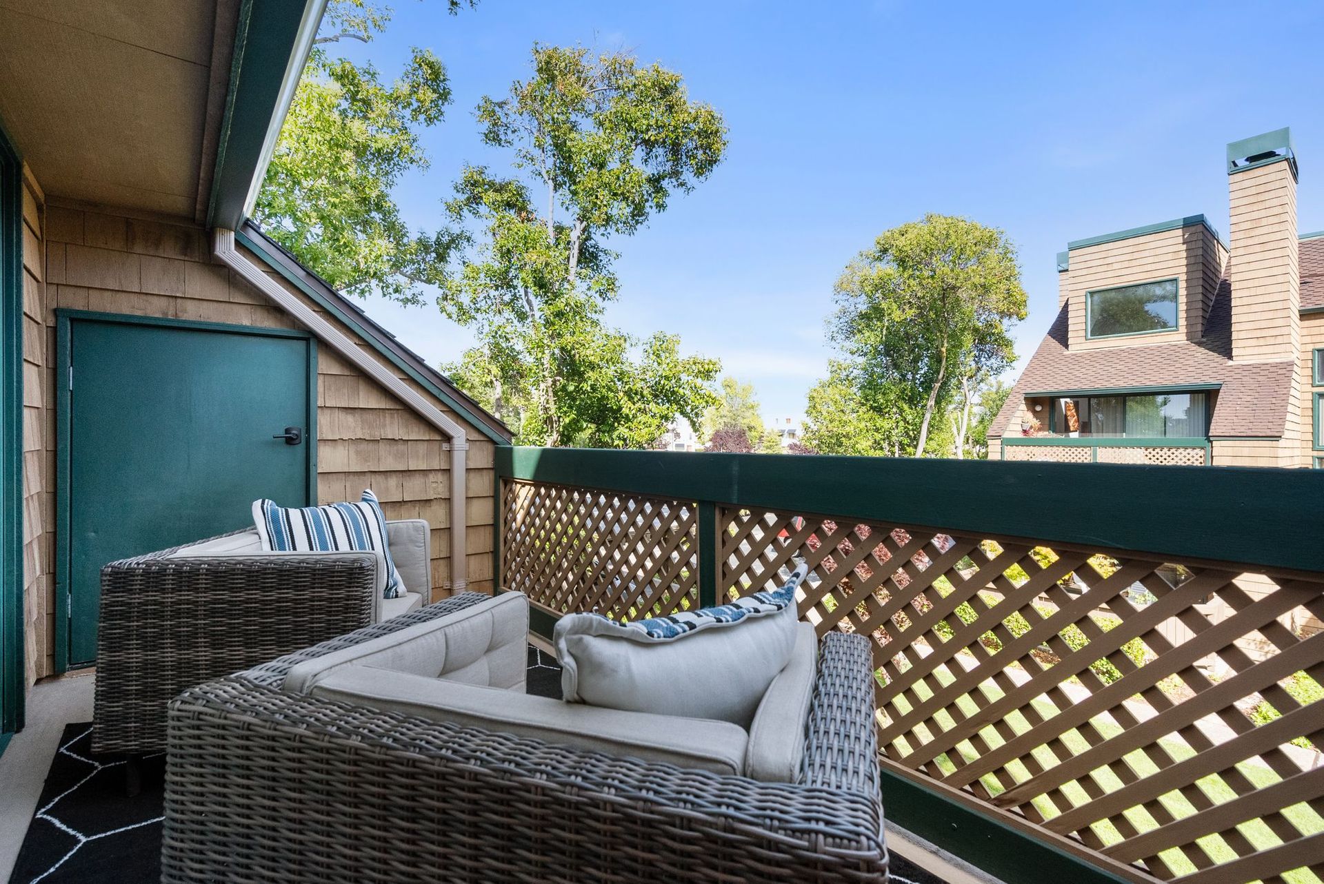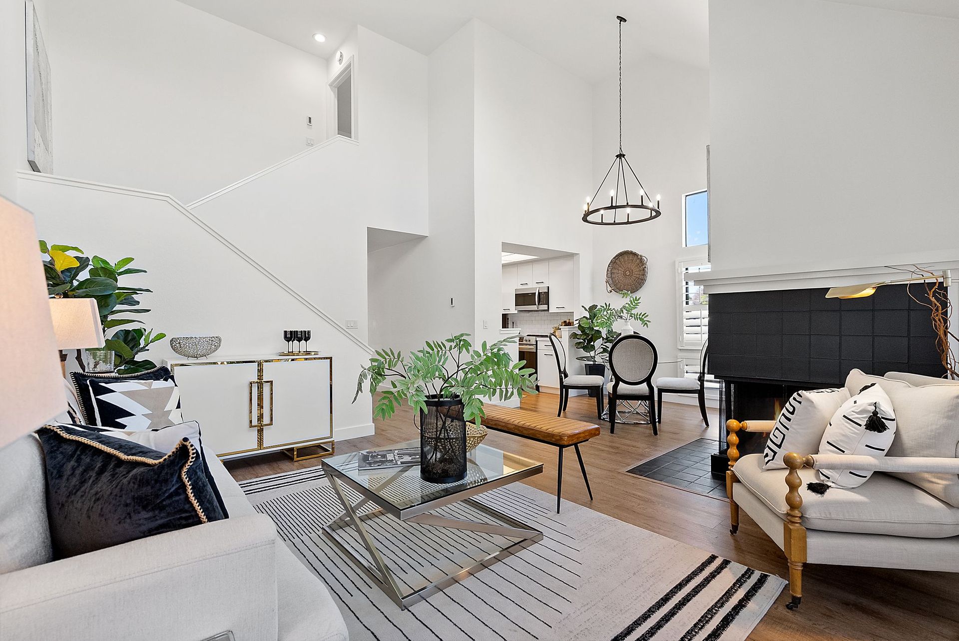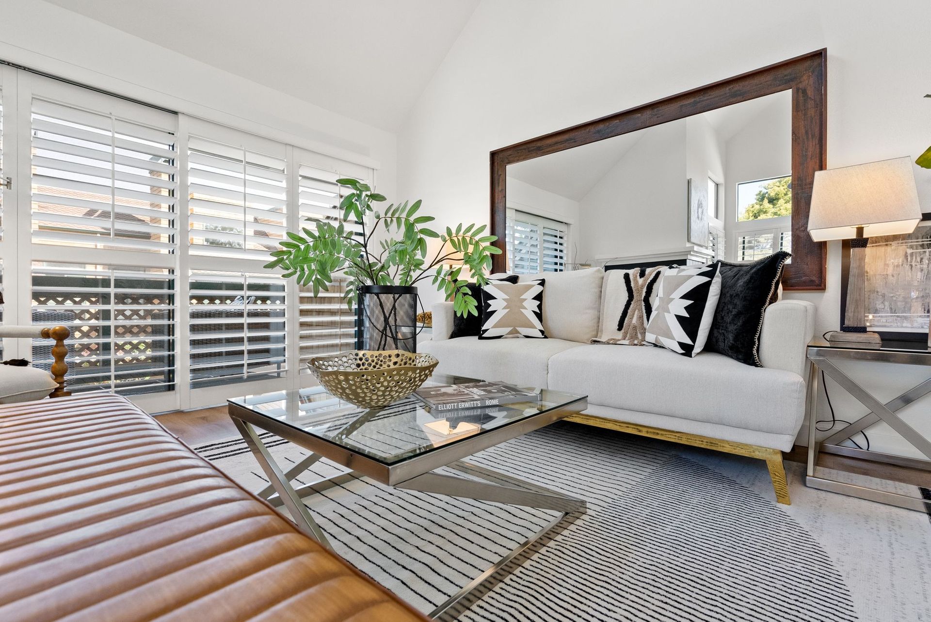 This move-in ready corner unit condo is what you have been waiting for. Located in the desirable Pelican Cove community in Redwood Shores, this bright and airy top floor 2 story beauty has its own private entrance. The living room and dining room are enhanced by vaulted ceilings, abundant windows, wood burning fireplace, a beautiful chandelier and sliding glass door access to a private balcony with storage. Remodeled kitchen features stainless steel appliances, newly painted white bamboo cabinets, quartz countertops and decorative tile backsplash. The main level bedroom is spacious with high ceilings, 2 mirrored closets and access to a second private balcony. The stylish bathroom has an updated vanity, quartz countertop, shower over tub, stackable washer/dryer and additional storage. Upstairs is a second bedroom with an office alcove and a closet. Throughout this beautiful condo, you will find luxury vinyl plank flooring, louvered wood shutters and tons of storage including an oversized under staircase storage closet. Parking is hassle-free with one-assigned carport and second-car parking with permit sticker. Resort like amenities include extensive landscaping, 2 pools, hot tub, clubhouse, boating facilities, kayak and bike storage. Centrally located near walking and biking trails, parks, library, schools, Nob Hill shopping center and Highway 101. Excellent Belmont-Redwood Shores school district!