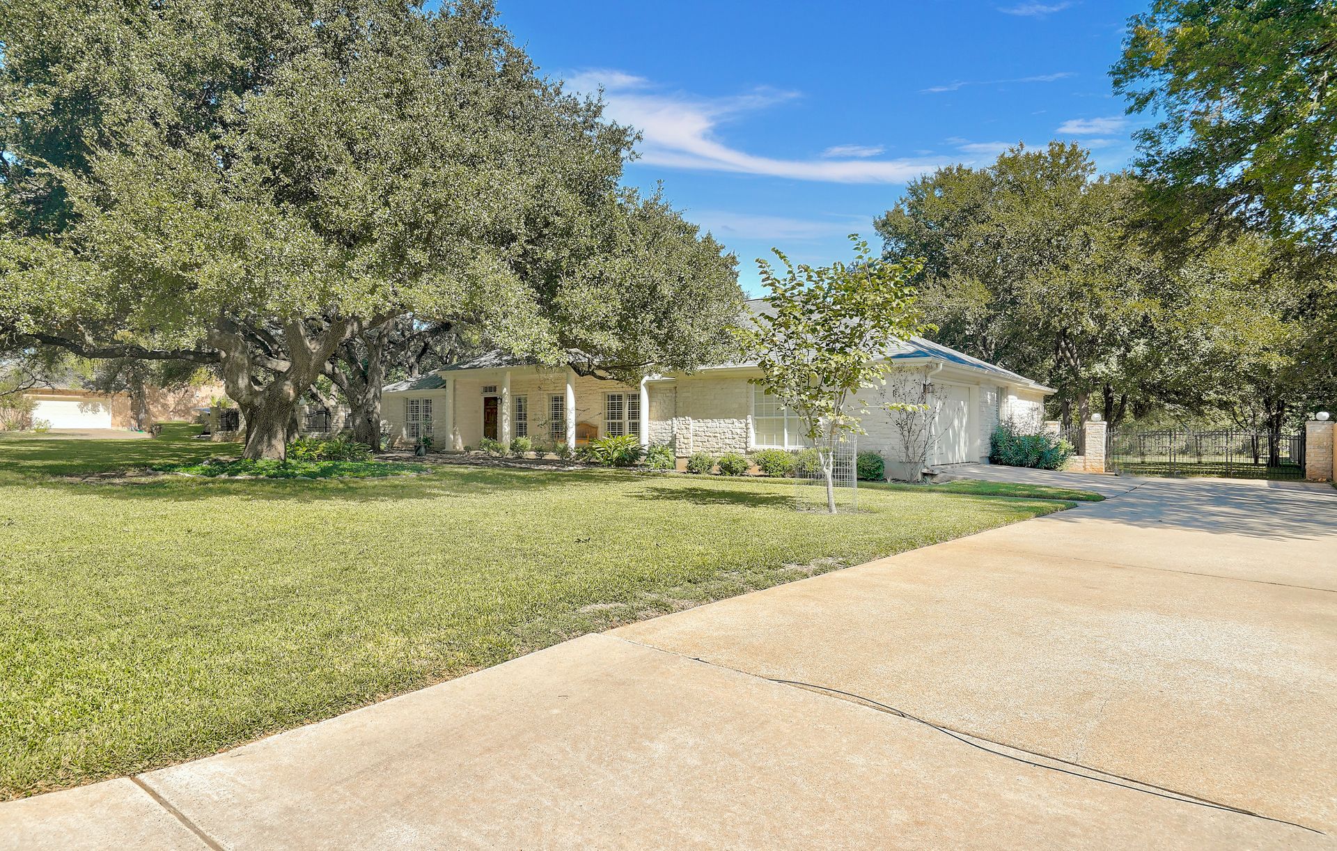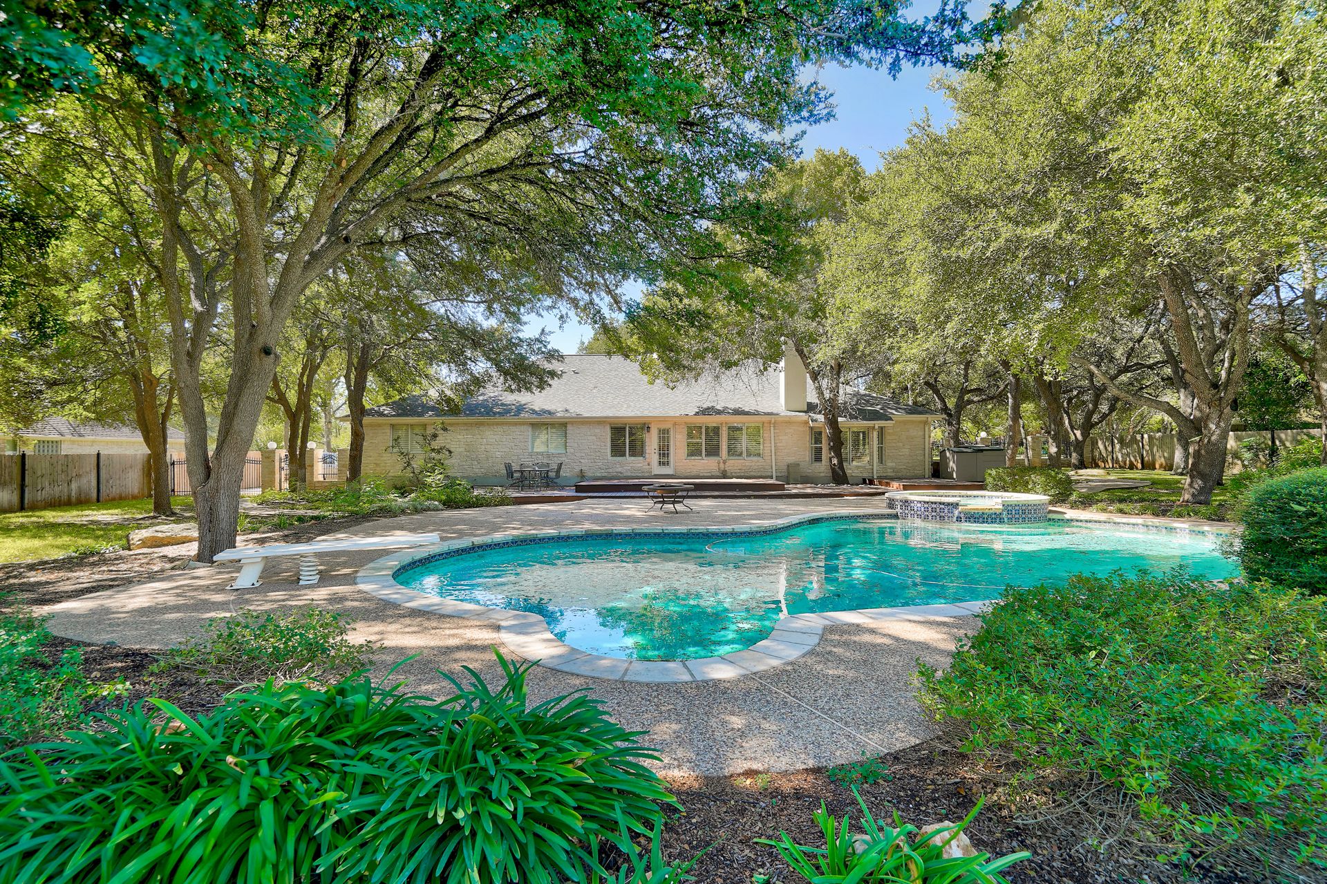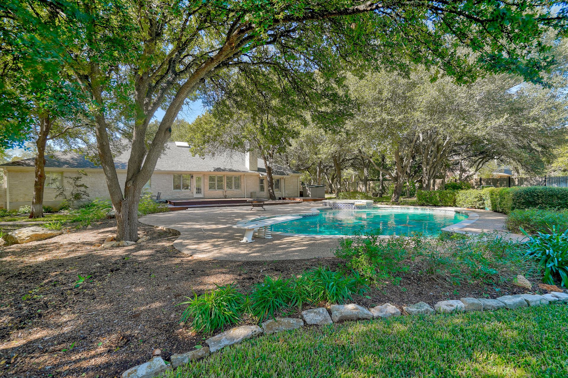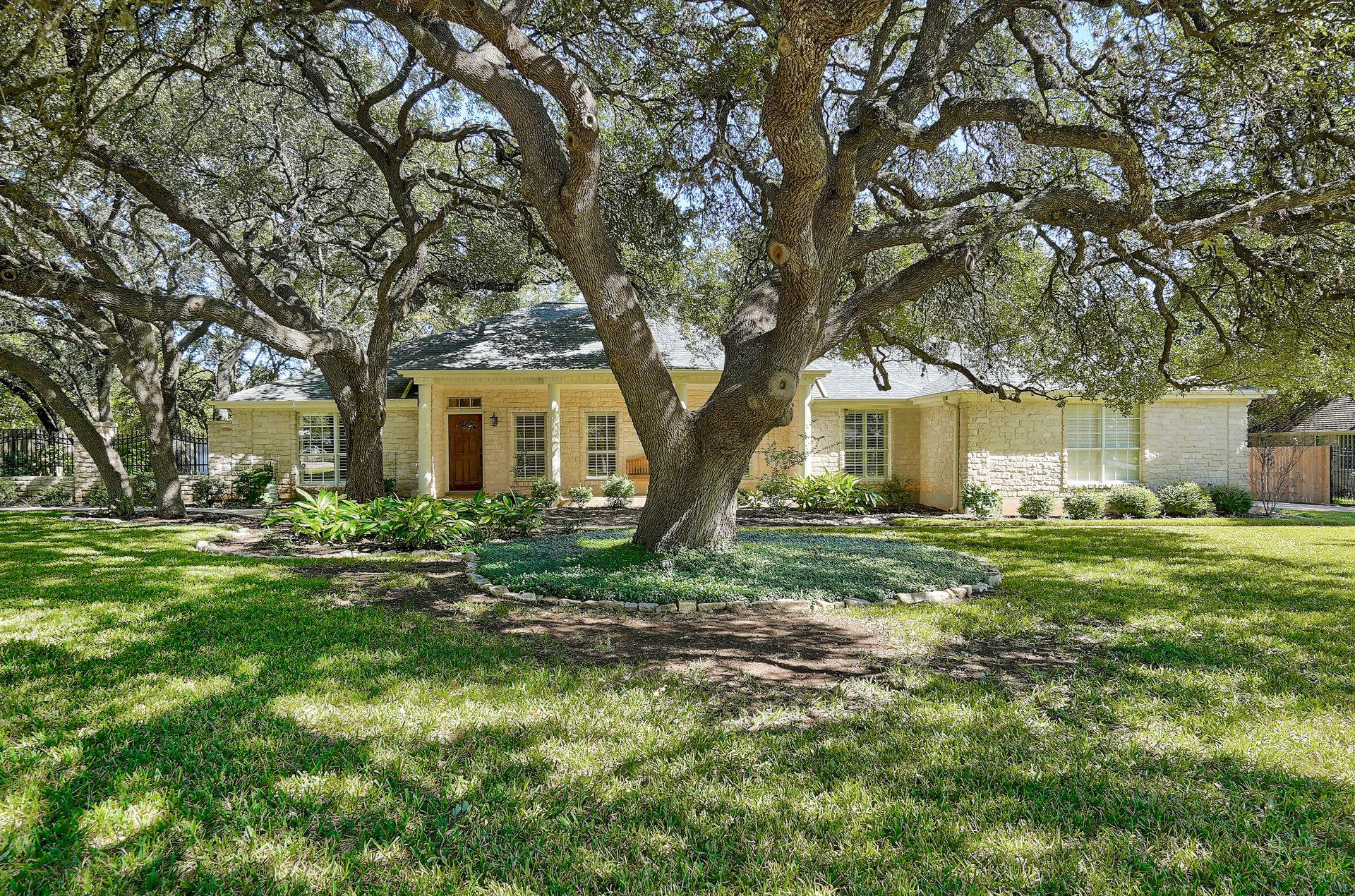 Come see this fabulous single-story home on an acre lot so close to Austin! Four bedrooms and three full and one-half baths on over 3,000 square feet make this the ideal home for everyone. The lush landscaping in the front and back with a shaded pool is where you will find the beauty of the outdoors. Imagine sitting on the spacious front porch and enjoying the gentle breezes and shade from the majestic oak trees. The backyard pool has a grand deck for a tranquil retreat with more shade trees and space for a good game of baseball! Inside are four large bedrooms with updated baths. The kitchen has recently replaced cabinetry with pull-out shelves and even a mixer stand for the baker in the household! There's a large soaking tub in the primary bathroom for those long stressful days. The fireplace is fine for cold, icy nights. In the back of the home is a massive living space for playing, relaxing or enjoying the latest binge-worthy shows. It even has tons of storage! Don't miss this rare opportunity.