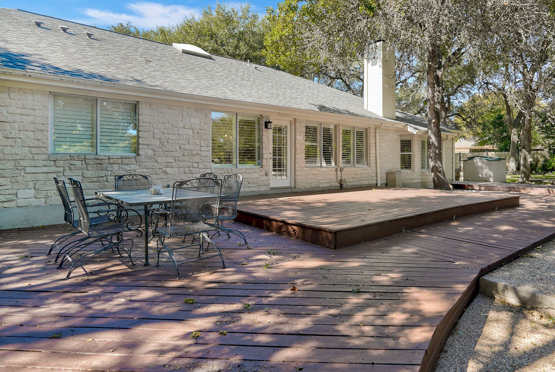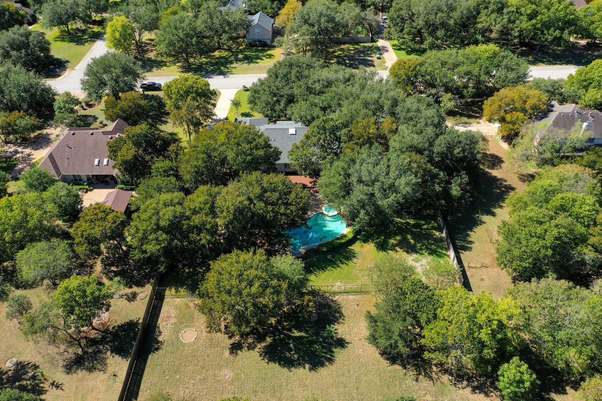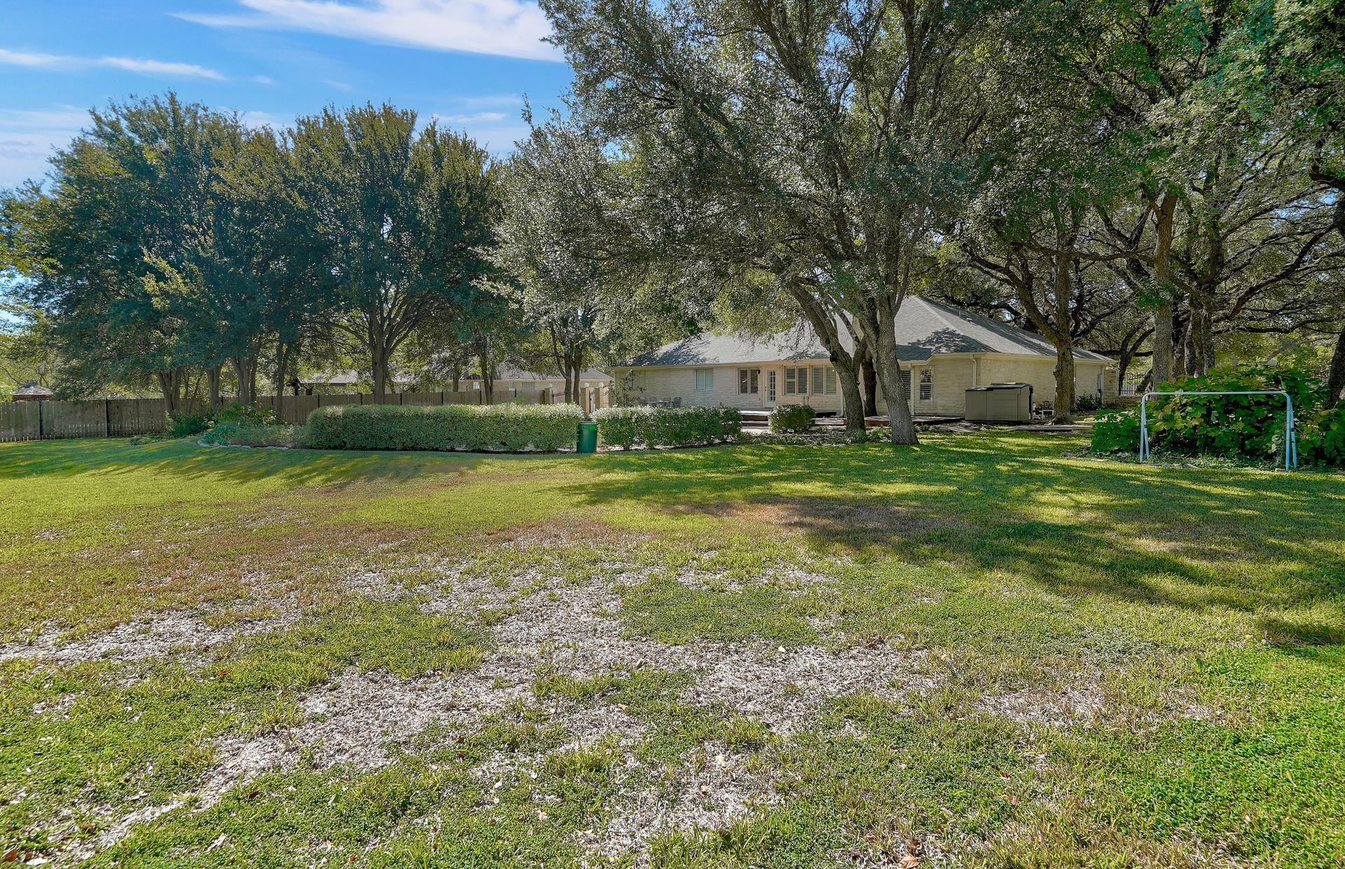 Come see this fabulous single-story home on an acre lot so close to Austin! Four bedrooms and three full and one-half baths on over 3,000 square feet make this the ideal home for everyone. The lush landscaping in the front and back with a shaded pool is where you will find the beauty of the outdoors. Imagine sitting on the spacious front porch and enjoying the gentle breezes and shade from the majestic oak trees. The backyard pool has a grand deck for a tranquil retreat with more shade trees and space for a good game of baseball! Inside are four large bedrooms with updated baths. The kitchen has recently replaced cabinetry with pull-out shelves and even a mixer stand for the baker in the household! There's a large soaking tub in the primary bathroom for those long stressful days. The fireplace is fine for cold, icy nights. In the back of the home is a massive living space for playing, relaxing or enjoying the latest binge-worthy shows. It even has tons of storage! Don't miss this rare opportunity.