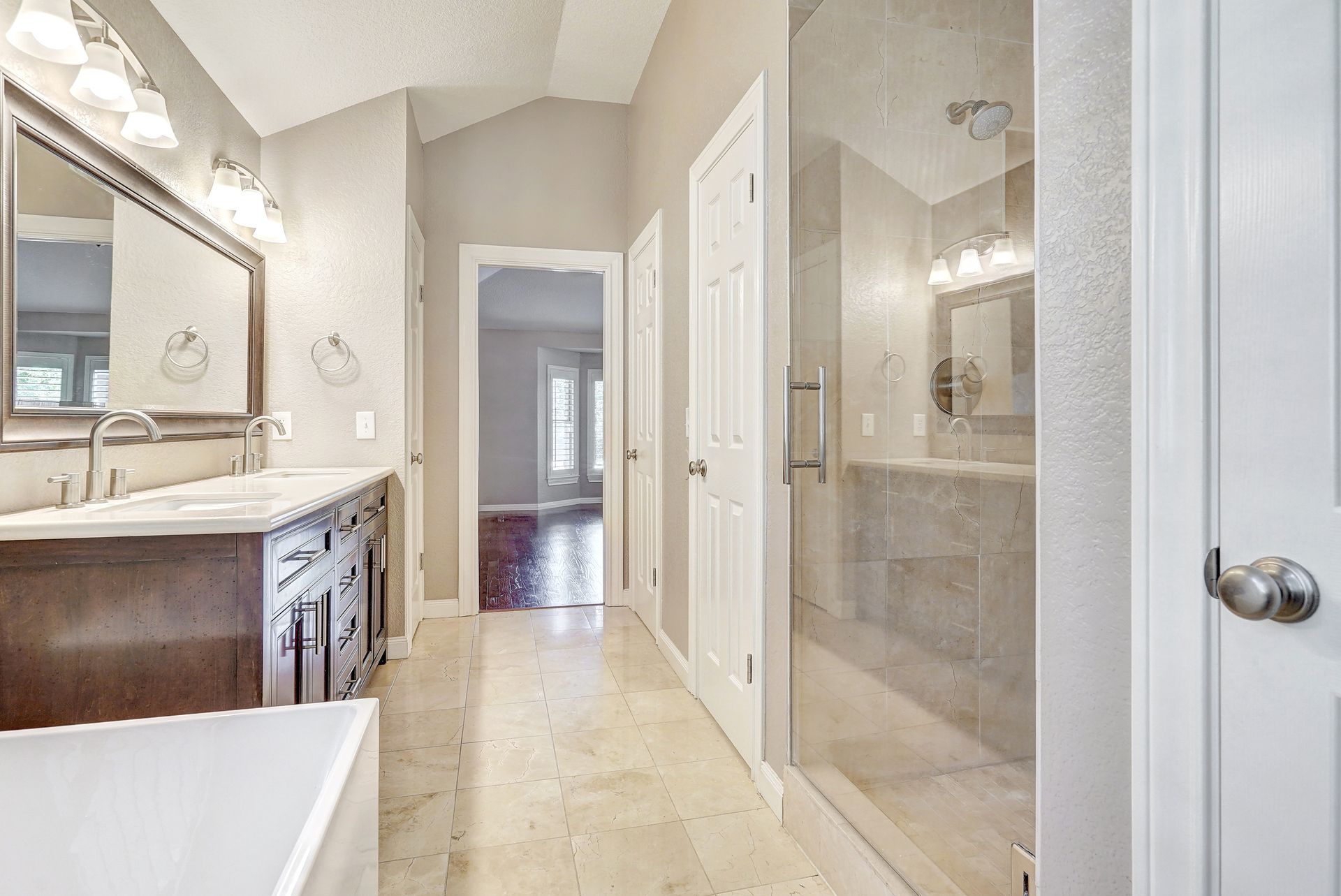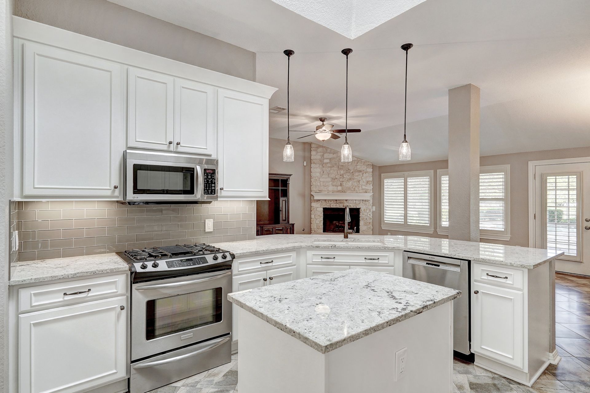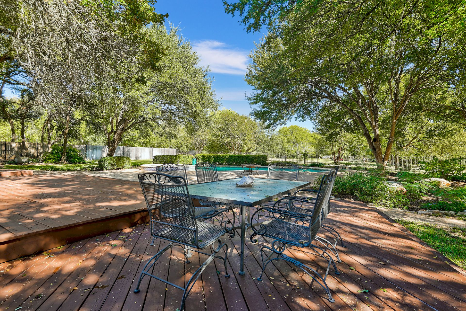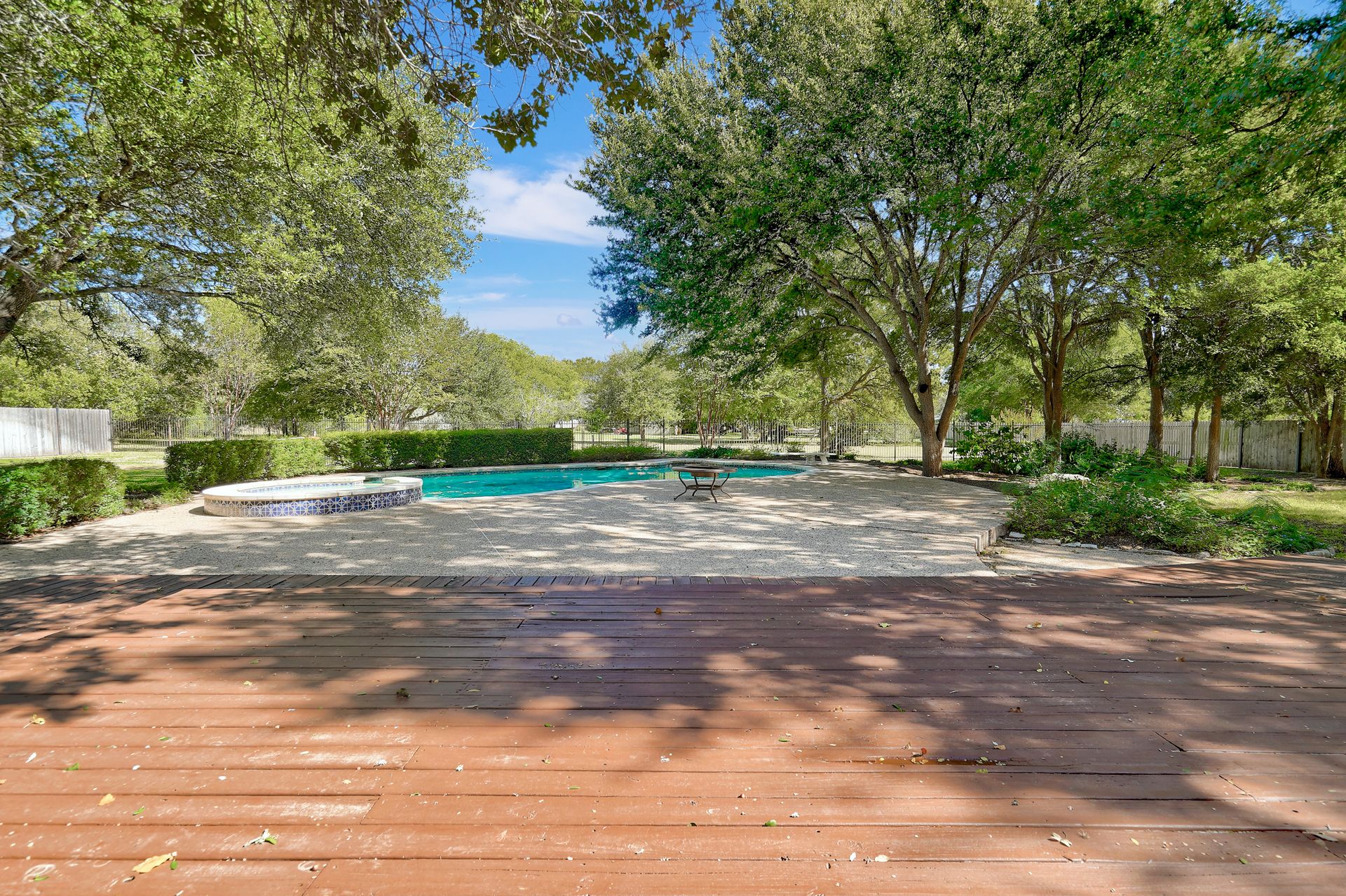 Come see this fabulous single-story home on an acre lot so close to Austin! Four bedrooms and three full and one-half baths on over 3,000 square feet make this the ideal home for everyone. The lush landscaping in the front and back with a shaded pool is where you will find the beauty of the outdoors. Imagine sitting on the spacious front porch and enjoying the gentle breezes and shade from the majestic oak trees. The backyard pool has a grand deck for a tranquil retreat with more shade trees and space for a good game of baseball! Inside are four large bedrooms with updated baths. The kitchen has recently replaced cabinetry with pull-out shelves and even a mixer stand for the baker in the household! There's a large soaking tub in the primary bathroom for those long stressful days. The fireplace is fine for cold, icy nights. In the back of the home is a massive living space for playing, relaxing or enjoying the latest binge-worthy shows. It even has tons of storage! Don't miss this rare opportunity.
