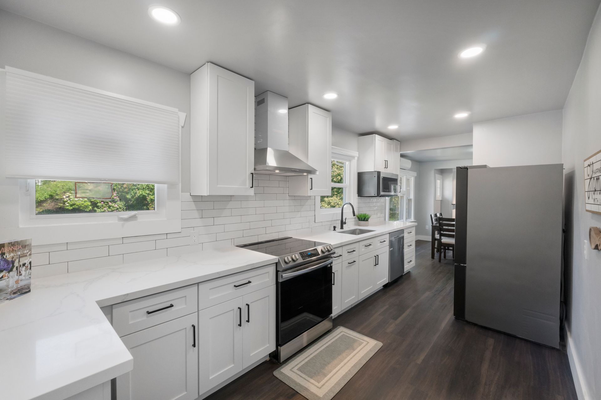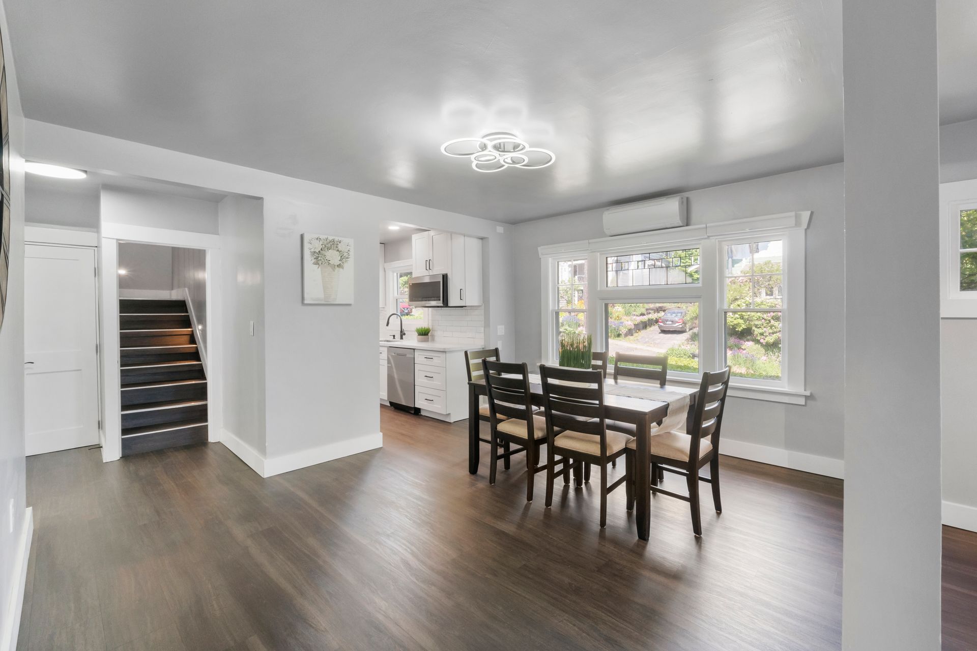 Introducing an impeccably renovated craftsman home nestled in the highly coveted Wallingford neighborhood, brought to you by Parkvue Homes. This remarkable property artfully combines preserved character with top-notch craftsmanship, resulting in a truly exquisite residence. Step inside and bask in the seamless flow of natural light, illuminating the open spaces and accentuating the home's inherent warmth and charm. Ascending to the top floor, you'll discover a generously proportioned primary suite that provides an oasis of tranquility. Adjacent to the suite, a dedicated office space awaits, offering a serene and productive environment. The main entrance and basement levels both reveal inviting family rooms, purposefully designed to accommodate memorable gatherings and foster cherished moments with loved ones. The basement itself boasts impressive versatility, featuring two comfortable bedrooms, a fully equipped kitchen that inspires culinary creativity, a ¾ bath for convenience, and a separate entrance that grants privacy and flexibility. This configuration presents an exceptional opportunity to utilize the space for Airbnb accommodations while enjoying the comfort and privacy of the upper levels. Parking is an absolute breeze with a covered carport, an attached garage, and a convenient off-street driveway, ensuring ample space for multiple vehicles. Additionally, street parking is readily available on both sides of the street, providing unparalleled convenience for residents and guests alike. Located in a prime position, this home offers effortless access to a plethora of attractions and amenities. Explore the enchanting Gas Works Park, embark on leisurely strolls or bike rides along the picturesque Burke-Gilman Trail, and enjoy proximity to esteemed institutions such as the University of Washington, Amazon's headquarters, Google, Meta, and the upscale University Village Shopping Center. Notably, the internationally renowned International School and the esteemed John Stanford School are just a stone's throw away, ensuring exceptional educational opportunities for families. Immerse yourself in the epitome of refined living and embrace a lifestyle that harmonizes timeless elegance with modern comforts. This meticulously renovated craftsman home in Wallingford epitomizes sophistication and promises an idyllic retreat to call your own.