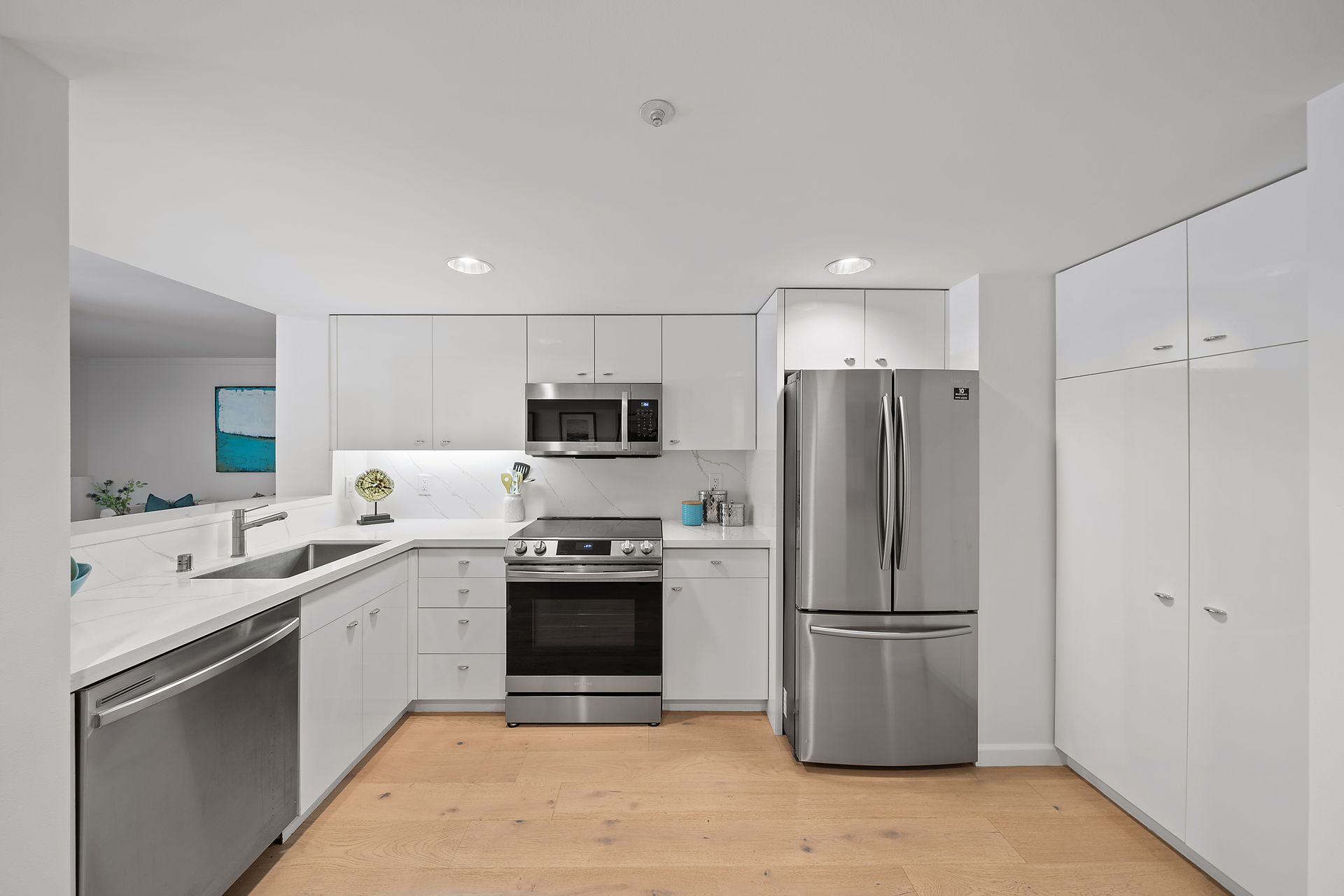 Welcome to a truly unique, junior one-bedroom condominium in the iconic Portside. Situated on the ground floor, this unit ensures effortless access without the need for elevators or stairs. With no neighbors on either side or above, you'll relish in a heightened level of privacy rarely found elsewhere. Notably, this unit stands as the sole residence with its very own oasis-like deeded patio. Wide plank, white oak hardwood floors grace the living space. An abundance of natural light and beautiful garden views create a serene backdrop. The kitchen is open and well equipped. In unit washer/dryer, extra storage, and garage parking complete the package. Positioned in the heart of South Beach, between the ballpark and the Ferry Building, the Portside offers unrivaled proximity to some of San Francisco's finest restaurants and shops. Within the Portside, residents enjoy exclusive access to two gyms, a beautiful pool, and front door host. The low HOA fee includes earthquake insurance, a rare and valuable inclusion. Seize this exceptional opportunity that truly stands as one of a kind.
